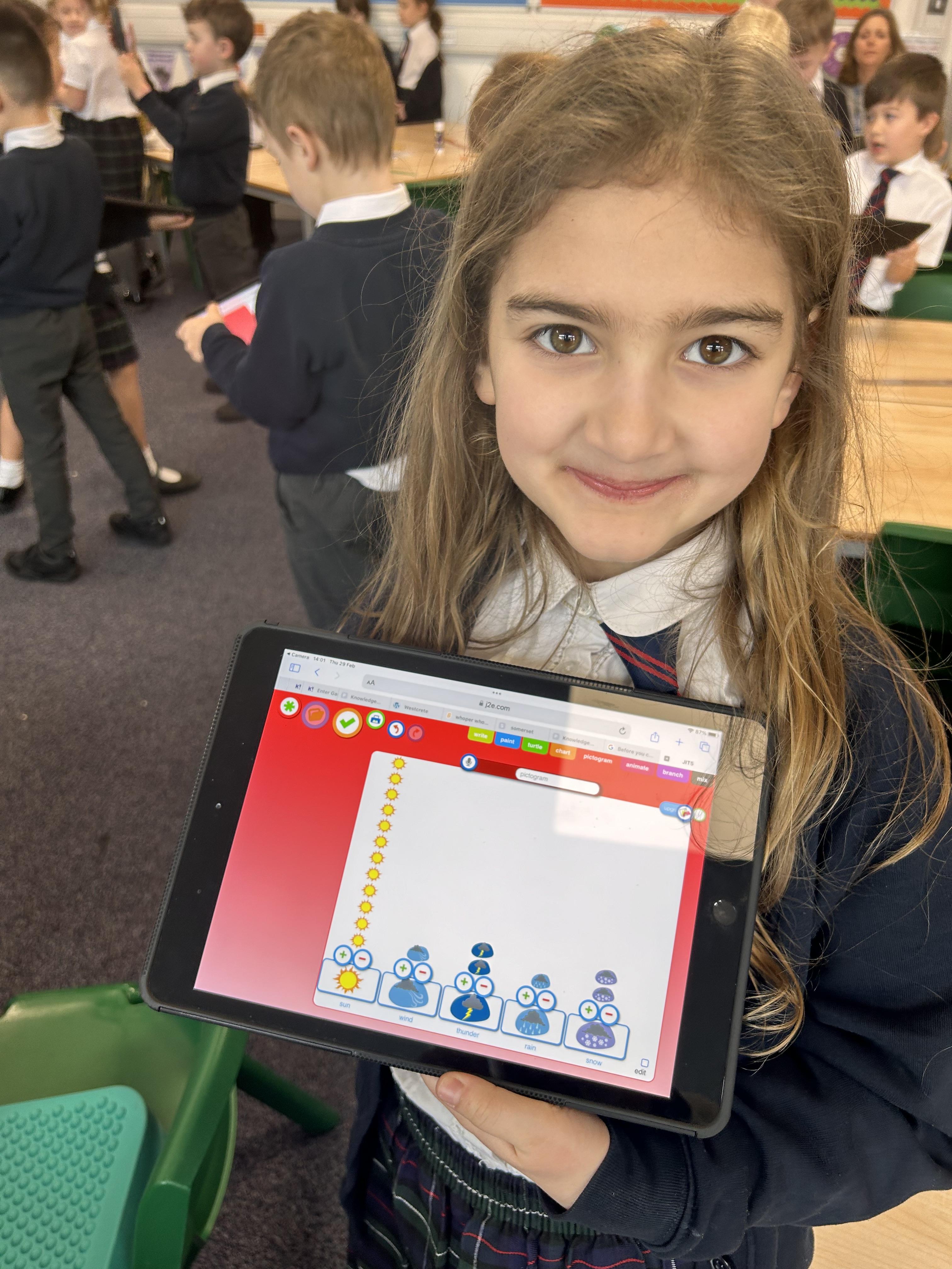 In Computing, the children used the iPads to create pictograms. We discussed how using technology can make data collection much easier and quicker.