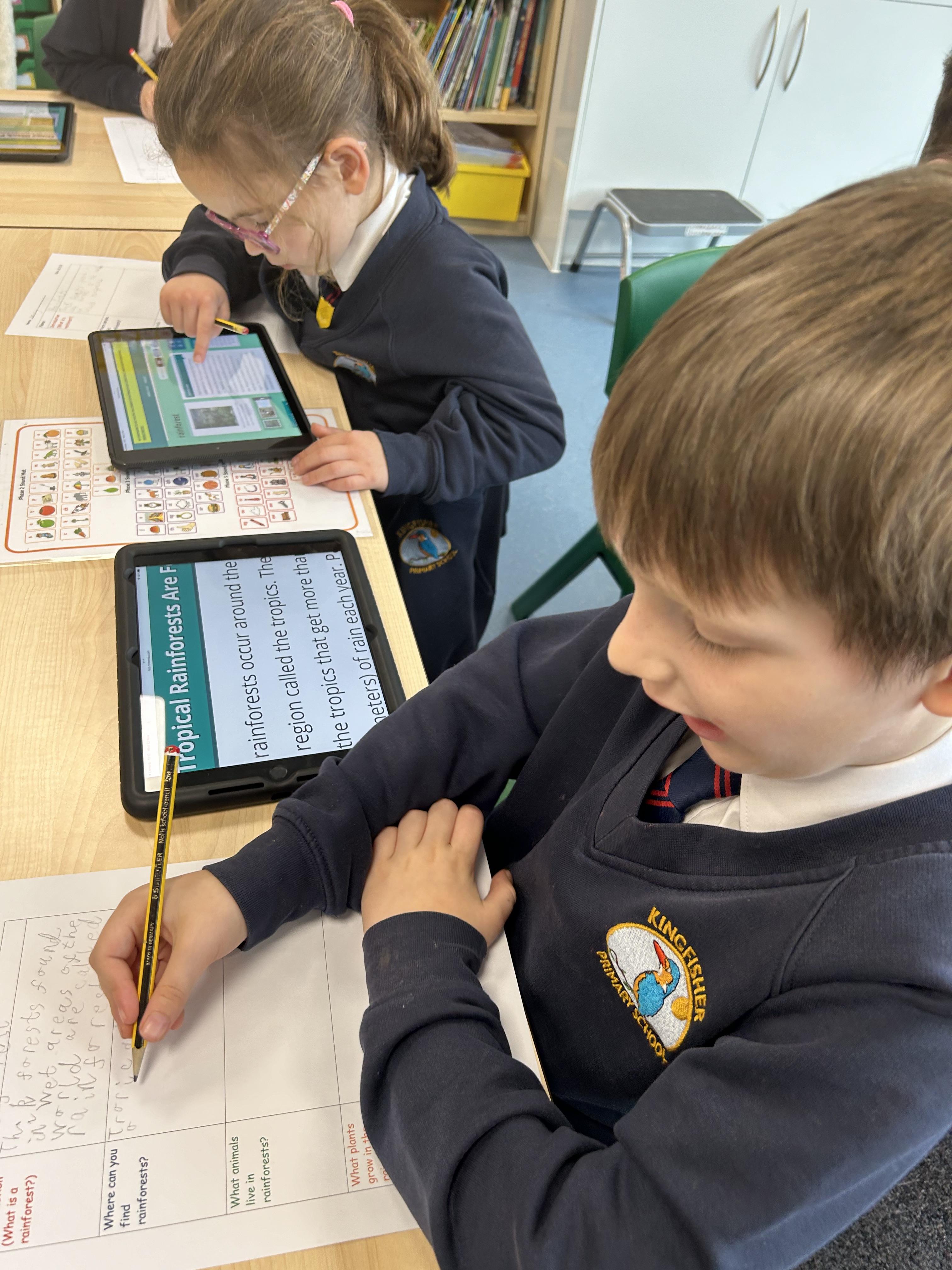 Today, the children enjoyed using the iPads to research rainforests for their information texts.