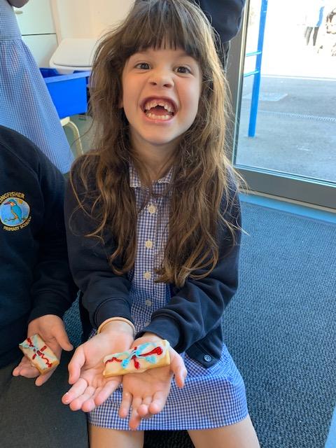 To celebrate the Jubilee, Mallard Class made some Union Flag shortbread biscuits. We also had a whole day celebrating the Queen, wearing red, white and blue, having a tea party, playing games and eating ice creams (kindly paid for by the PTA). It was a fantastic day!