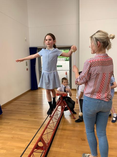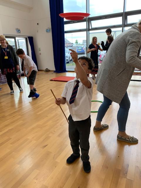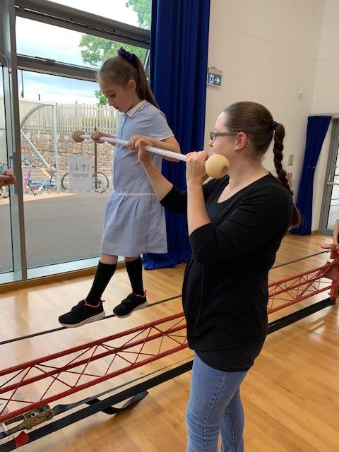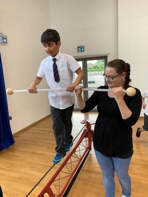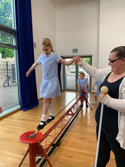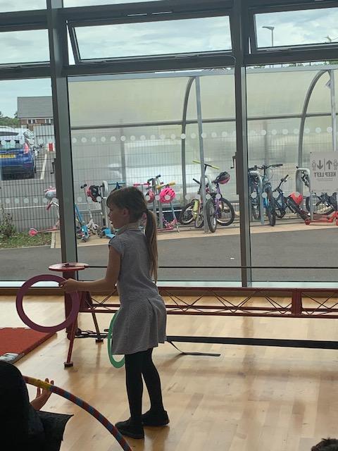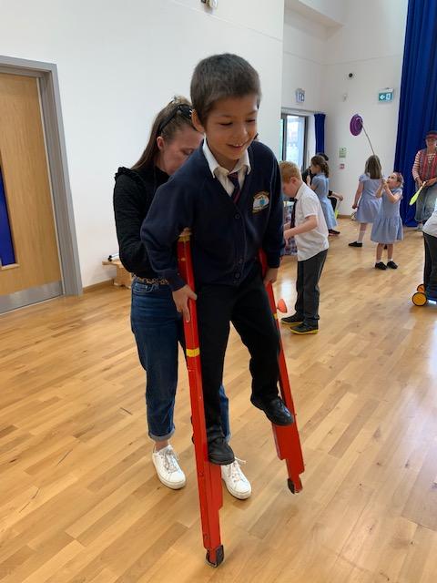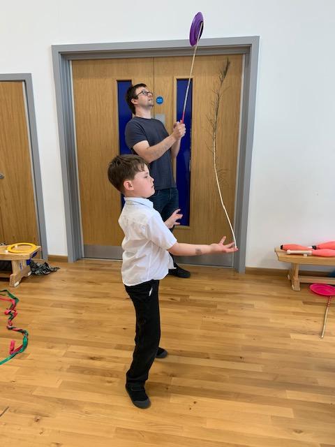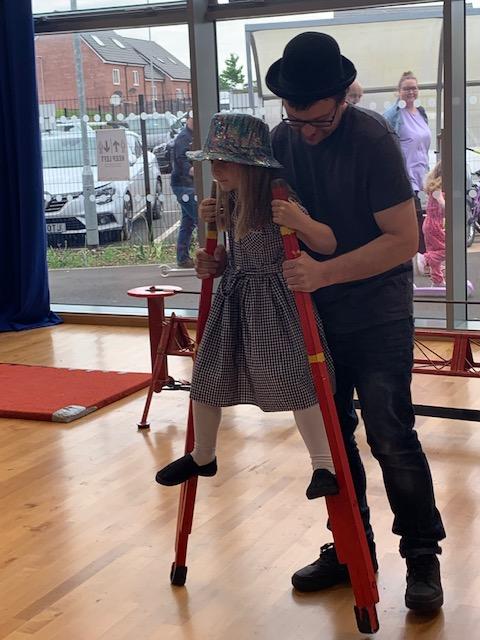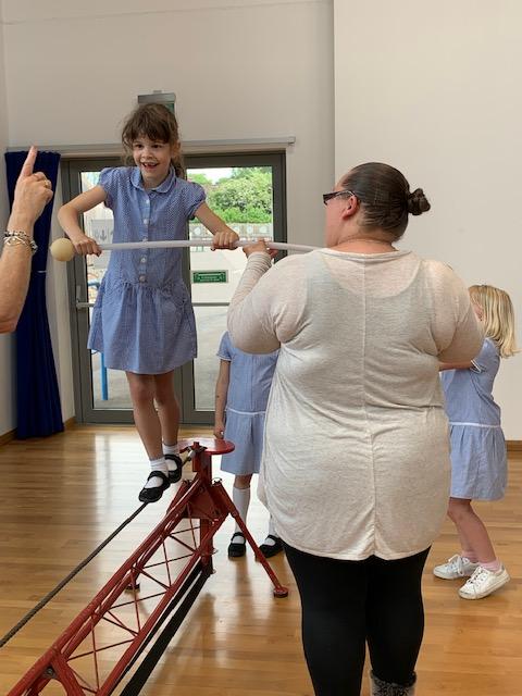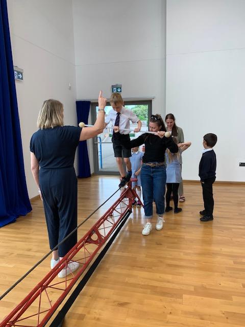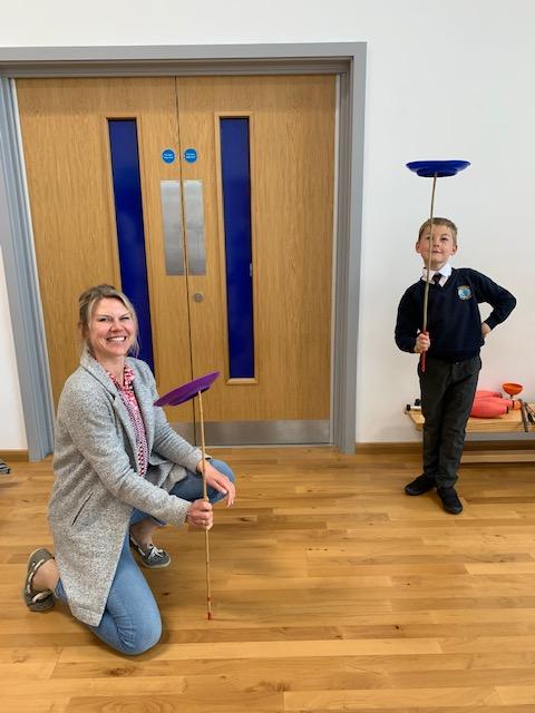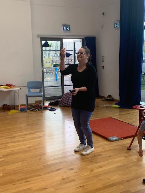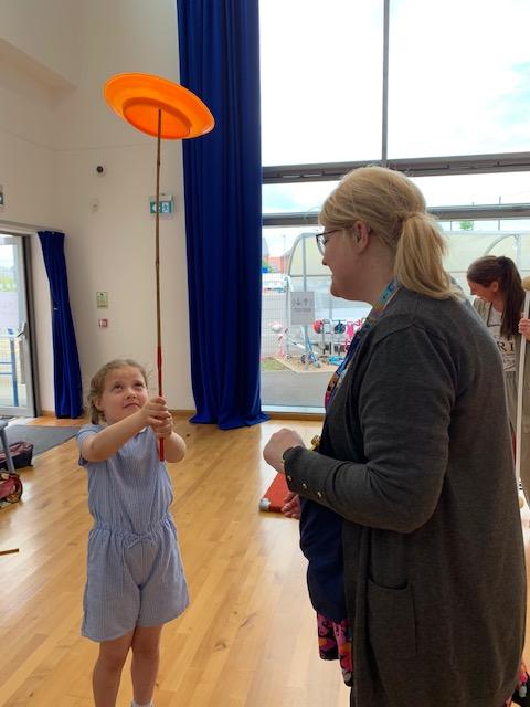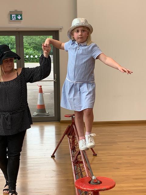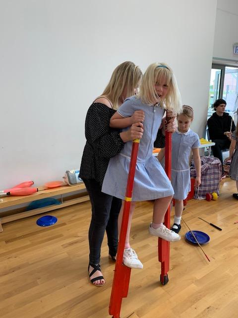 We had some fun this week with our Family Leaning Circus Skills Workshop. Hannah came to demonstrate some skills such as, tightrope walking, plate spinning, juggling and walking on stilts and we all had a go! It was harder than it looked but great fun!