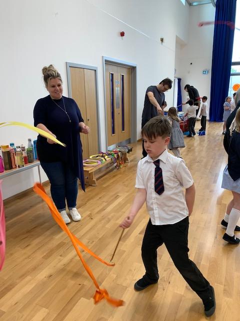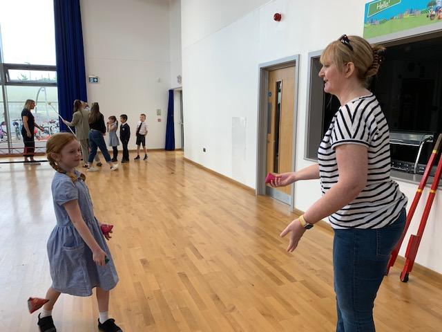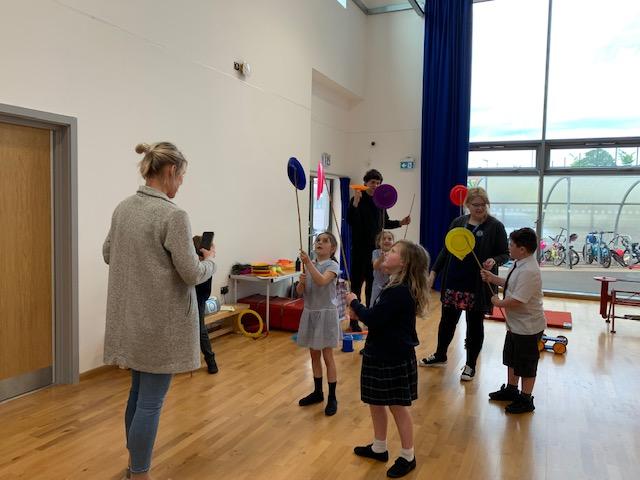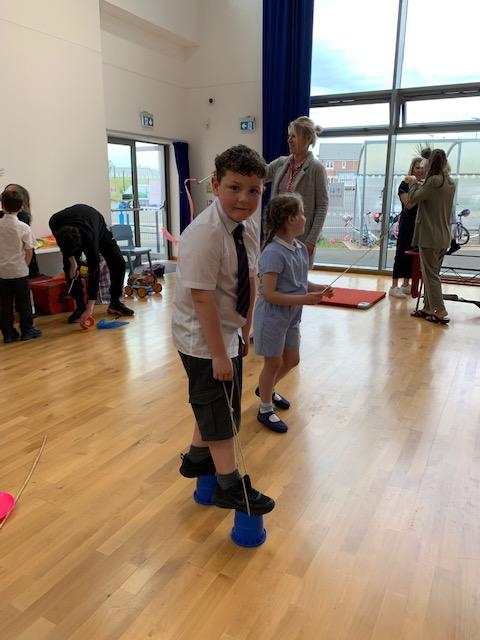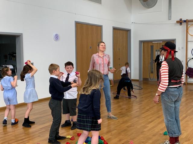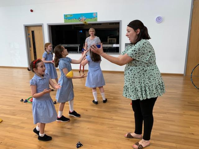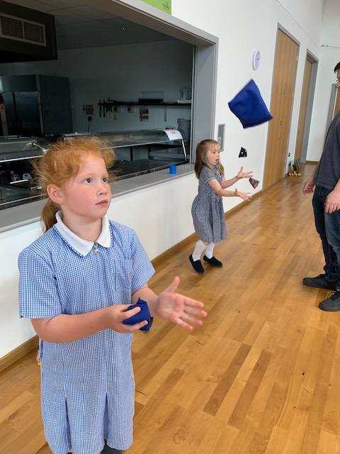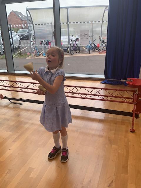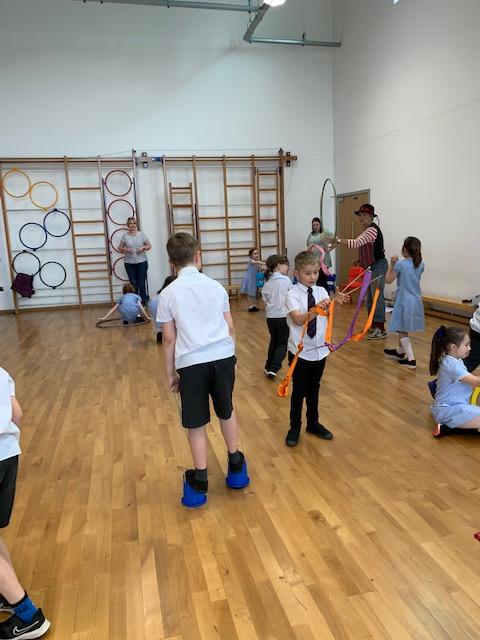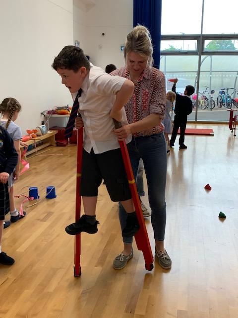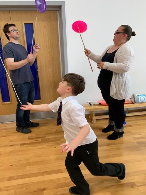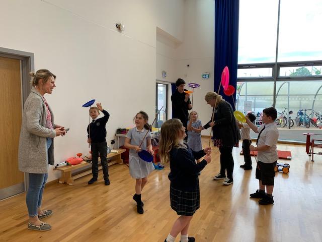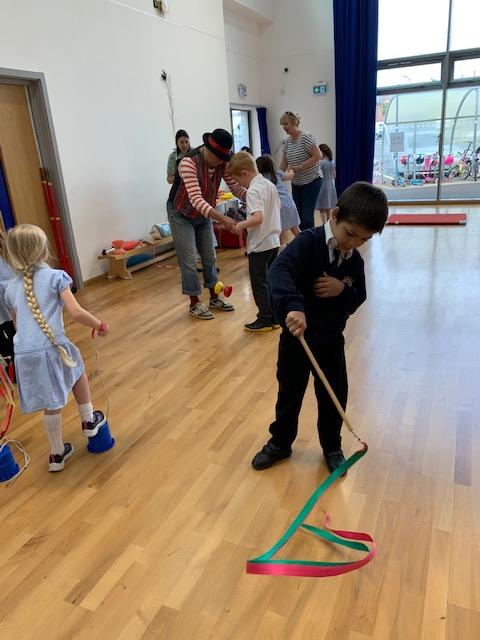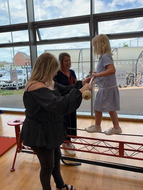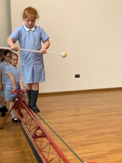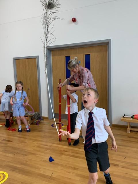We had some fun this week with our Family Leaning Circus Skills Workshop. Hannah came to demonstrate some skills such as, tightrope walking, plate spinning, juggling and walking on stilts and we all had a go! It was harder than it looked but great fun!