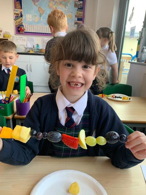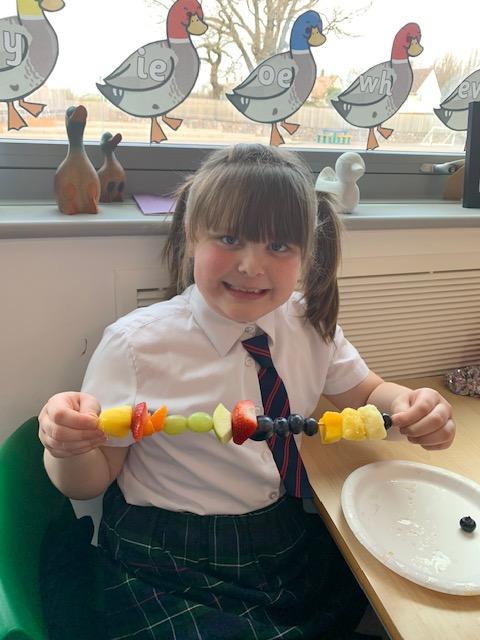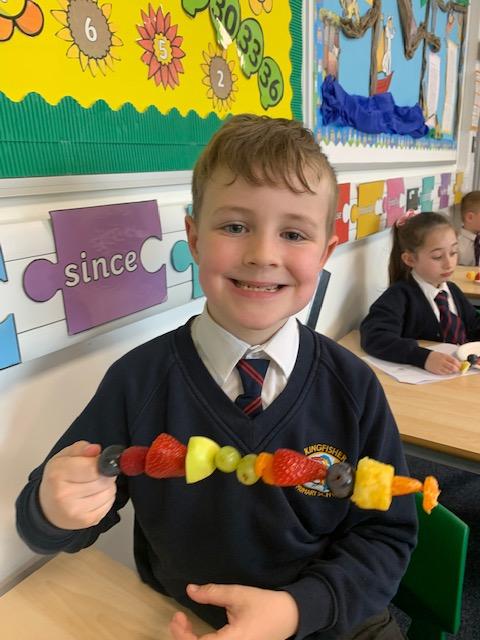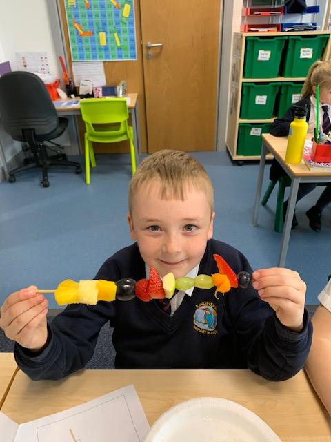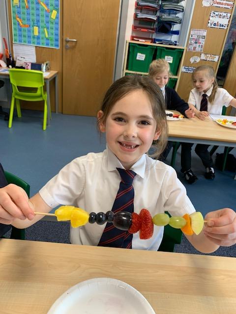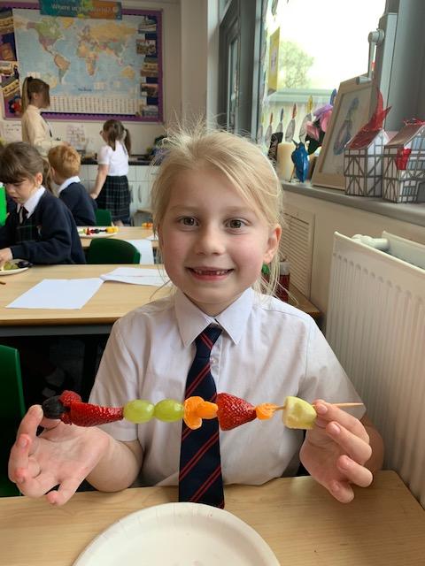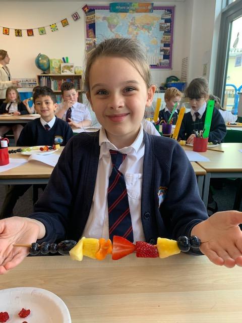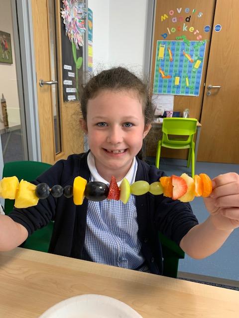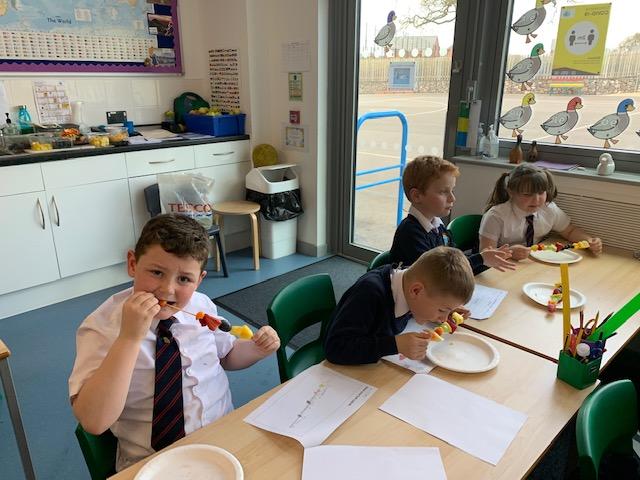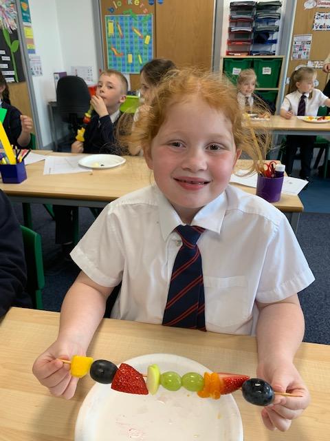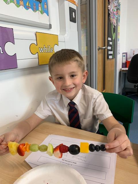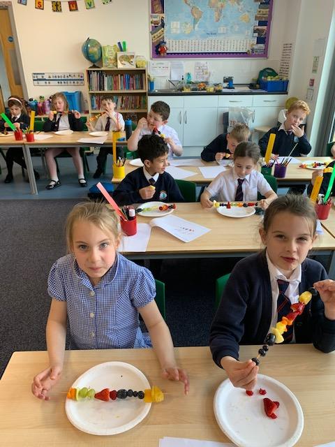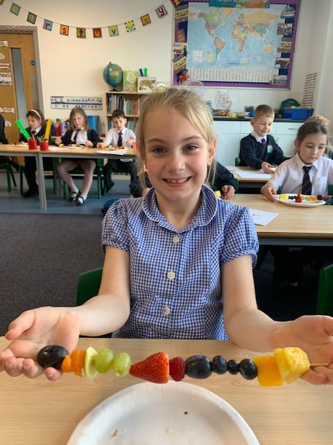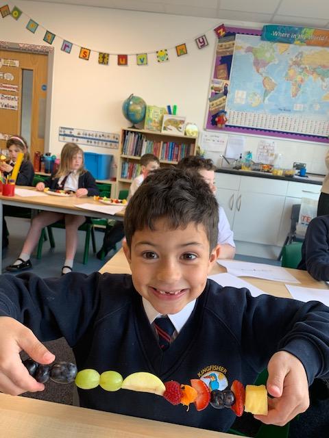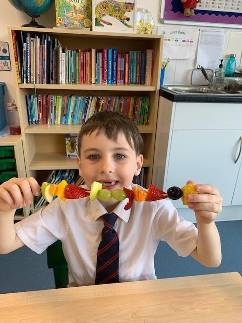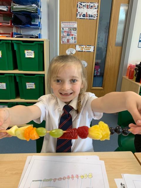 As part of our Science and DT topic this half term, the children designed, made and ate their own fresh fruit rainbow kebabs. They all chose what design and fruit they would like on their skewers and then made these with the fruit today. However, the children agreed the best part was eating them!
