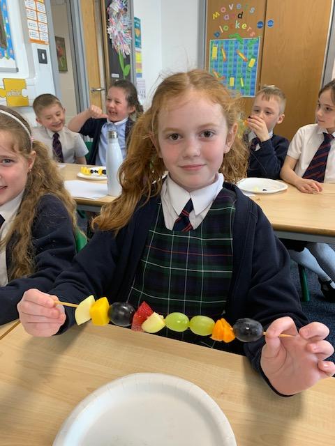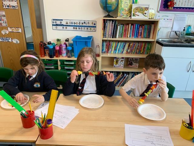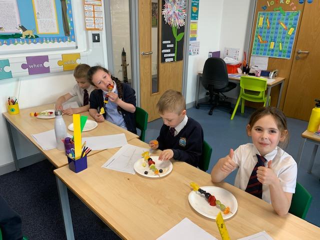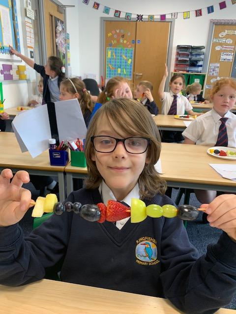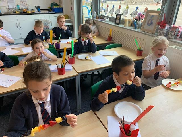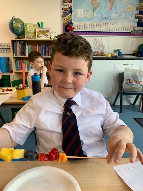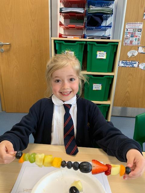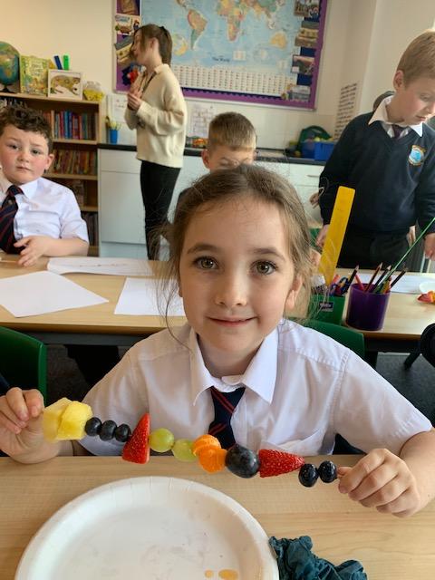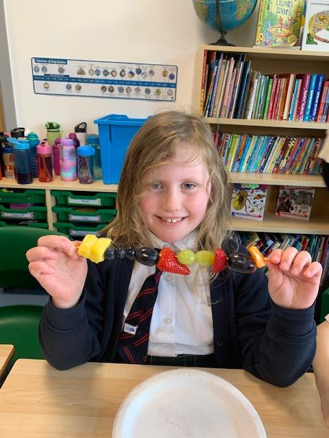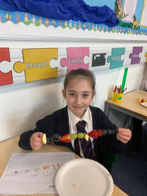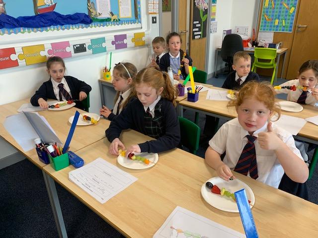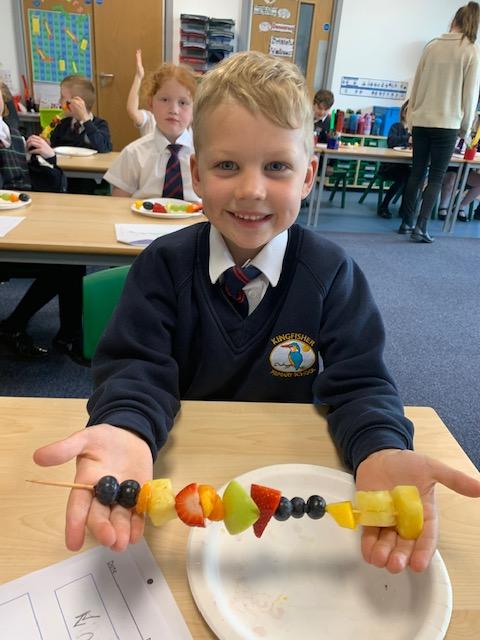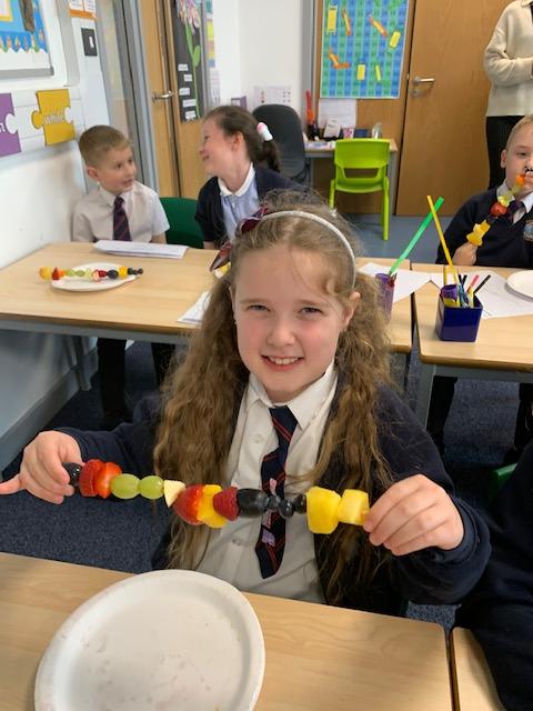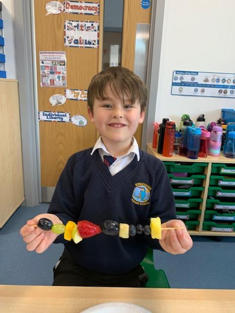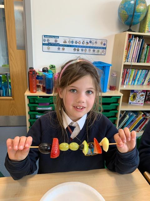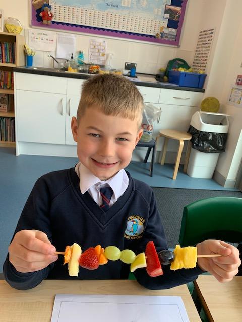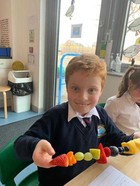 As part of our Science and DT topic this half term, the children designed, made and ate their own fresh fruit rainbow kebabs. They all chose what design and fruit they would like on their skewers and then made these with the fruit today. However, the children agreed the best part was eating them!