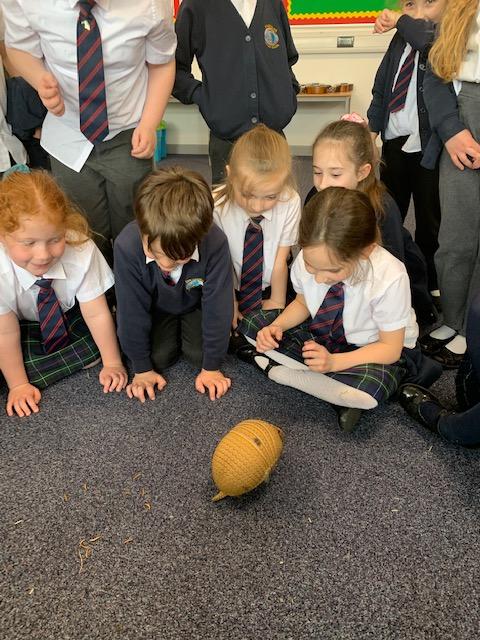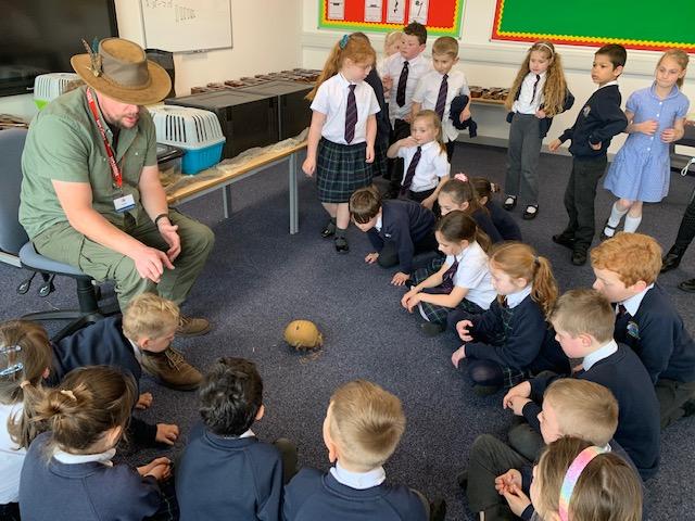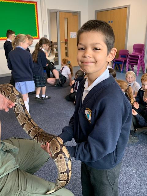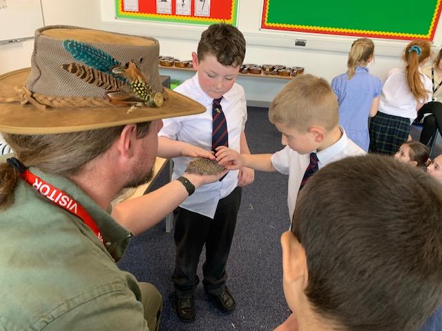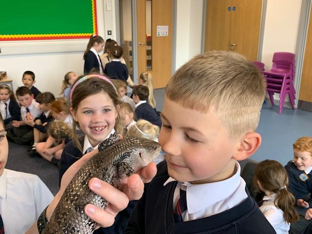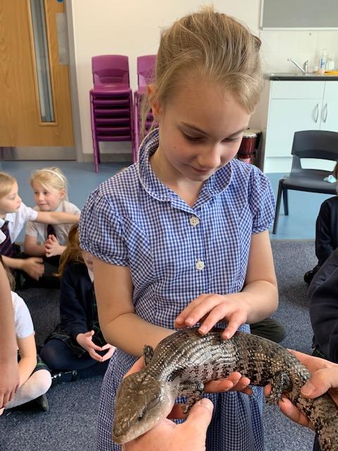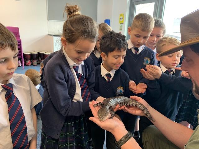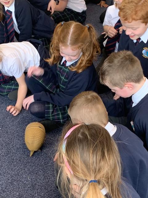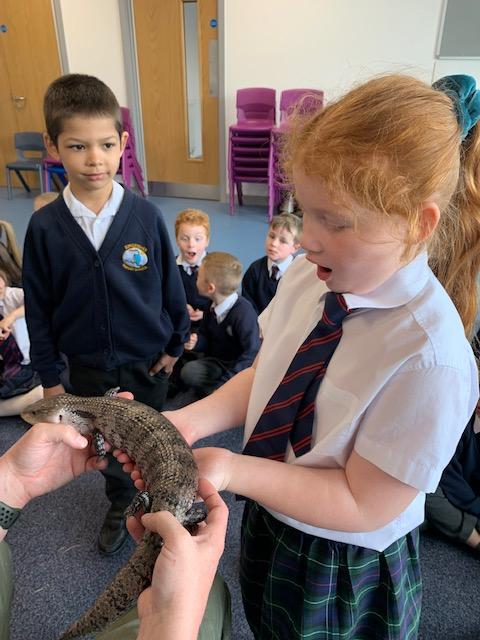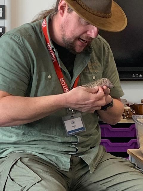 Today we were lucky enough to be able to come up-close to some very special animals. Chris (The Animal Man) brought with him a python, a blue-tongued lizard, a tenrec an armadillo and a miniature owl. They were all amazing and the children were fascinated to learn many interesting facts and some of them even got to hold them!