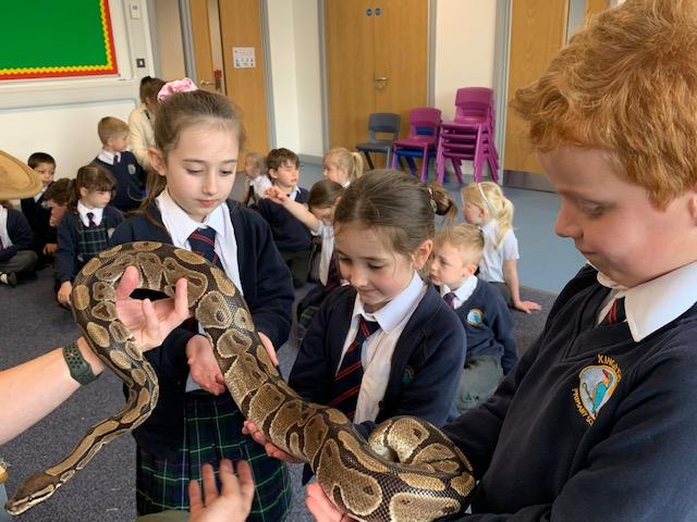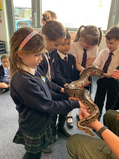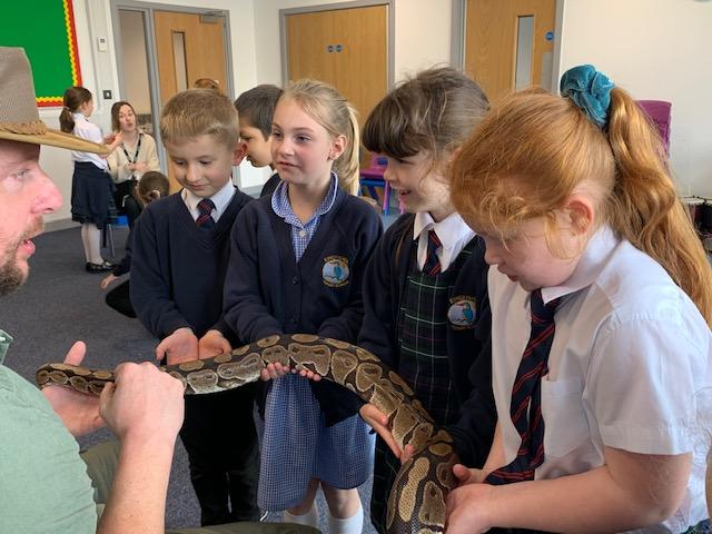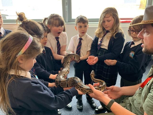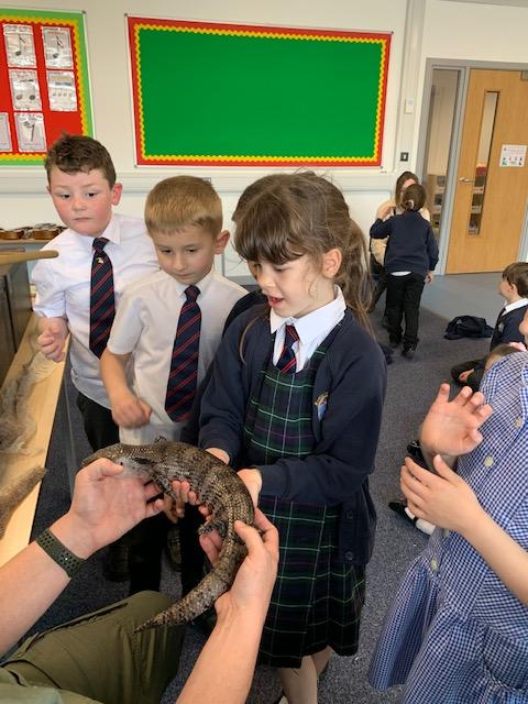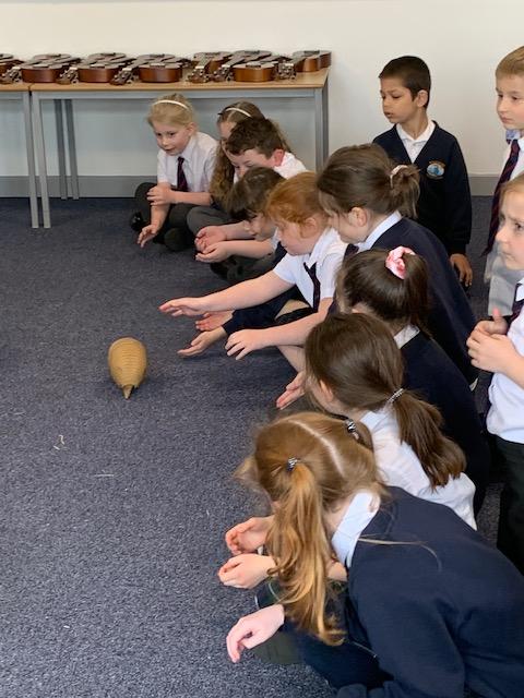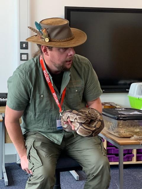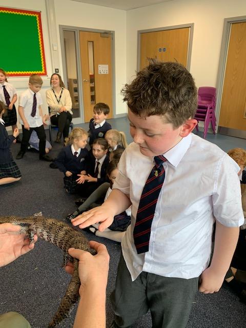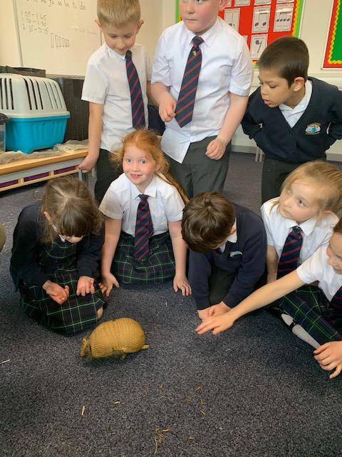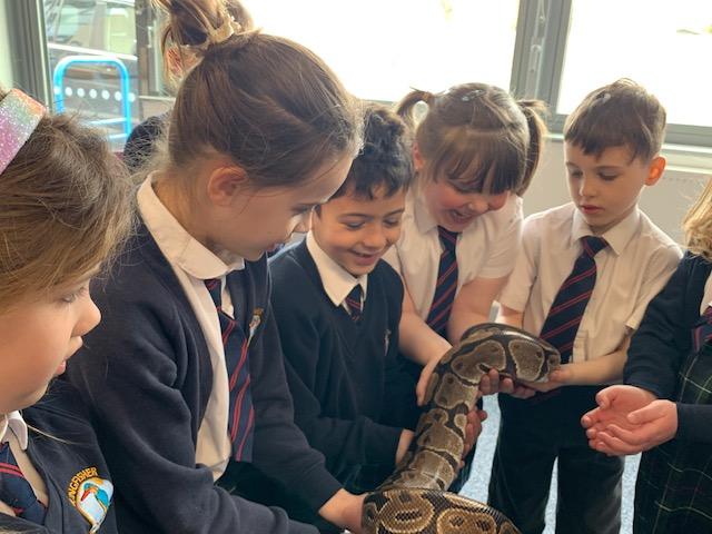 Today we were lucky enough to be able to come up-close to some very special animals. Chris (The Animal Man) brought with him a python, a blue-tongued lizard, a tenrec an armadillo and a miniature owl. They were all amazing and the children were fascinated to learn many interesting facts and some of them even got to hold them!