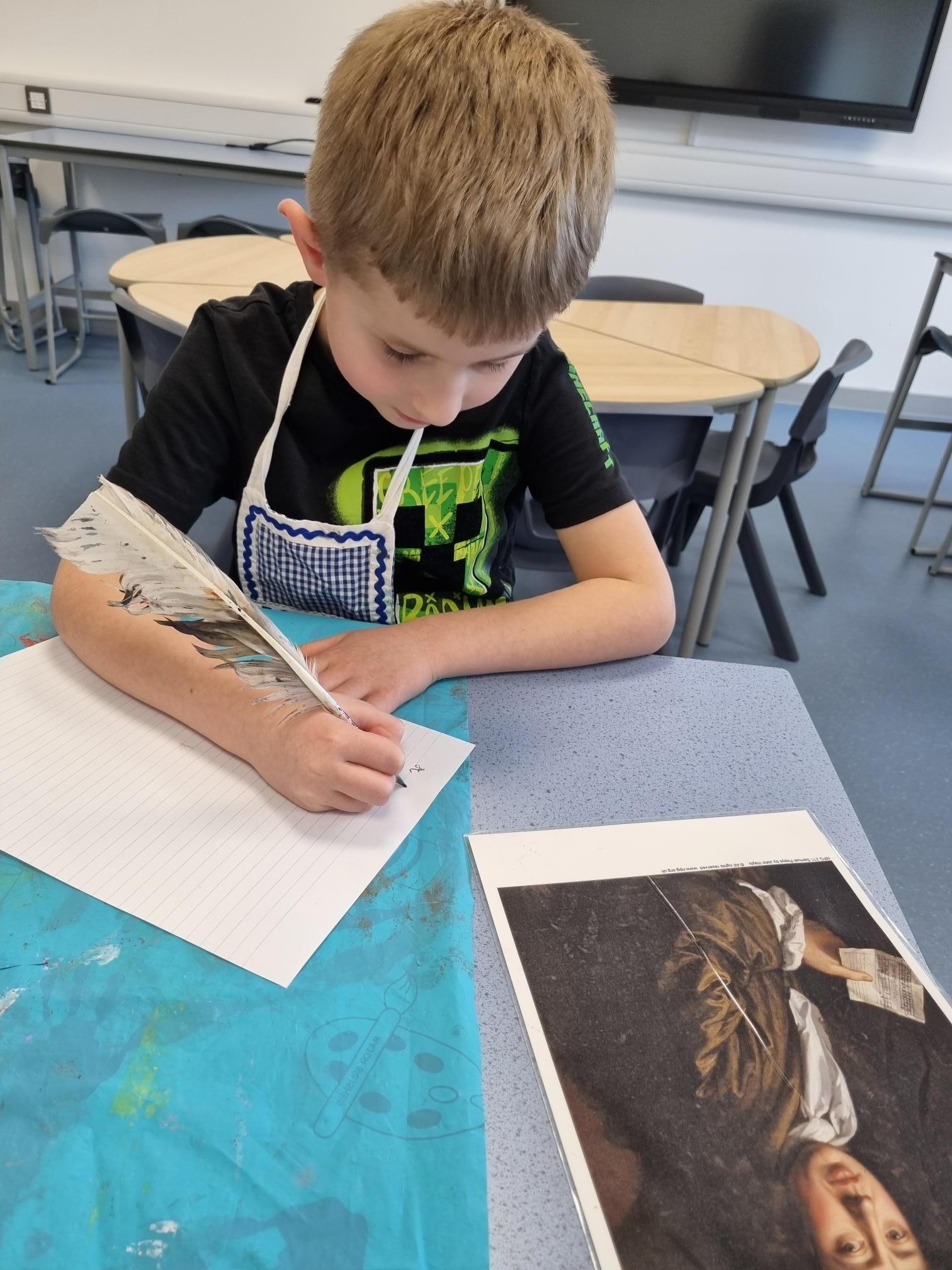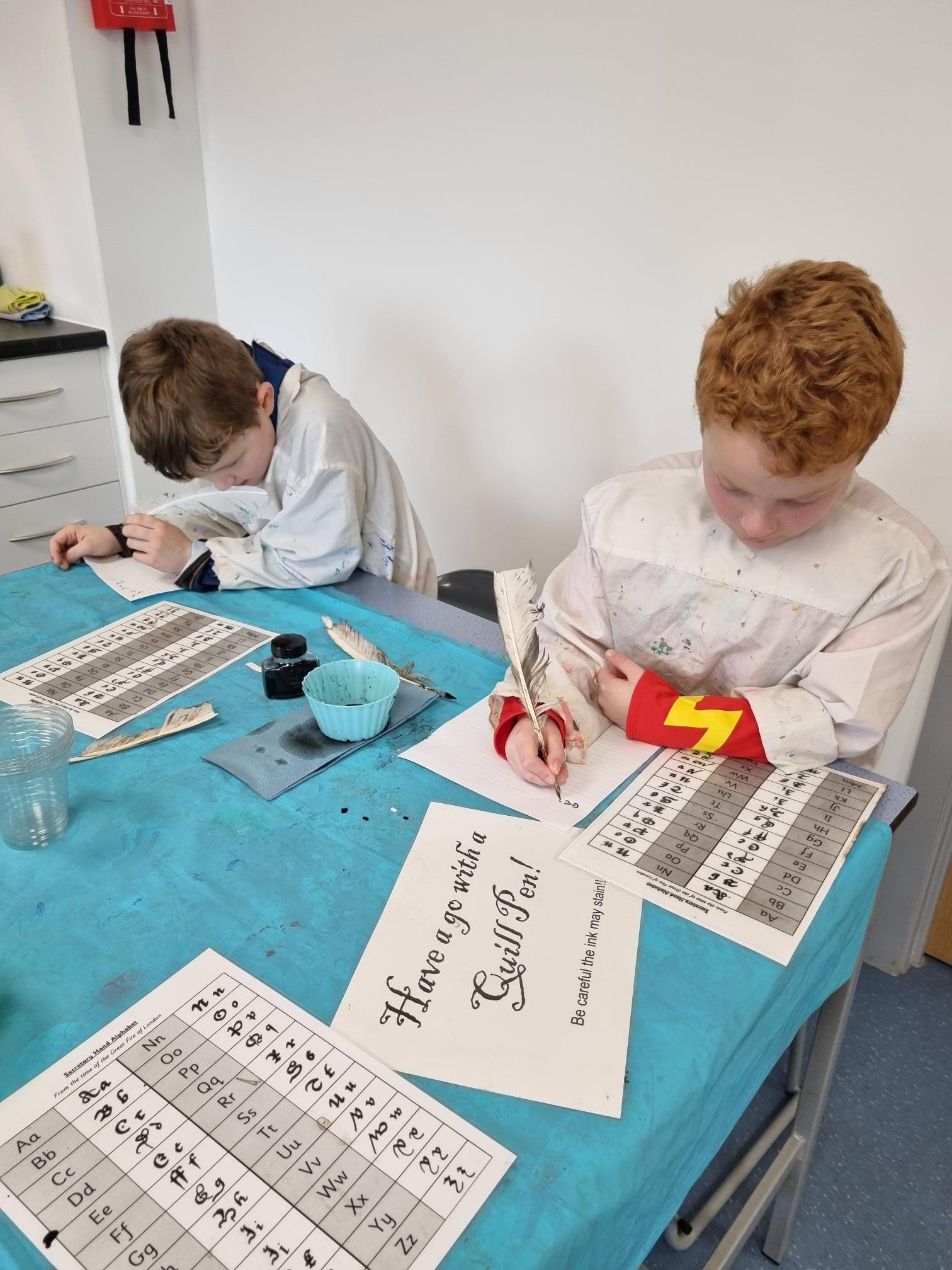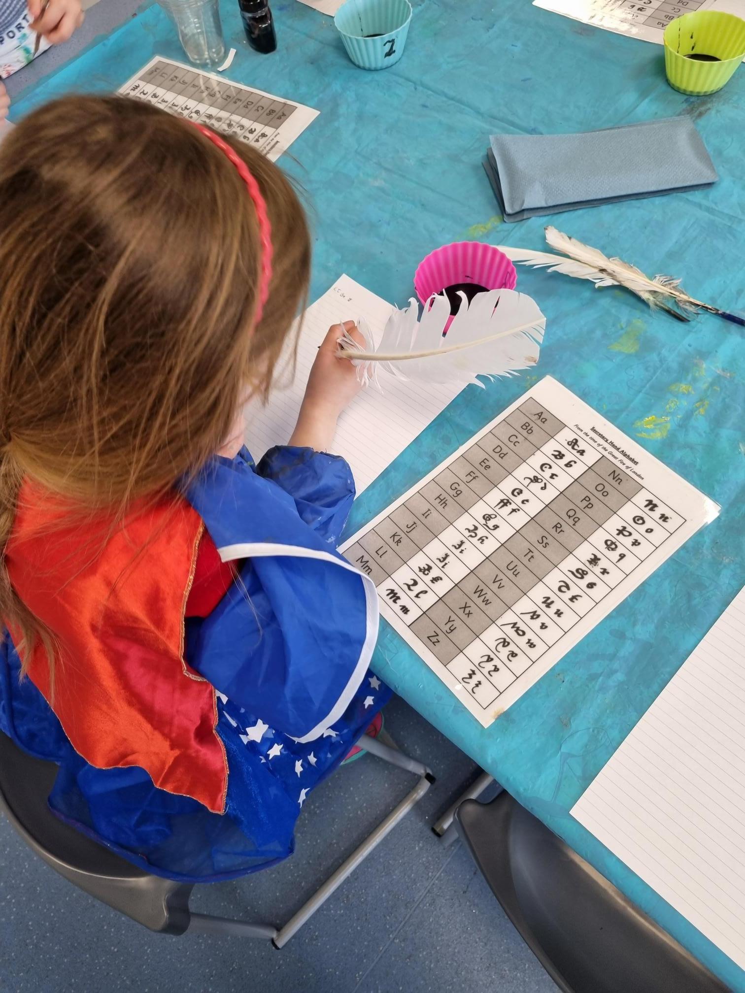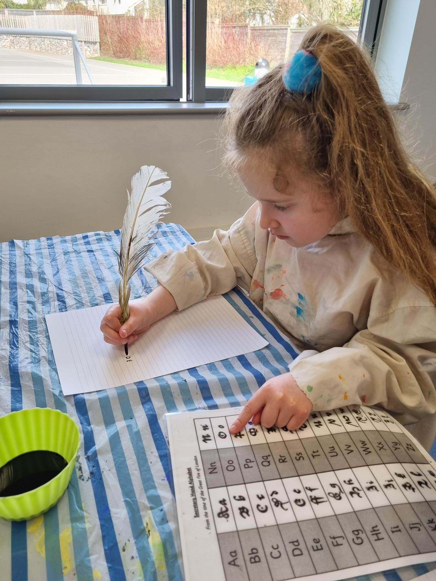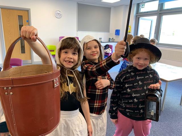 We really enjoyed our visit from Sharon who came from the South West Heritage Trust to talk to us about The Great Fire of London. She brought it to life with artefacts for the children to hold, costumes for them to wear and brought quills and ink for the children to use. The children even re-enacted putting the fire out with a bucket of water activity!