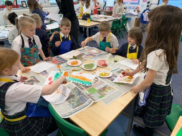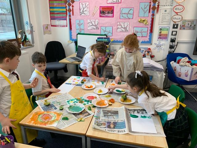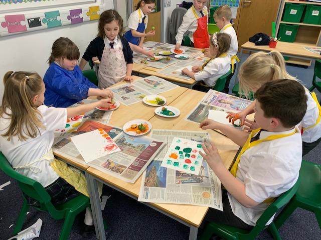 Our topic in Art this half term is learning about different techniques such as, printing, stamping and rubbing. This week the children used fruit and vegetables to create patterns and designs by printing with paint. It was very messy but fun!