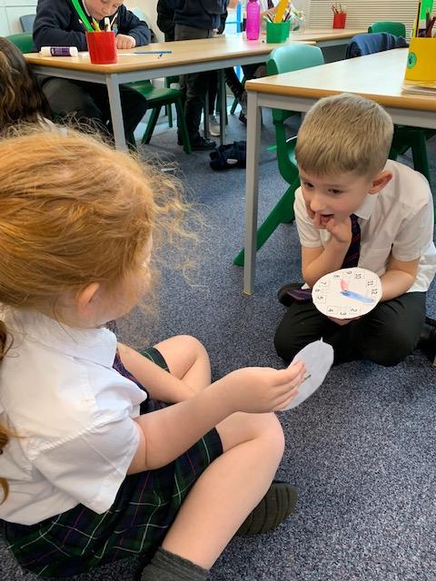 This week the children have been learning all about time. They made their own clocks to help them and then set challenges with their partners to guess what the time said! They learned how to read clocks for: o'clock, half past, quarter to/past and to 5 minute intervals. Some of them found this a bit tricky, but they all persevered and I was very proud of them all!