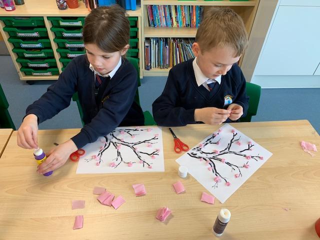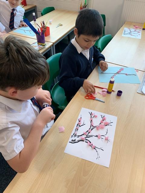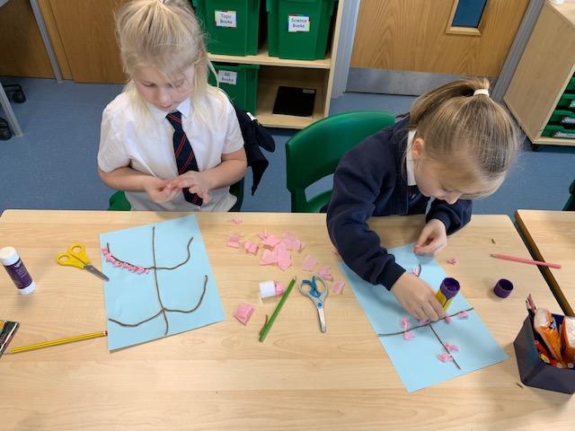 This week we celebrated the beginning of the Chinese New Year by creating cherry blossom trees. The children used wool and pink tissue paper to make some stunning displays.