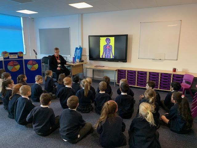 Today we enjoyed a visit from Helen who works for Life Education. She came to speak to us about what is inside our bodies, how to stay healthy and also about feelings. The children really enjoyed meeting Harold the Giraffe too and finding out ways to help him manage some situations.