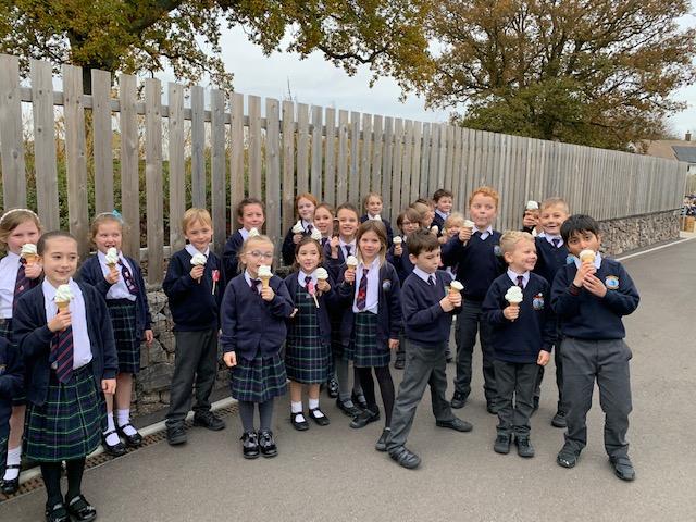 It was very exciting to have a treat from the Noodles Ice-Cream van during a school day. All the children and teachers were given a huge cone and soft whipped ice-cream and this certainly put a lot of smiles on faces!