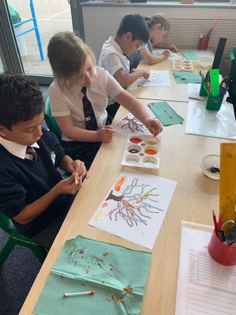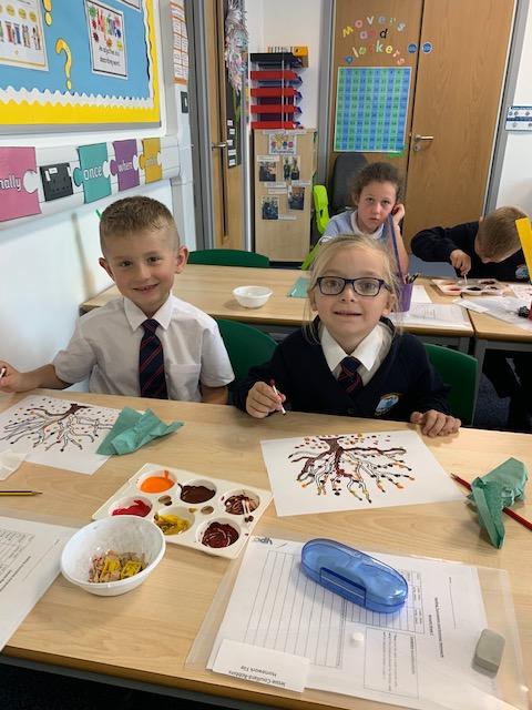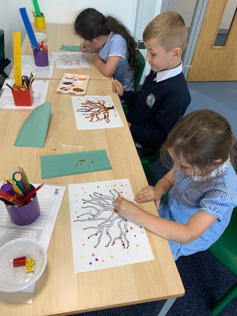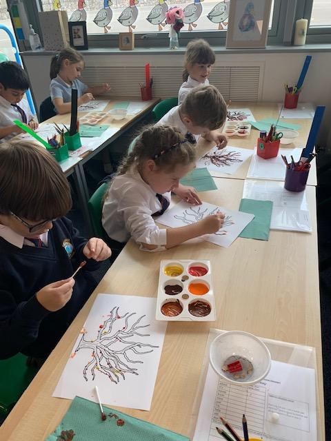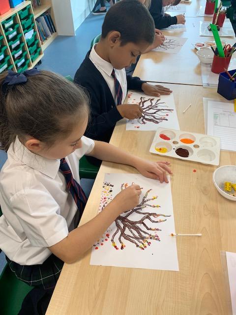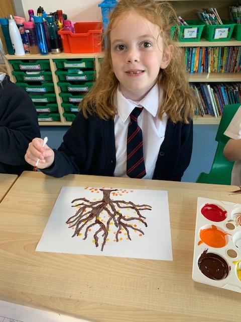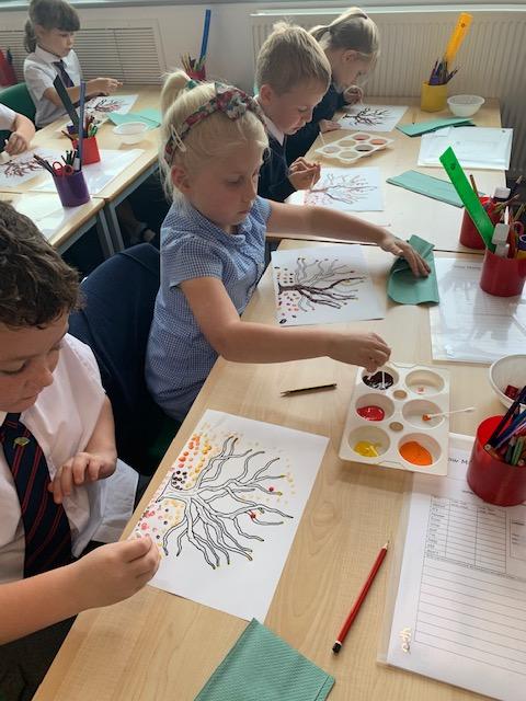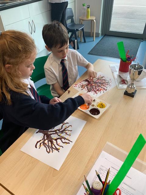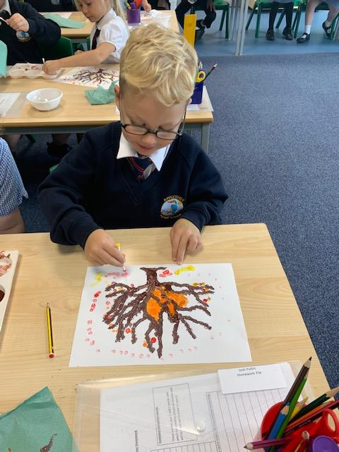 In our art lesson we learned about Pointillism and we created some amazing Autumn tree paintings in this style.