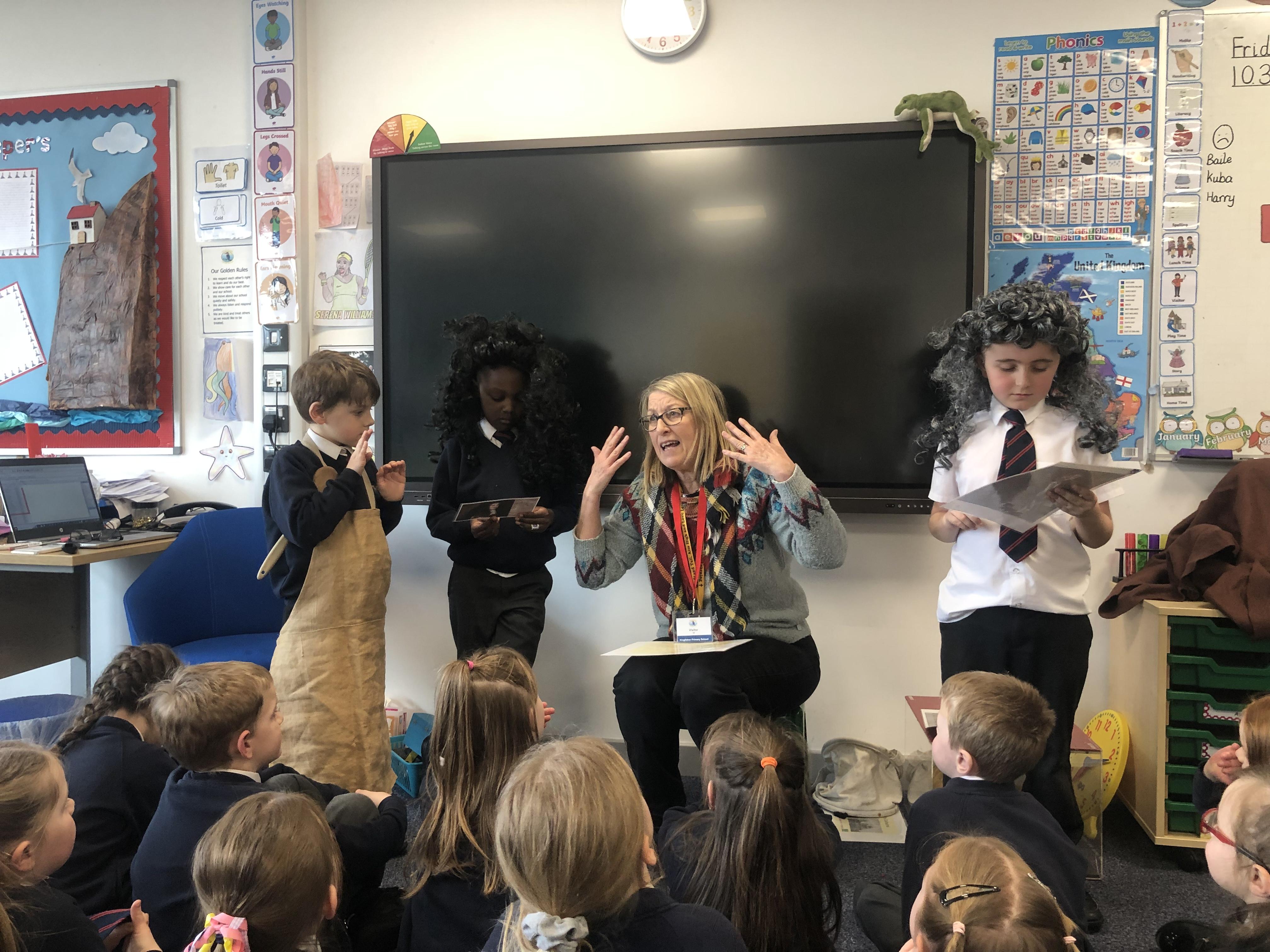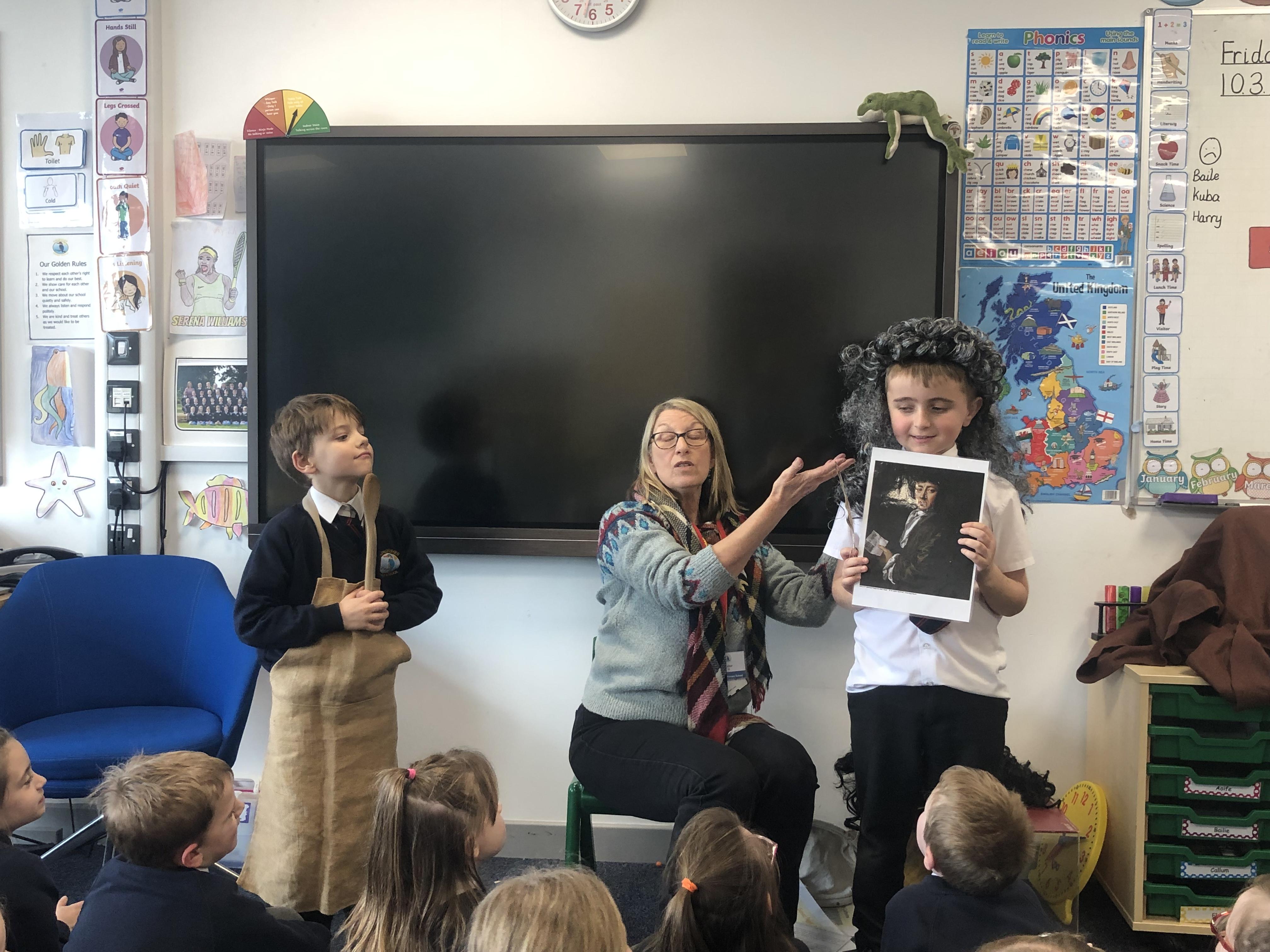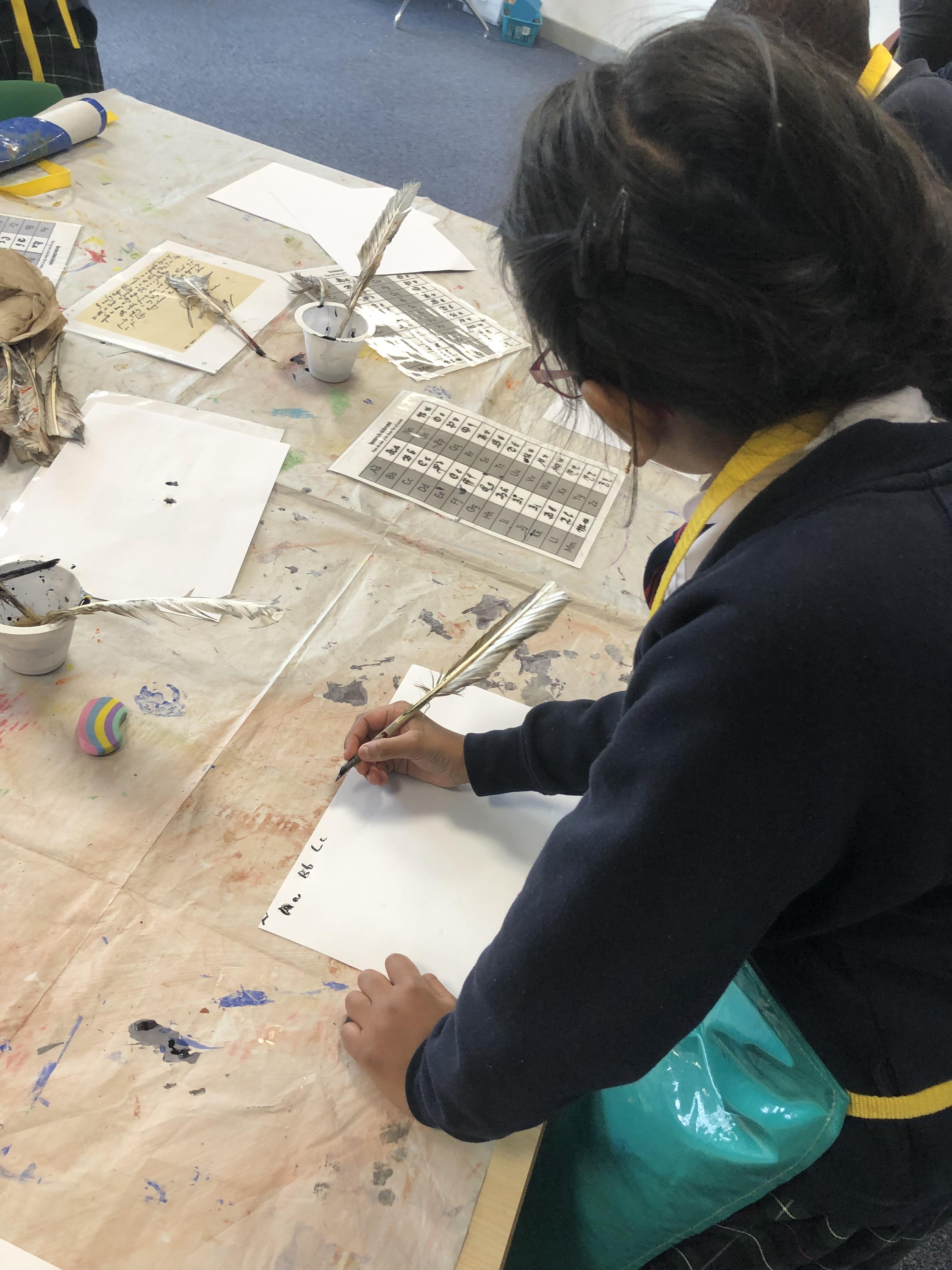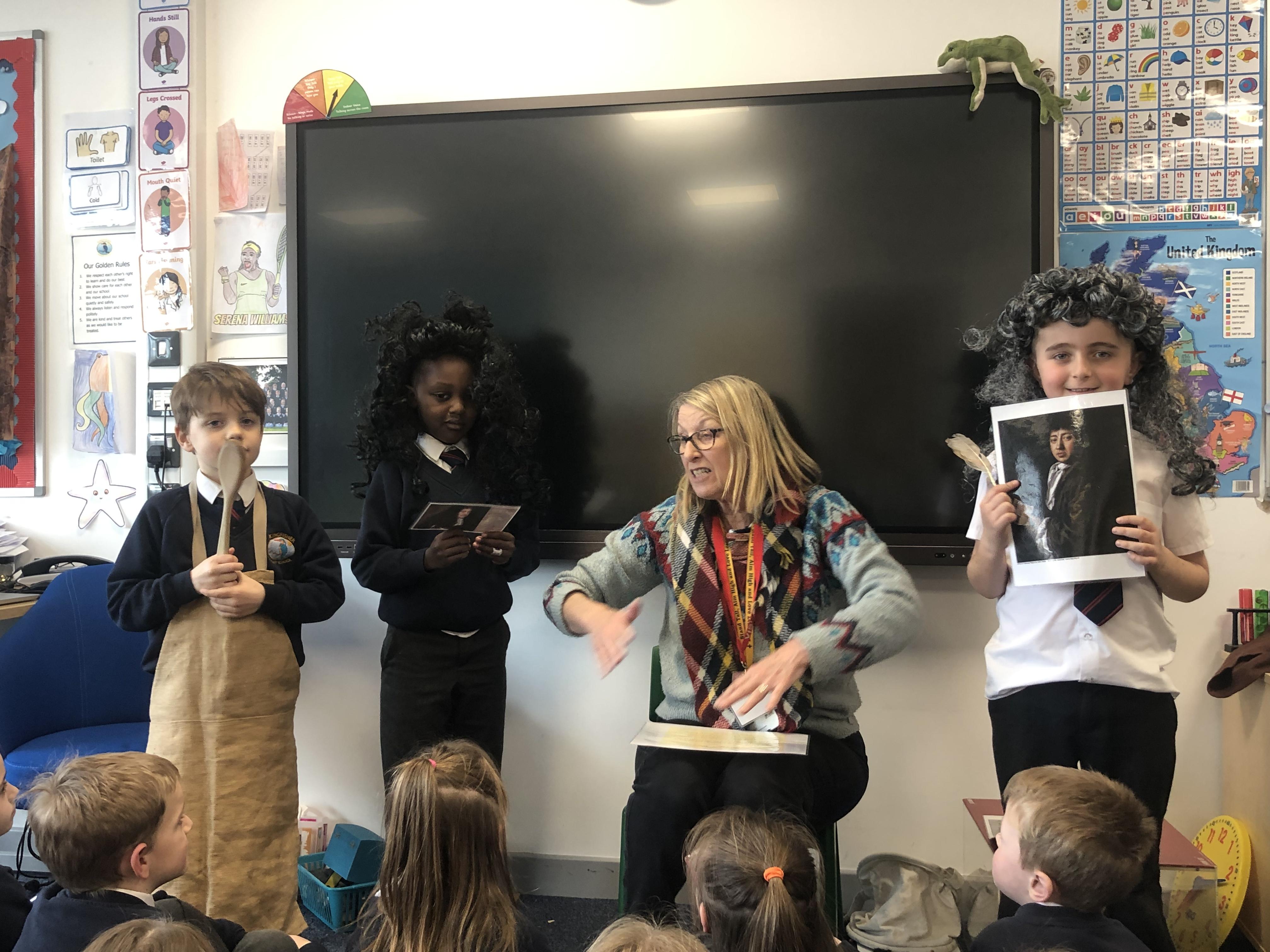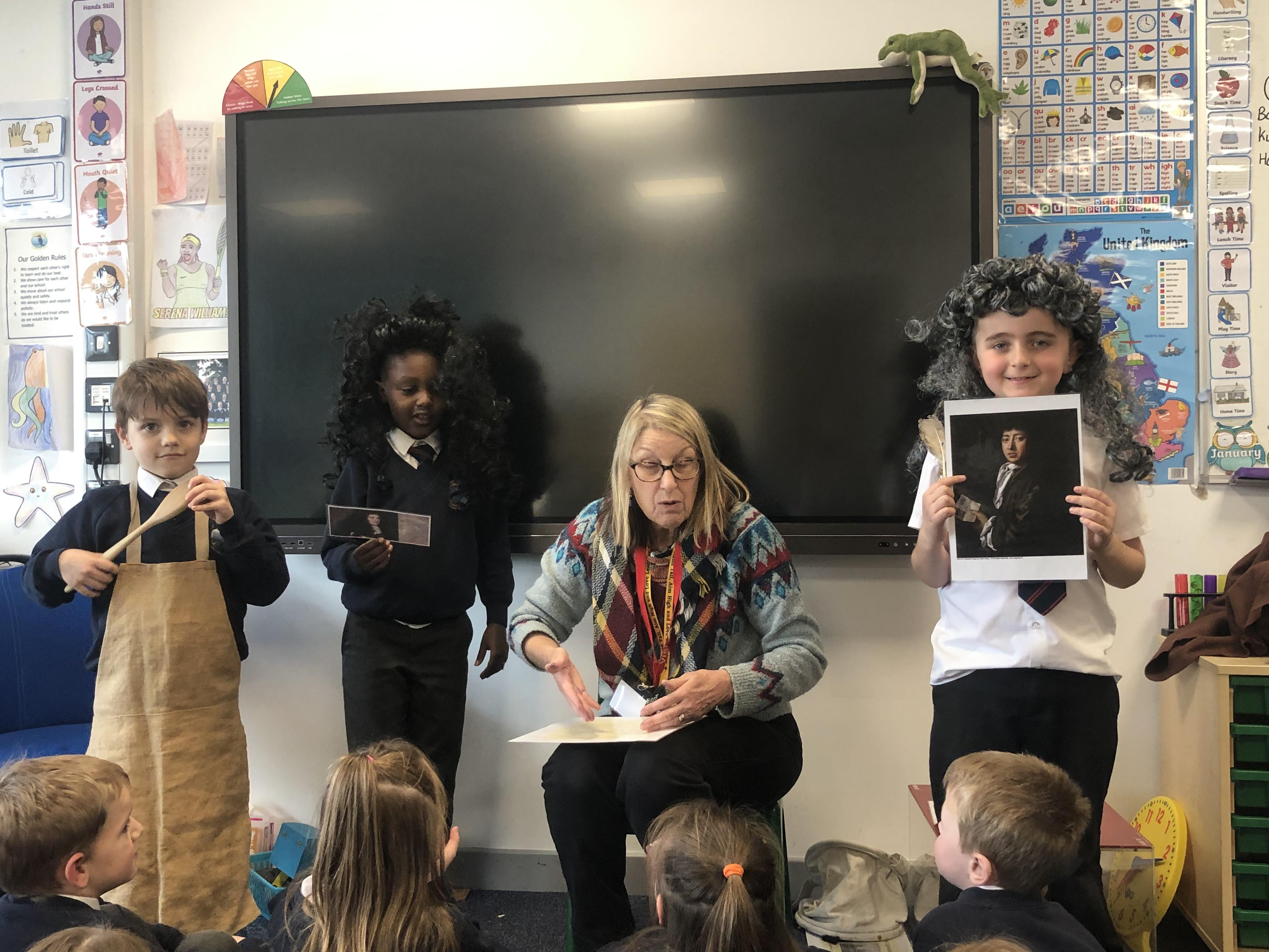 Today, the children had a visit from Sharon who works for the Somerset museum. She delivered a fantastic workshop all about the Great Fire of London. During the session, the children were able  to explore a range of historical artefacts such as fire hooks and leather buckets. Sharon also touched on the diary of Samuel Pepys and how this eye-witness account helps to inform us of the past. The children were then able to have a go at writing in the style of Samuel Pepys using a quill and ink.  The children also had a lot of fun dressing up in the costumes and pretending to put the fire out with buckets and water.