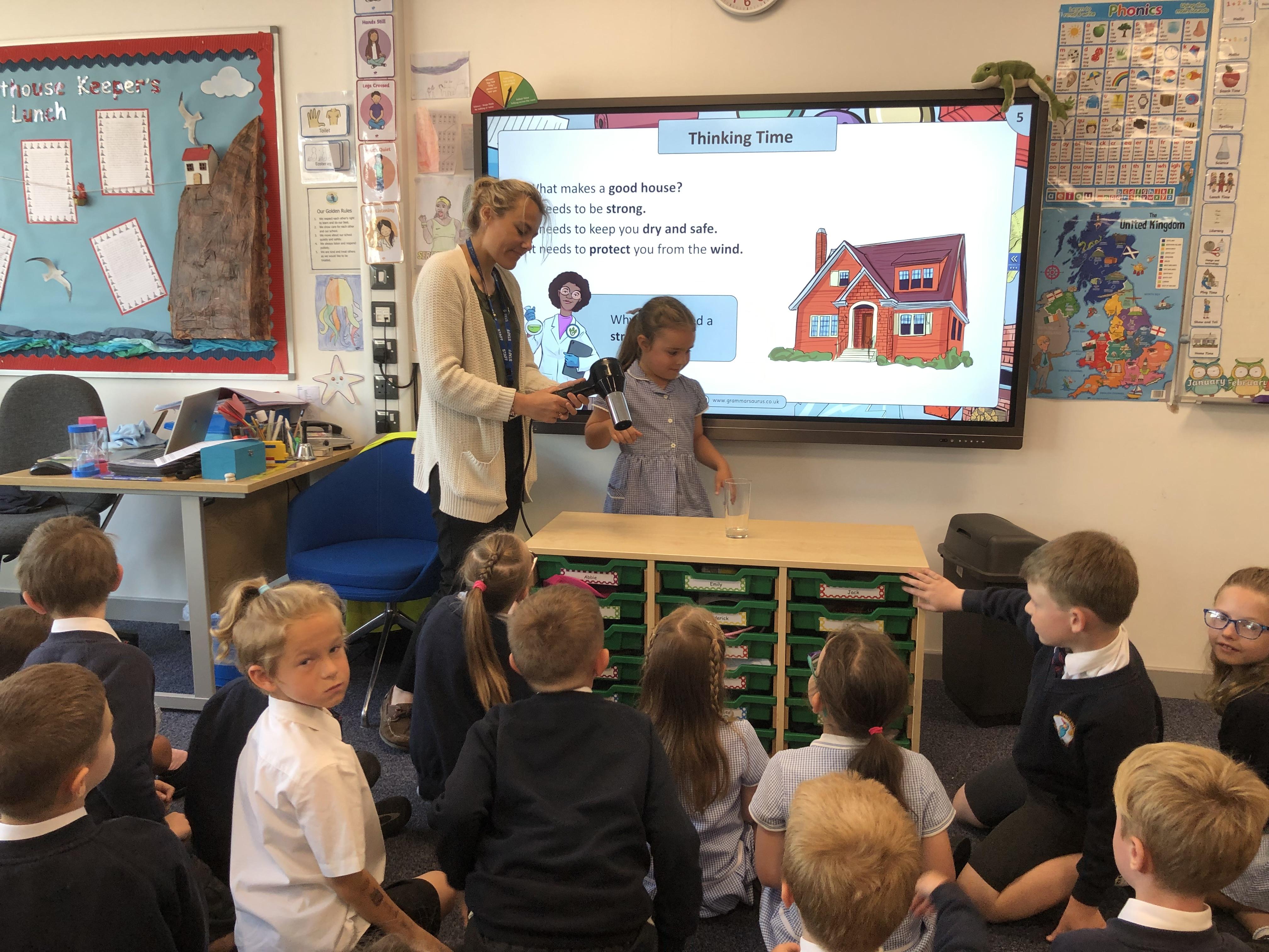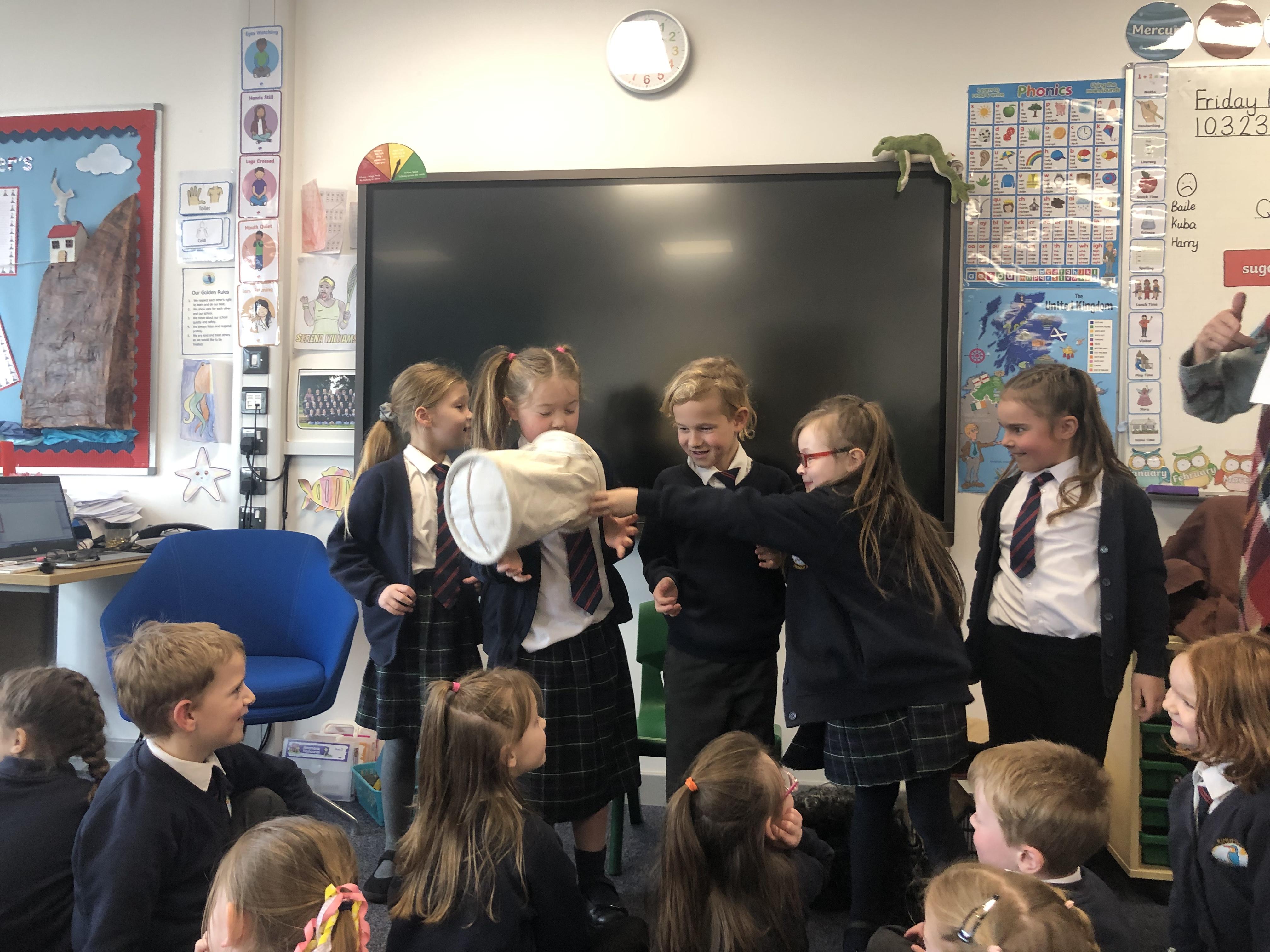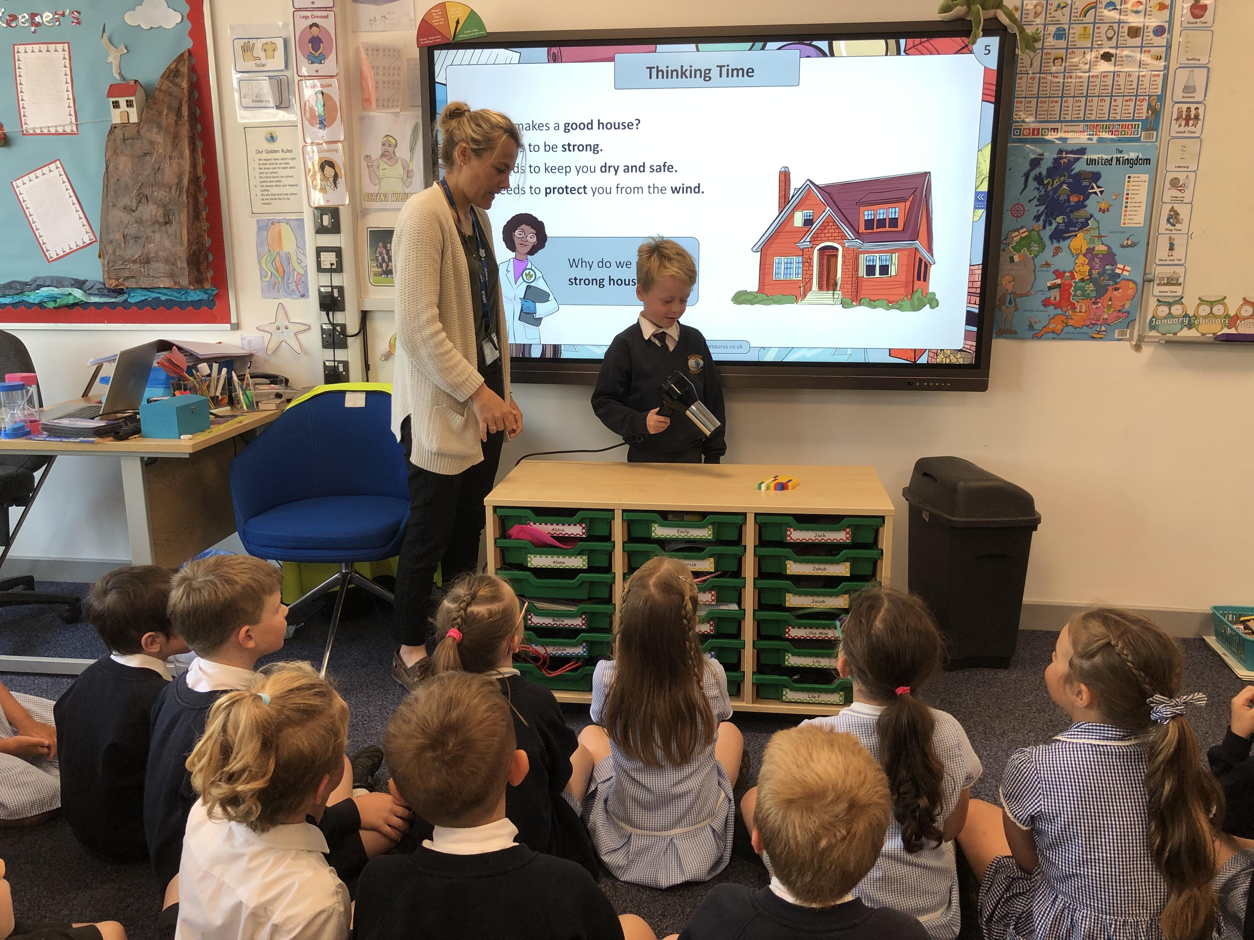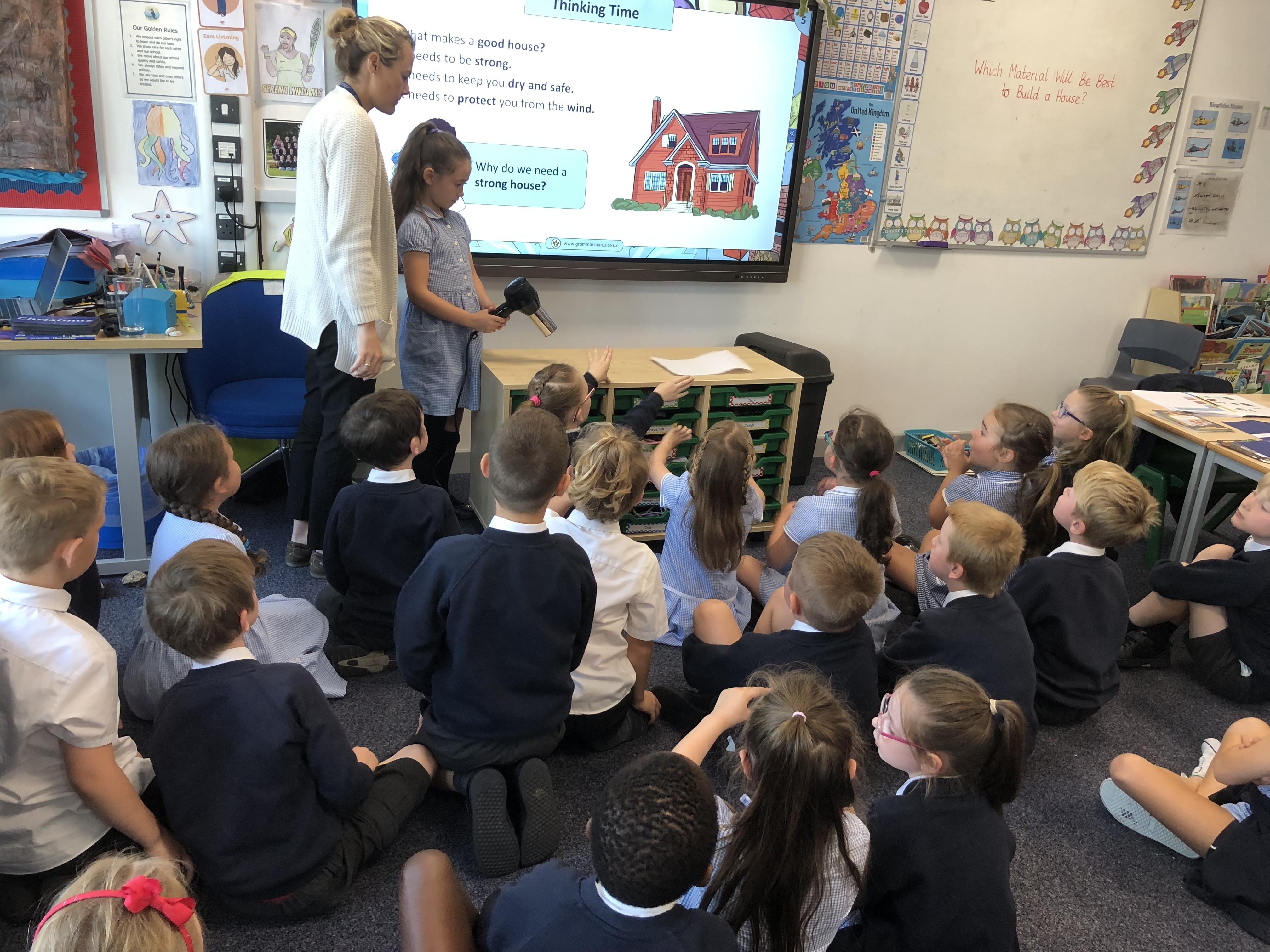 In Science today, we were exploring a range of different materials and investigated which material would be the best to build a house from and protect the Three Little Pigs from the Big Bad Wolf! We investigated each material’s ability to keep the Three Little Pigs dry and its ability to withstand the huffs and puffs of the Big Bad Wolf.