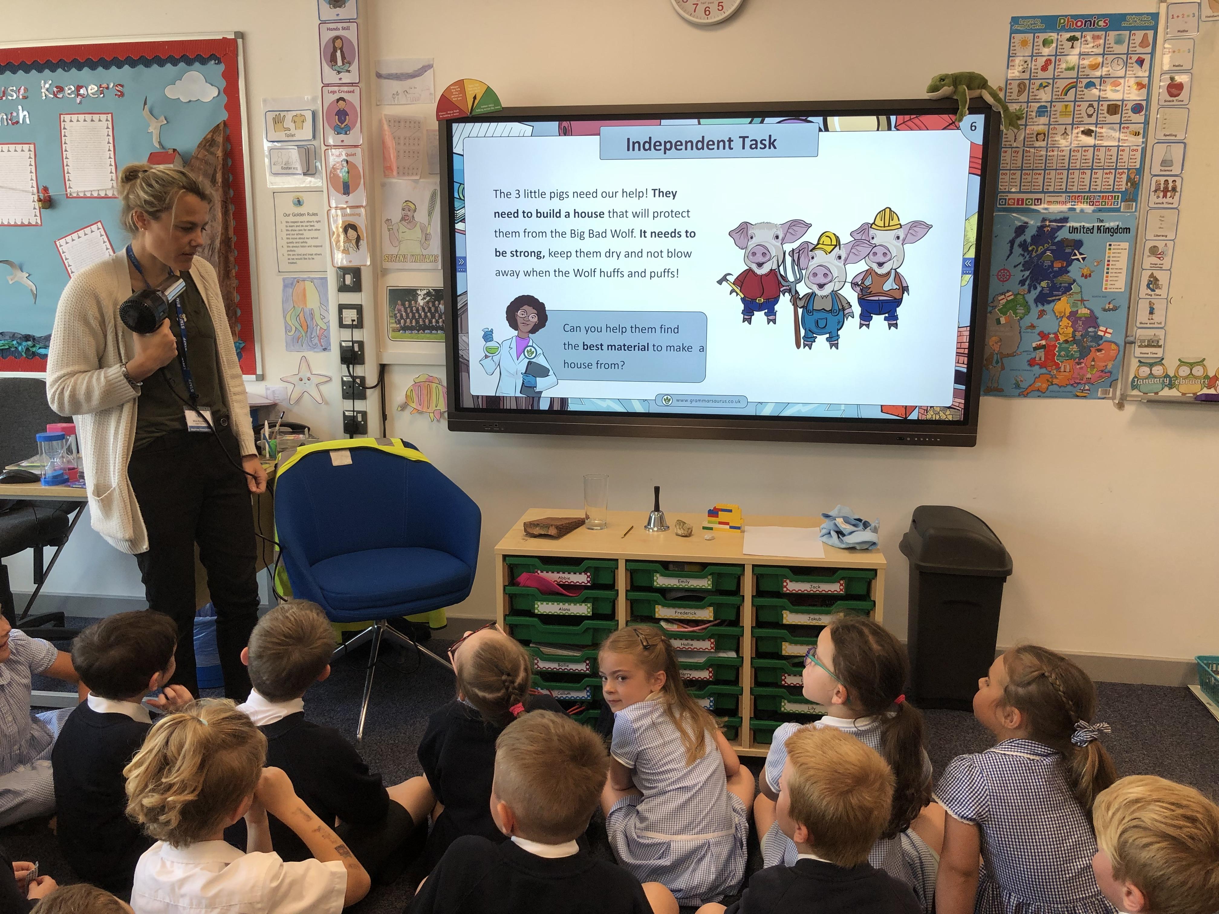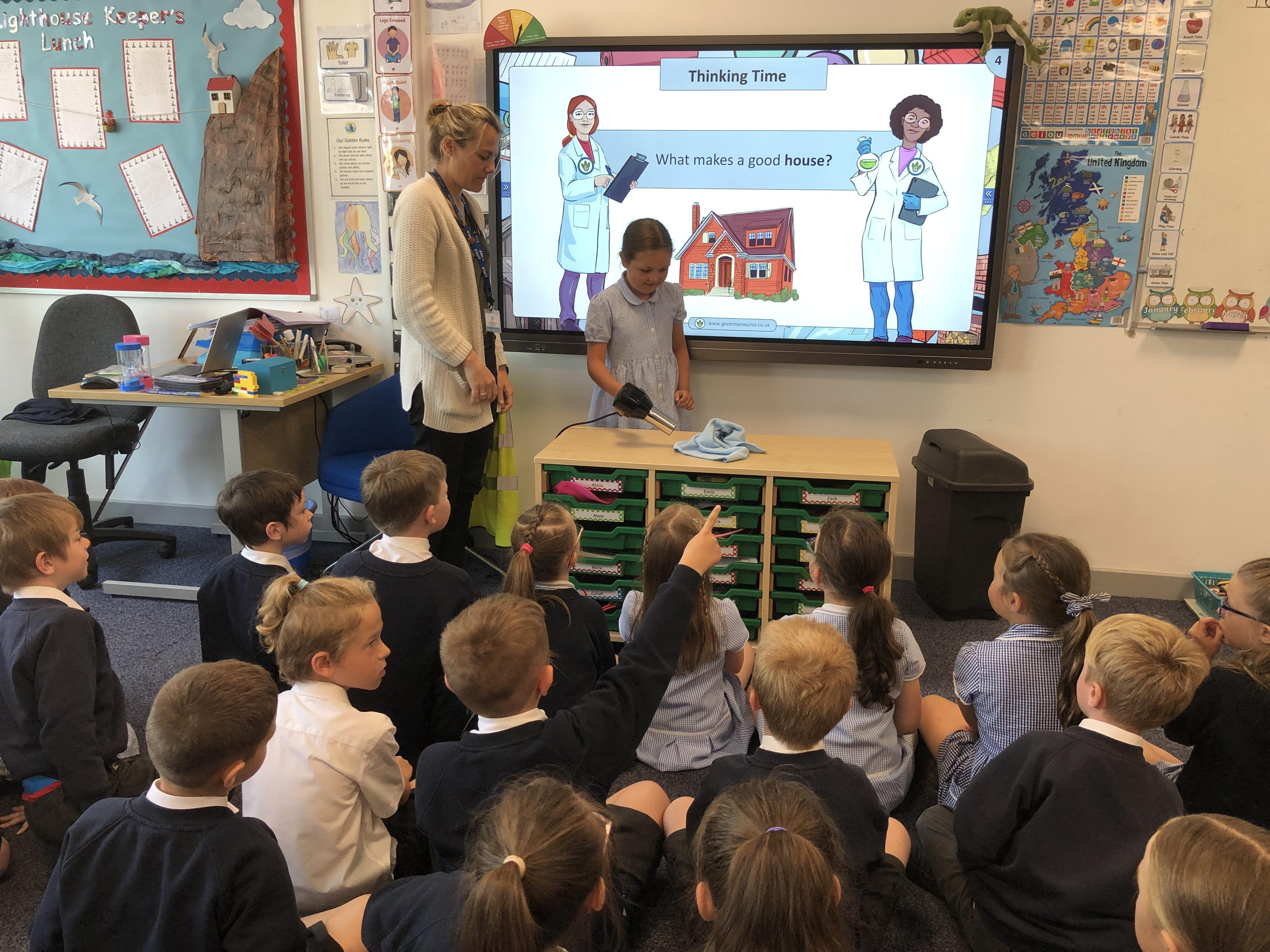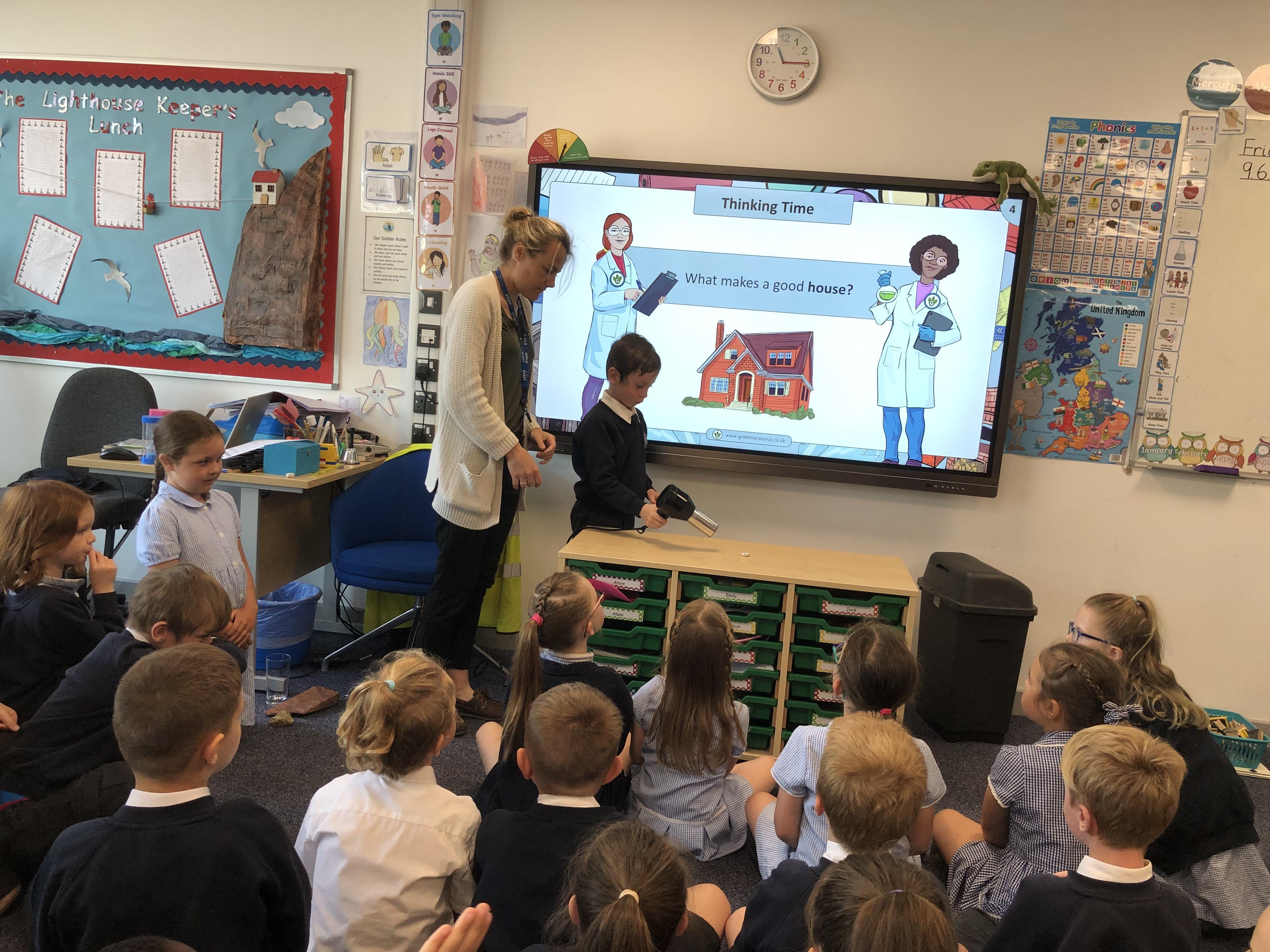 In Science today, we were exploring a range of different materials and investigated which material would be the best to build a house from and protect the Three Little Pigs from the Big Bad Wolf! We investigated each material’s ability to keep the Three Little Pigs dry and its ability to withstand the huffs and puffs of the Big Bad Wolf.