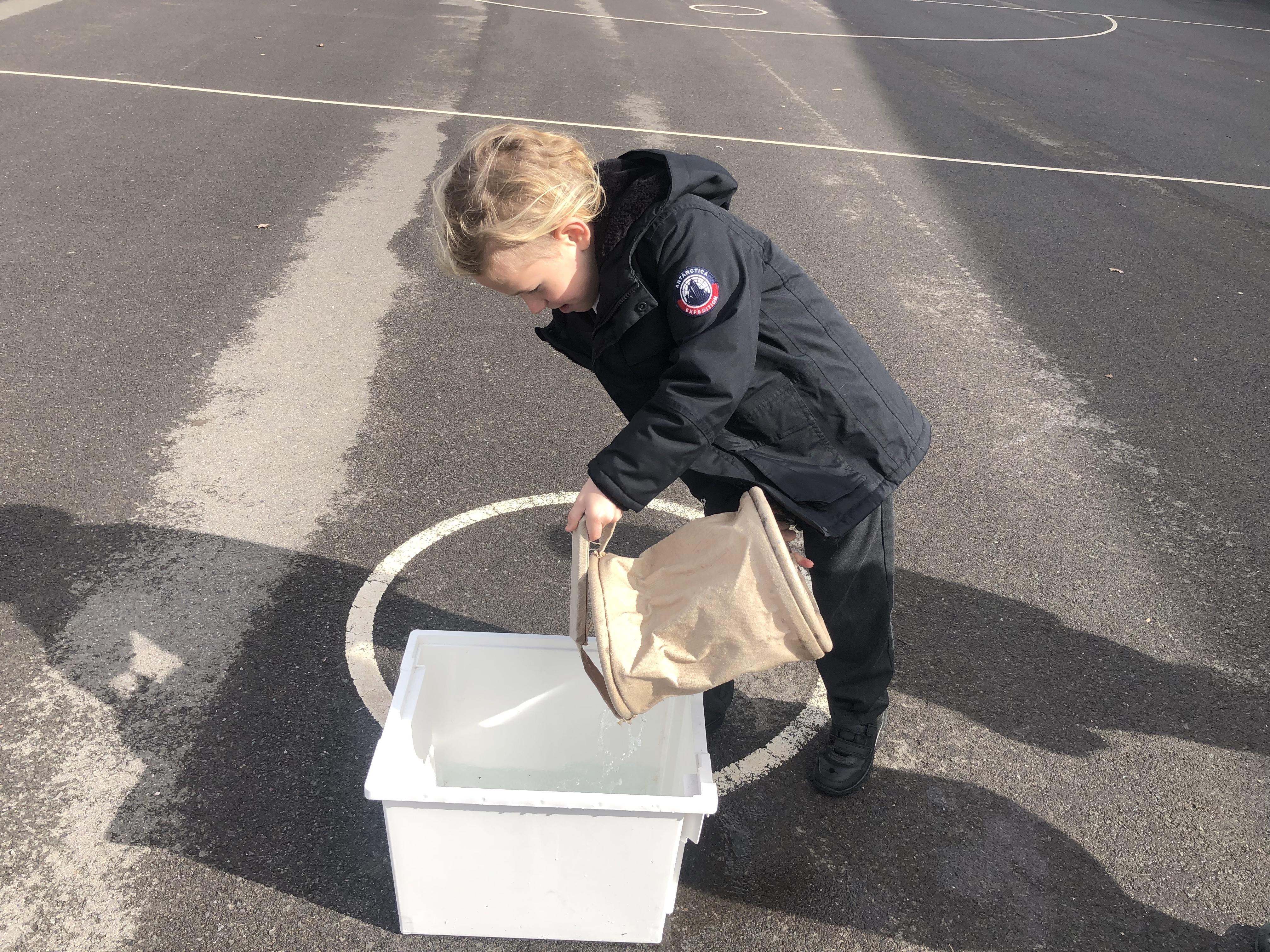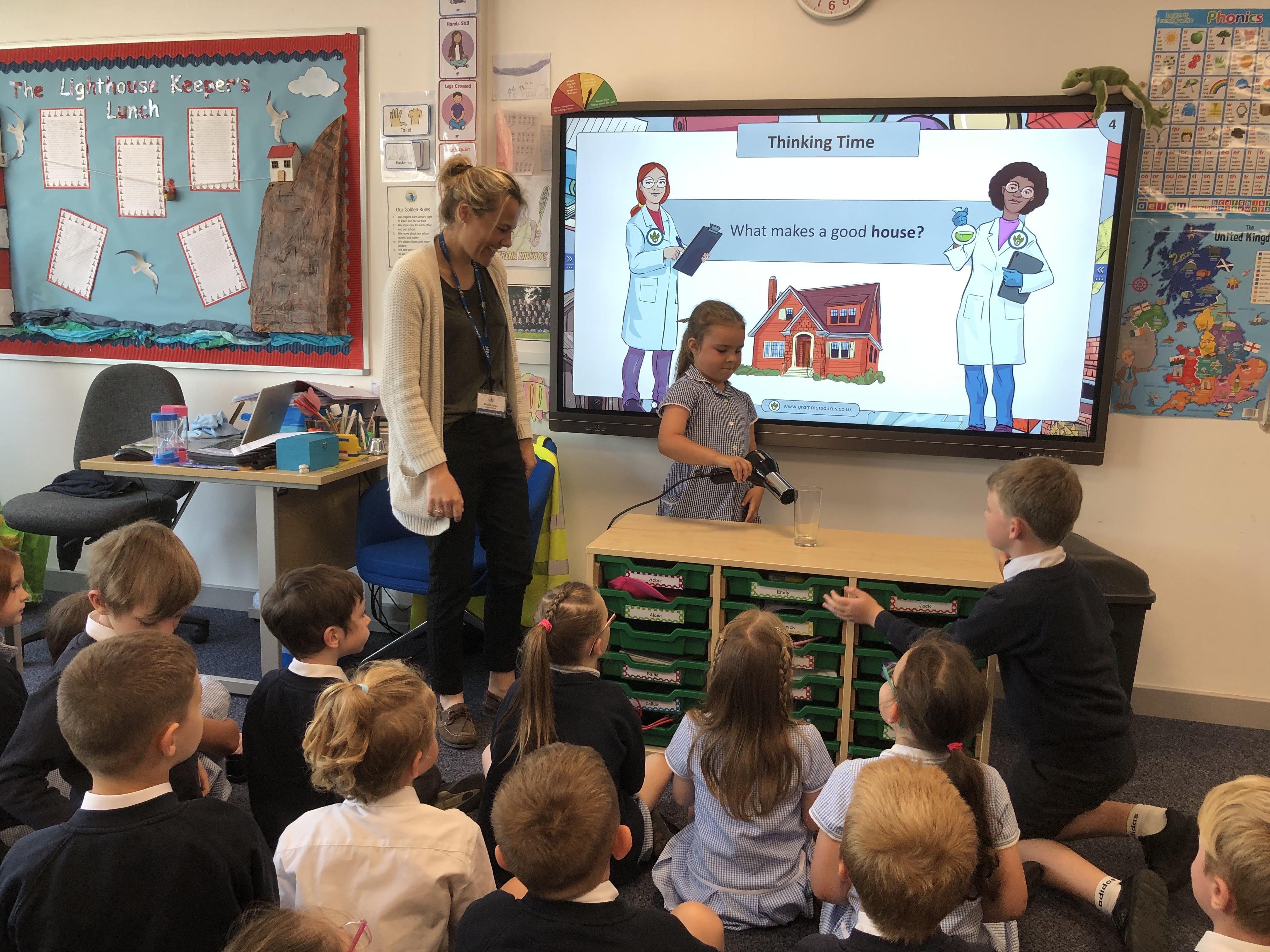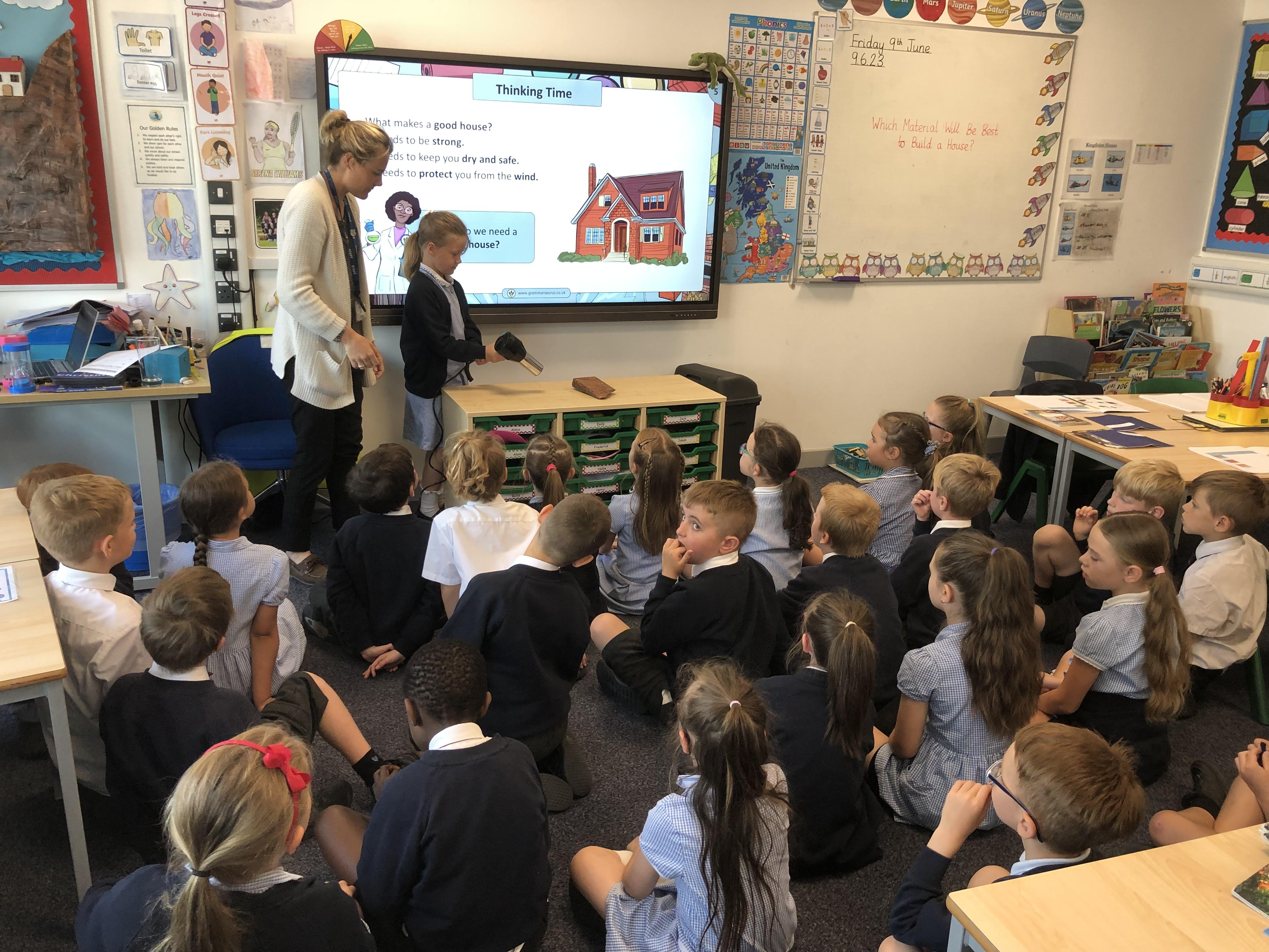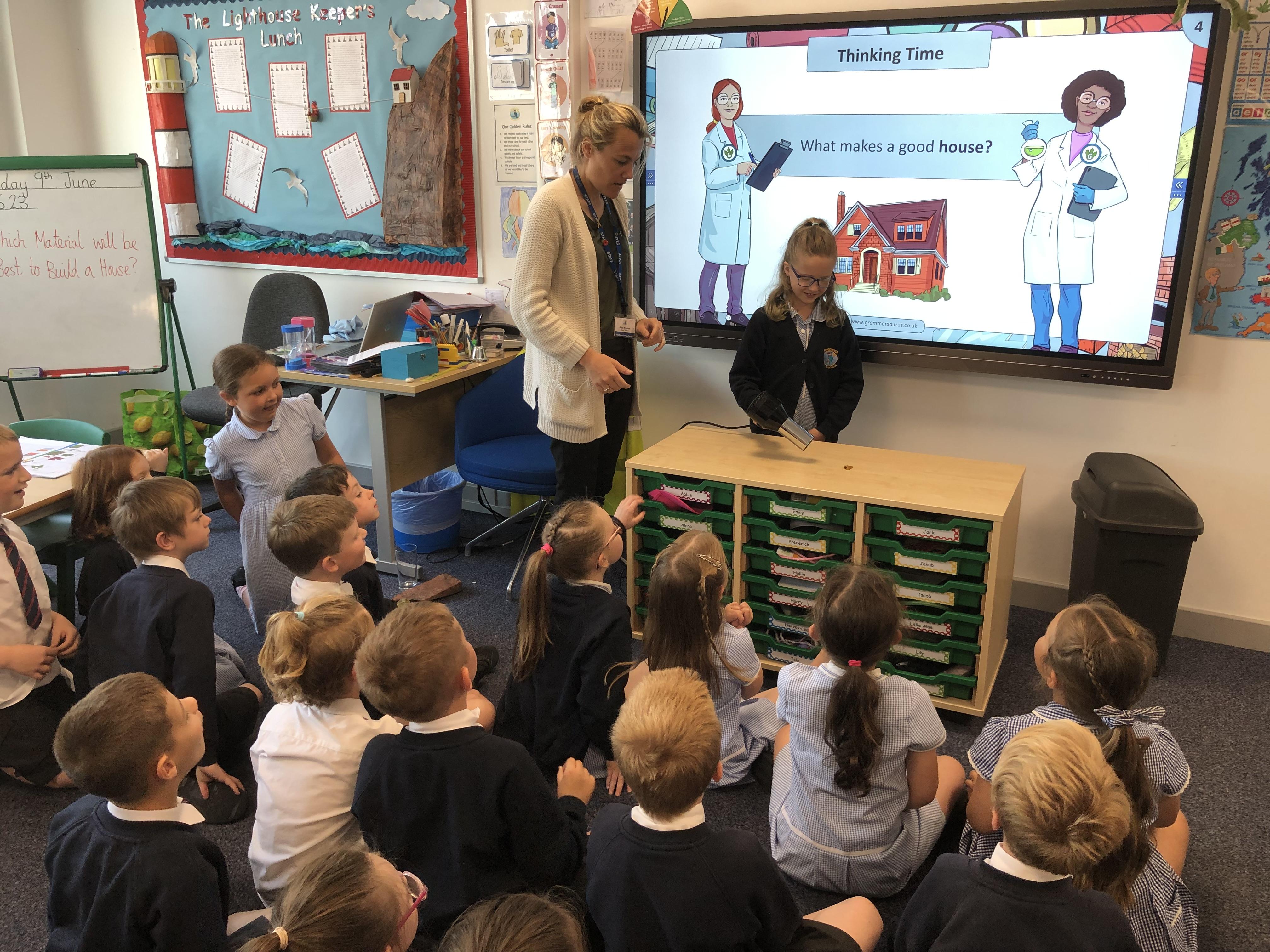 In Science today, we were exploring a range of different materials and investigated which material would be the best to build a house from and protect the Three Little Pigs from the Big Bad Wolf! We investigated each material’s ability to keep the Three Little Pigs dry and its ability to withstand the huffs and puffs of the Big Bad Wolf.
