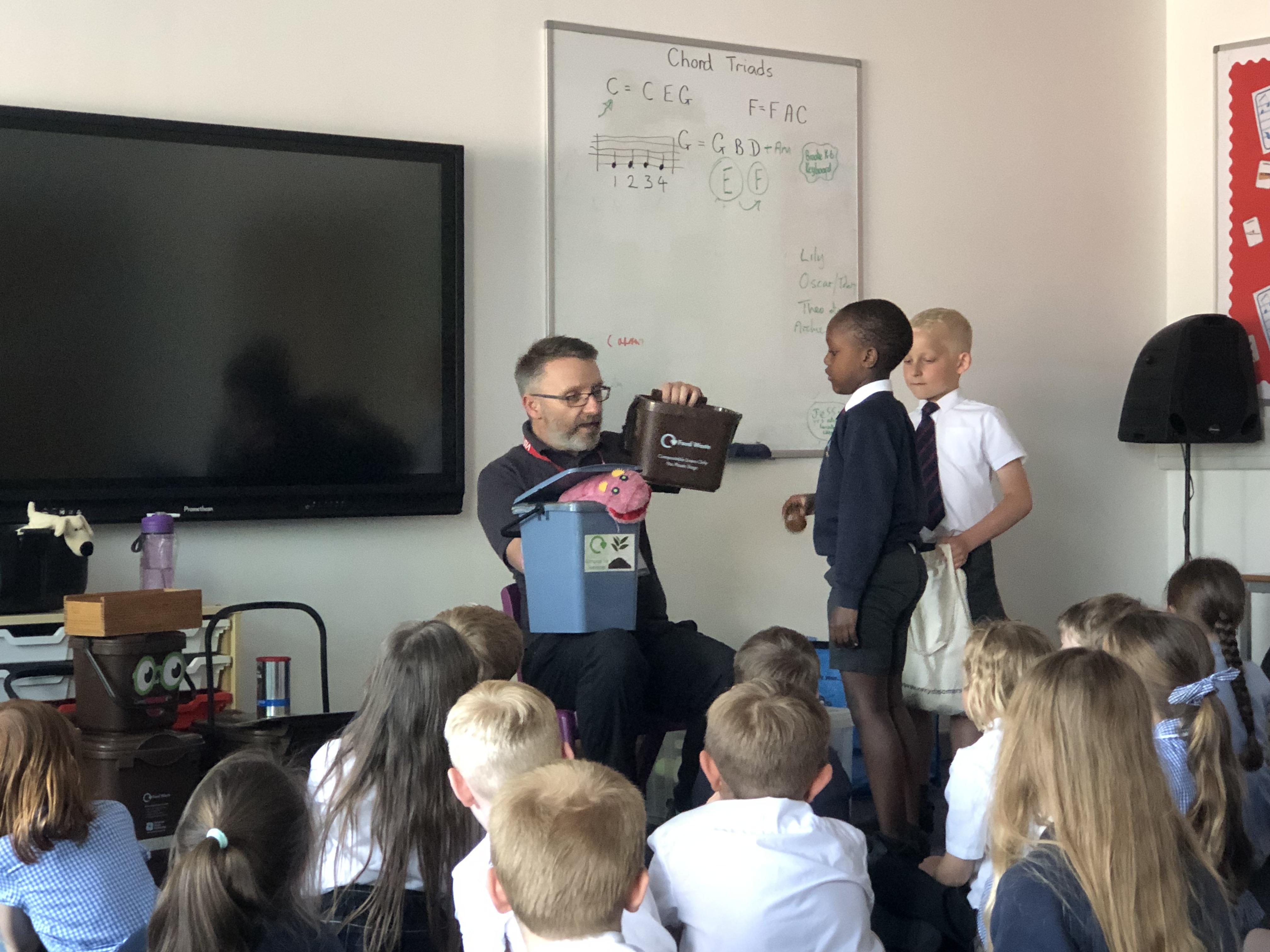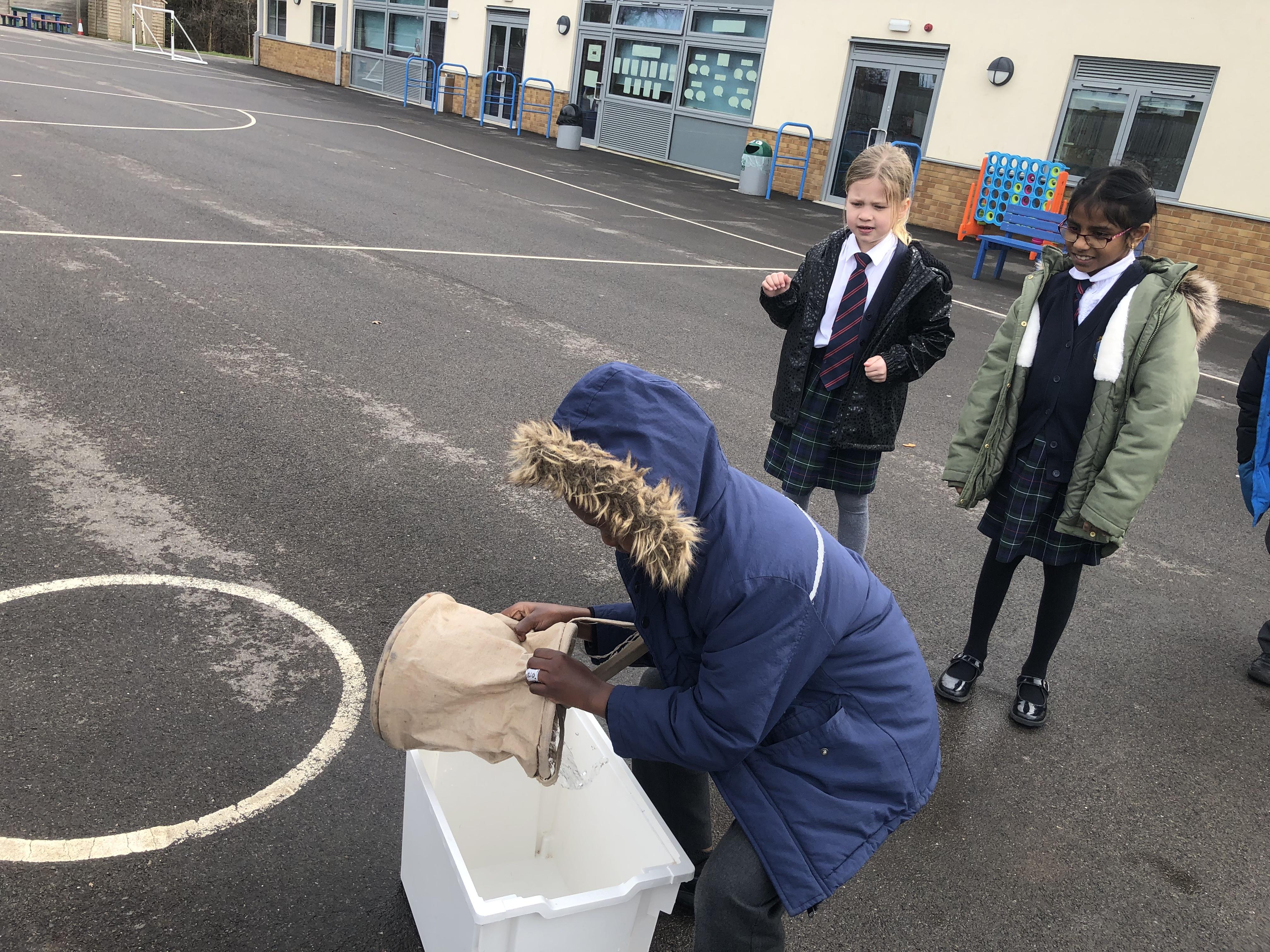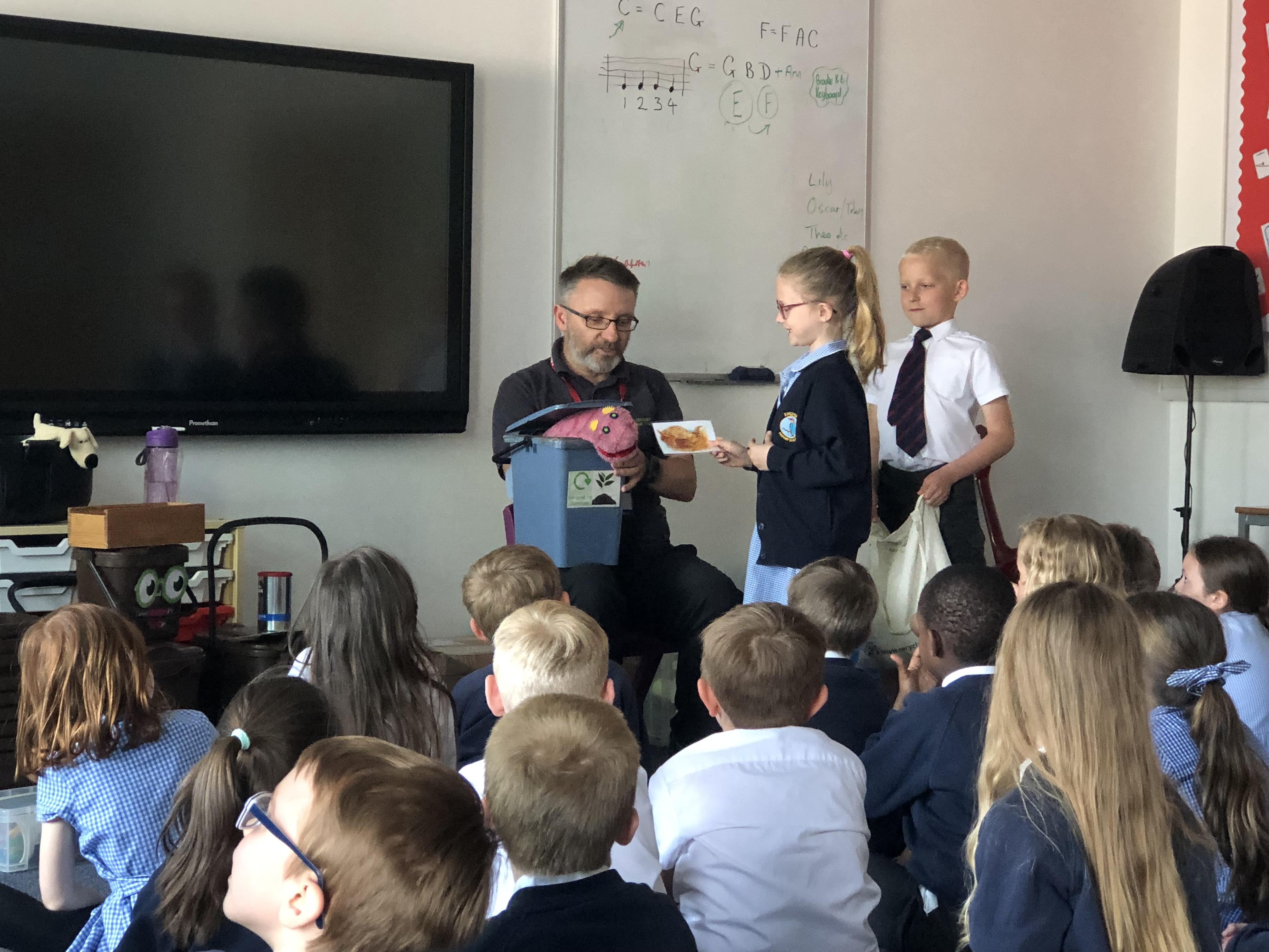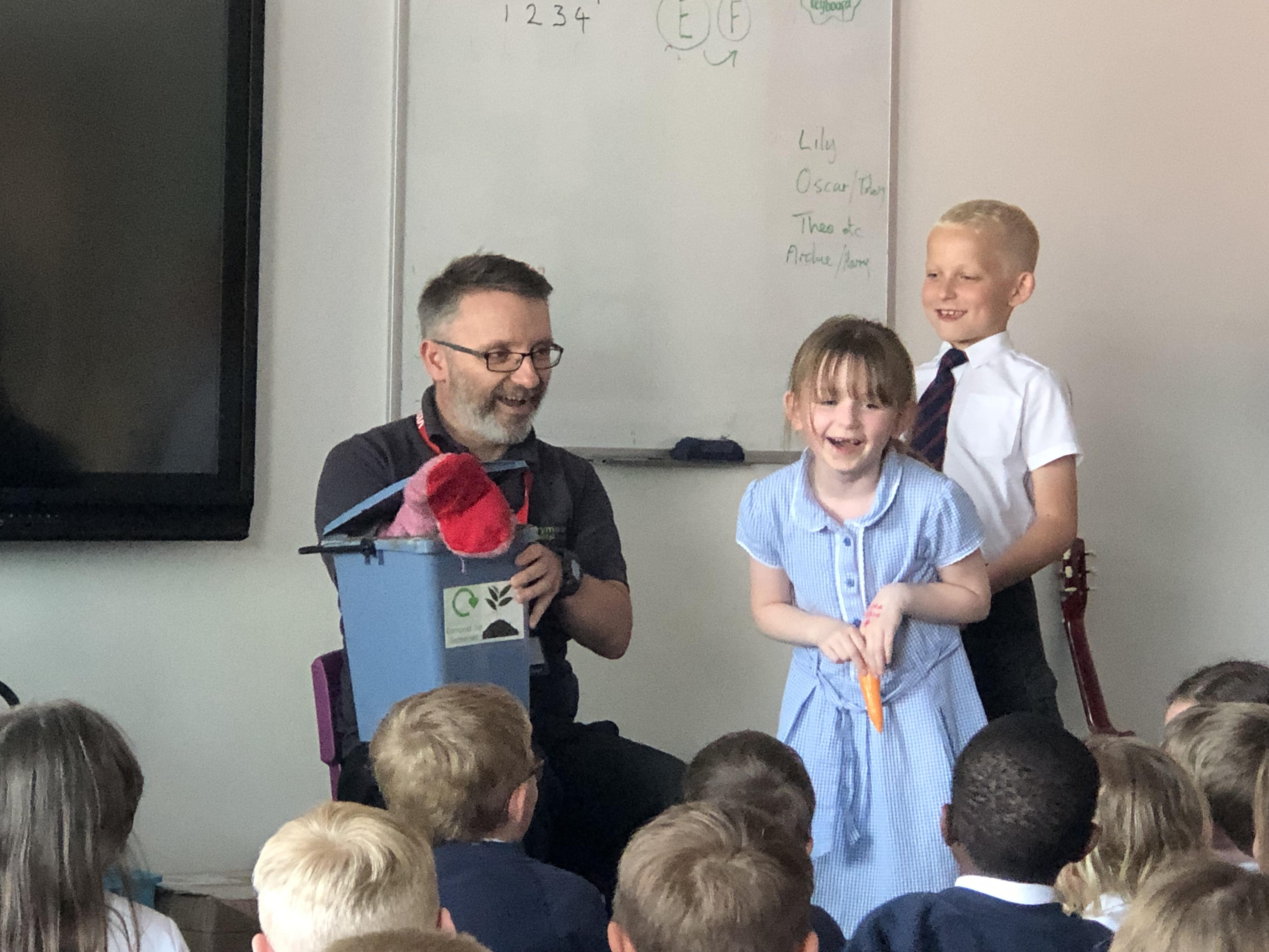 Today, we were very lucky to have a wonderful workshop with Gary from Carymoor who talked to the children all about composting. The children had an absolutely brilliant time participating in a range of engaging activities such as picking up ‘pretend’ worms using giant tweezers and planting their own cress seeds in their own DIY pots. They also thoroughly enjoyed feeding the worm in the compost bin with items that can be composted.