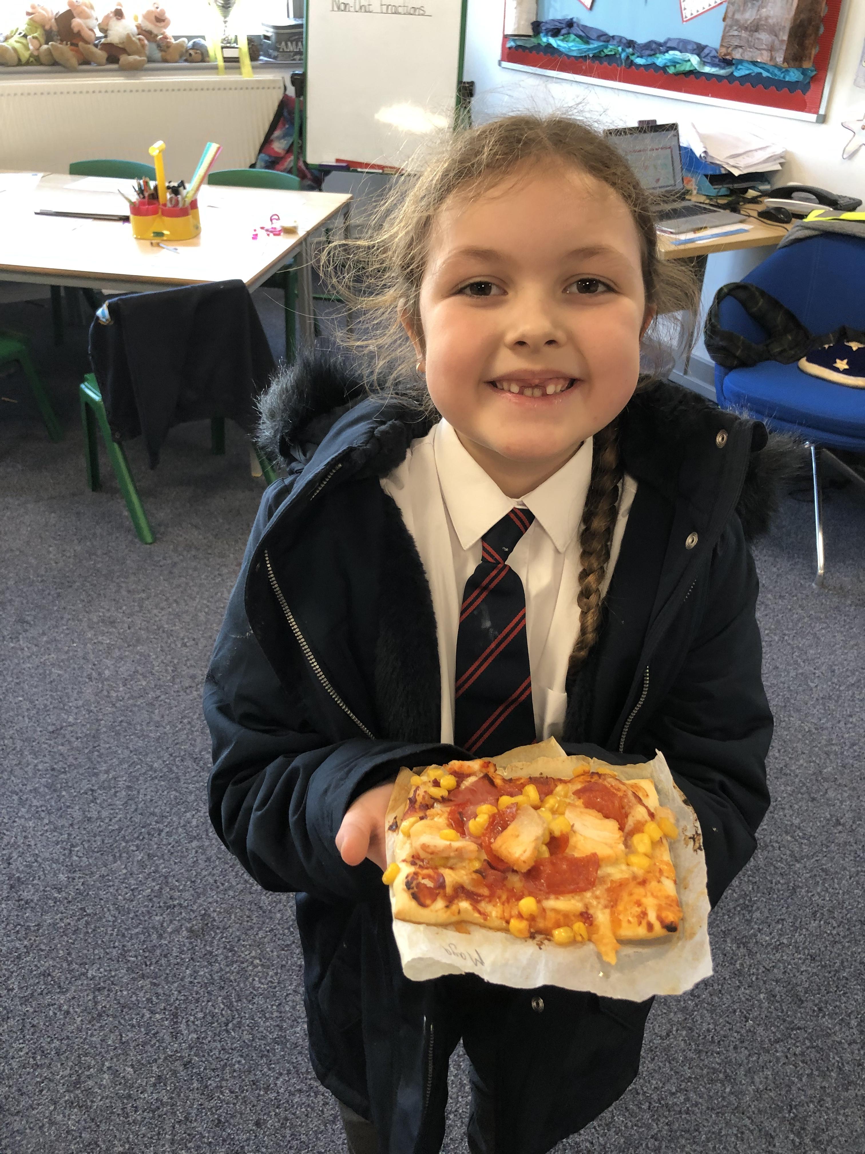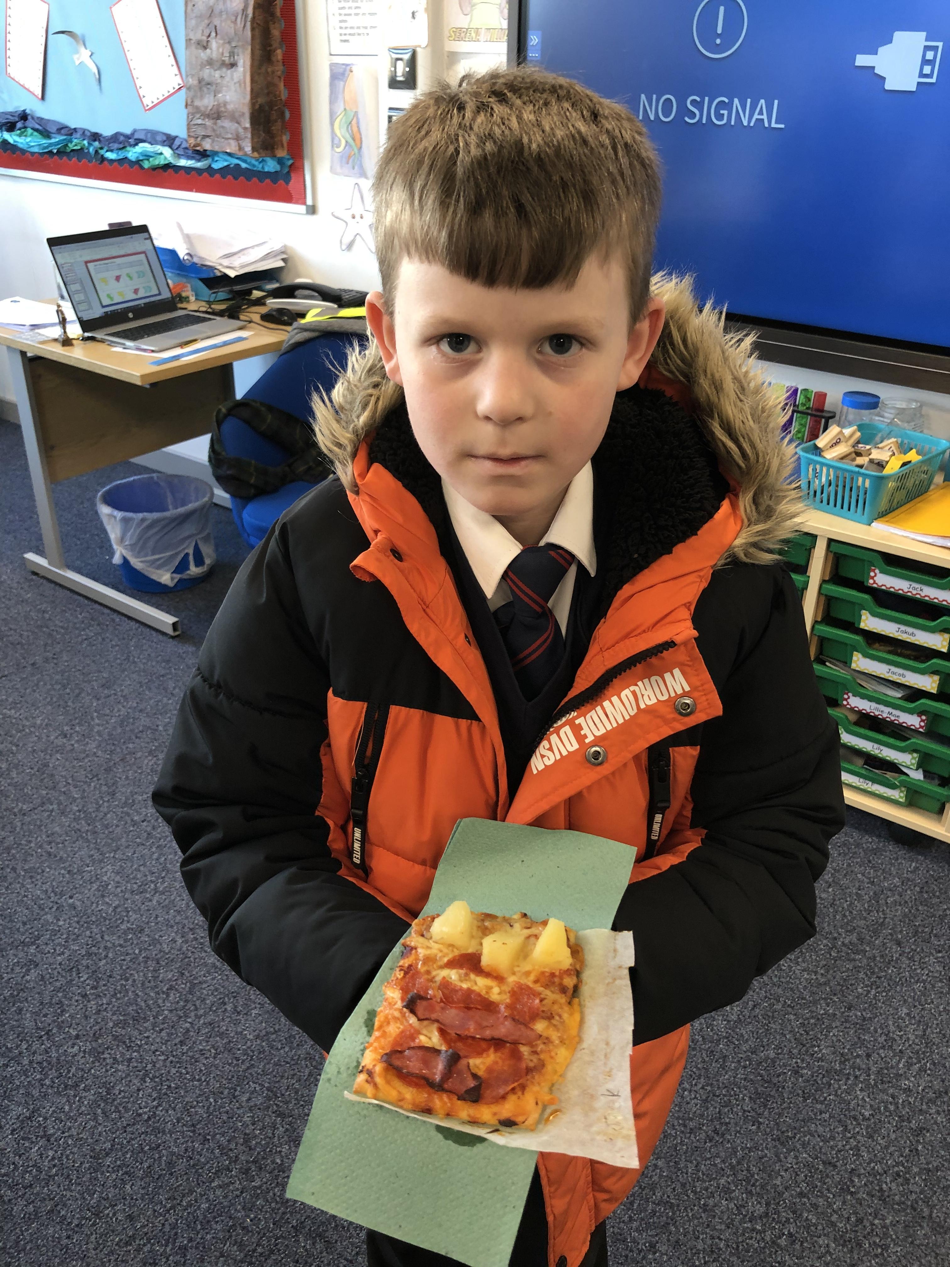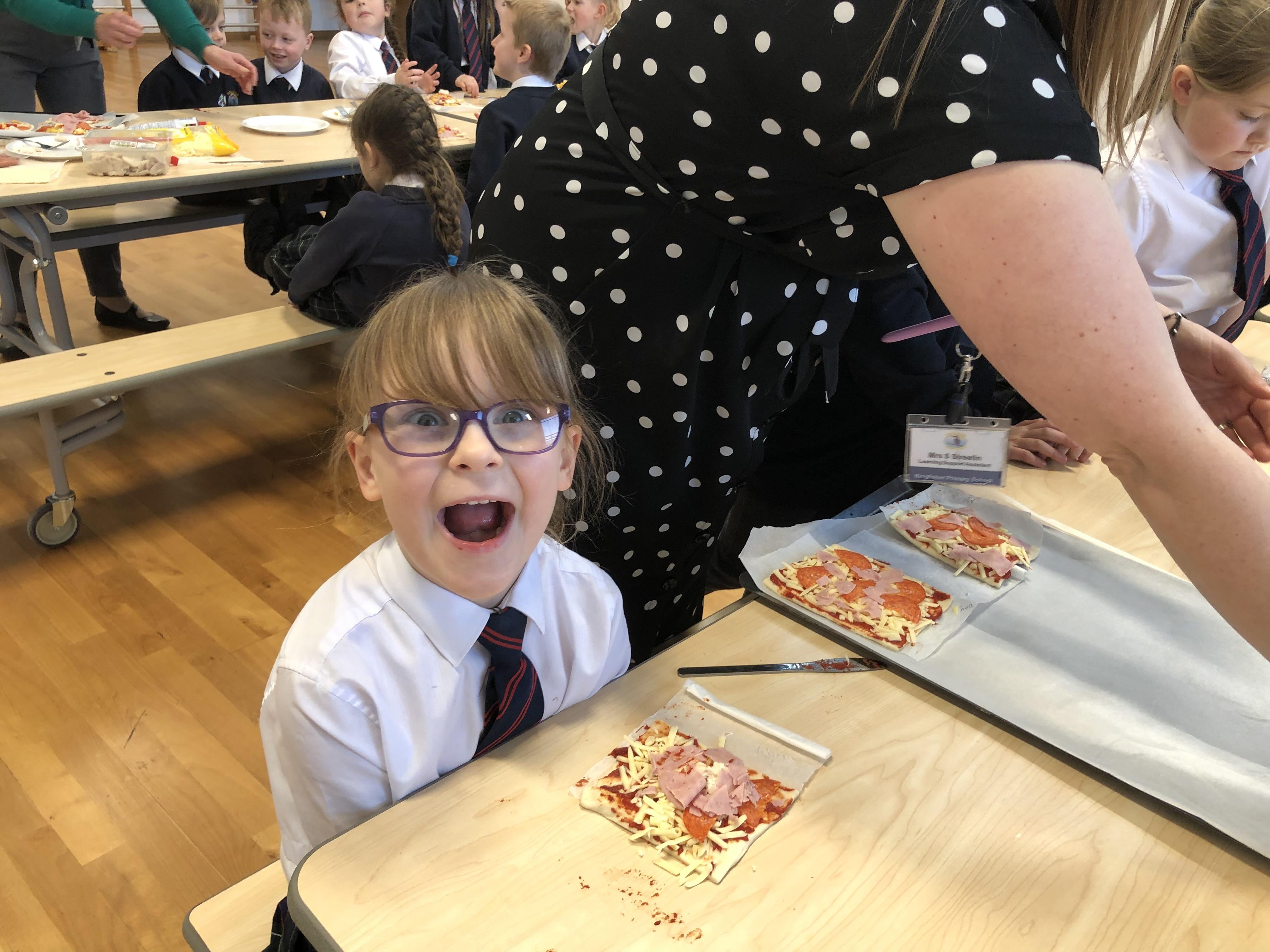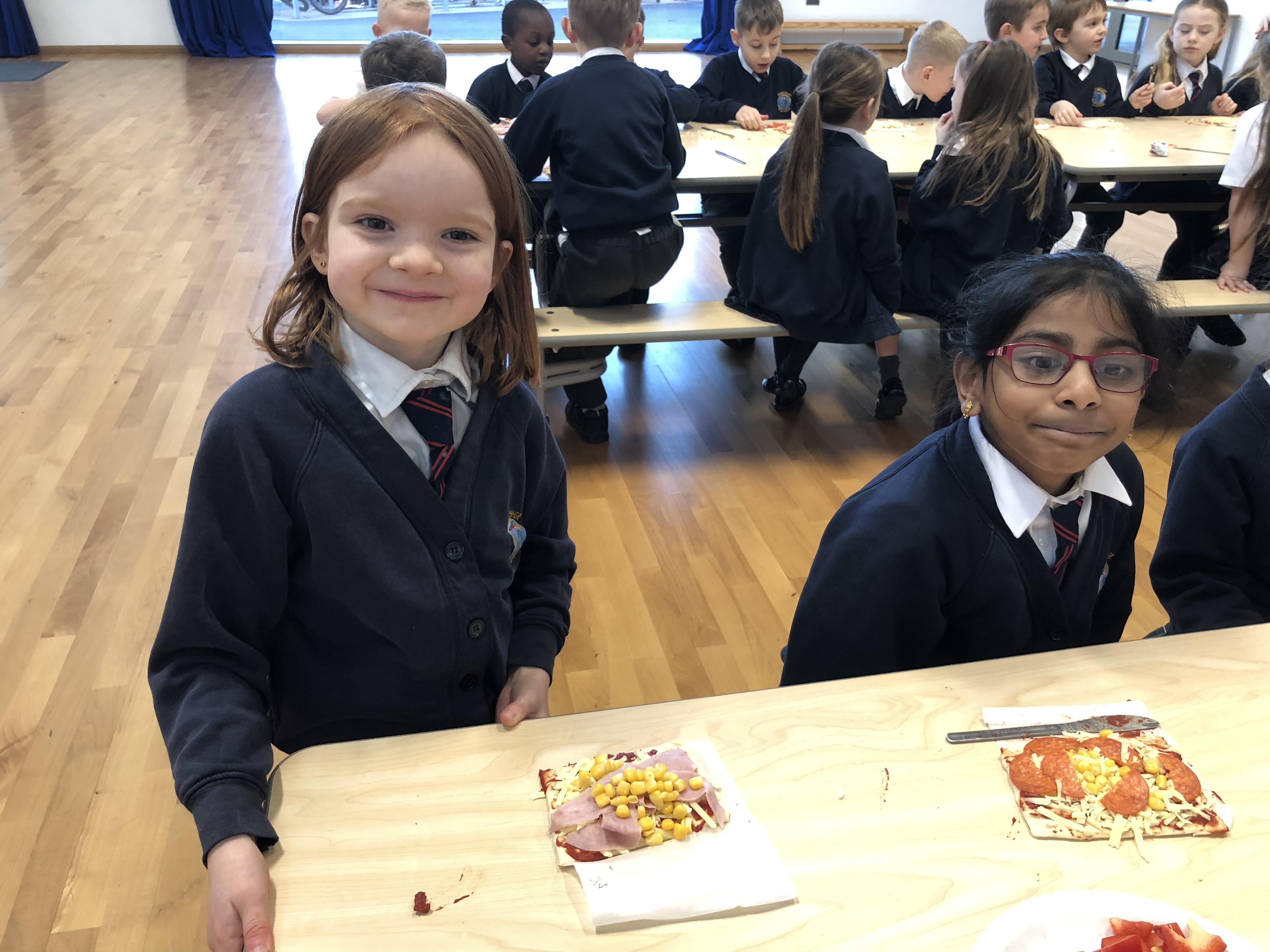 As part of our DT project this term, the children were tasked with designing and making their own ‘perfect pizza’. Prior to making their pizza, the children learnt about the different food groups and were able to classify them based on their characteristics. They understood what food we should eat lots of and the foods that we should try to eat less of. The children were challenged to include at least one healthy food on their pizza. They were all delighted with their finished products and thoroughly enjoyed eating them. Miss Jones was very jealous!
