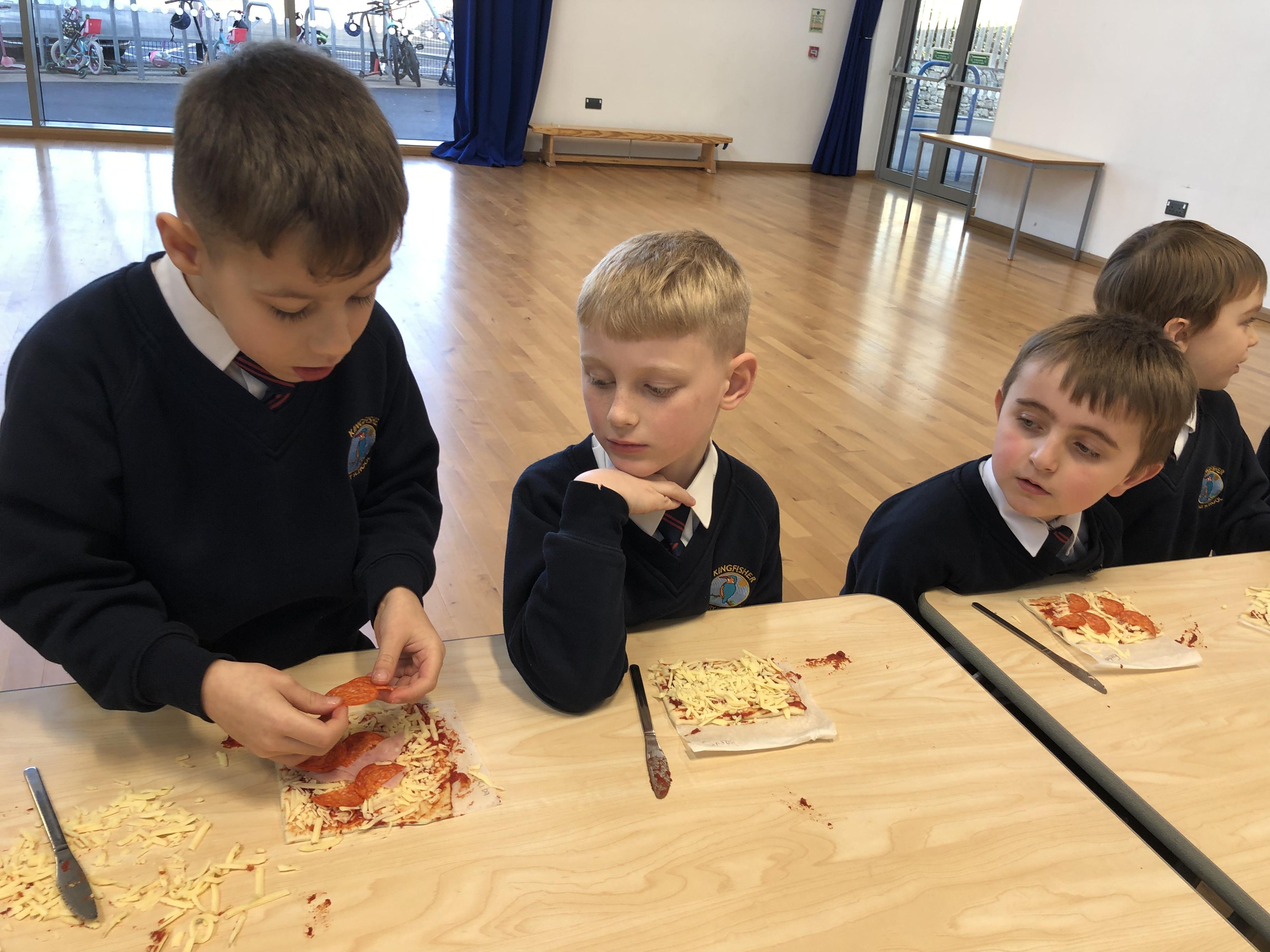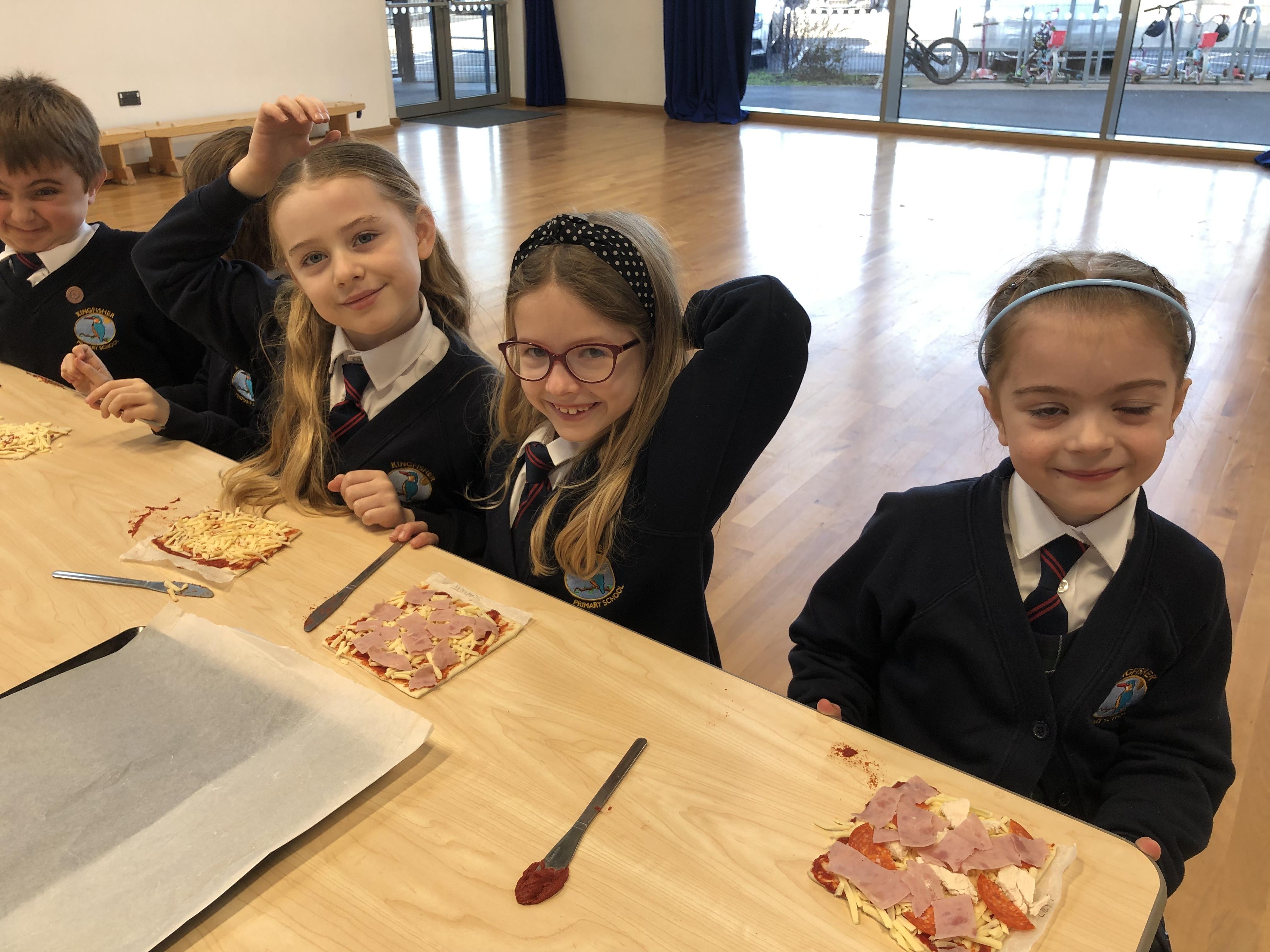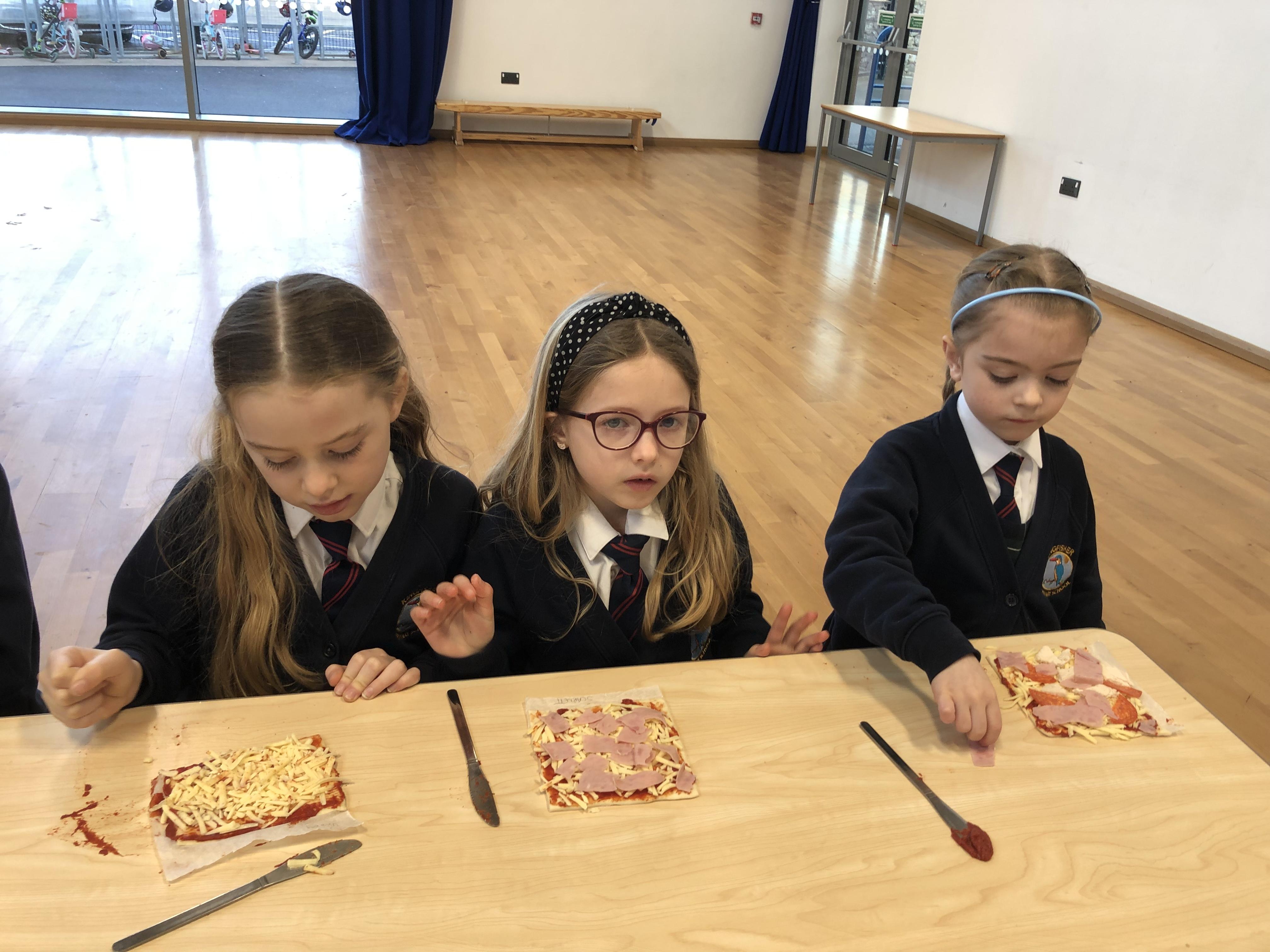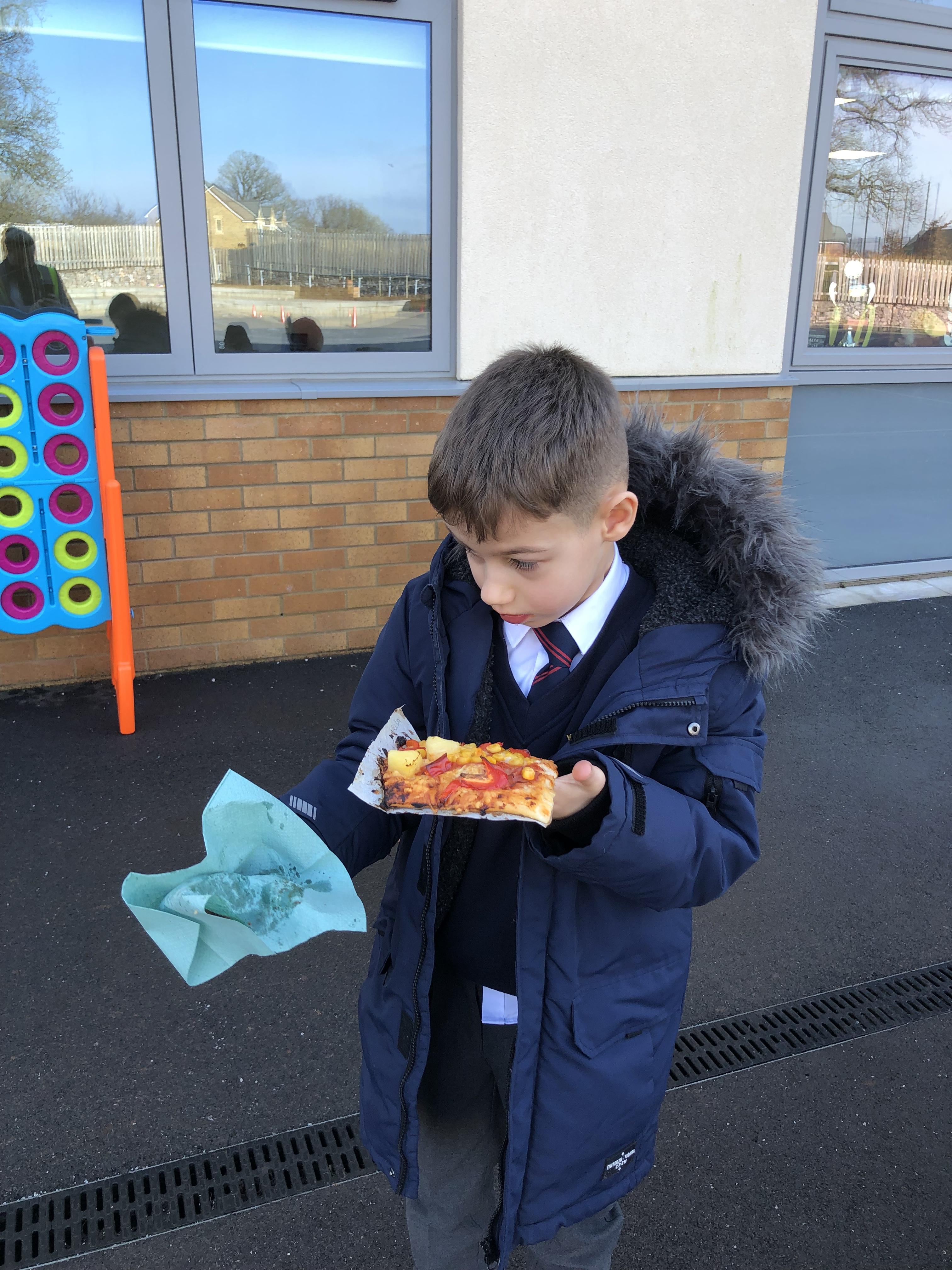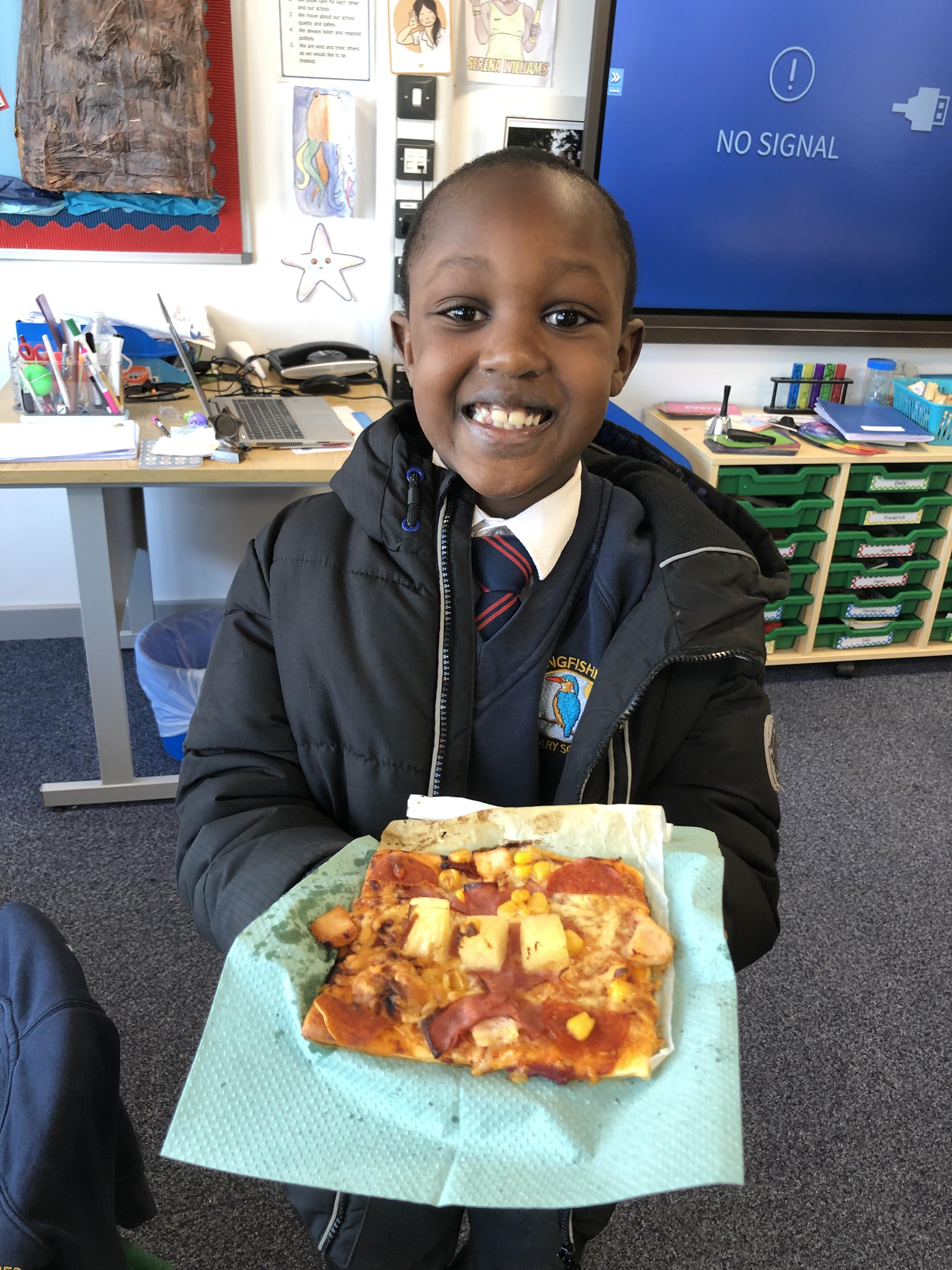 As part of our DT project this term, the children were tasked with designing and making their own ‘perfect pizza’. Prior to making their pizza, the children learnt about the different food groups and were able to classify them based on their characteristics. They understood what food we should eat lots of and the foods that we should try to eat less of. The children were challenged to include at least one healthy food on their pizza. They were all delighted with their finished products and thoroughly enjoyed eating them. Miss Jones was very jealous!