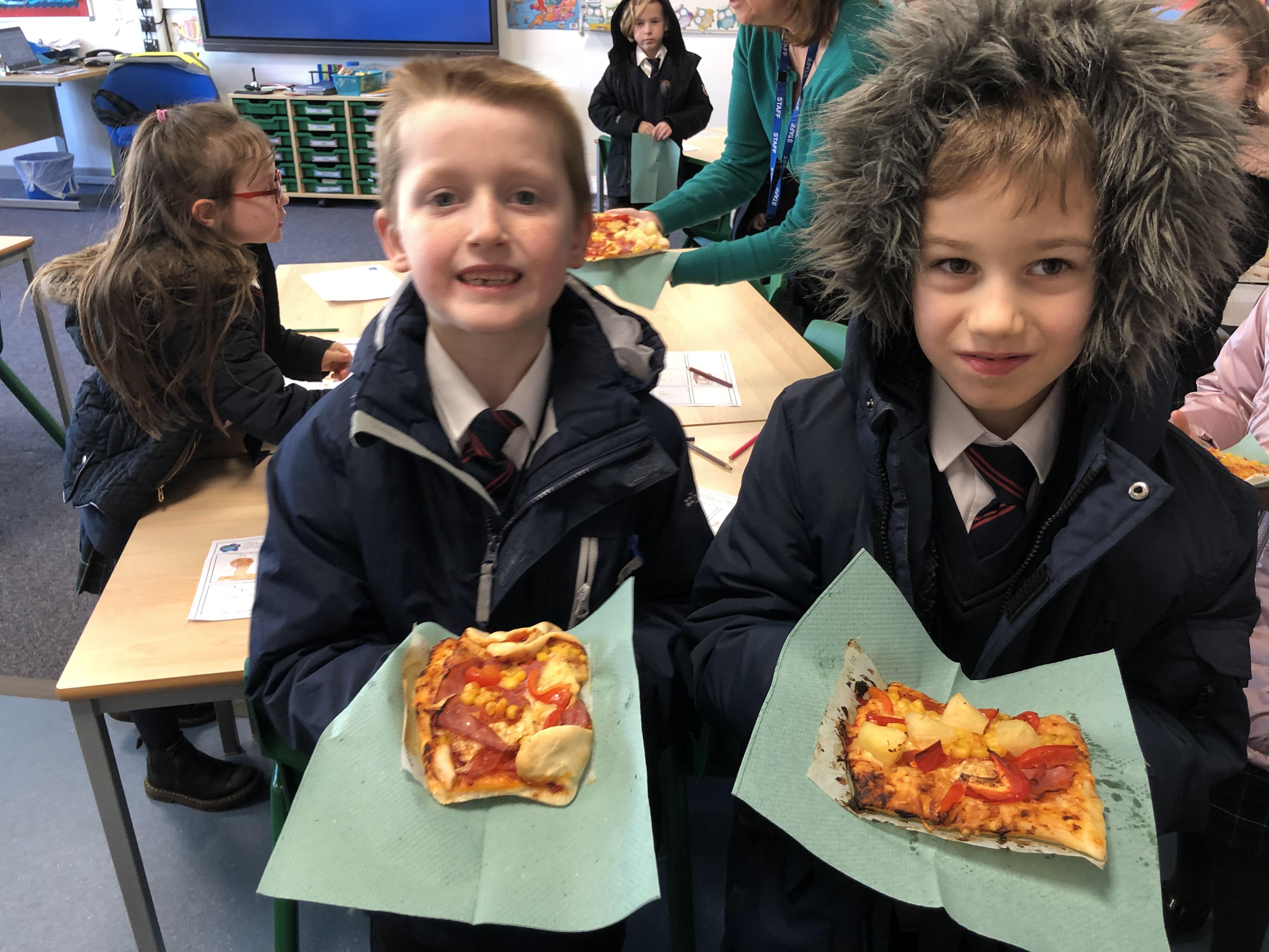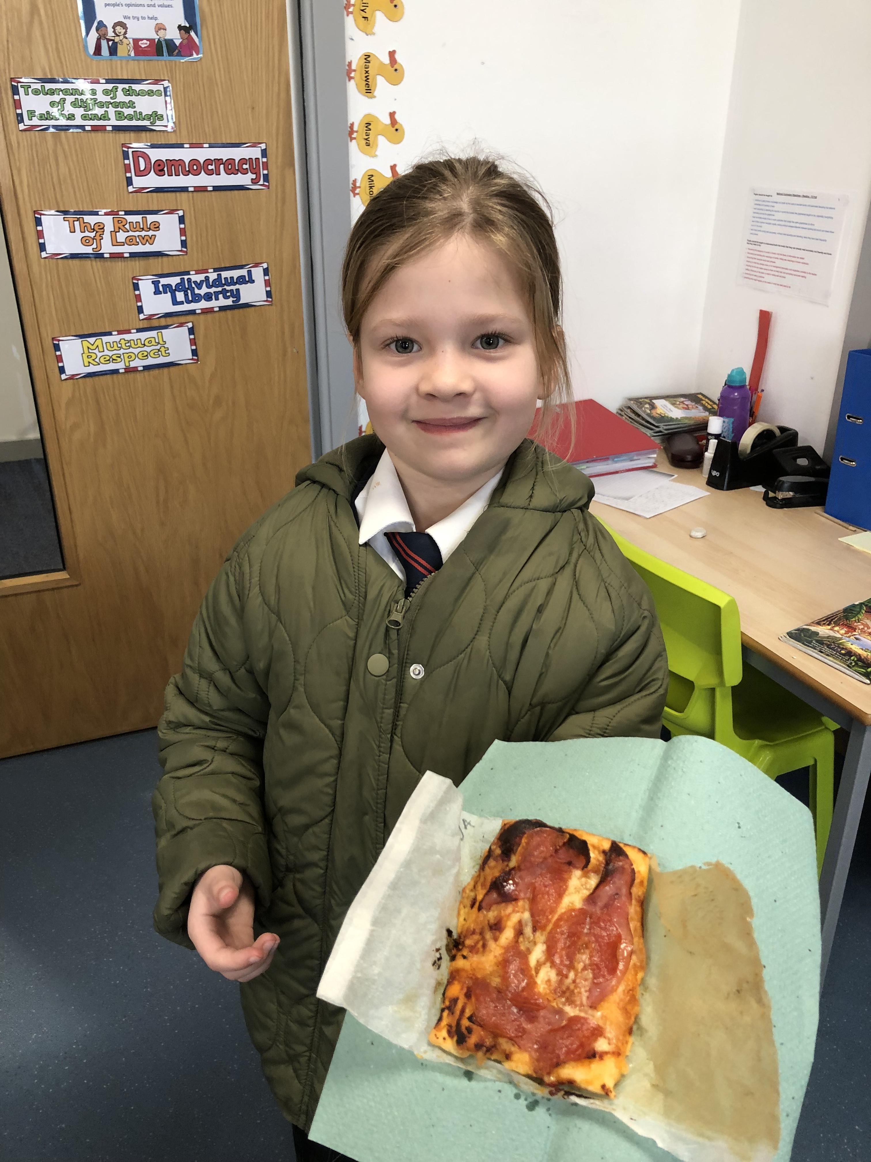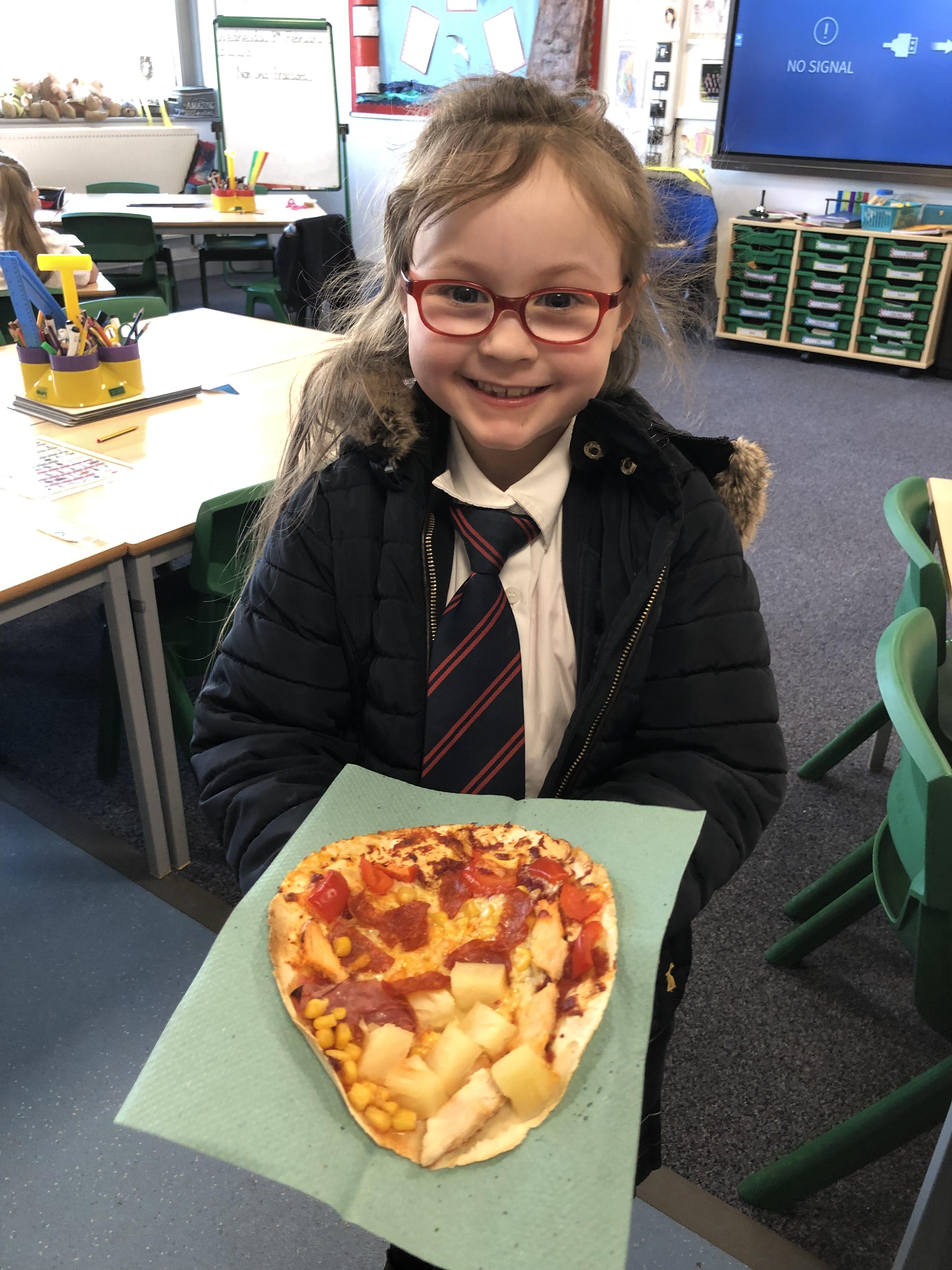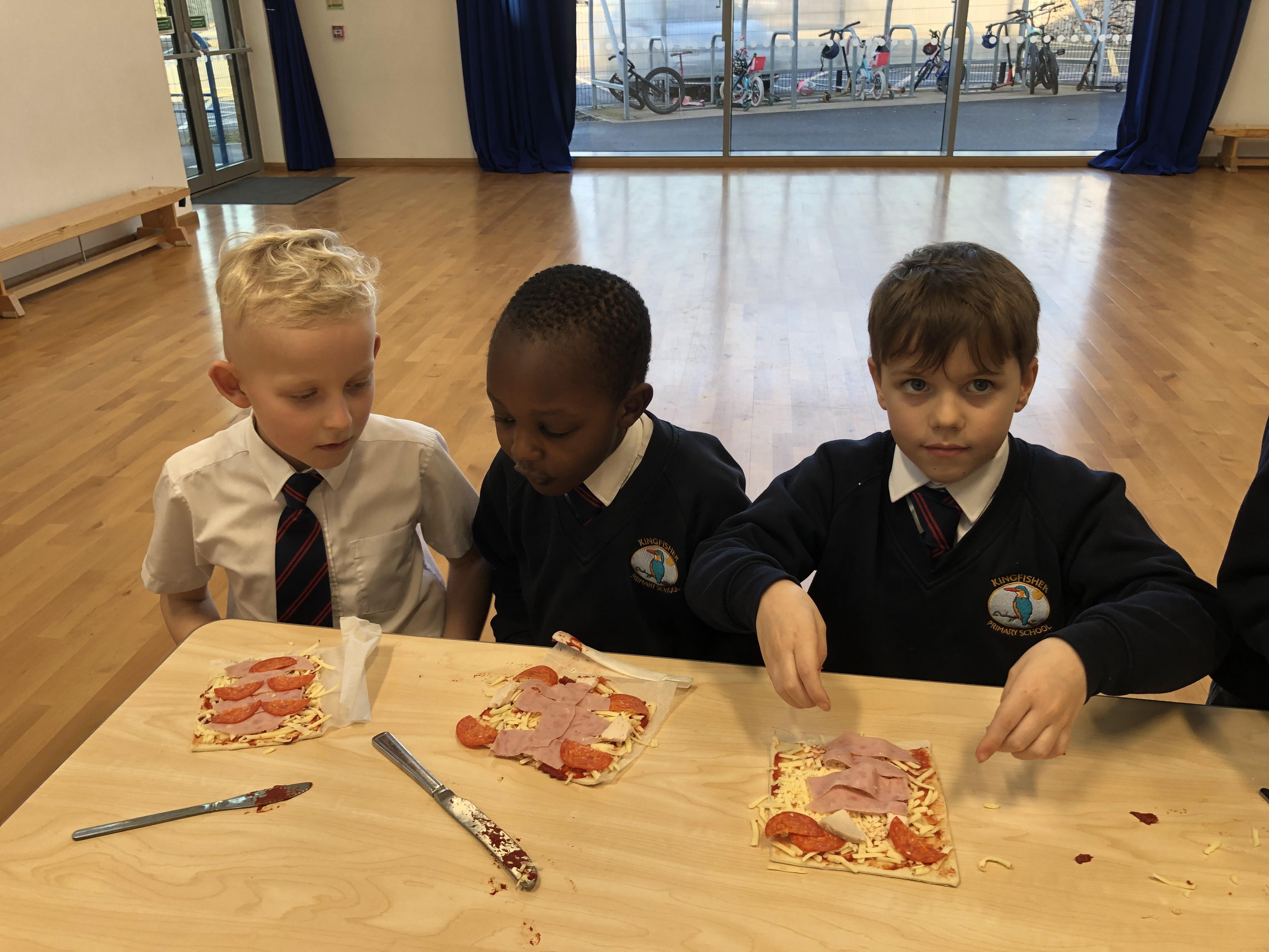 As part of our DT project this term, the children were tasked with designing and making their own ‘perfect pizza’. Prior to making their pizza, the children learnt about the different food groups and were able to classify them based on their characteristics. They understood what food we should eat lots of and the foods that we should try to eat less of. The children were challenged to include at least one healthy food on their pizza. They were all delighted with their finished products and thoroughly enjoyed eating them. Miss Jones was very jealous!