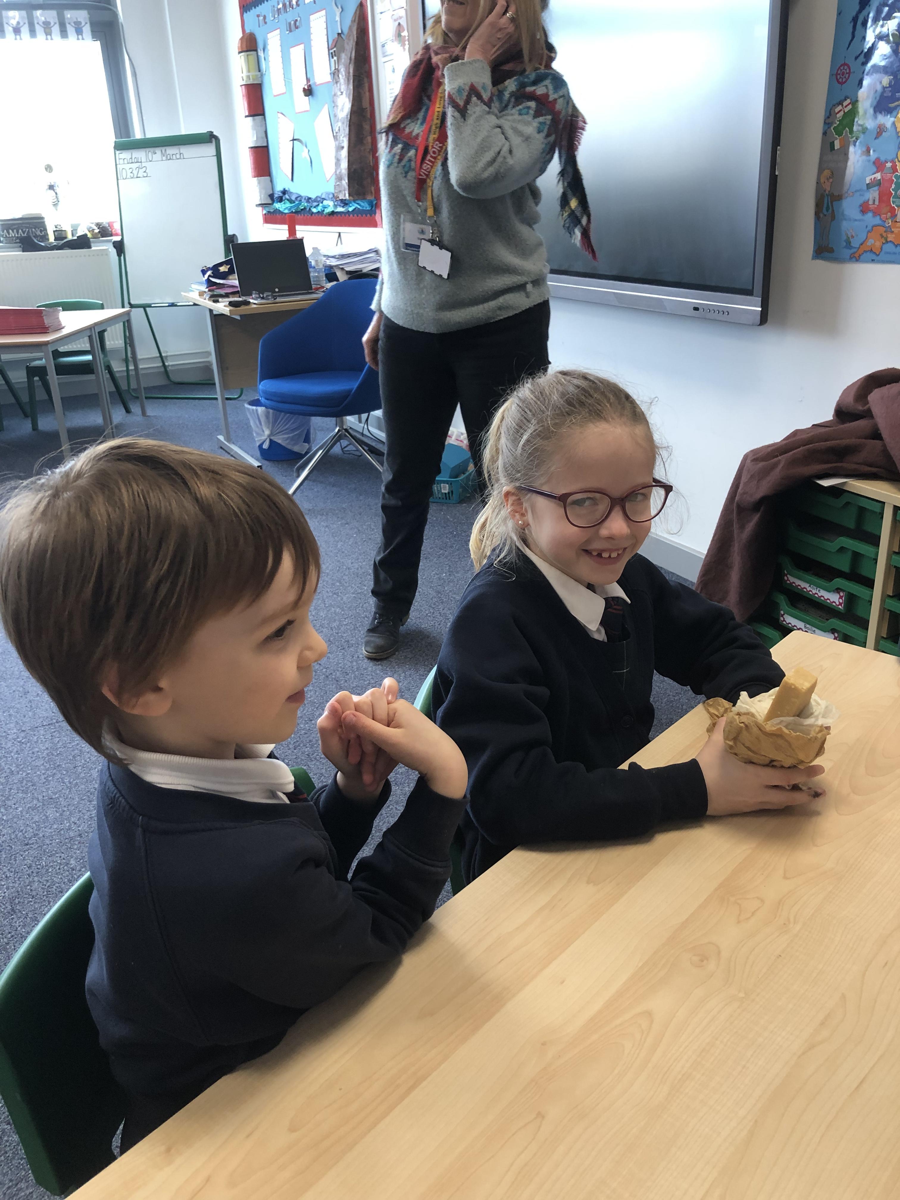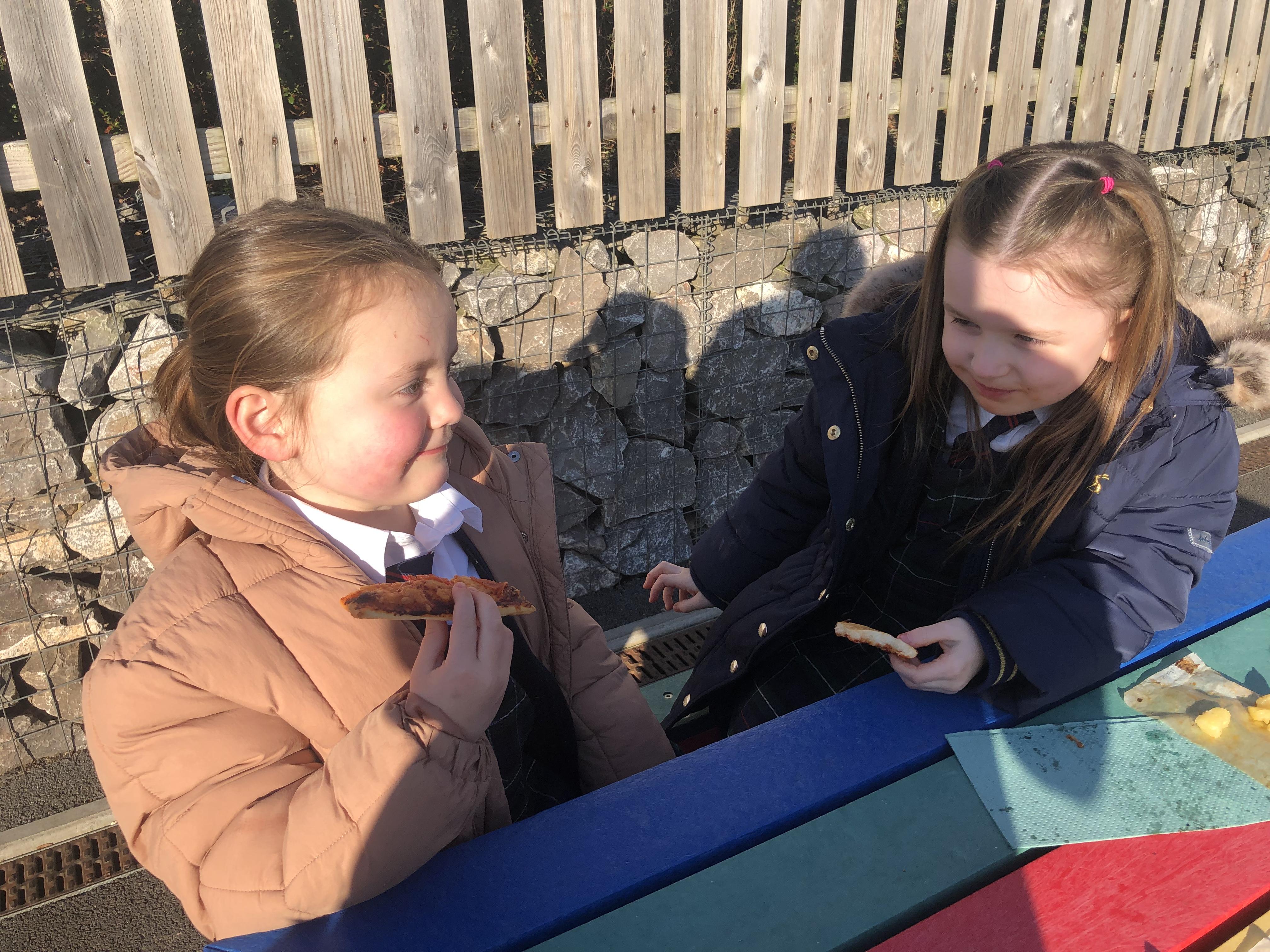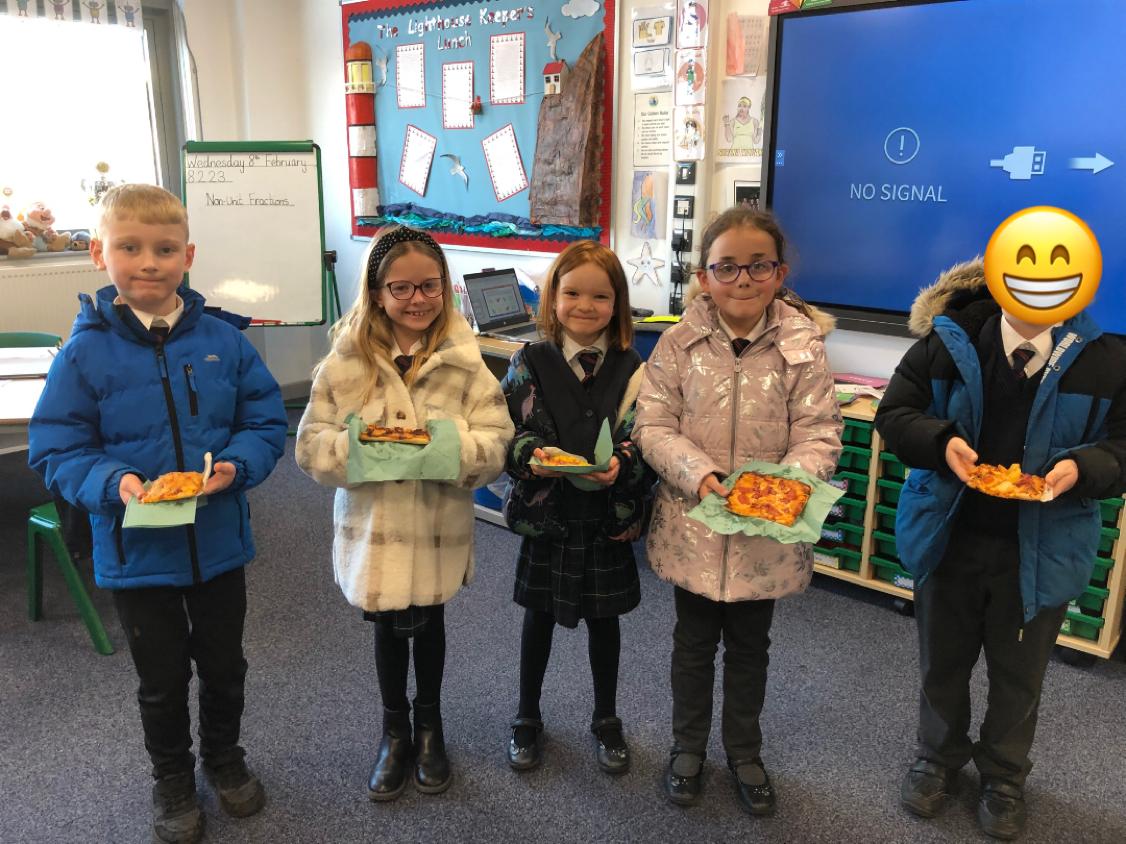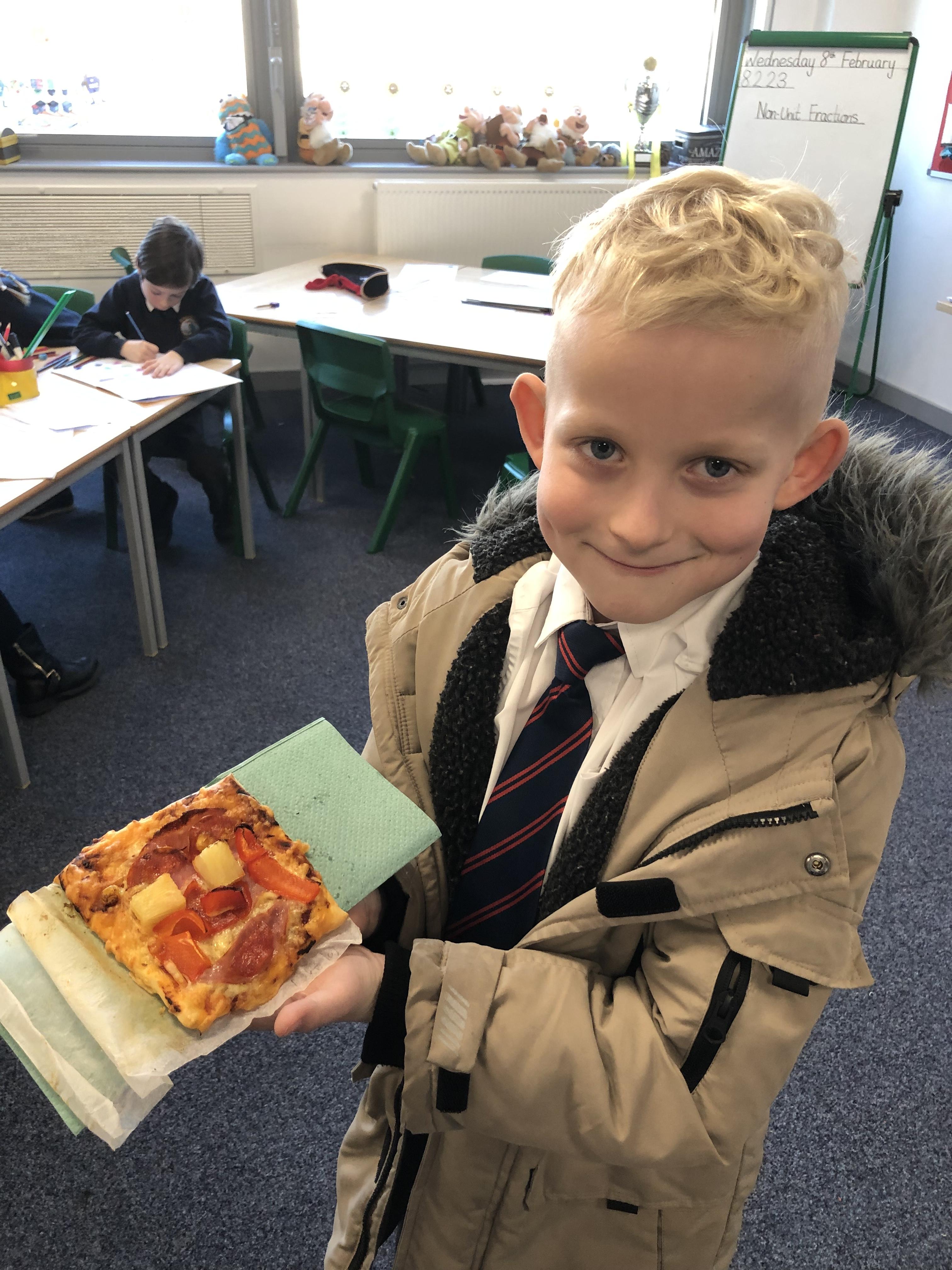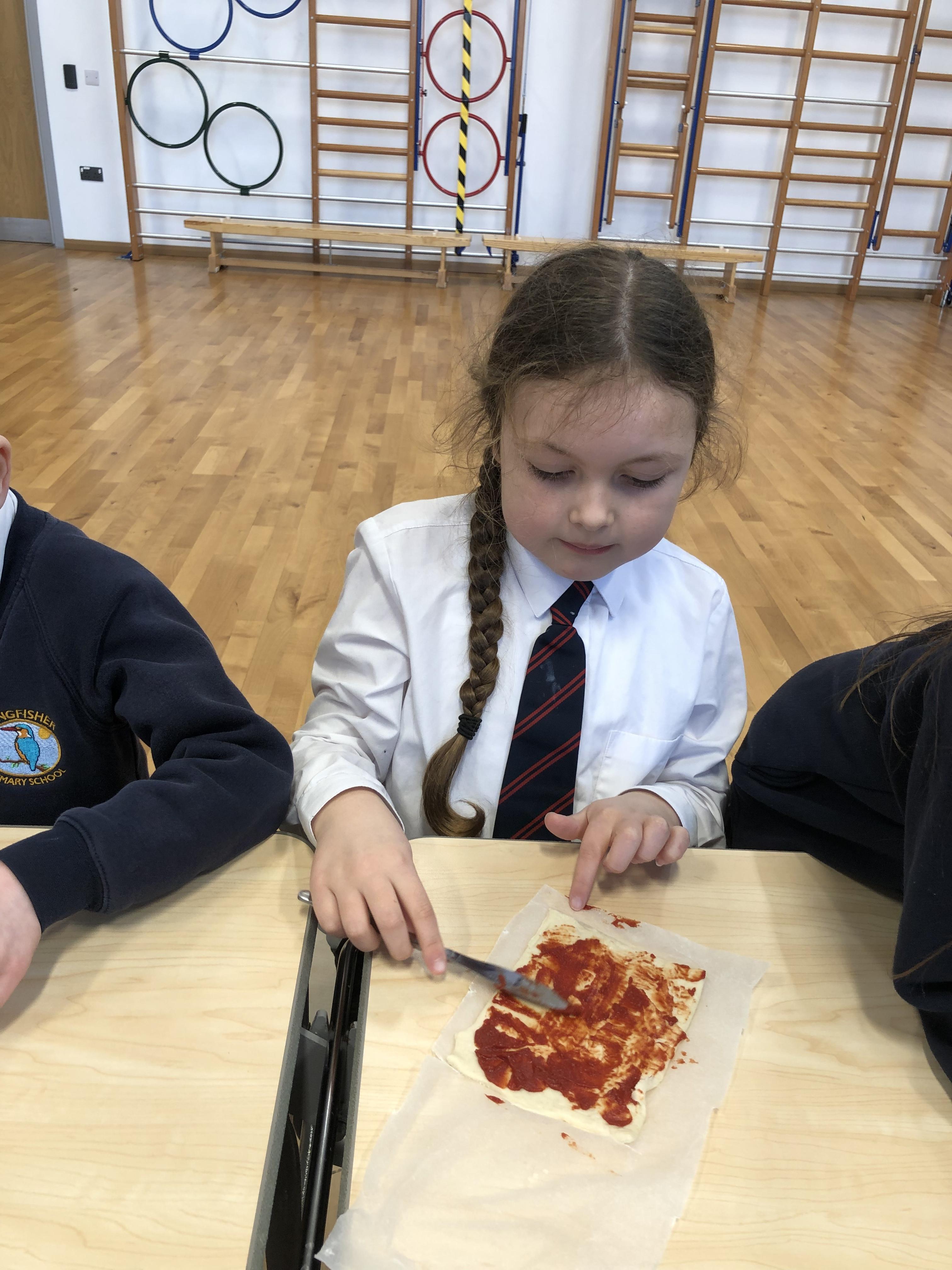 As part of our DT project this term, the children were tasked with designing and making their own ‘perfect pizza’. Prior to making their pizza, the children learnt about the different food groups and were able to classify them based on their characteristics. They understood what food we should eat lots of and the foods that we should try to eat less of. The children were challenged to include at least one healthy food on their pizza. They were all delighted with their finished products and thoroughly enjoyed eating them. Miss Jones was very jealous!