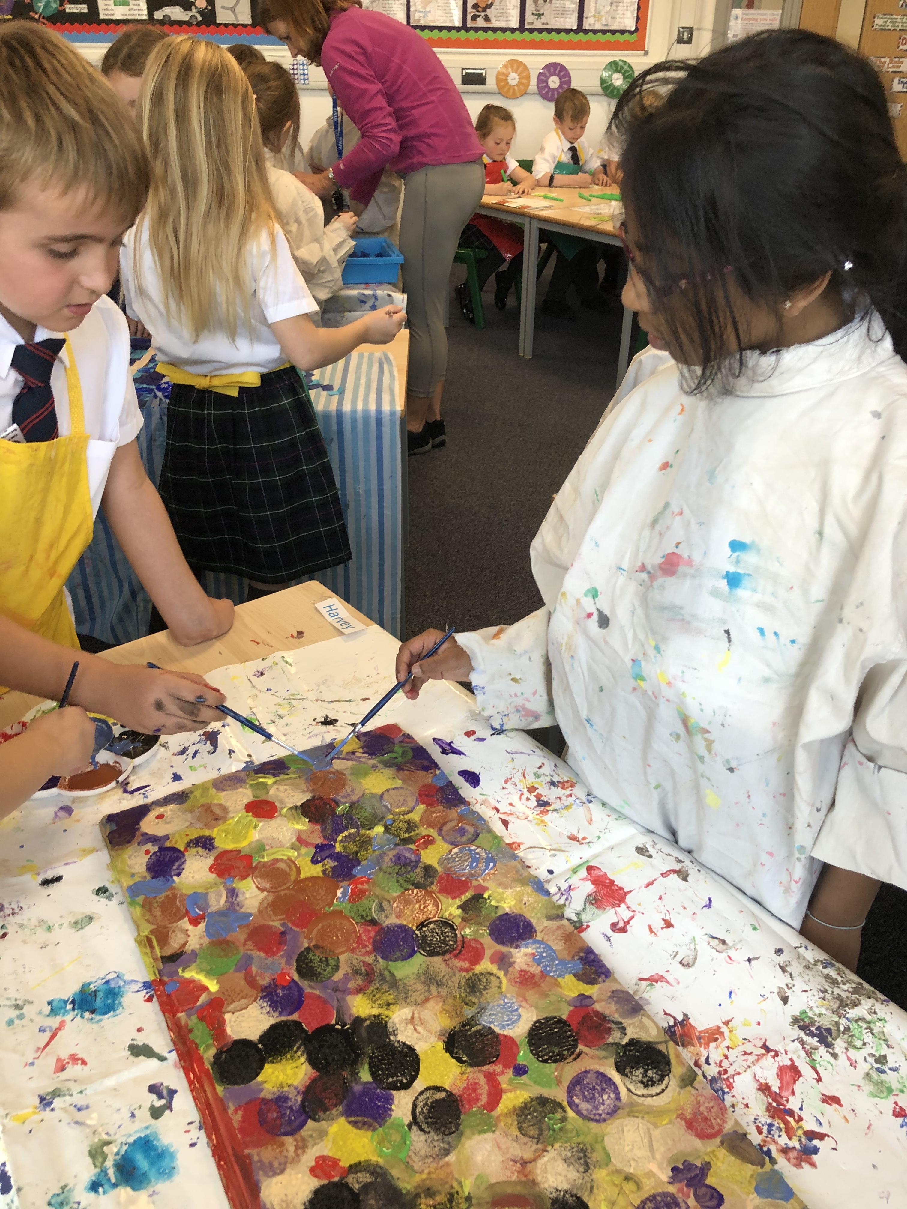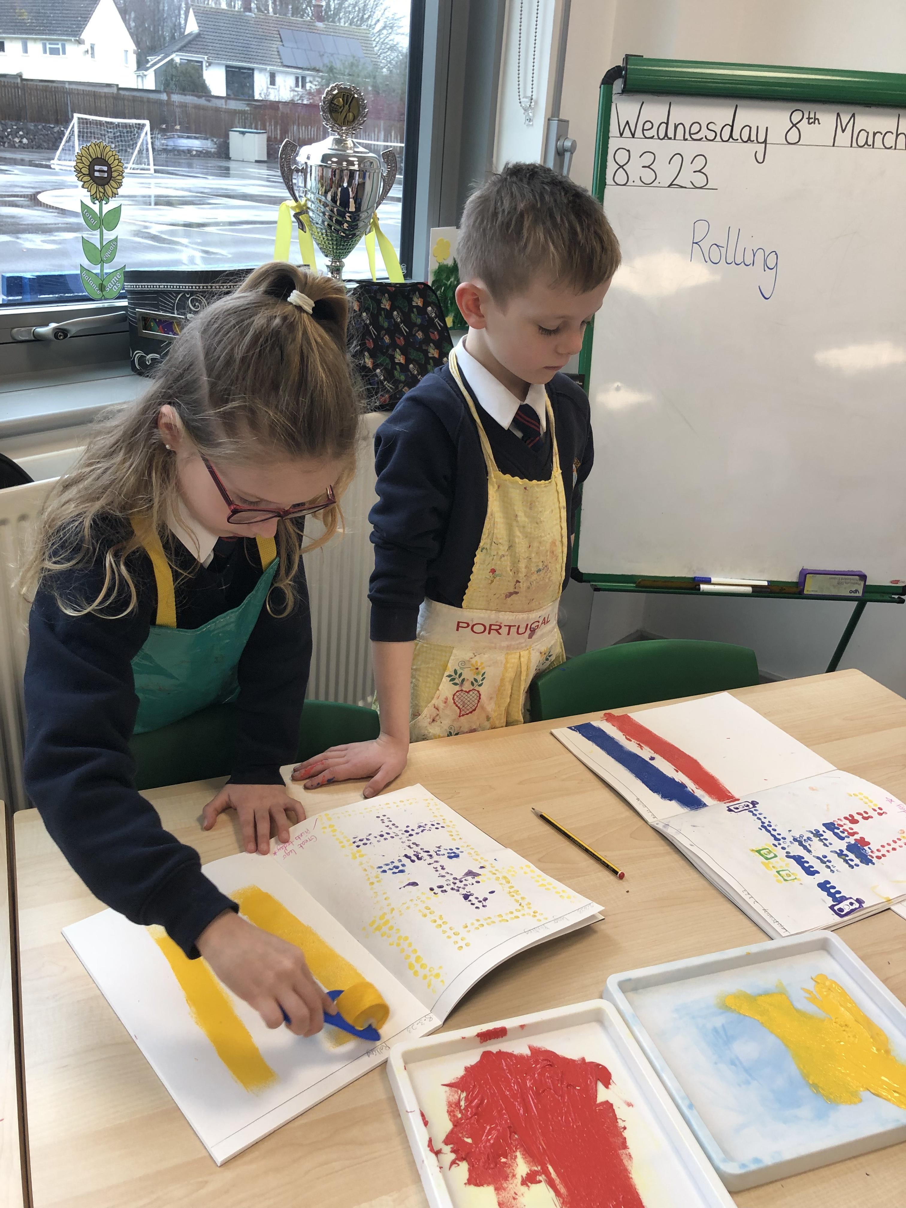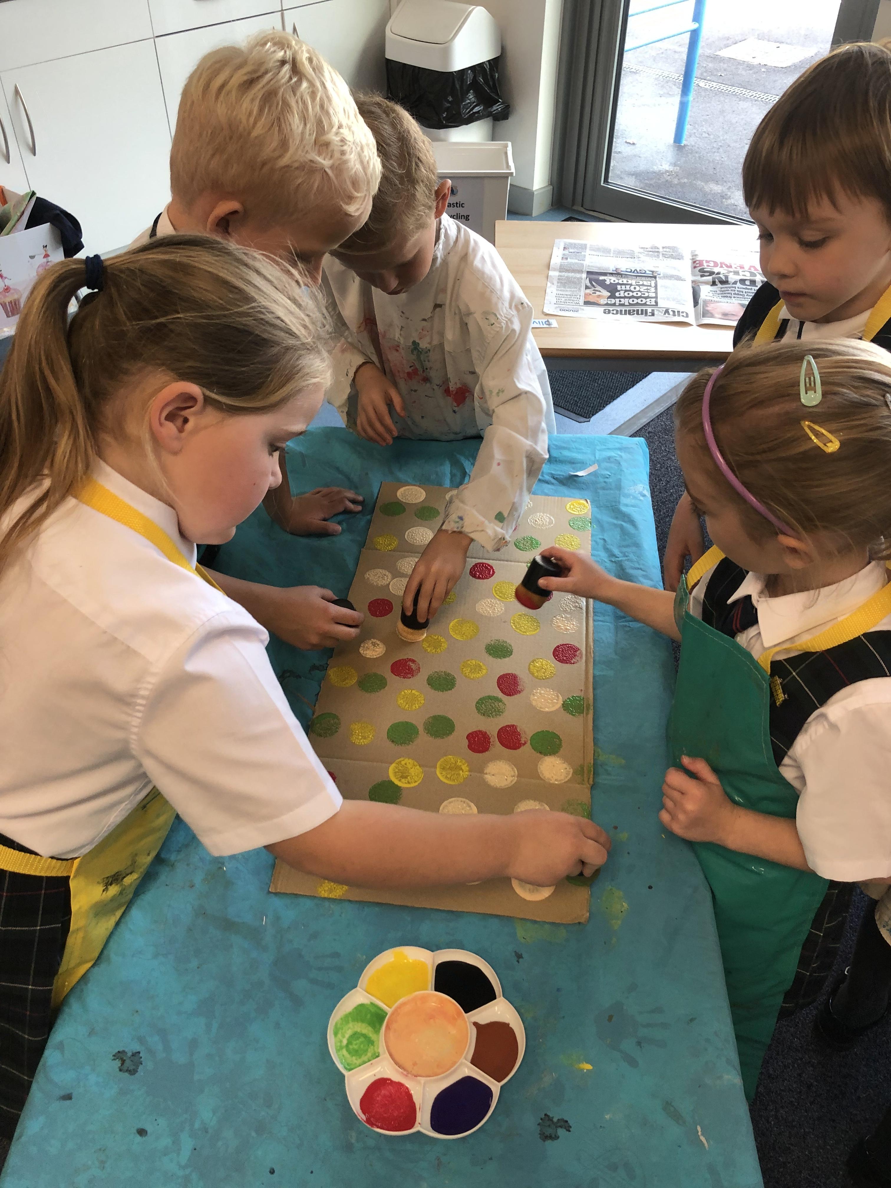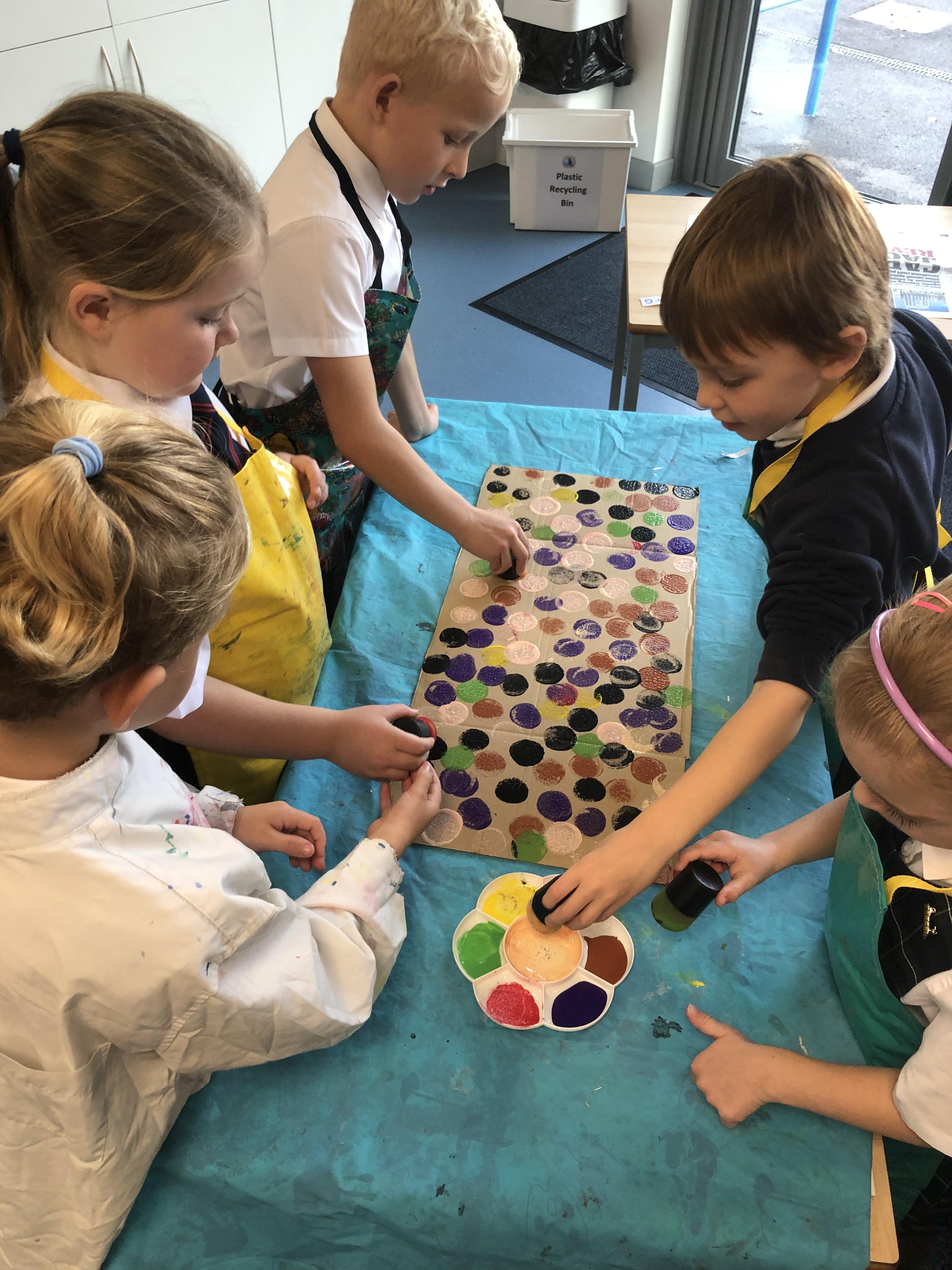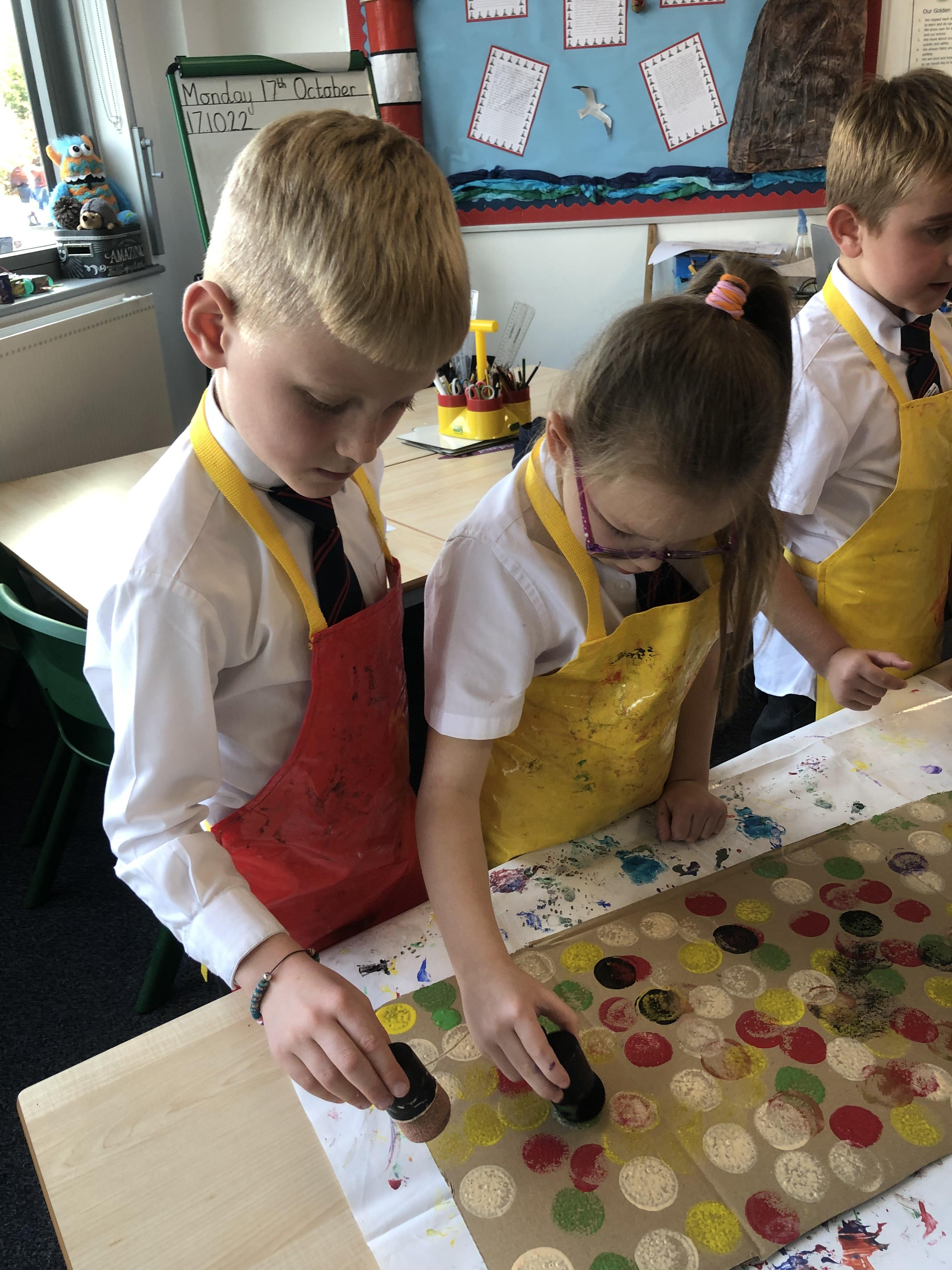 As part of our printing topic in Art this term, the children have been exploring a range of printing, stamping and rolling techniques. Today, we explored the technique of rolling. The children were tasked with creating a repeated pattern art piece using rollers. The end results were fantastic!