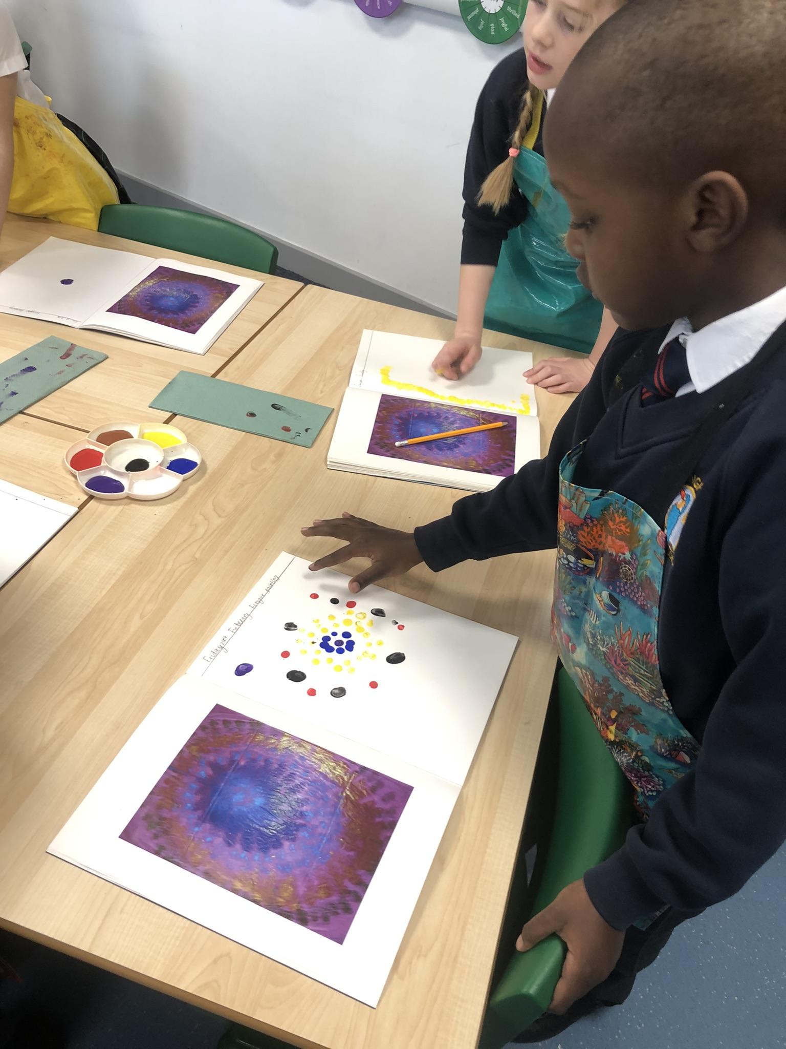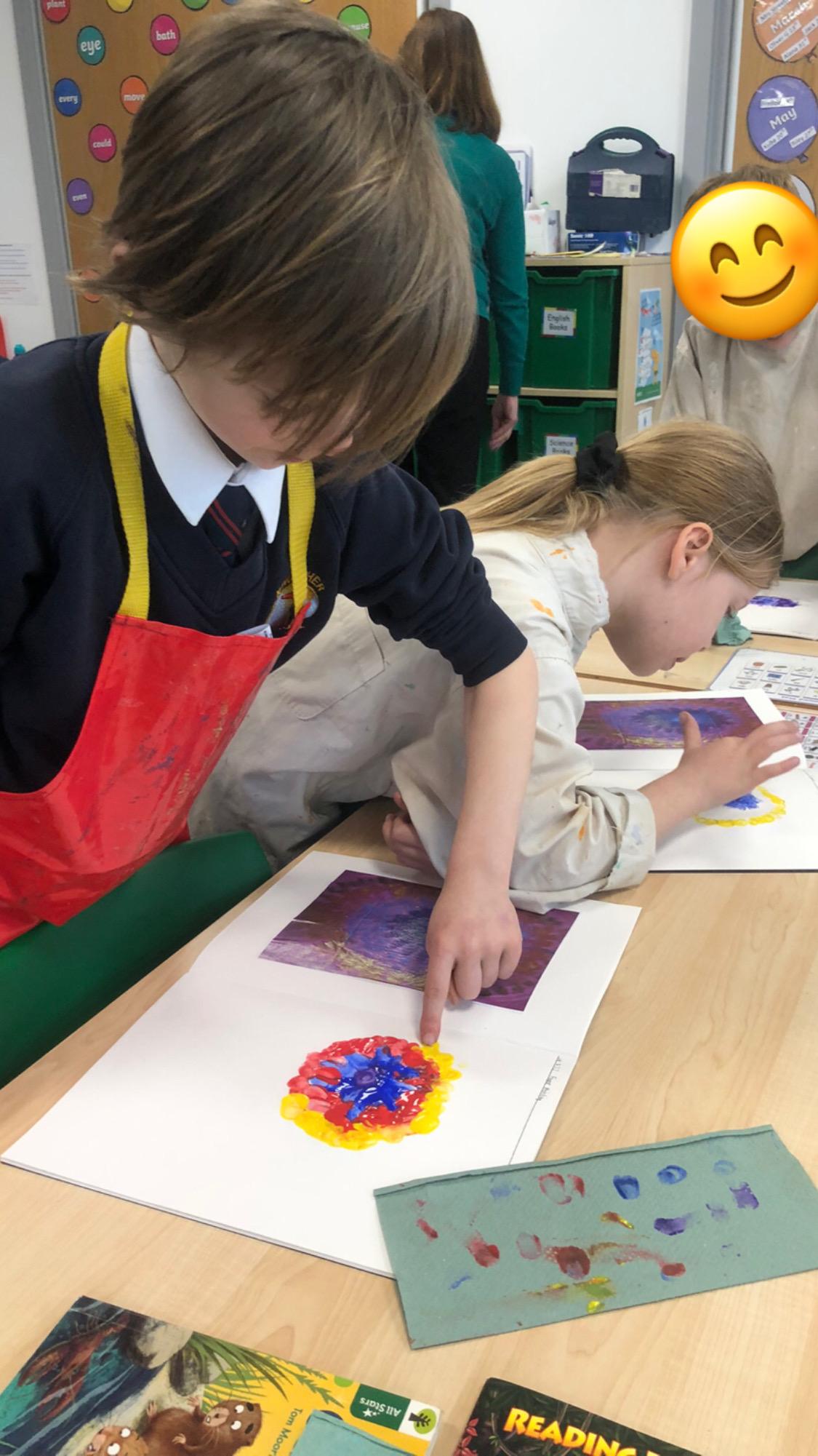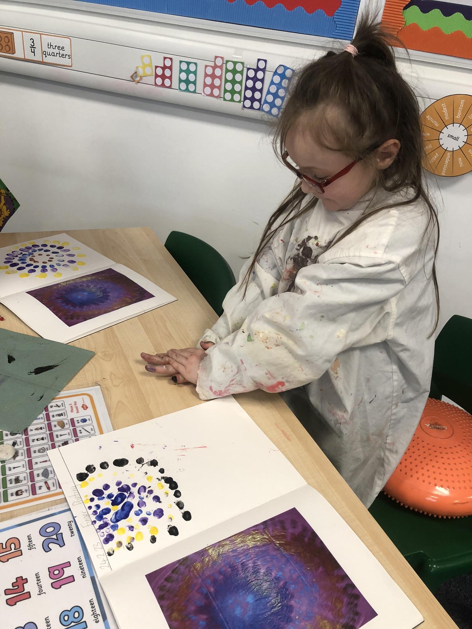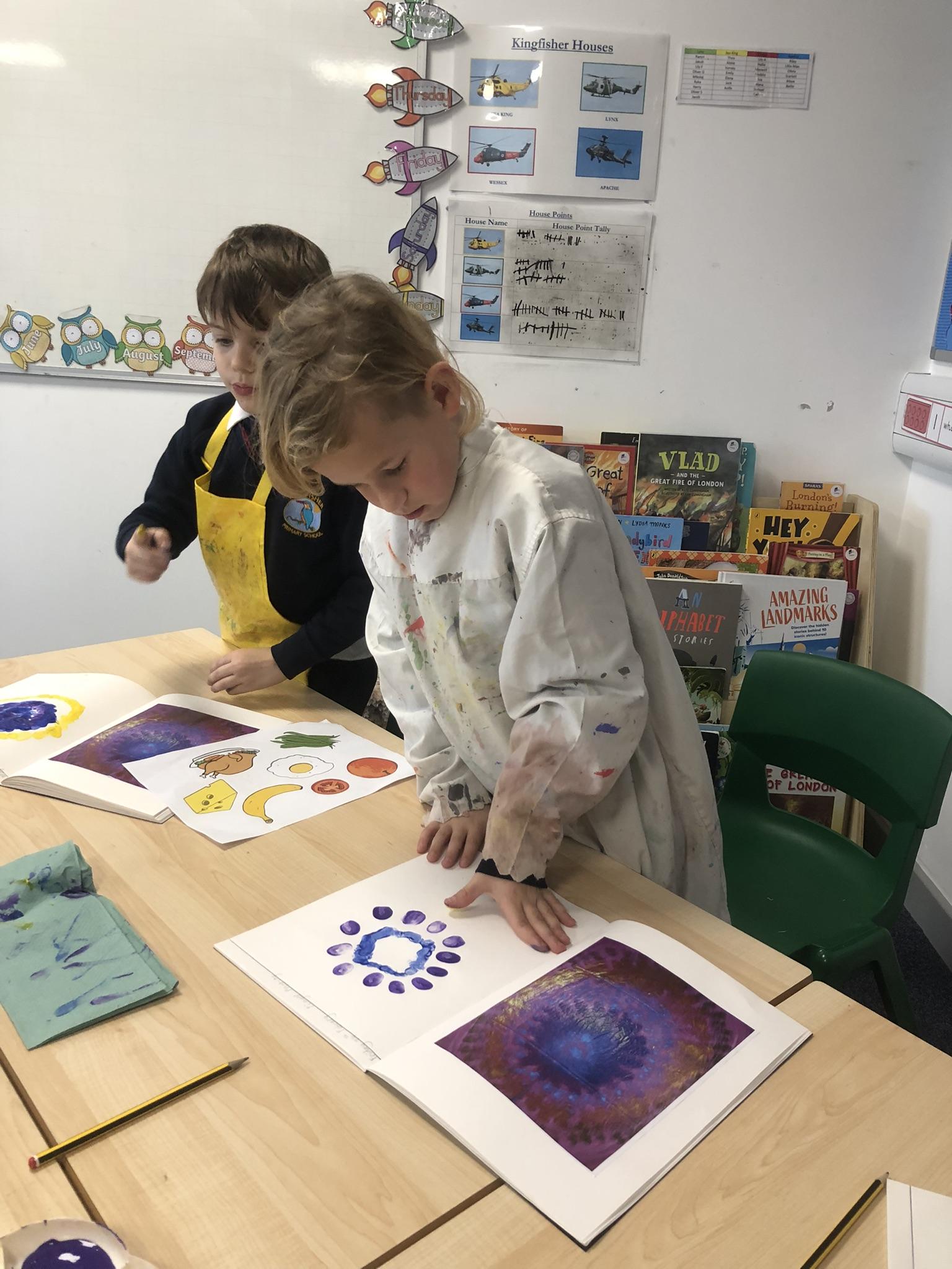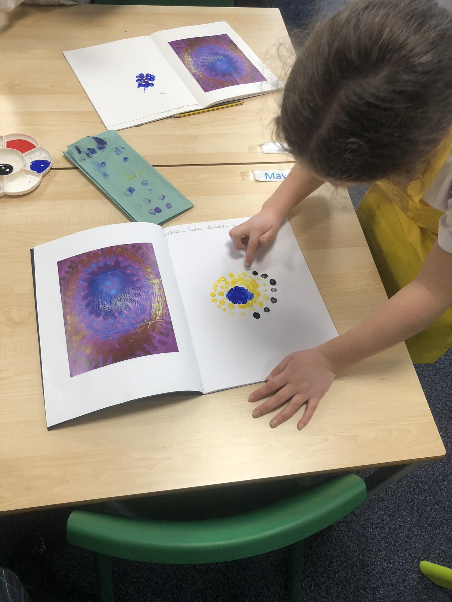 Today, the children were exploring the art of printing by using their finger prints to replicate a picture. The attention to detail was very impressive and some lovely art work was produced.