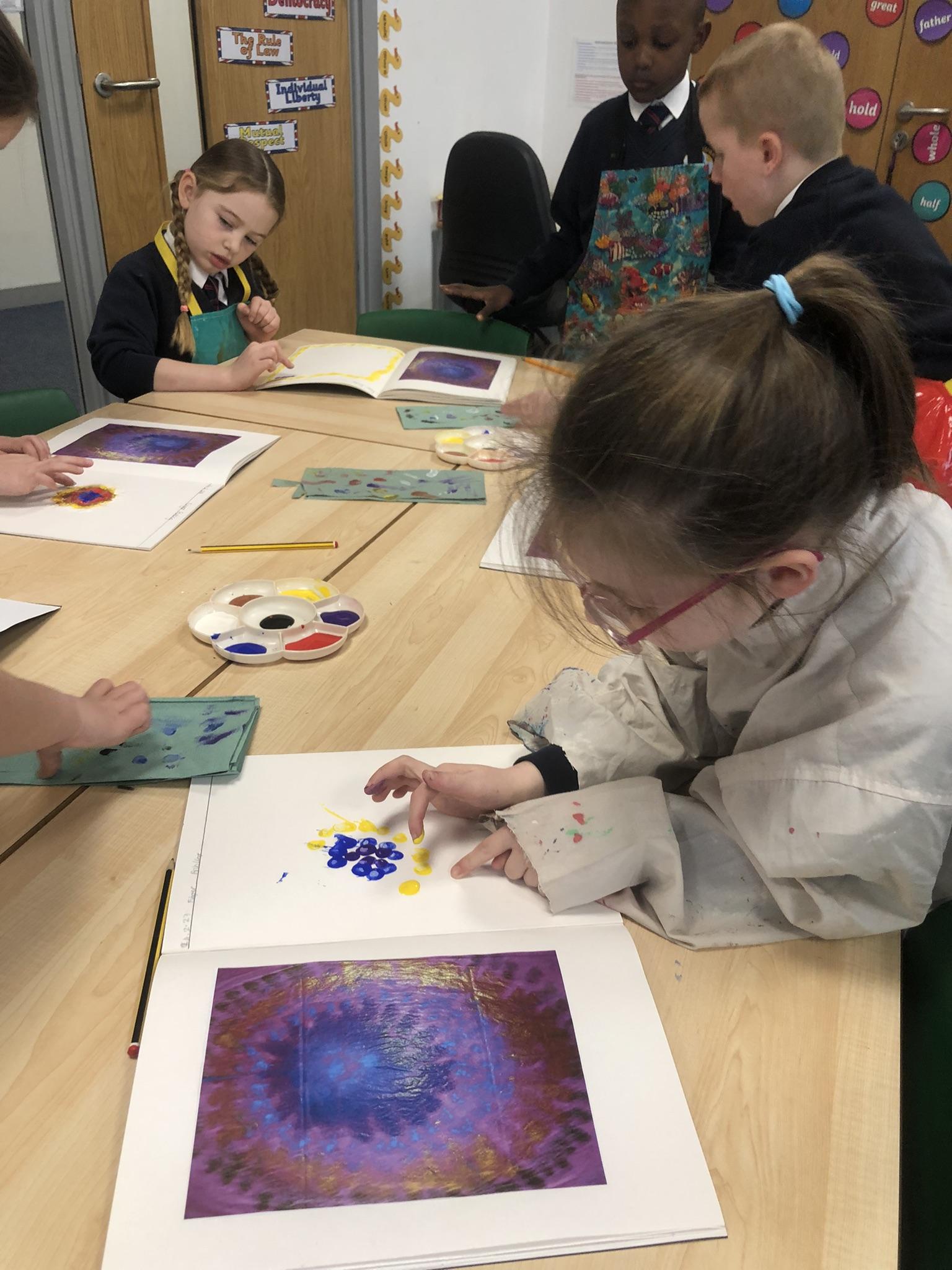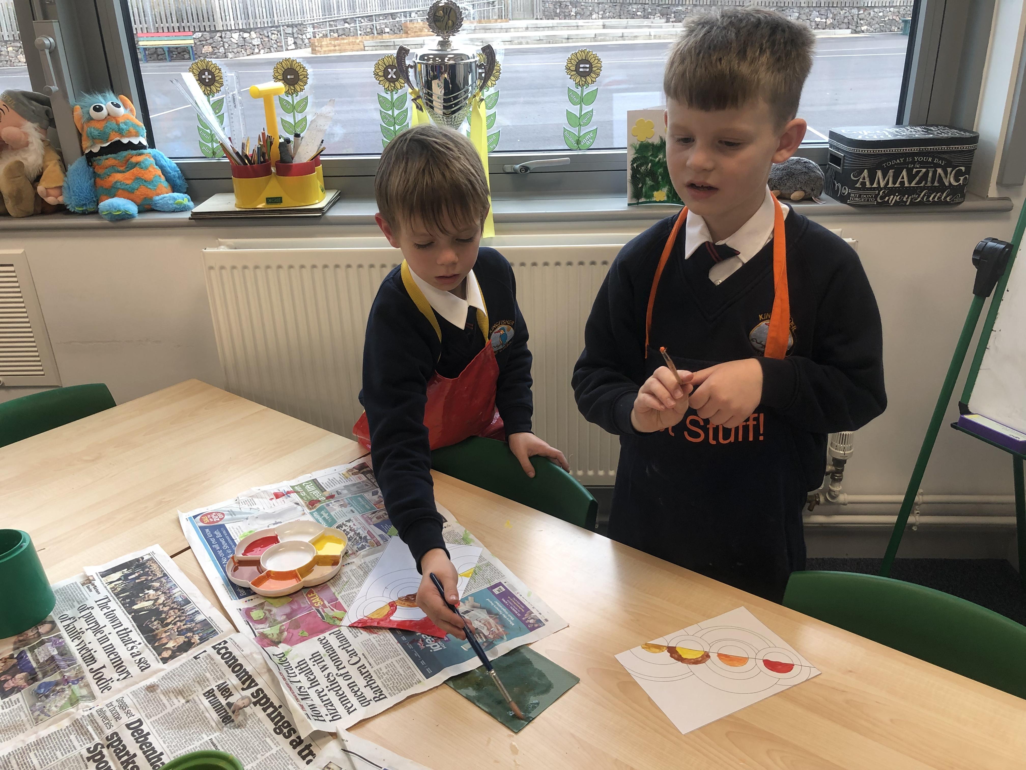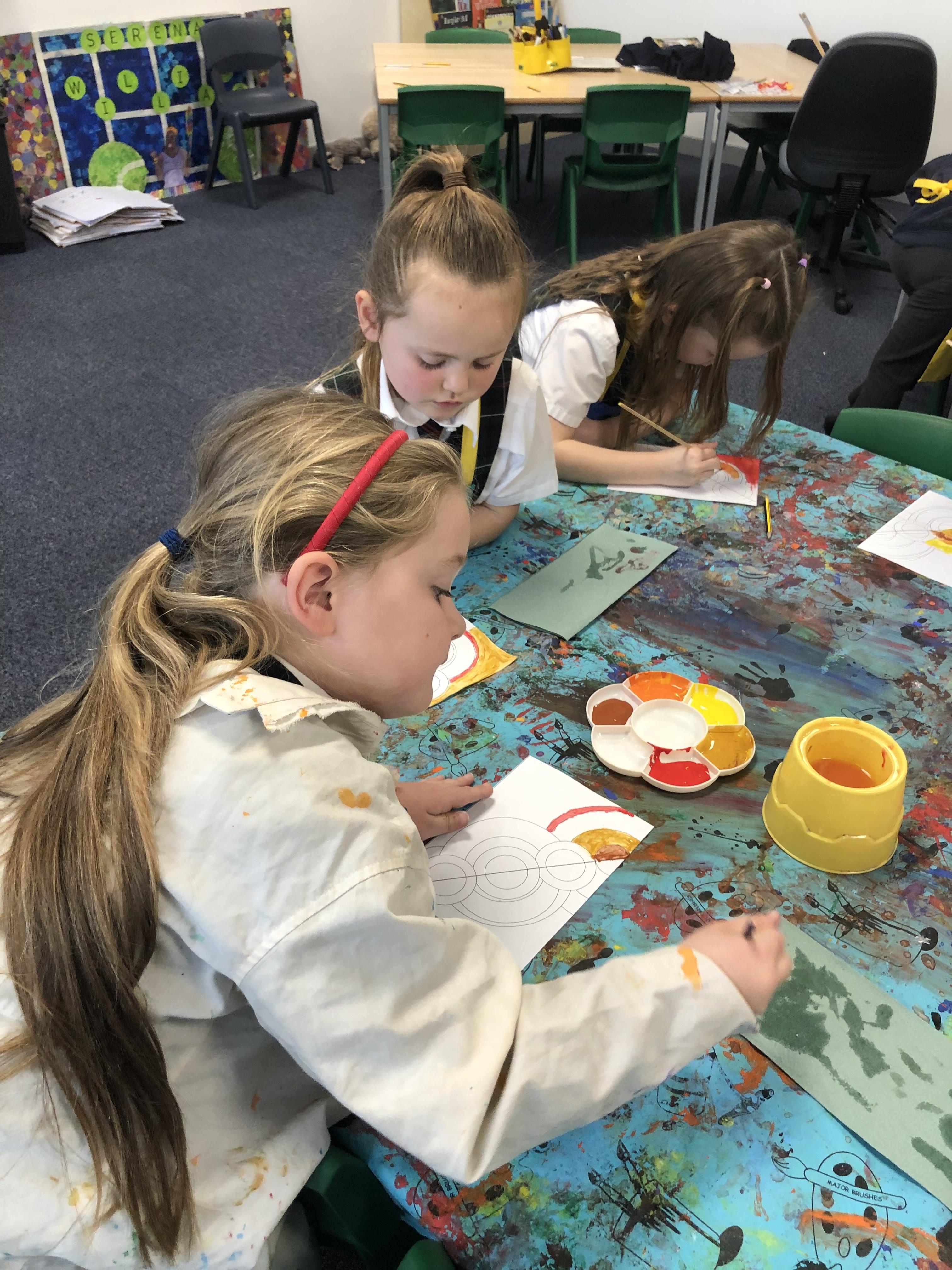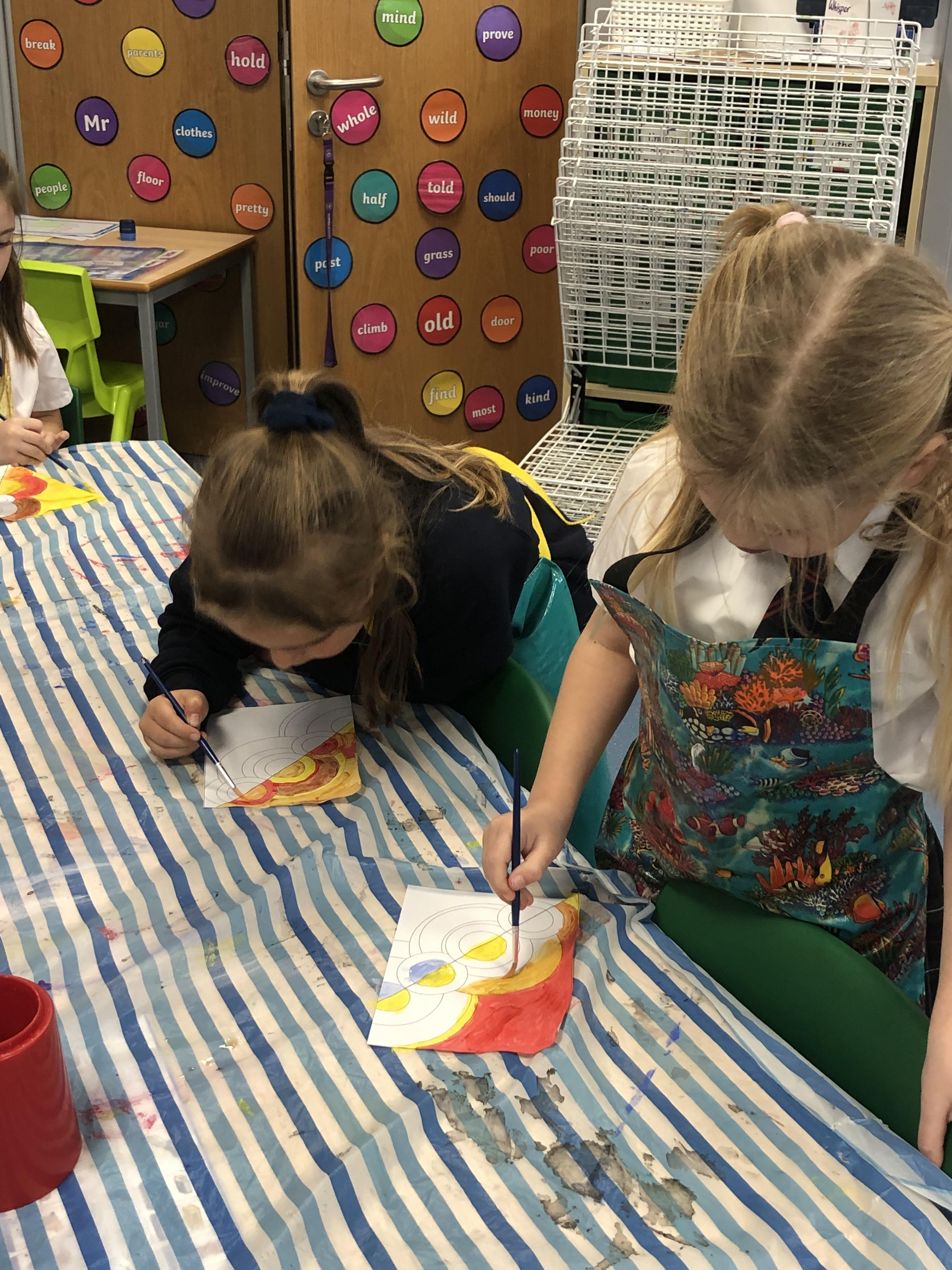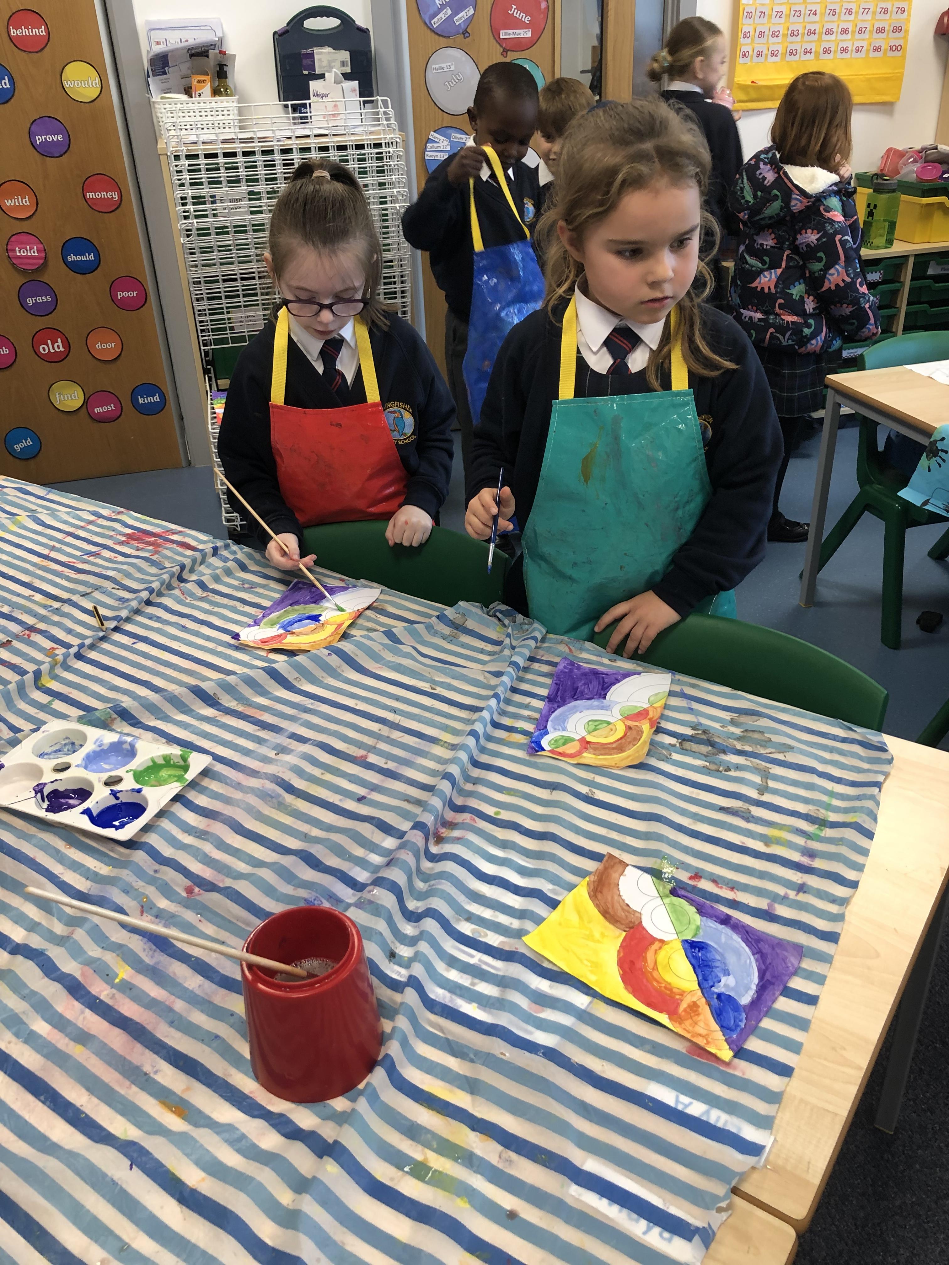 In Art today, the children were exploring warm and cool colours. We looked at the work of Robert and Sonia Delaunay and then the children recreated a piece of their Art work using warm colours on one side and cool colours on the other side. The end results were fantastic!