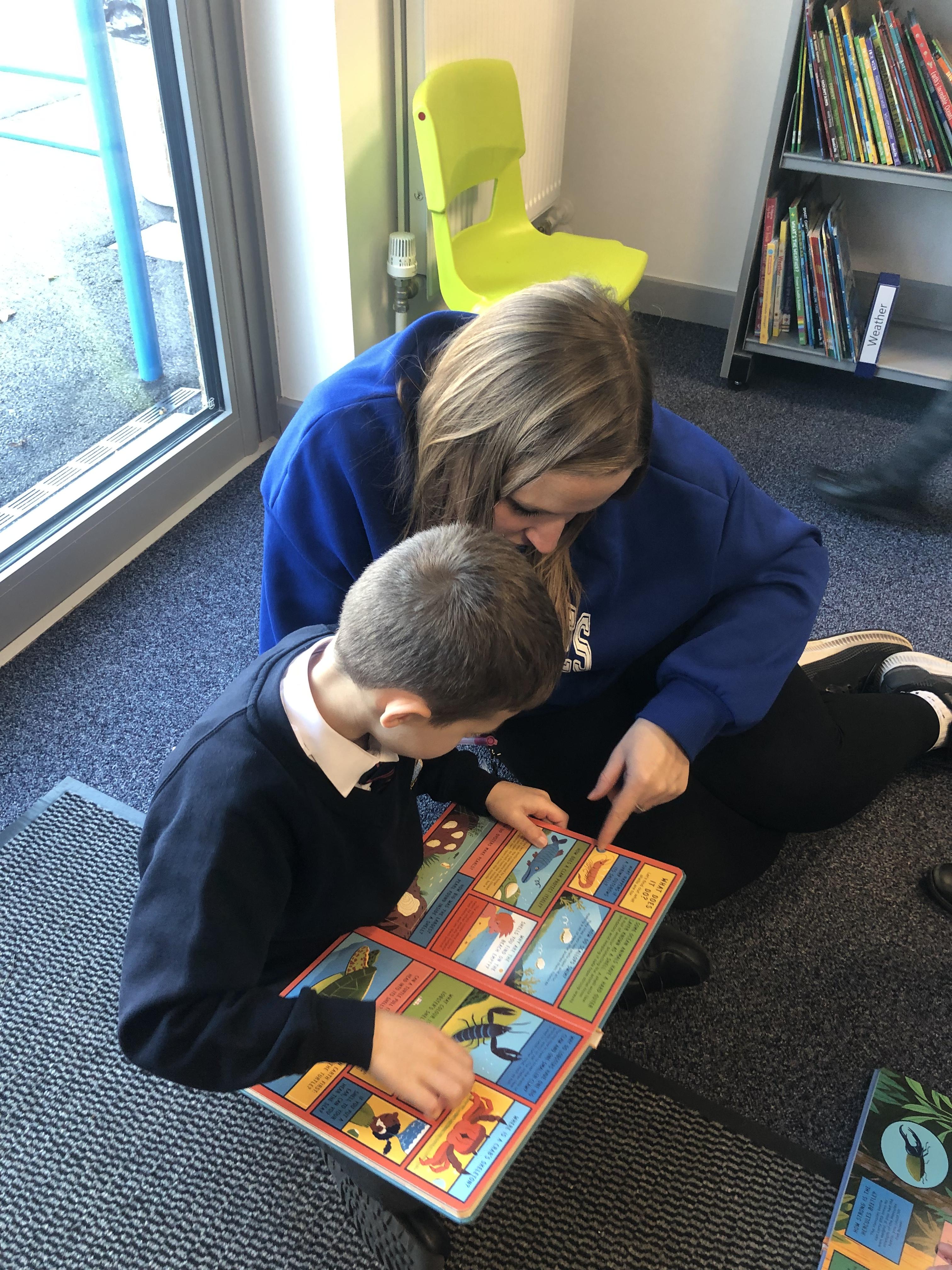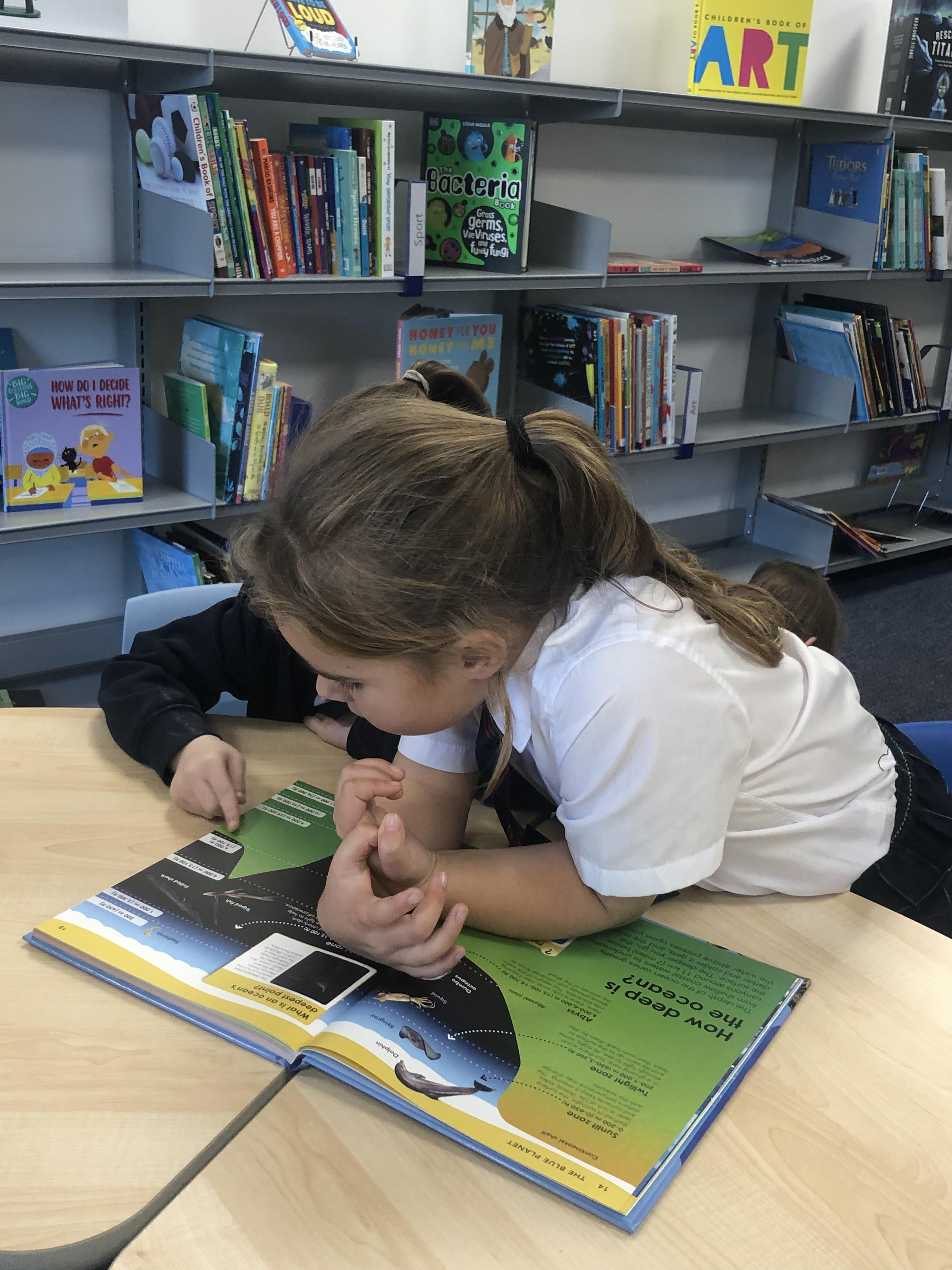 Today, the children went to the library to look at non-fiction texts. We have been learning about animals and their habitats in Science this term so it was great for the children to explore a range of books on this topic. The children were all very engaged and enjoyed learning lots of news facts which they were eager to tell me about throughout the session.