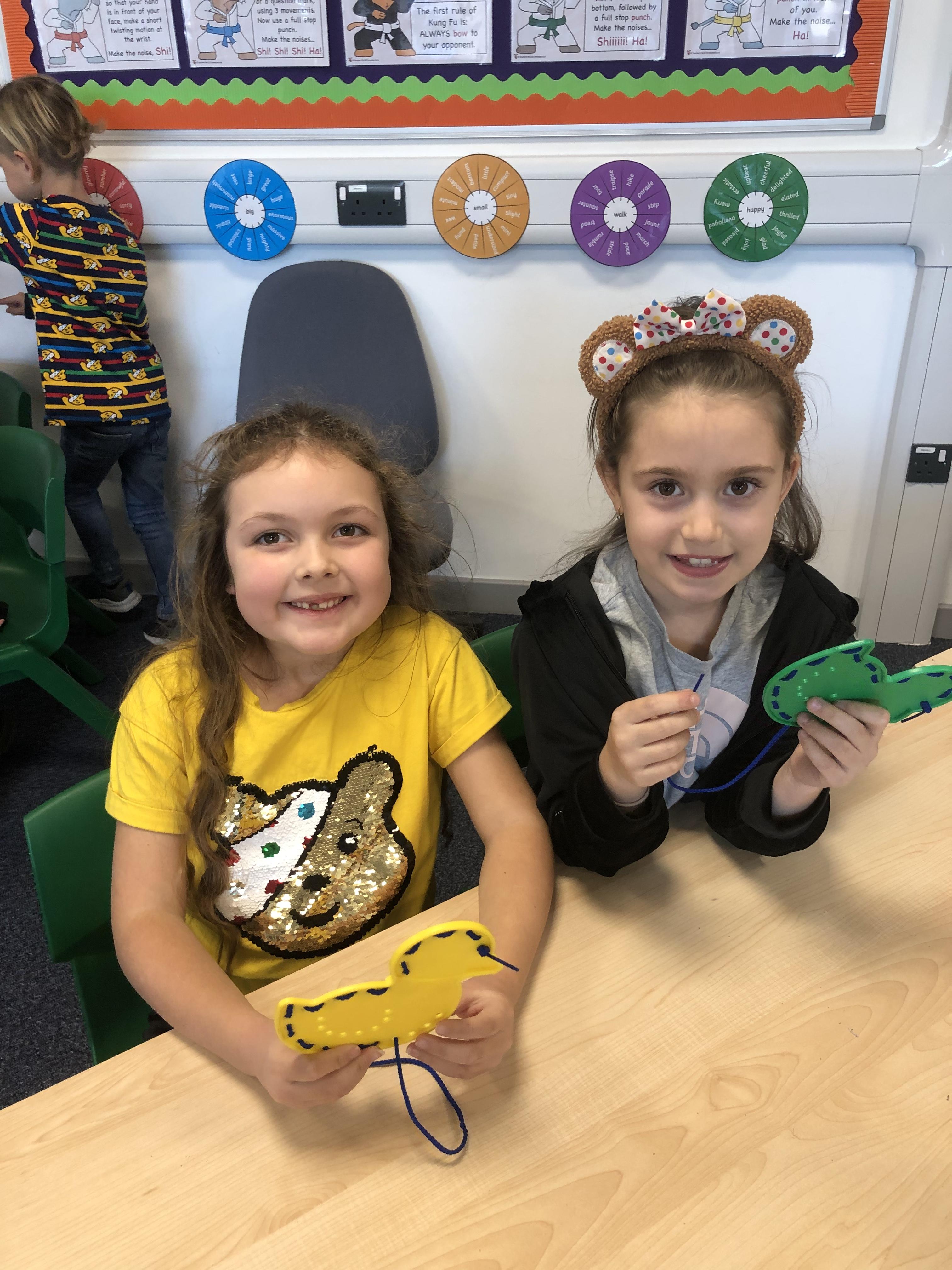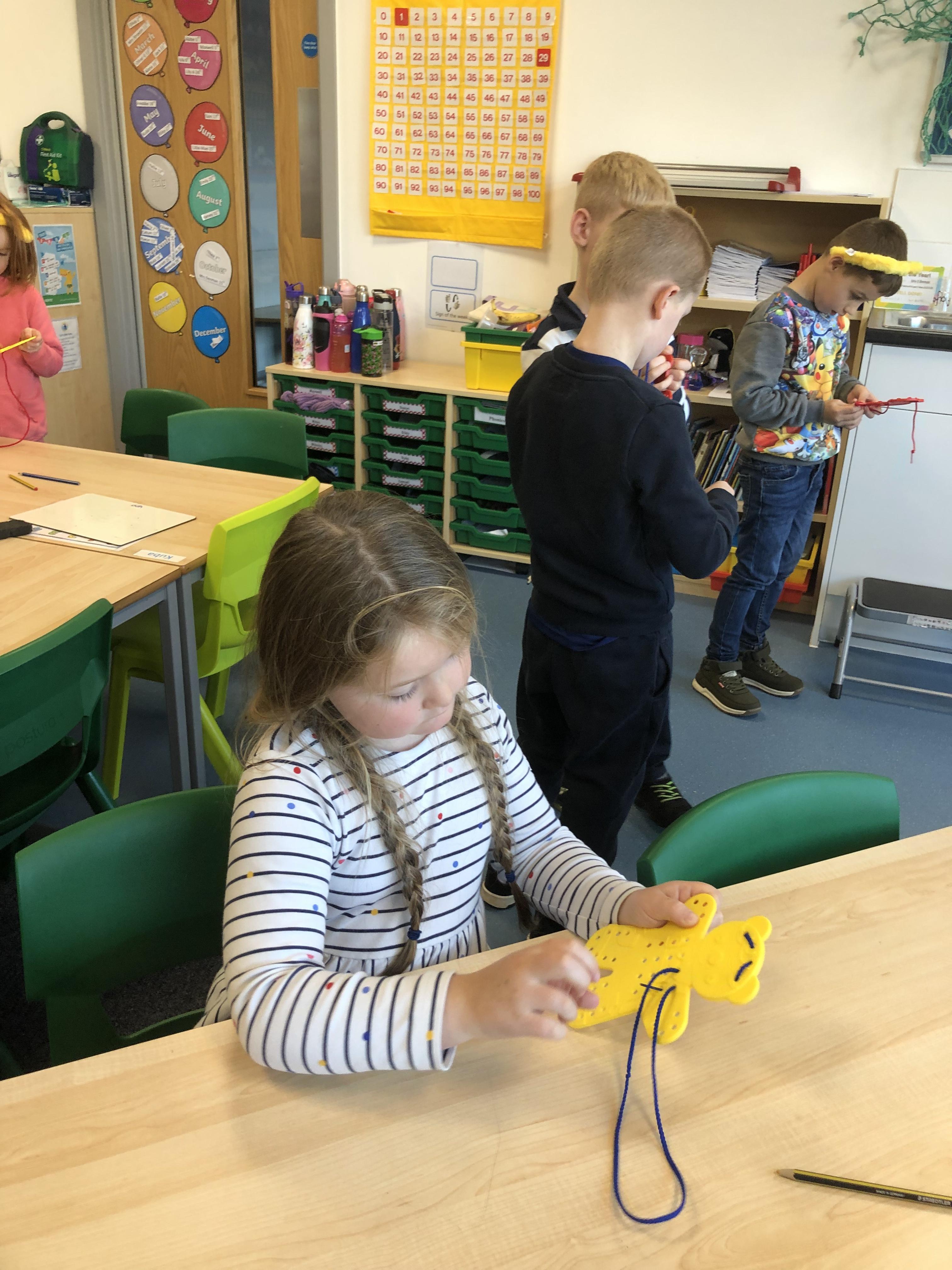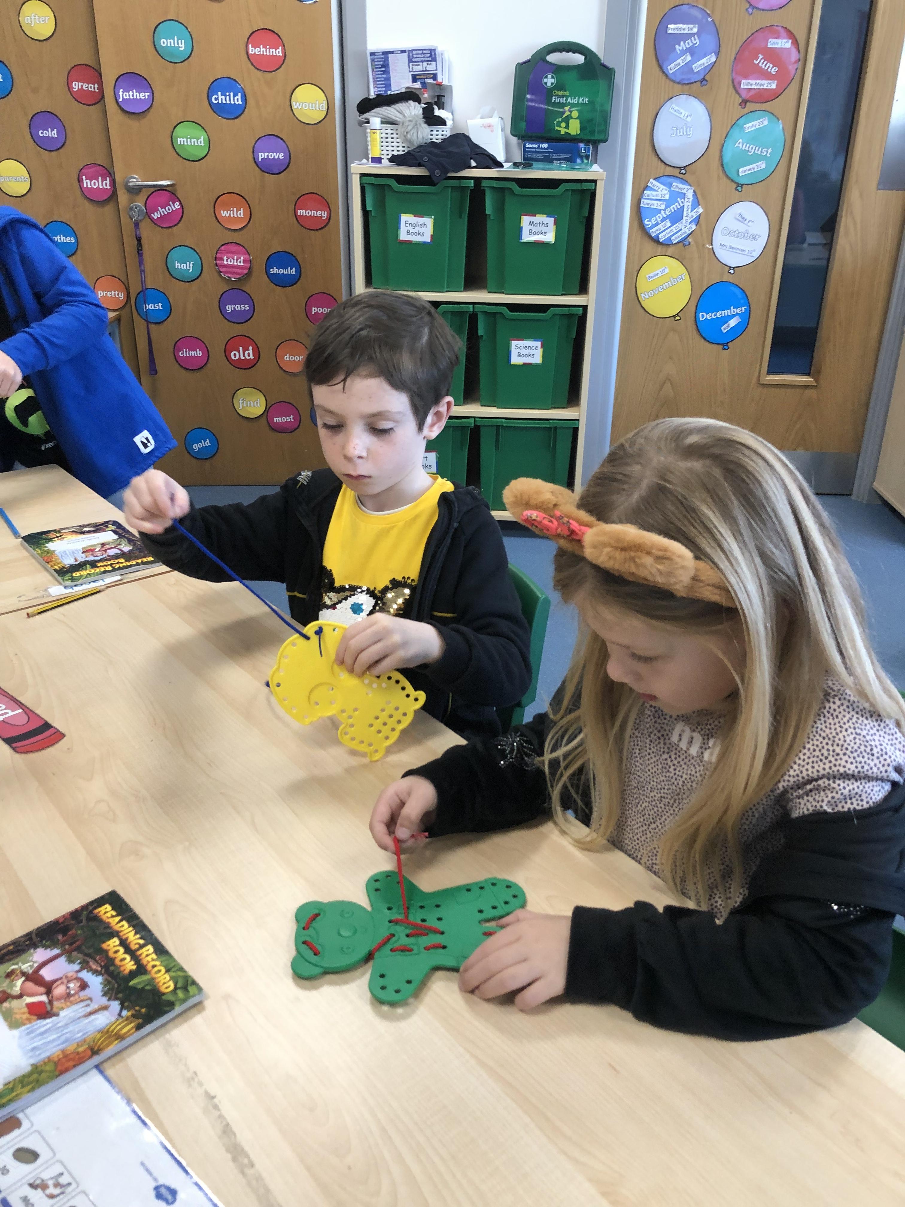 In DT this term, Mallard Class are going to make their very own Christmas tree baubles. In preparation for this, the children practised their threading skills using simple equipment.  They all had a go at practising 2 different styles of sewing techniques including an over stitch.