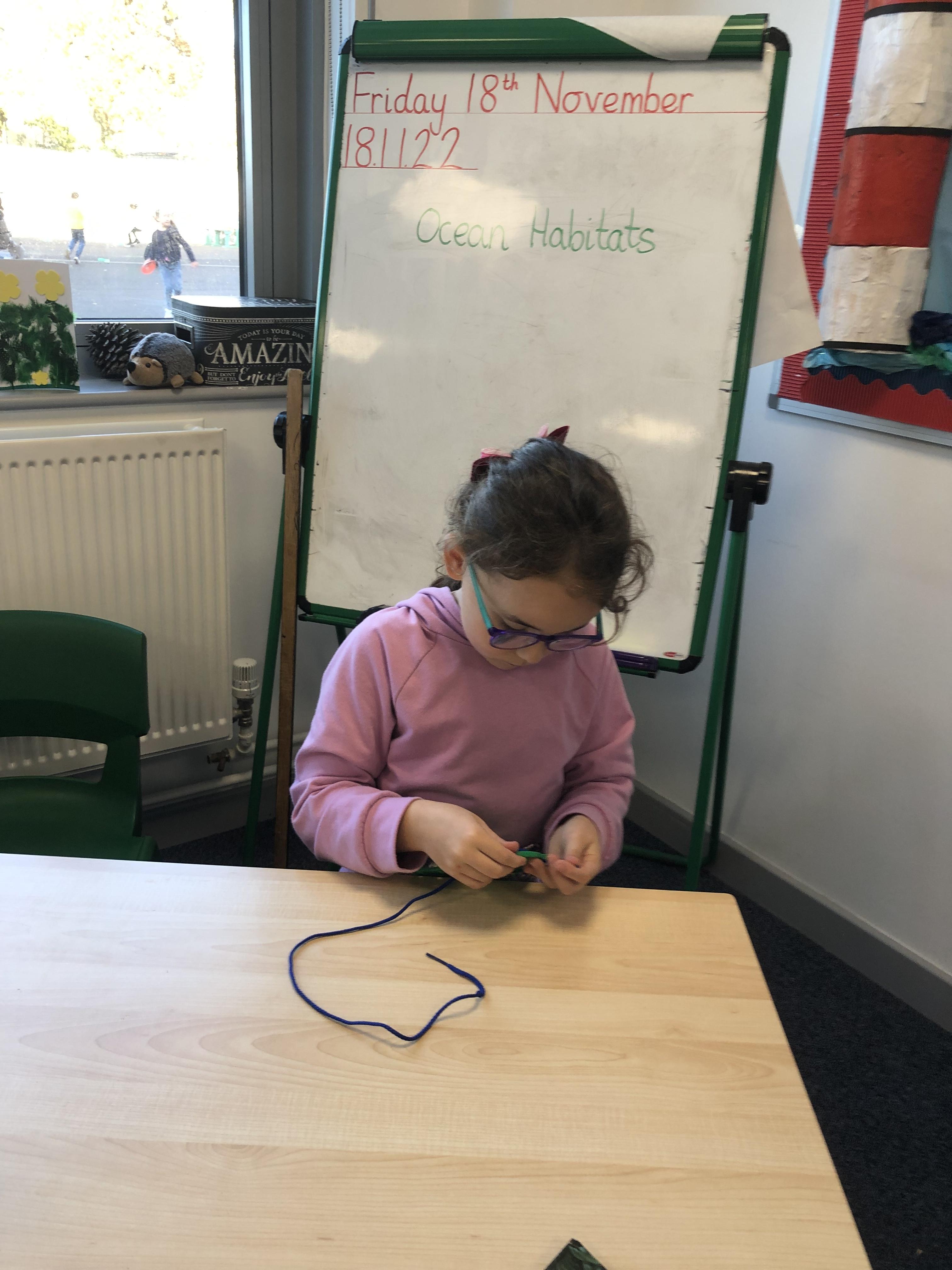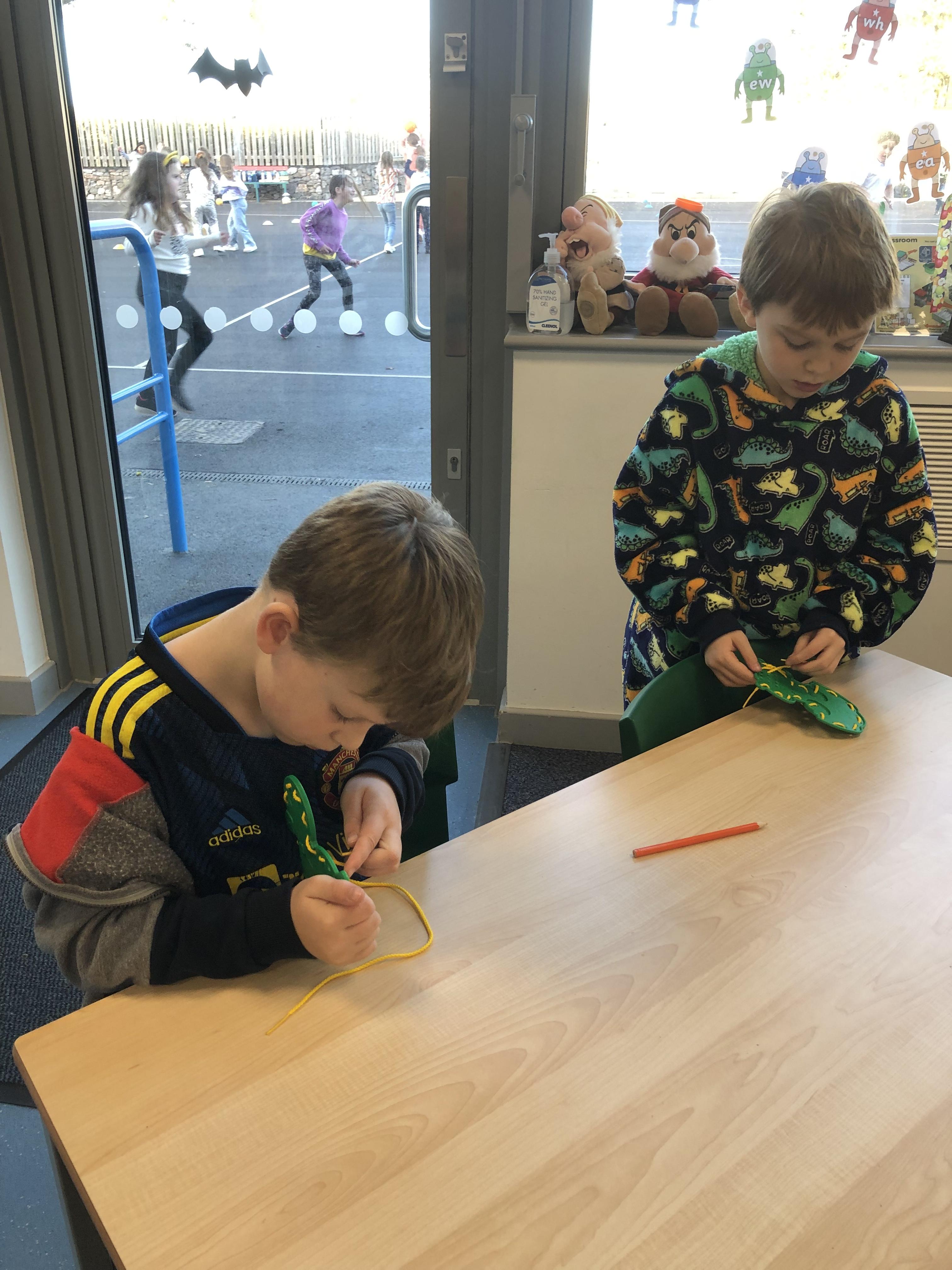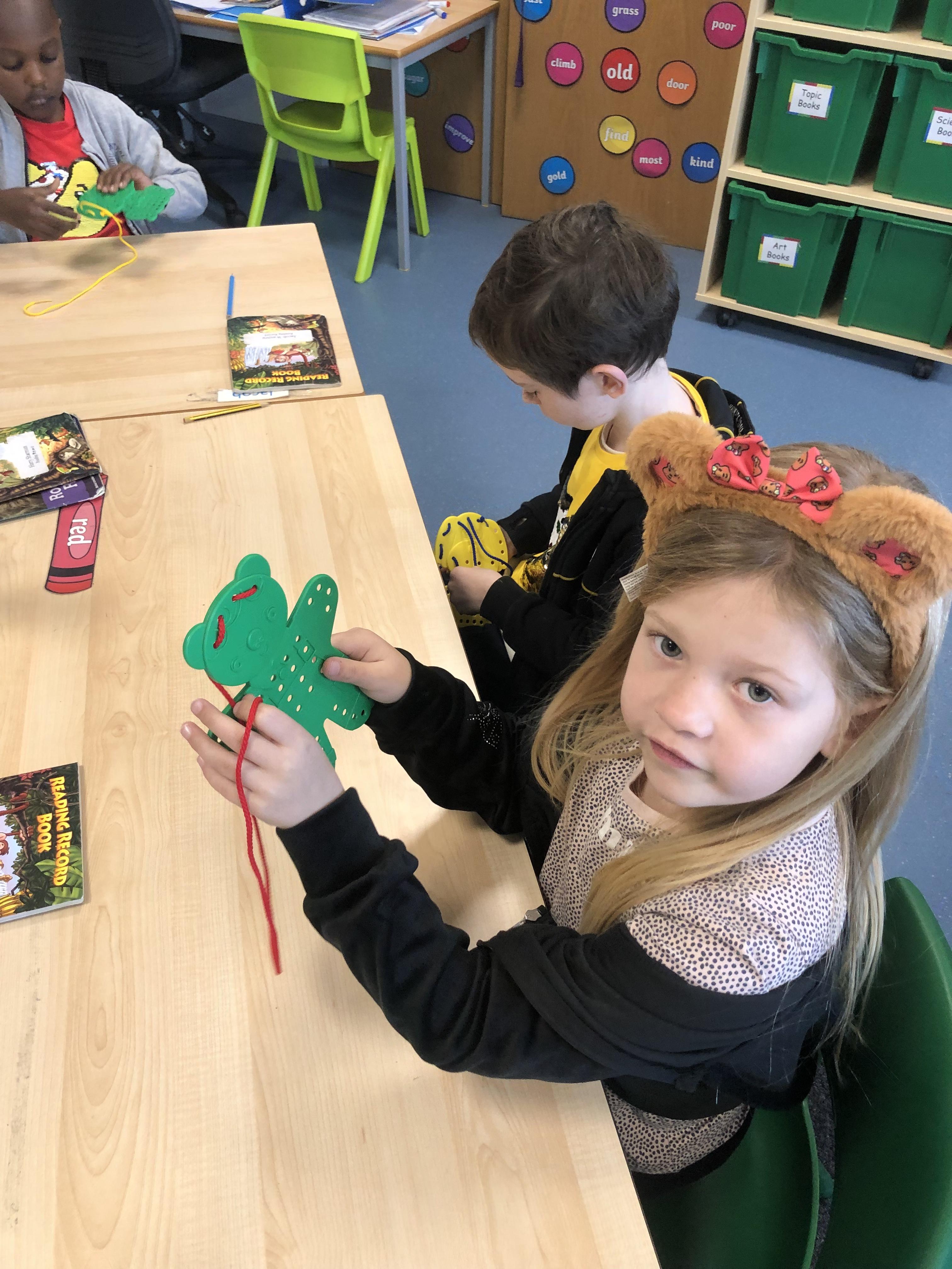 In DT this term, Mallard Class are going to make their very own Christmas tree baubles. In preparation for this, the children practised their threading skills using simple equipment.  They all had a go at practising 2 different styles of sewing techniques including an over stitch.