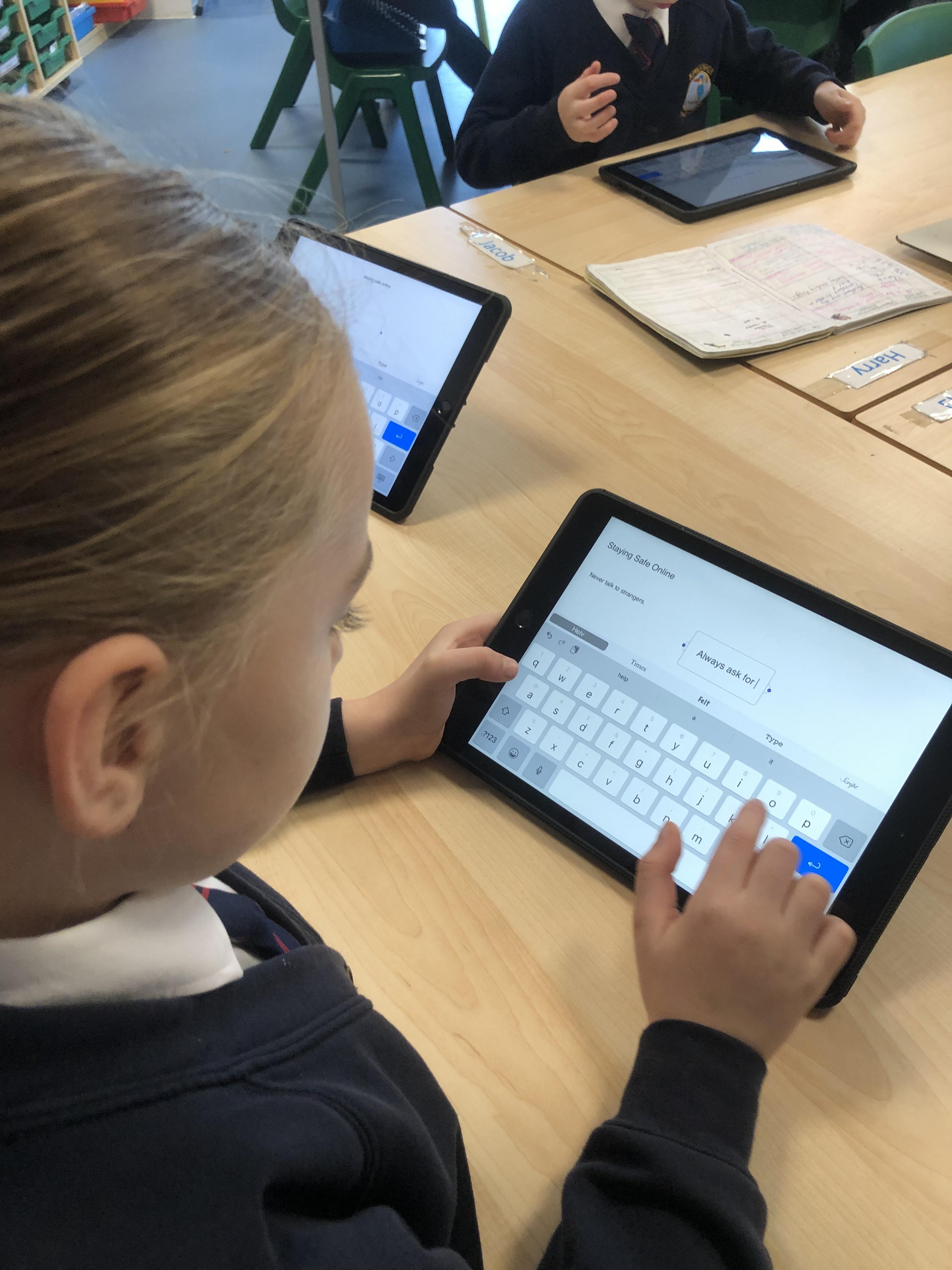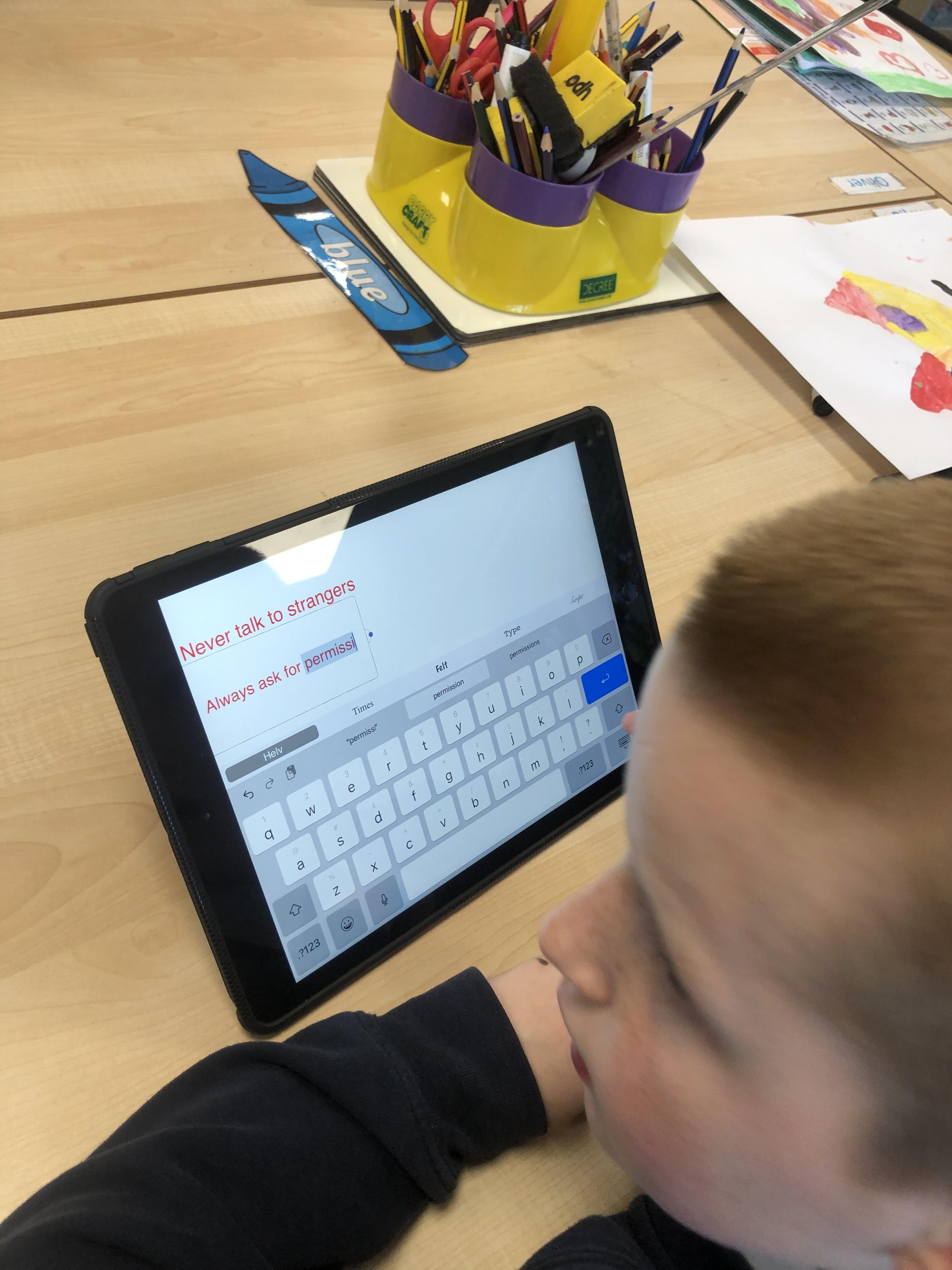 In Computing today, we discussed as a class how we can stay safe online. The children then applied the skills that they have learnt over the past couple of lessons to create an online safety poster on the DoodleBuddy app. The children used text in their posters making sure to use Caps Lock, Space Bar and full stops. They also included pictures and drawings.