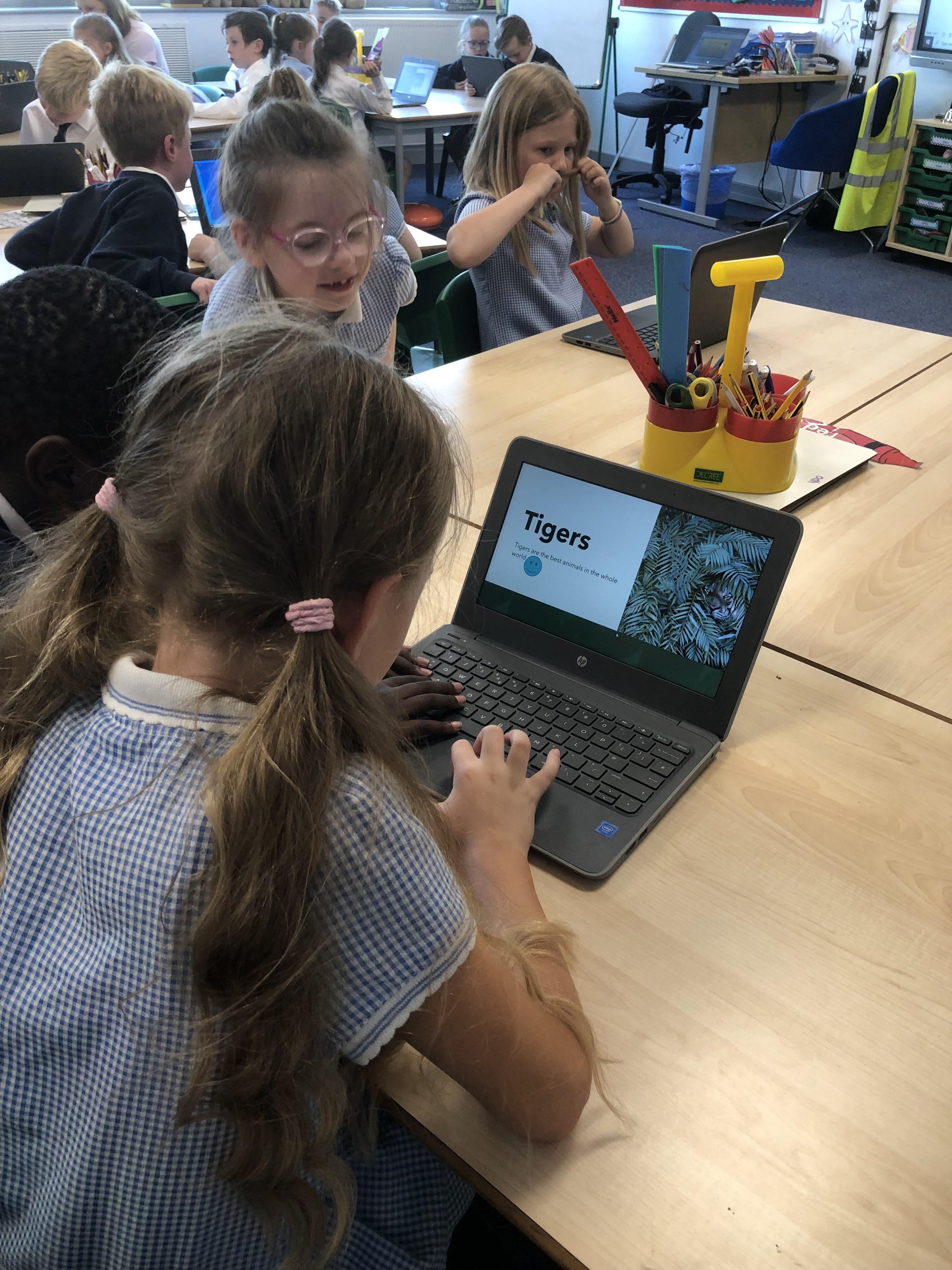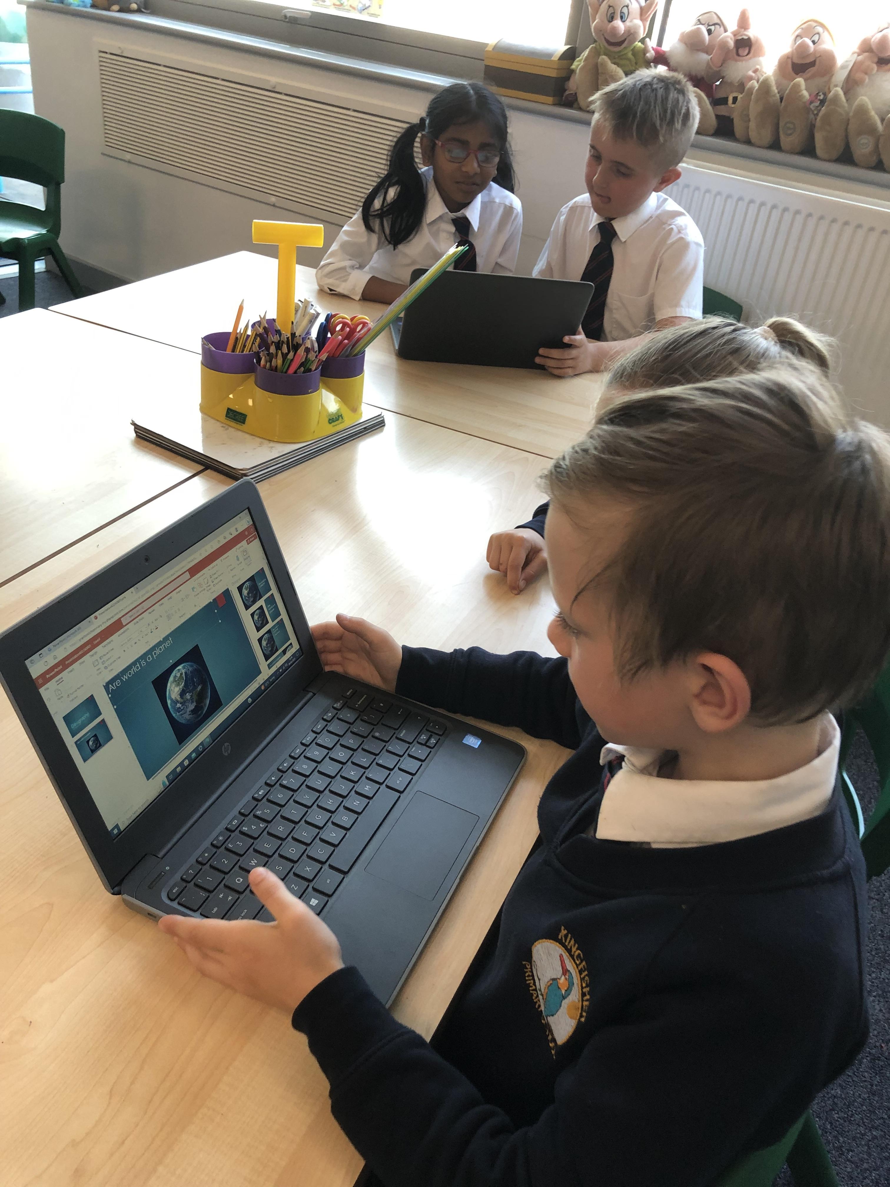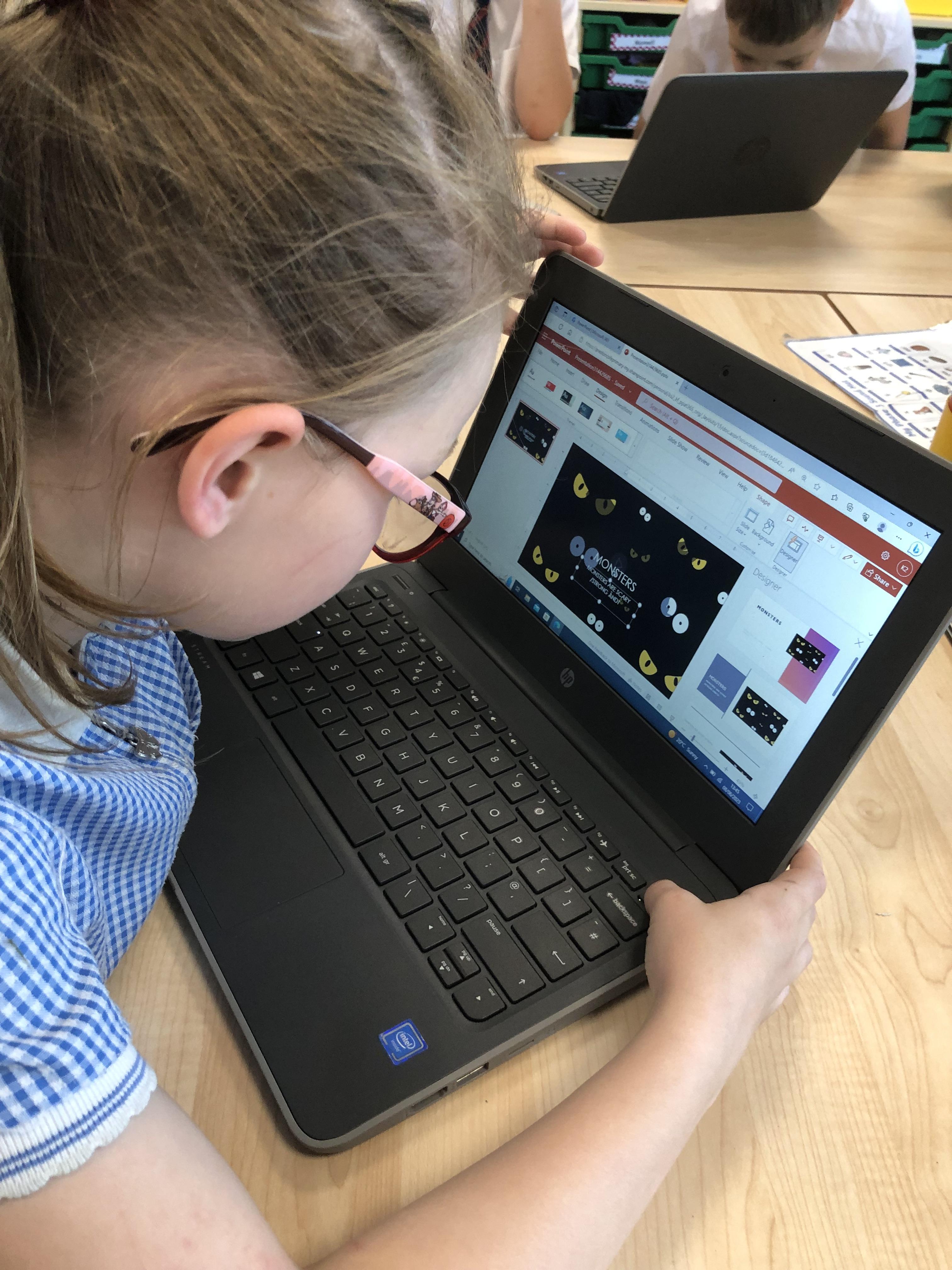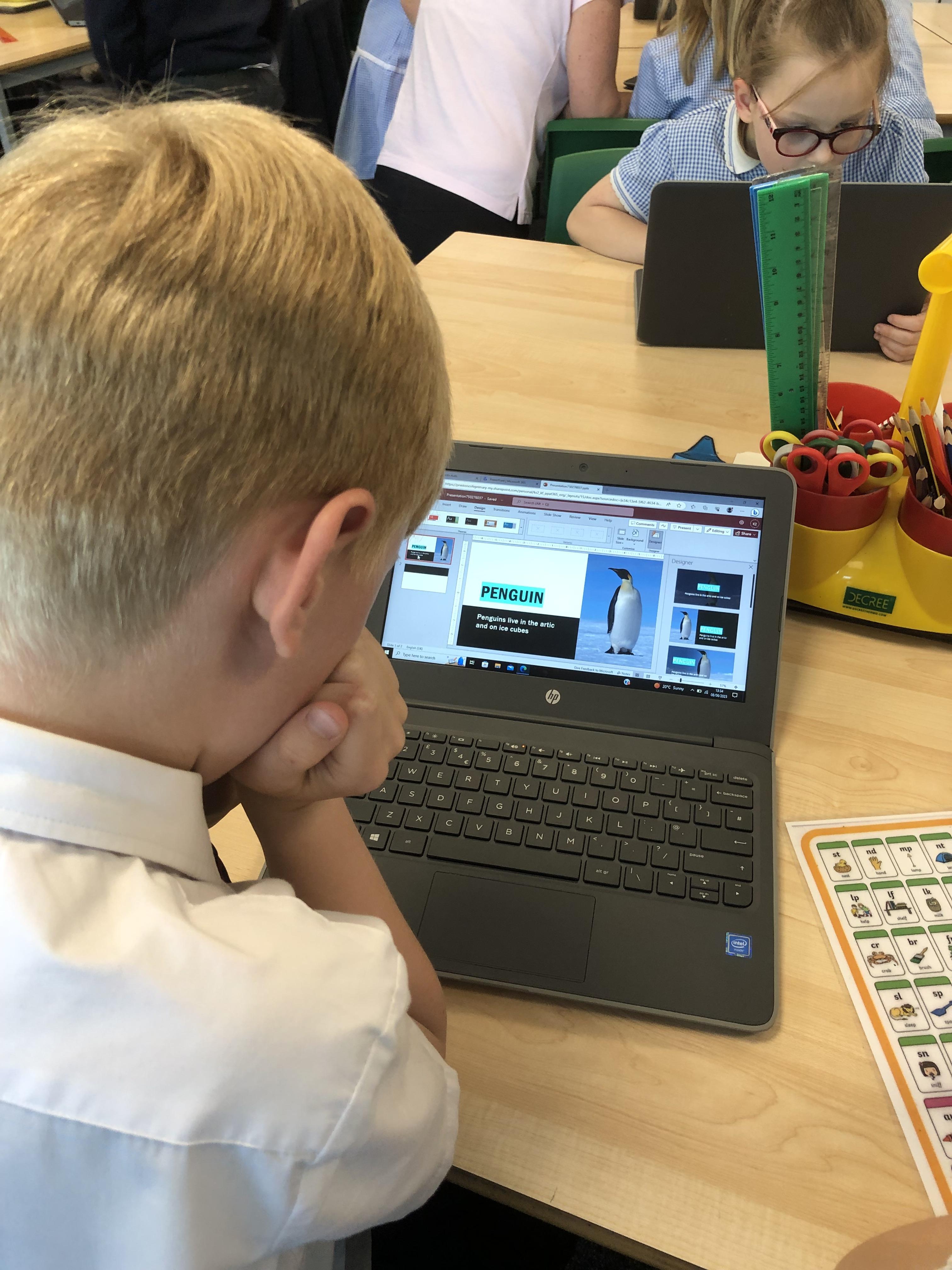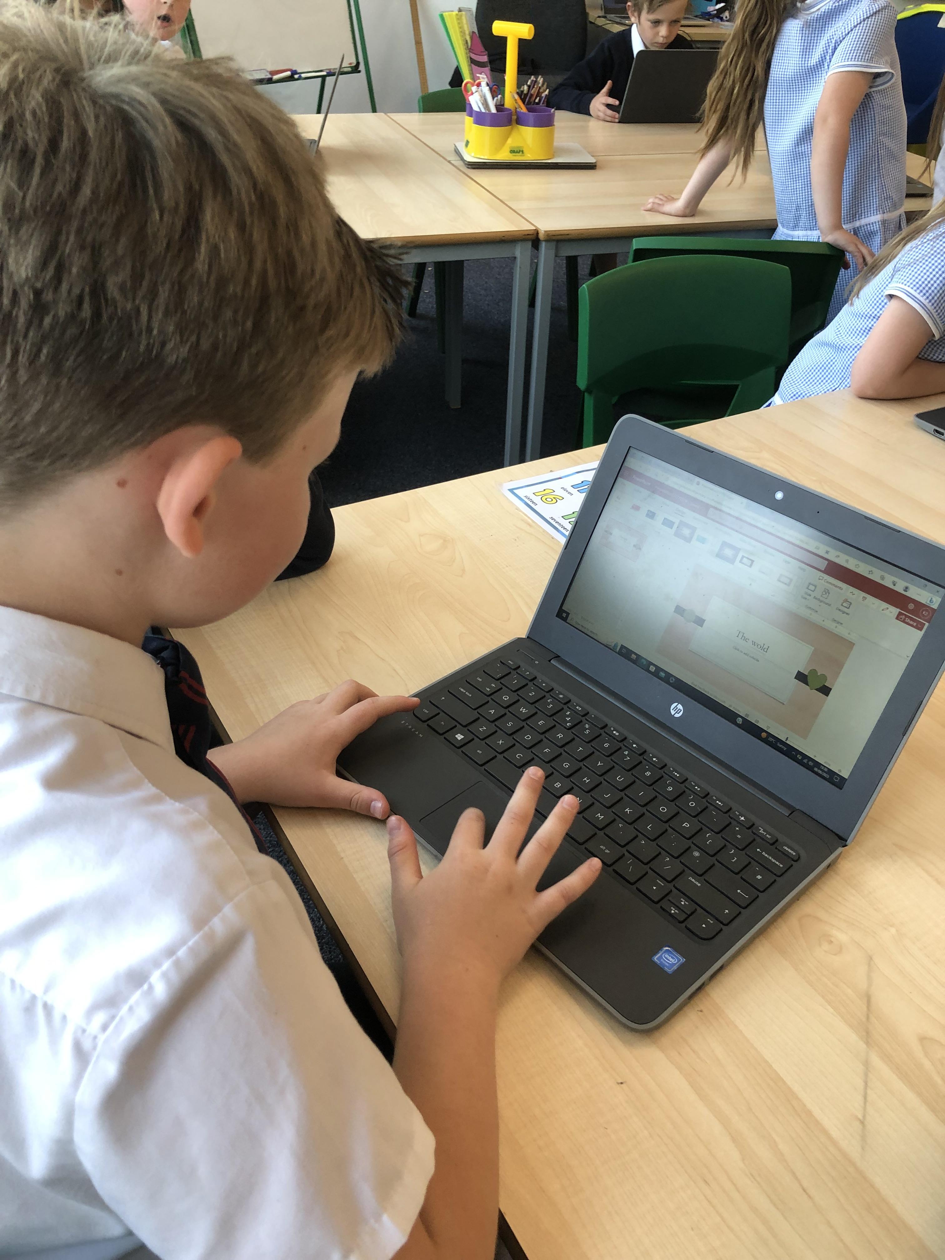 Today, the children were learning about the different ways in which we can present information using technology. Using the laptops, the class worked in pairs to create their own PowerPoints, exploring all the different functions including adding text, changing font size, position and colour, formatting backgrounds, adding pictures and even using animations. I was so impressed with how they worked together so brilliantly and the amazing PowerPoints they created!