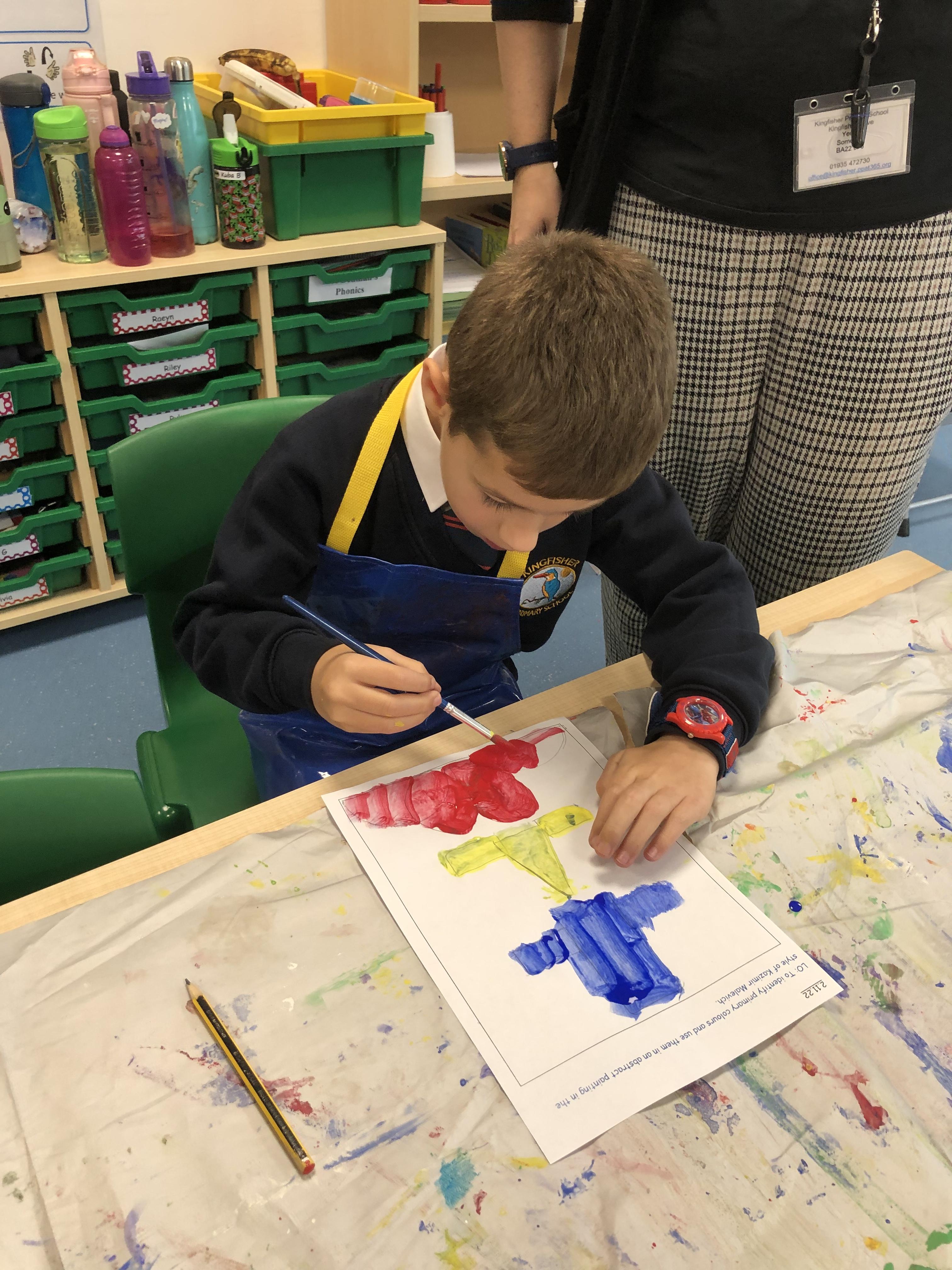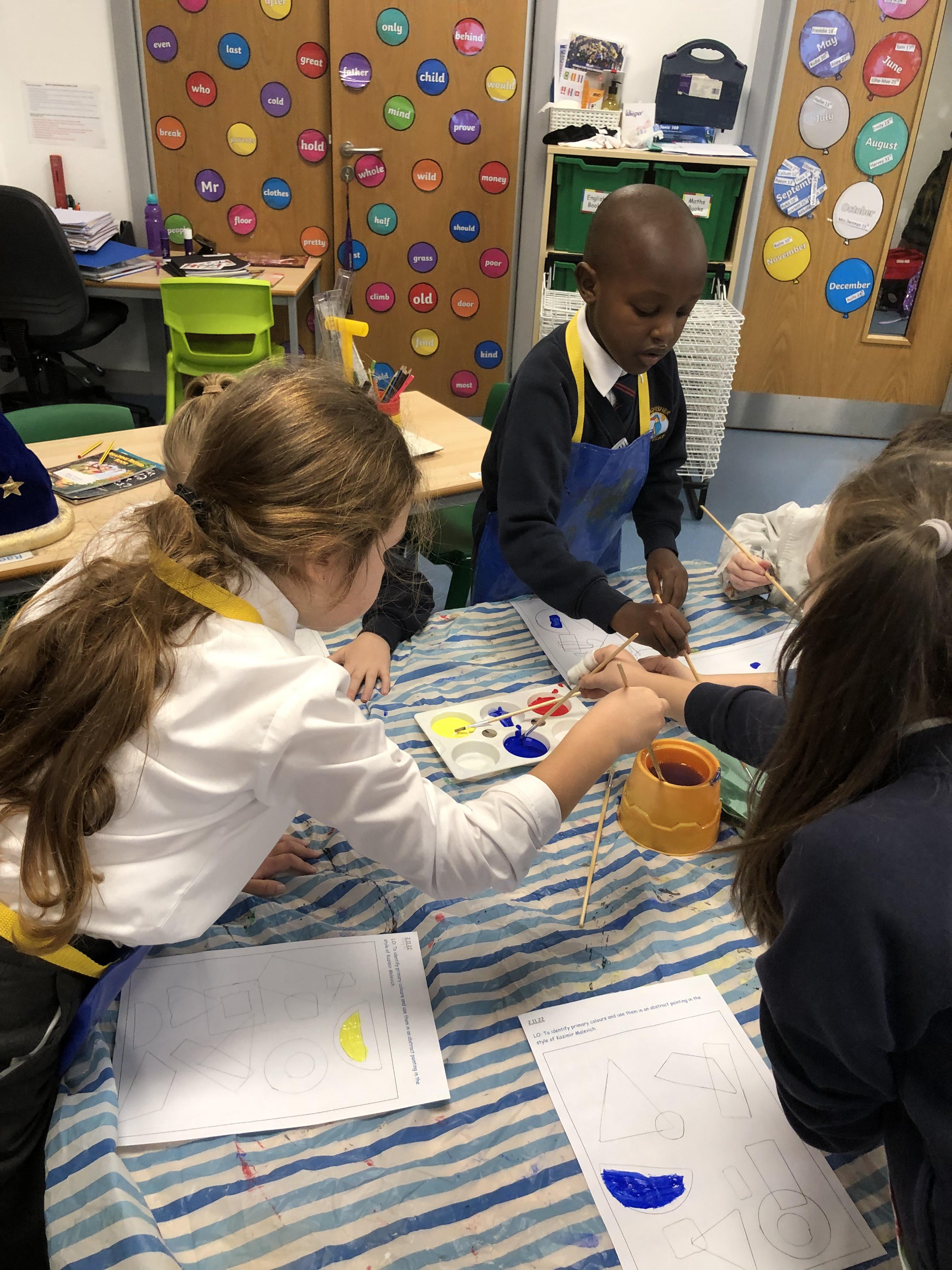 In Art this term, our focus is painting. Today, the children were learning all about primary colours. We looked at the art work of various famous artists including Kazimir Malevich and the children had a go at replicating his work using only primary colours. I was so impressed with the children’s attention to detail and the care and effort they put into their work. Well done, everyone!