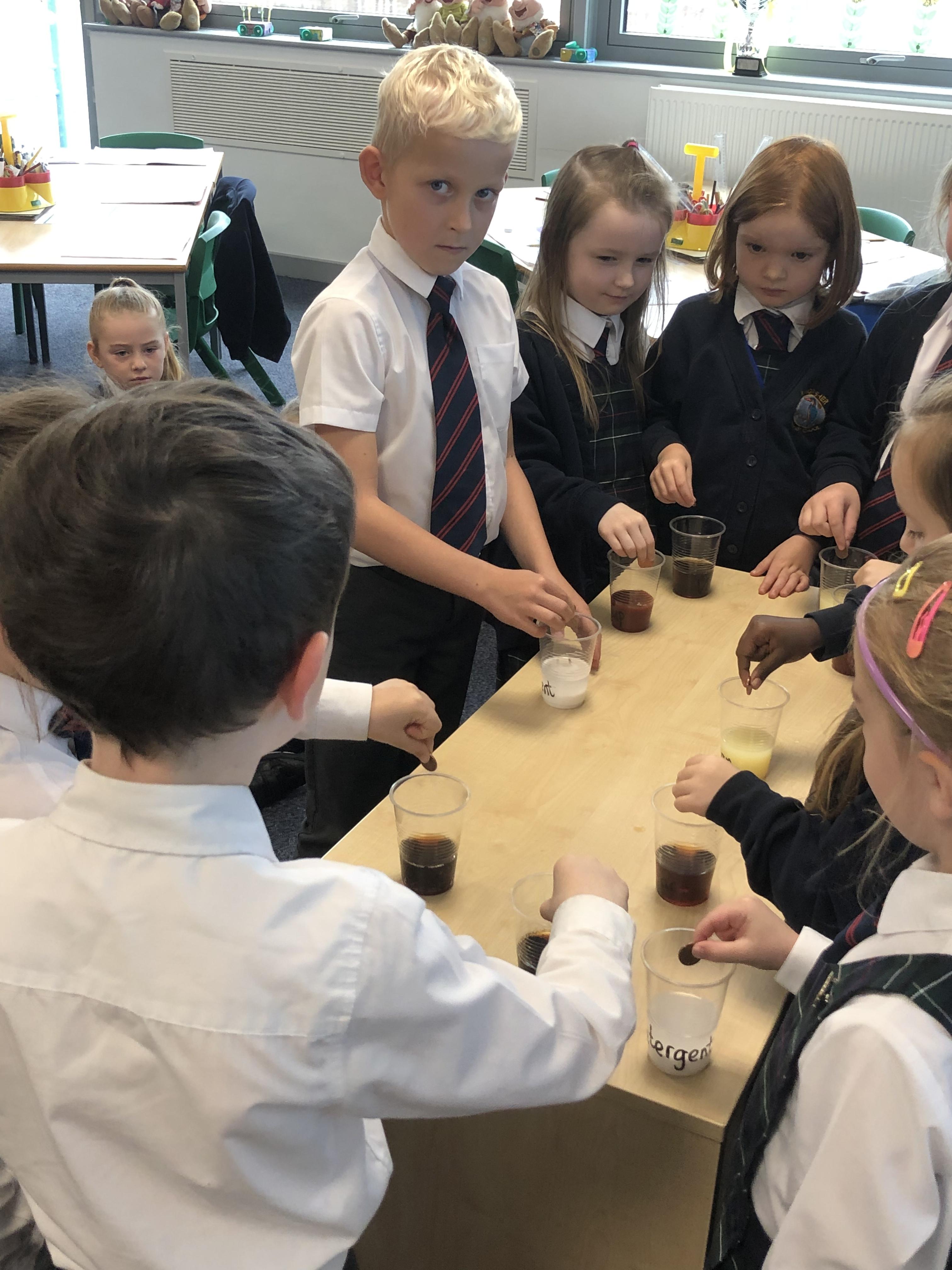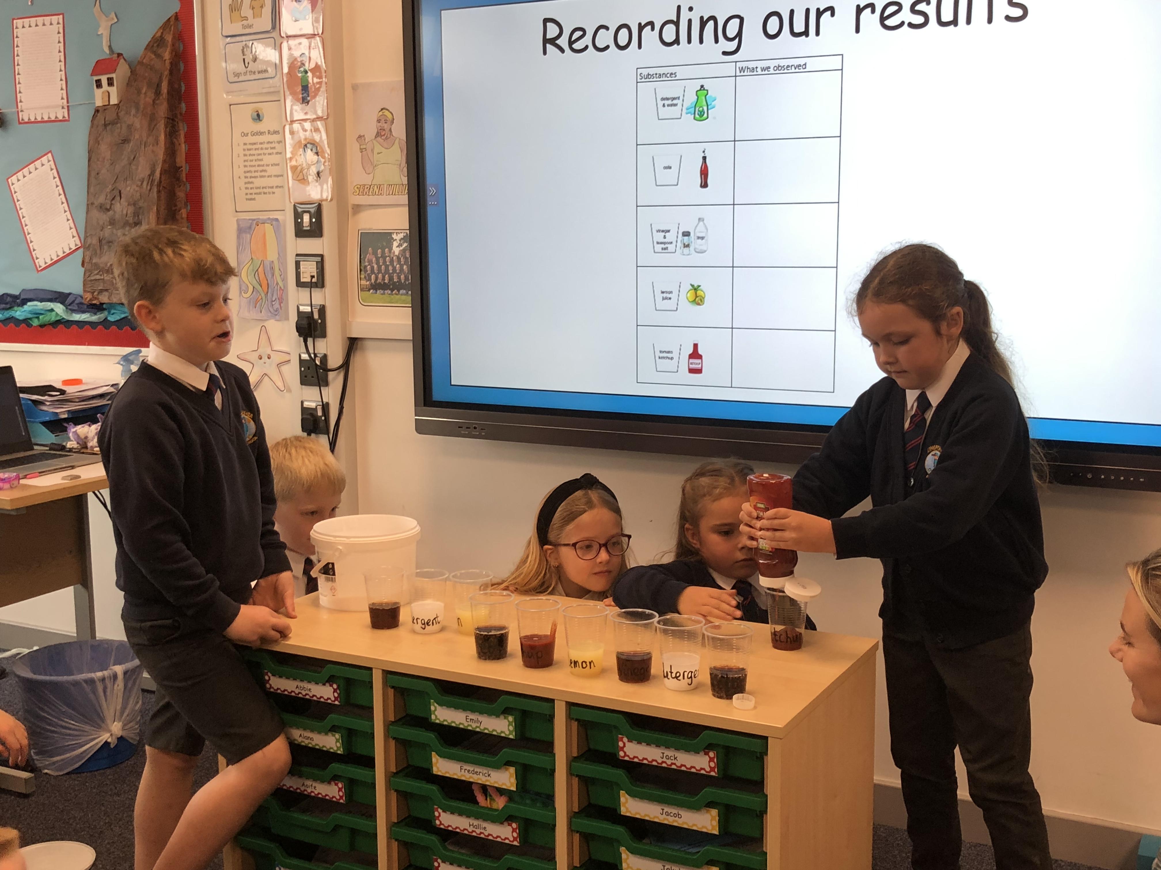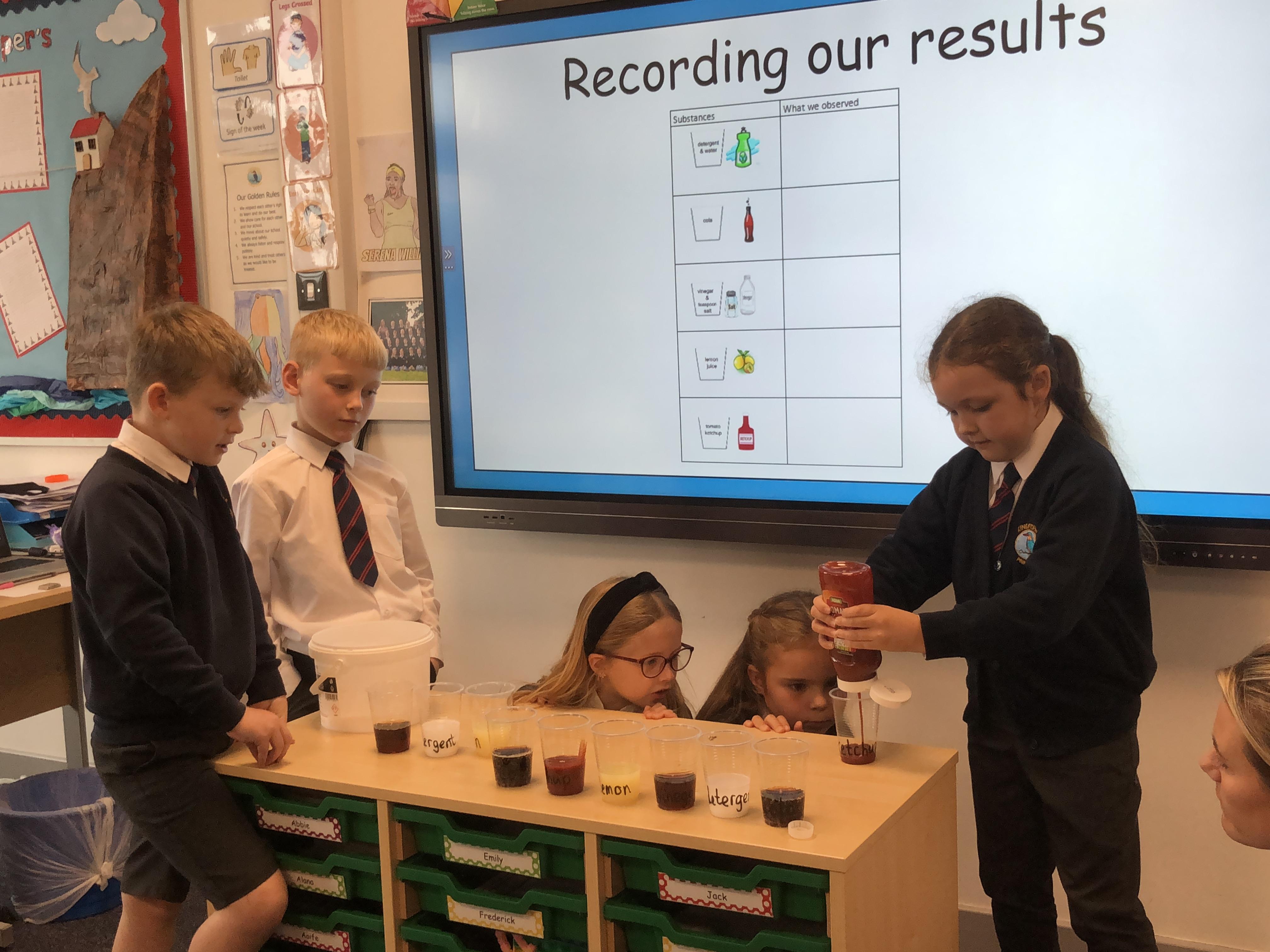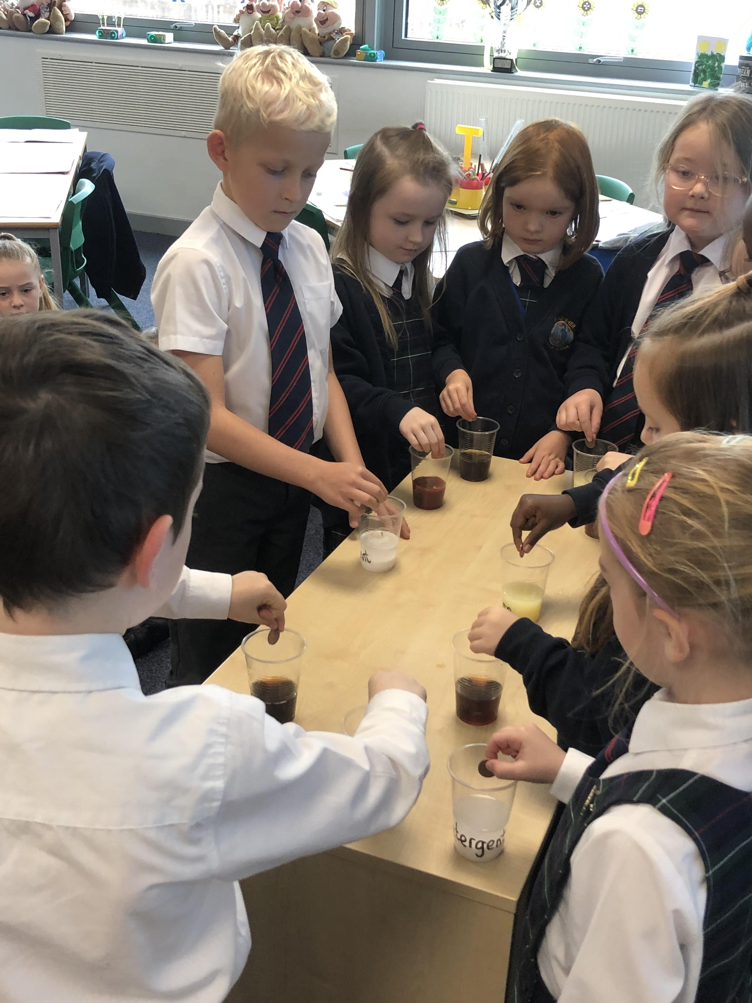 In Science today, the children conducted a test to find out which substance would be best for cleaning a penny. We tested vinegar with a pinch of salt, washing powder with water, lemon juice, cola and tomato ketchup. Before conducting the test the children made their predictions. To make sure it was a fair test, we distributed the different substances equally and left the pennies in each of the substances for the same amount of time. When we revealed the pennies, we were all very surprised by the results. The majority of the class felt that the washing powder would be the most effective at cleaning a penny because it is used for cleaning but the results showed that actually tomato ketchup was the best at cleaning a penny. We concluded that tomato ketchup was the best because of its acidity.
