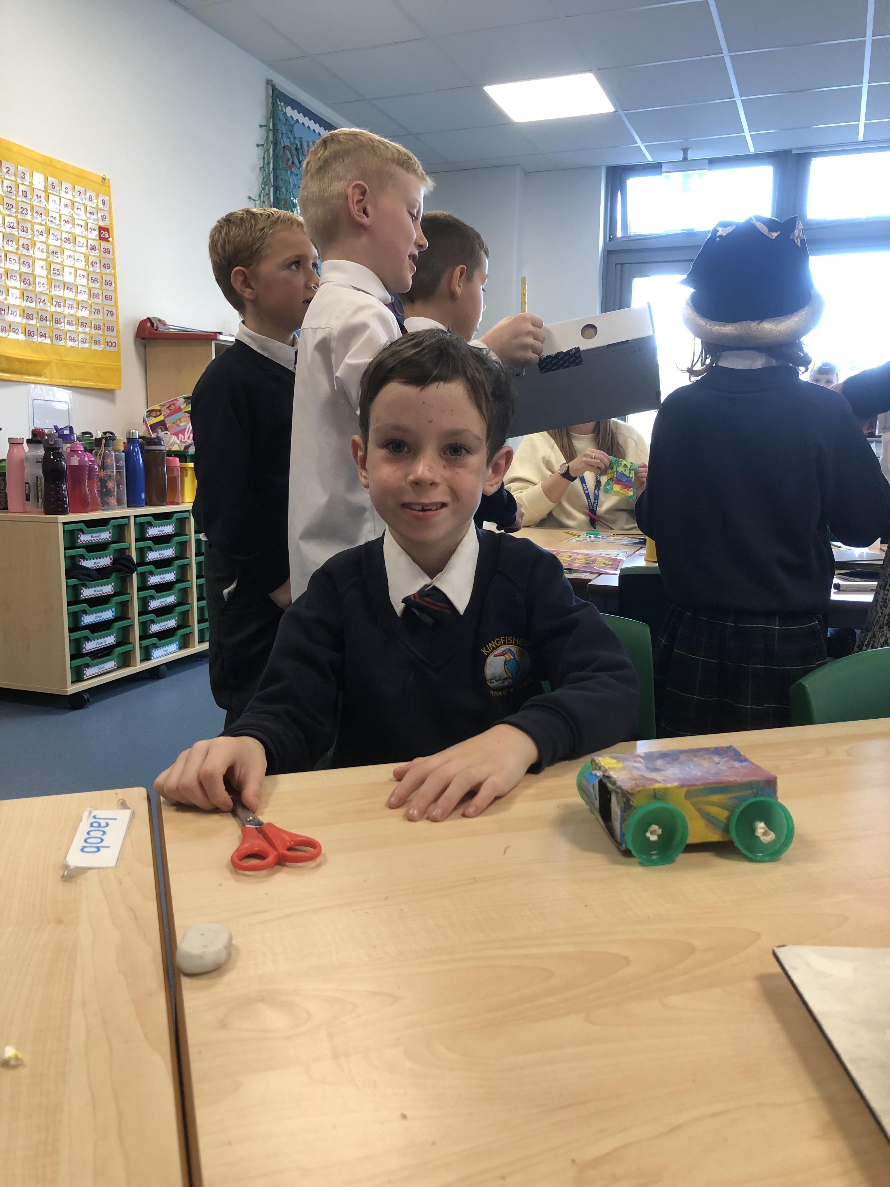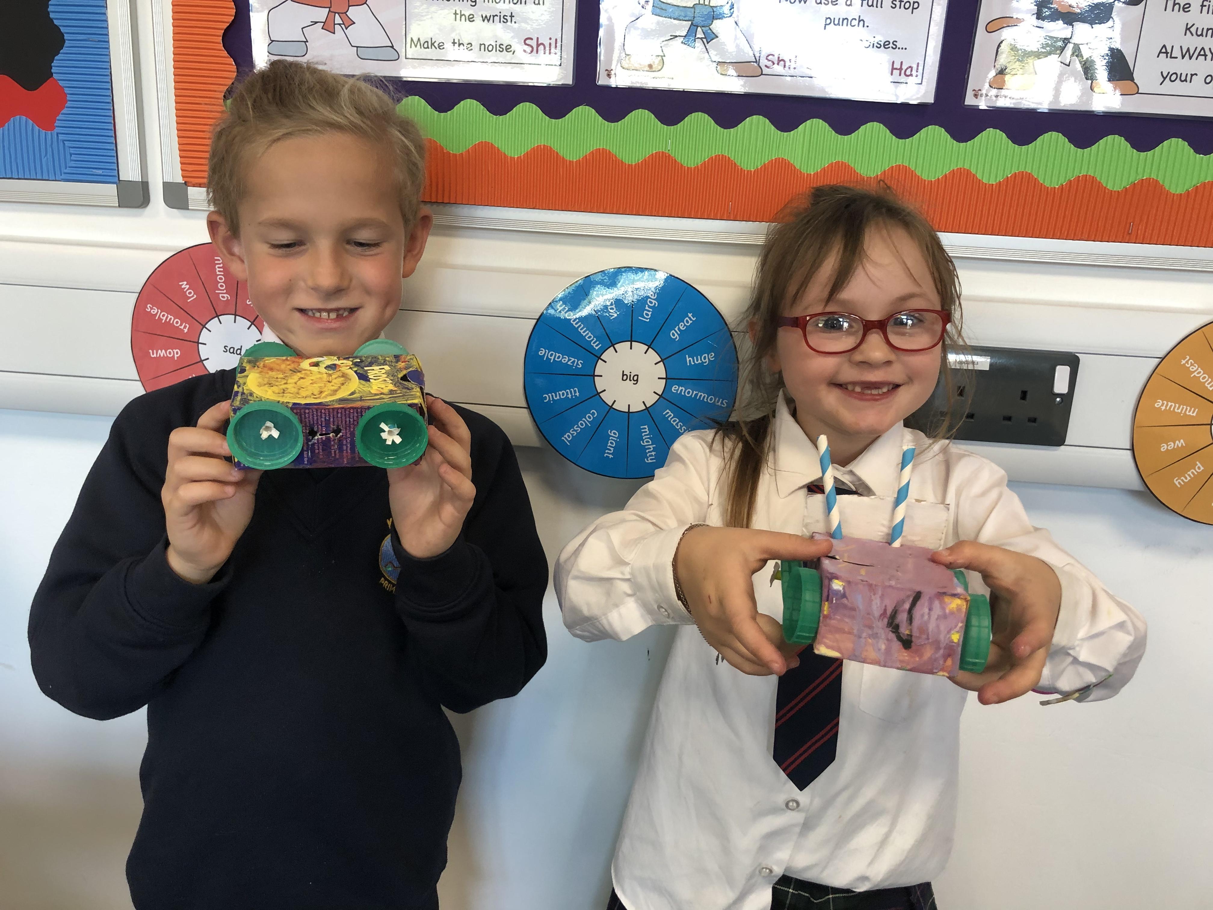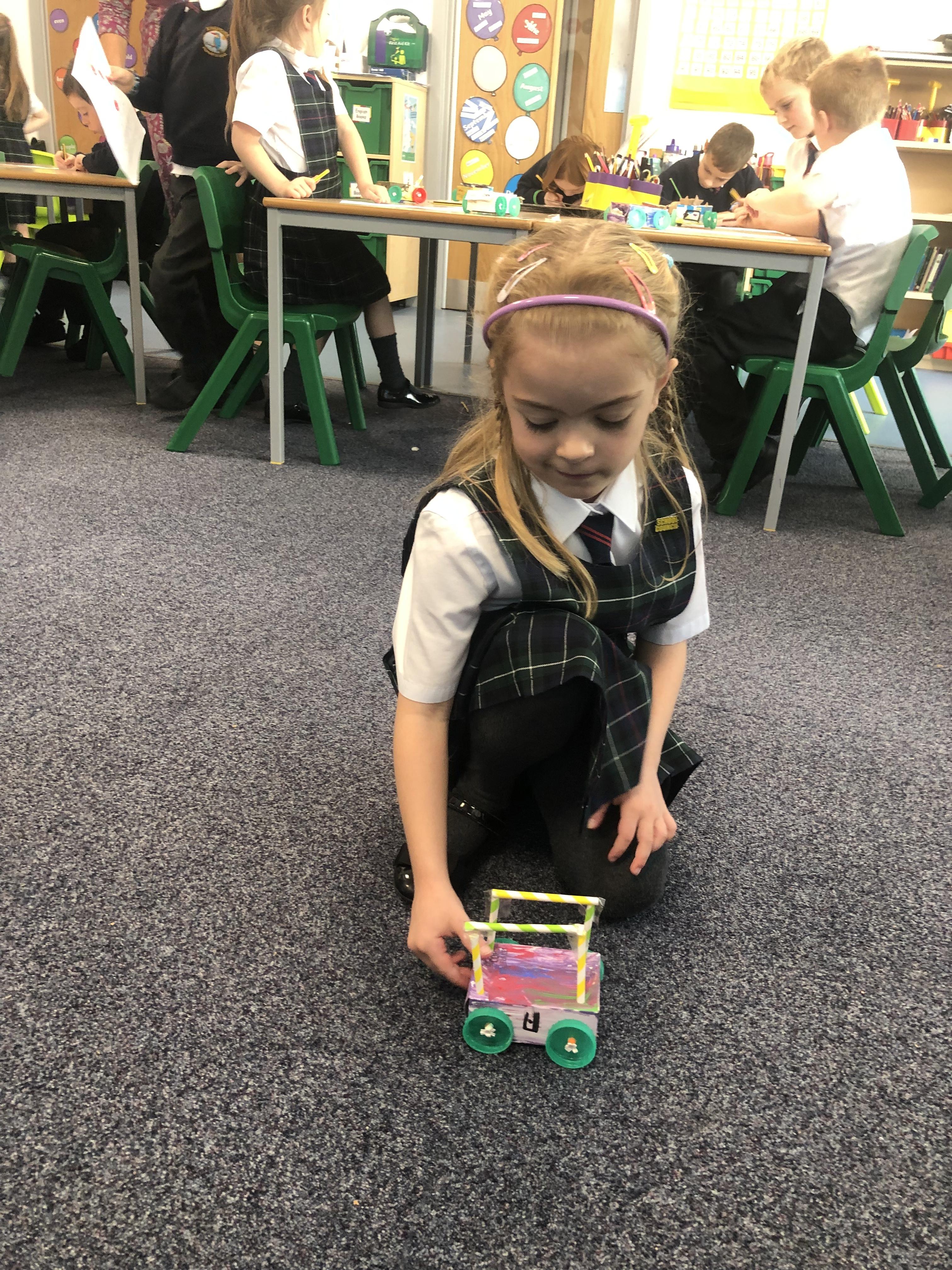 In DT this term, the children have enjoyed designing and making their moving vehicles. Before making their vehicles the children explored a range of different moving vehicles from ambulances to trolleys. We investigated the mechanisms of vehicles including wheels, axles and chassis. The children could design and make whichever vehicle they liked and it was nice to see a range of different vehicles ranging from Army tanks to ambulances. After making their vehicles the children evaluated them based on the design criteria.