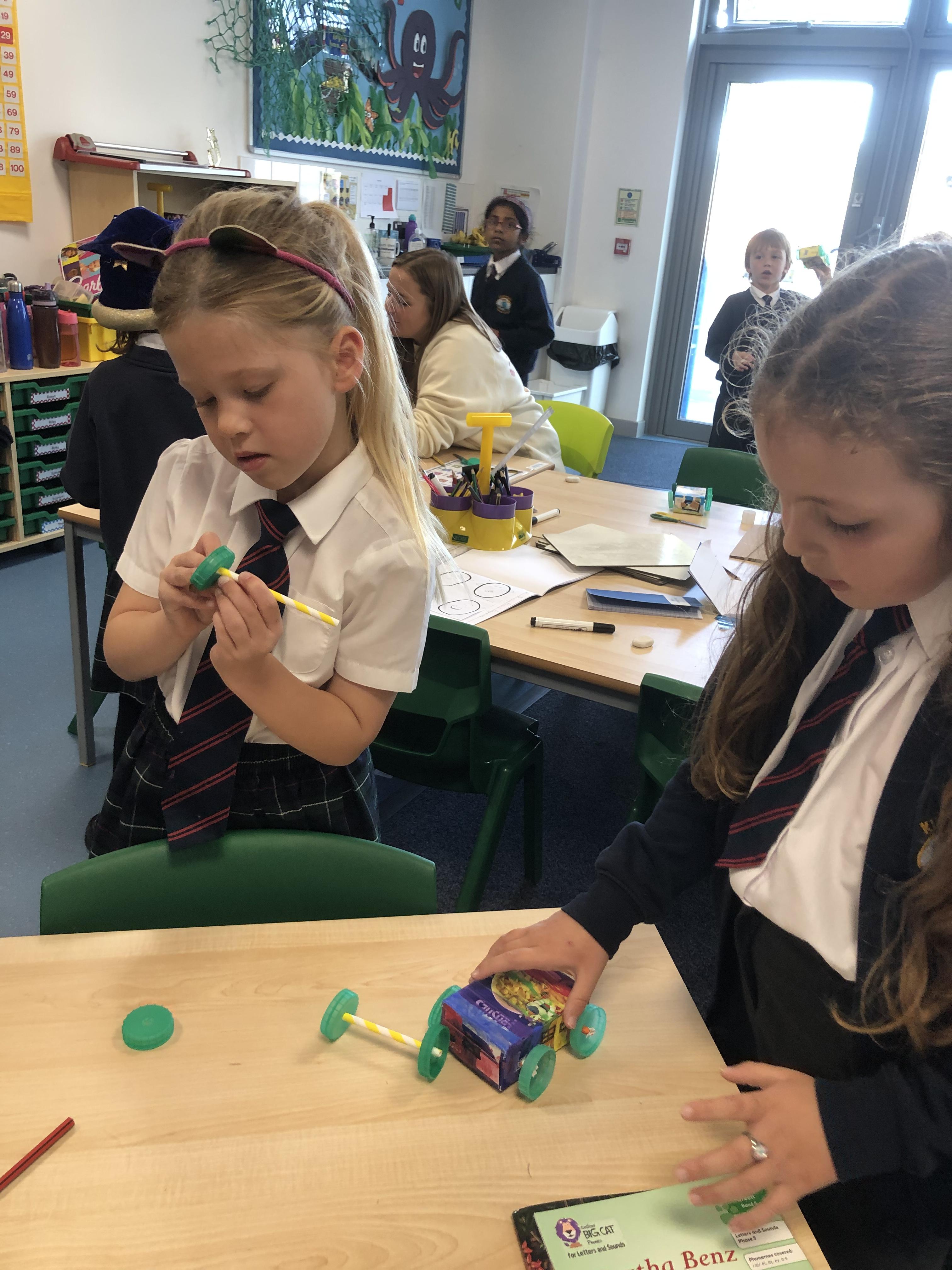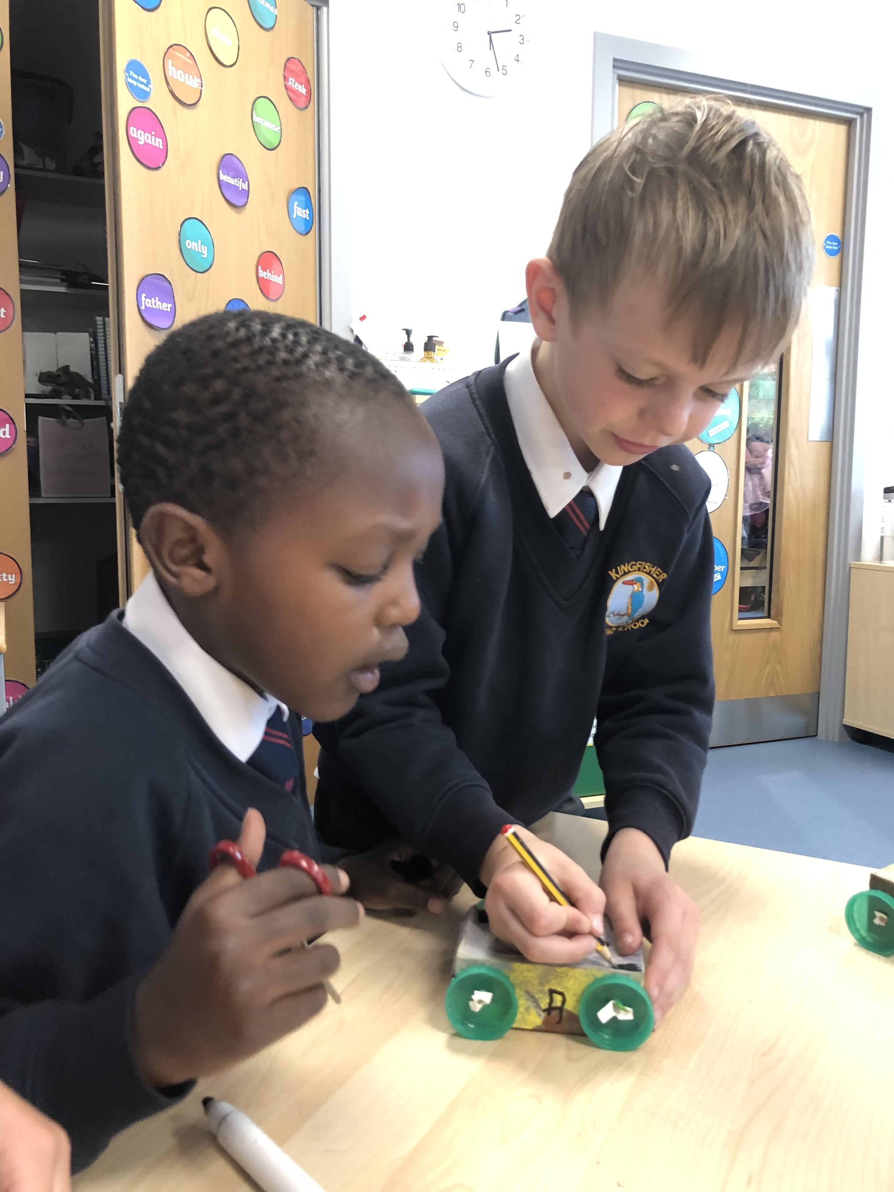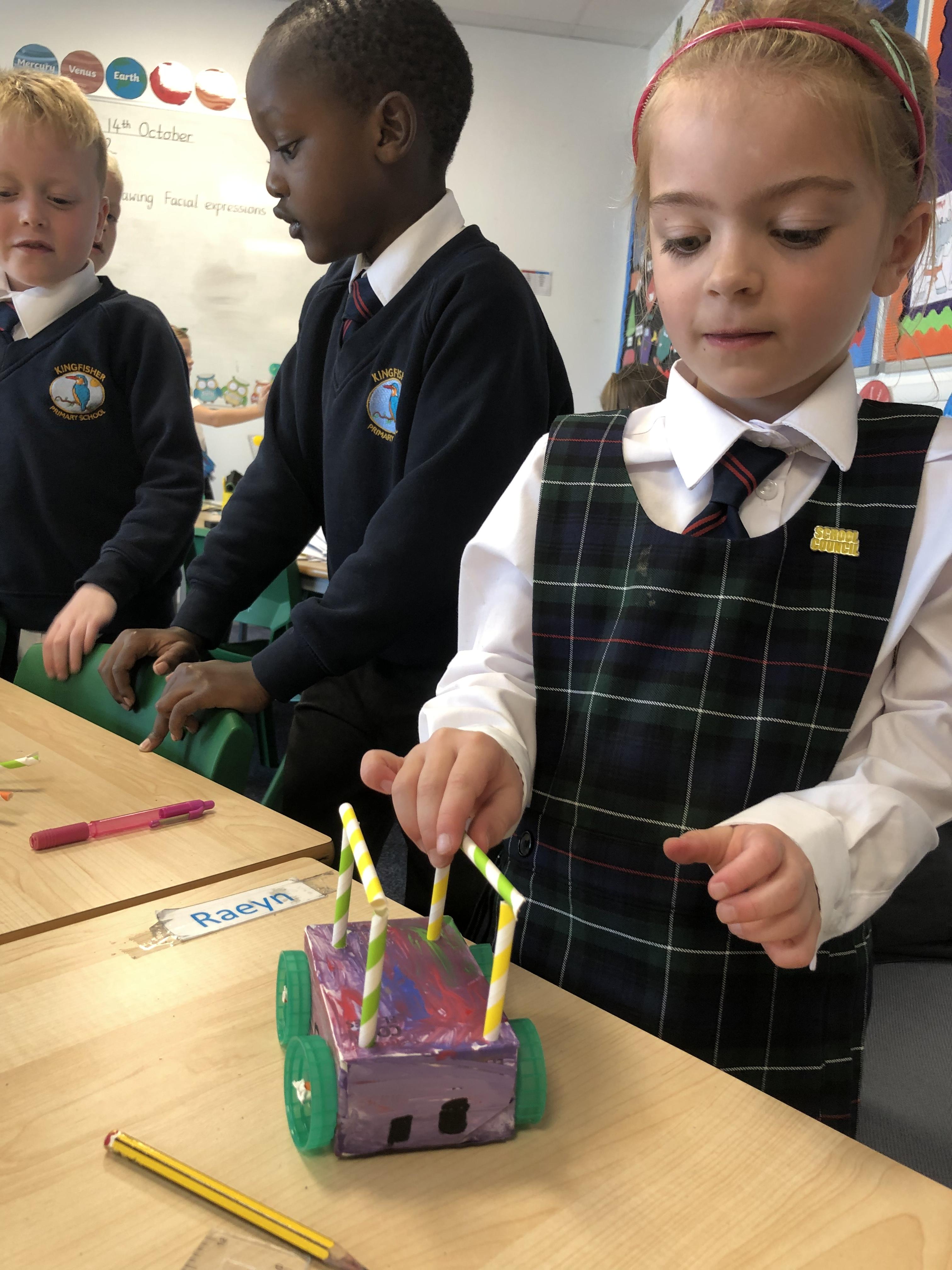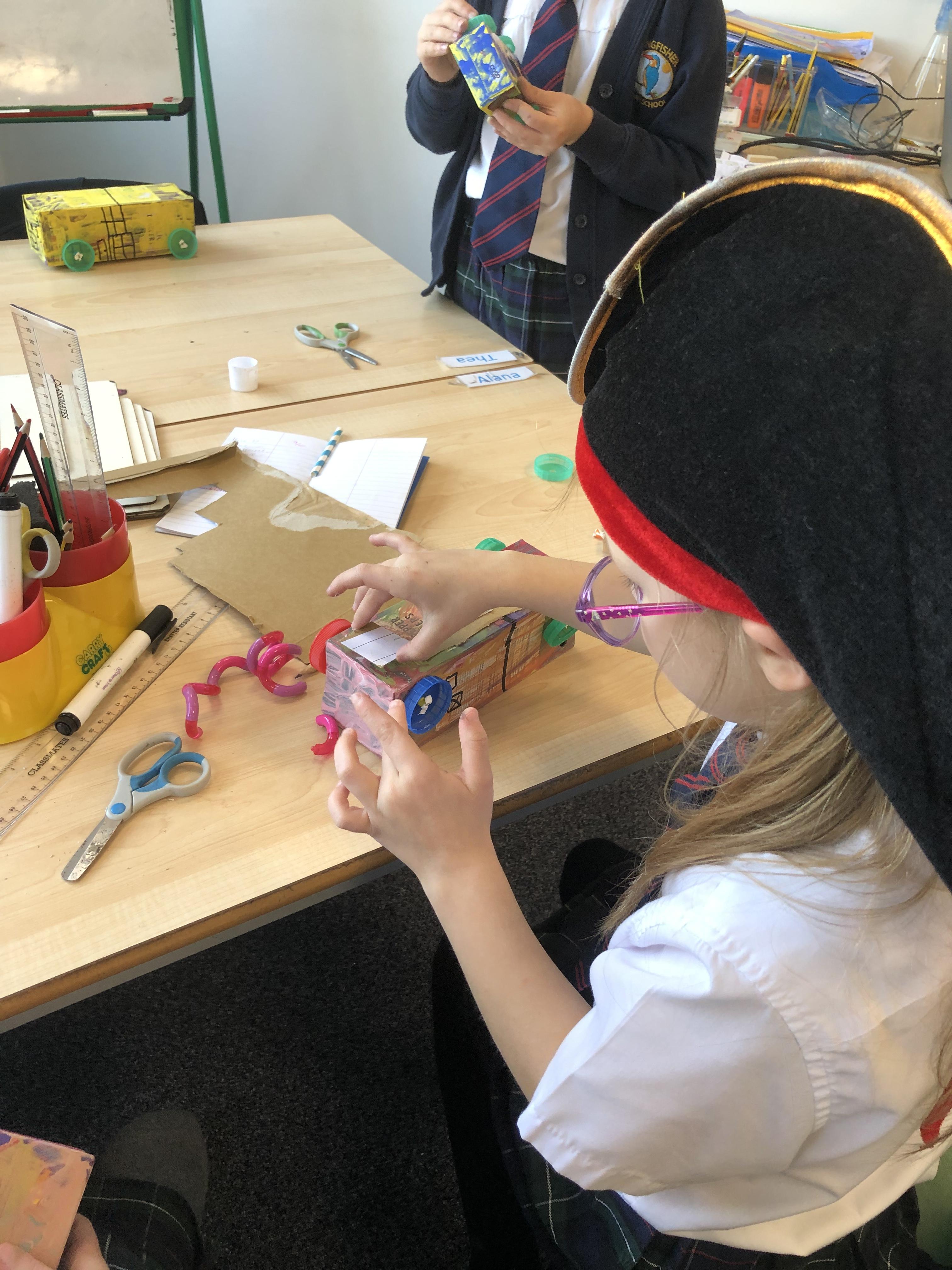 In DT this term, the children have enjoyed designing and making their moving vehicles. Before making their vehicles the children explored a range of different moving vehicles from ambulances to trolleys. We investigated the mechanisms of vehicles including wheels, axles and chassis. The children could design and make whichever vehicle they liked and it was nice to see a range of different vehicles ranging from Army tanks to ambulances. After making their vehicles the children evaluated them based on the design criteria.