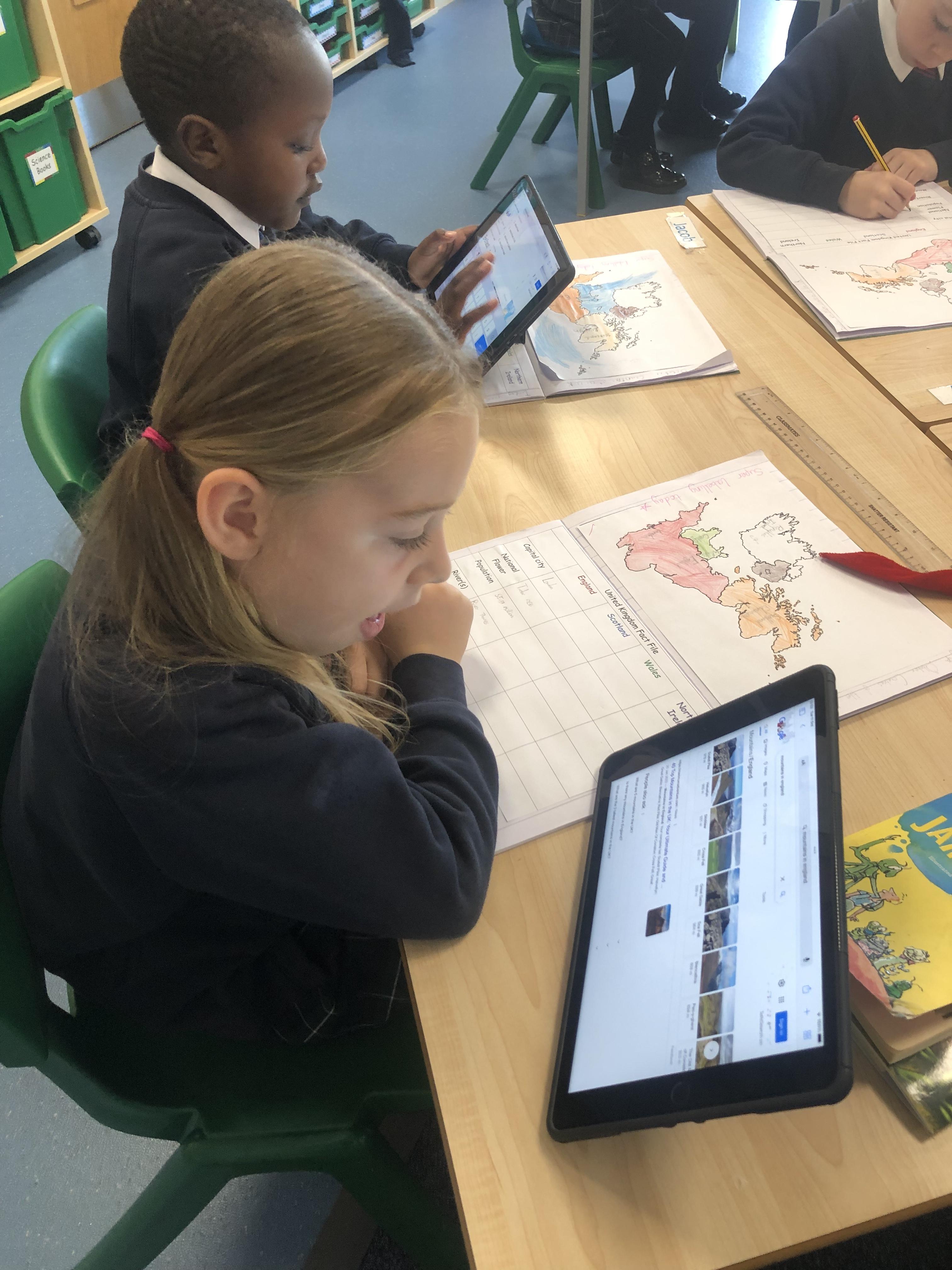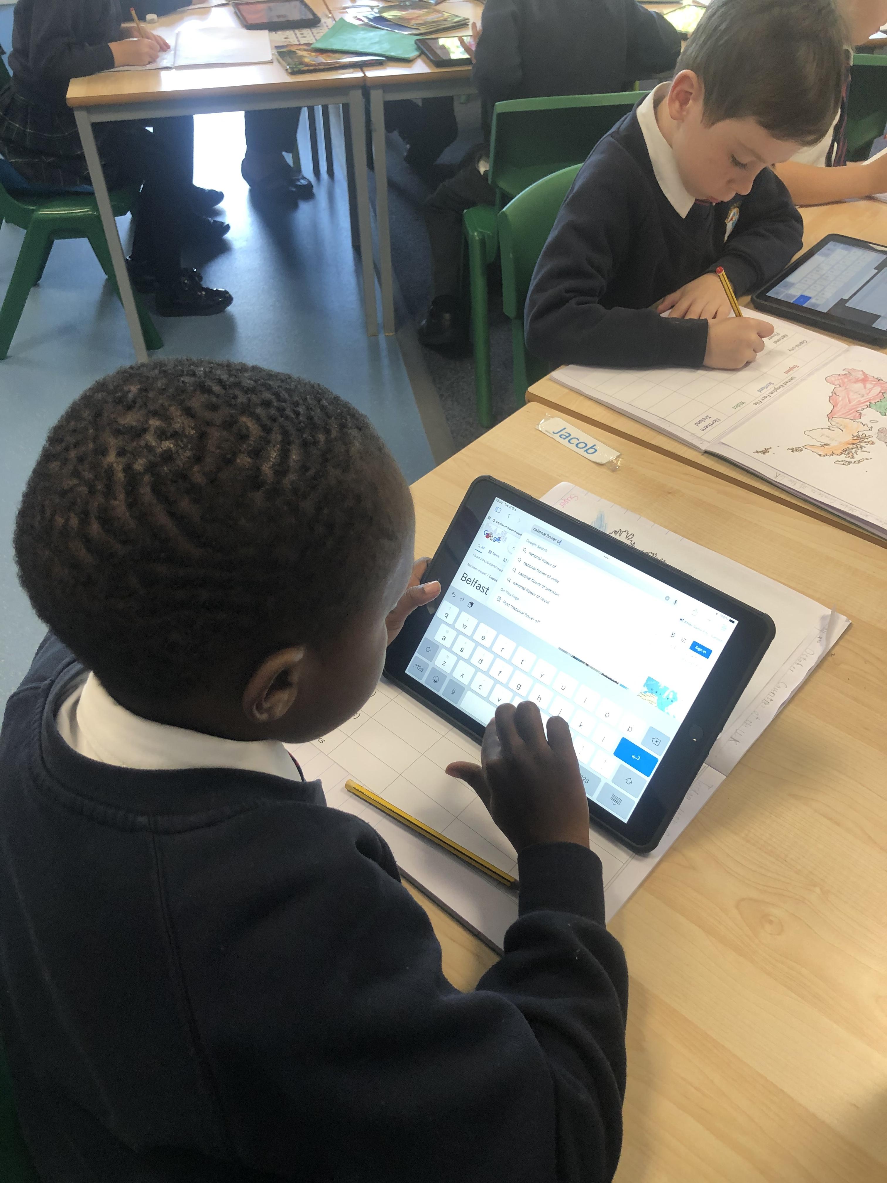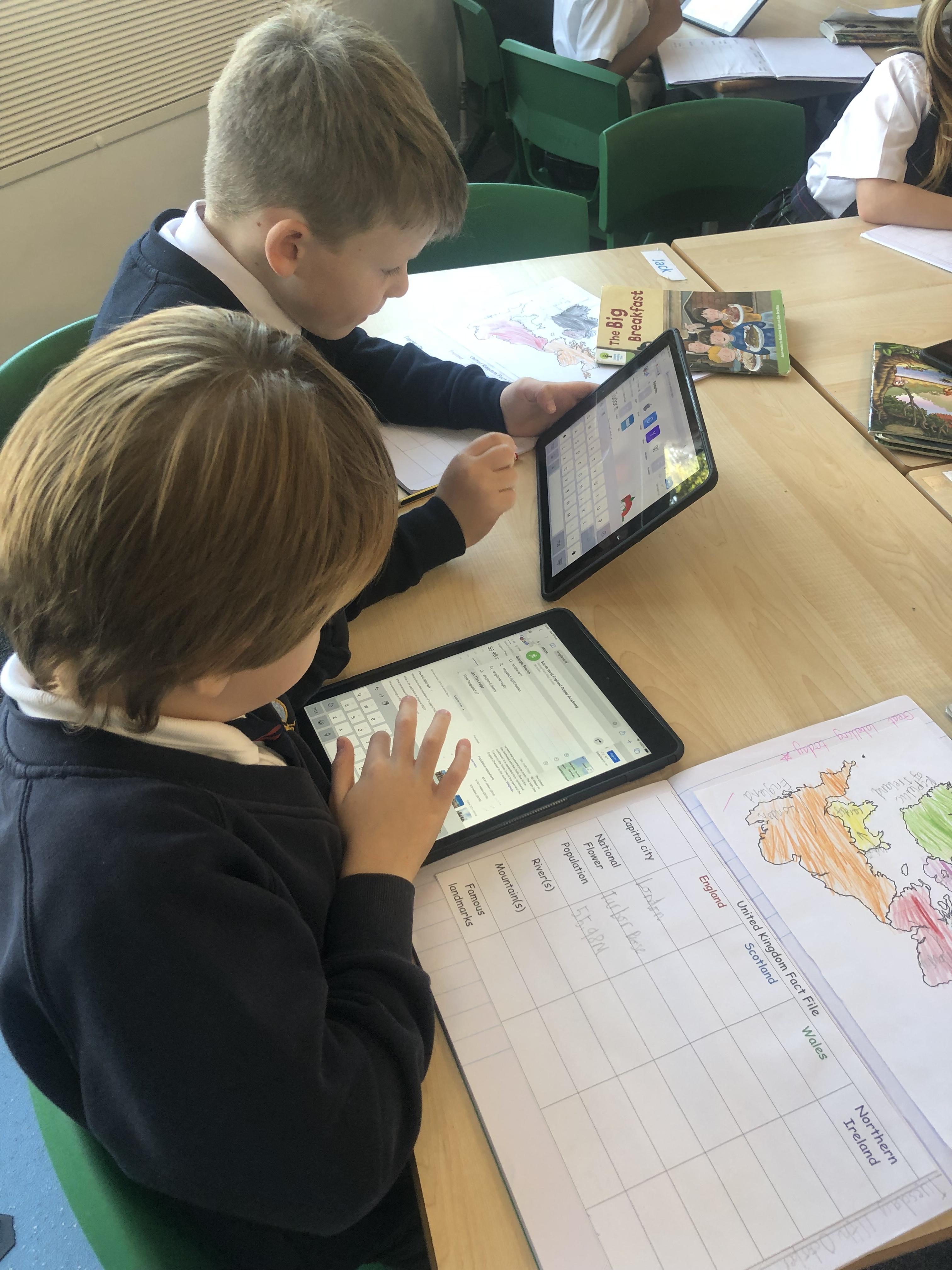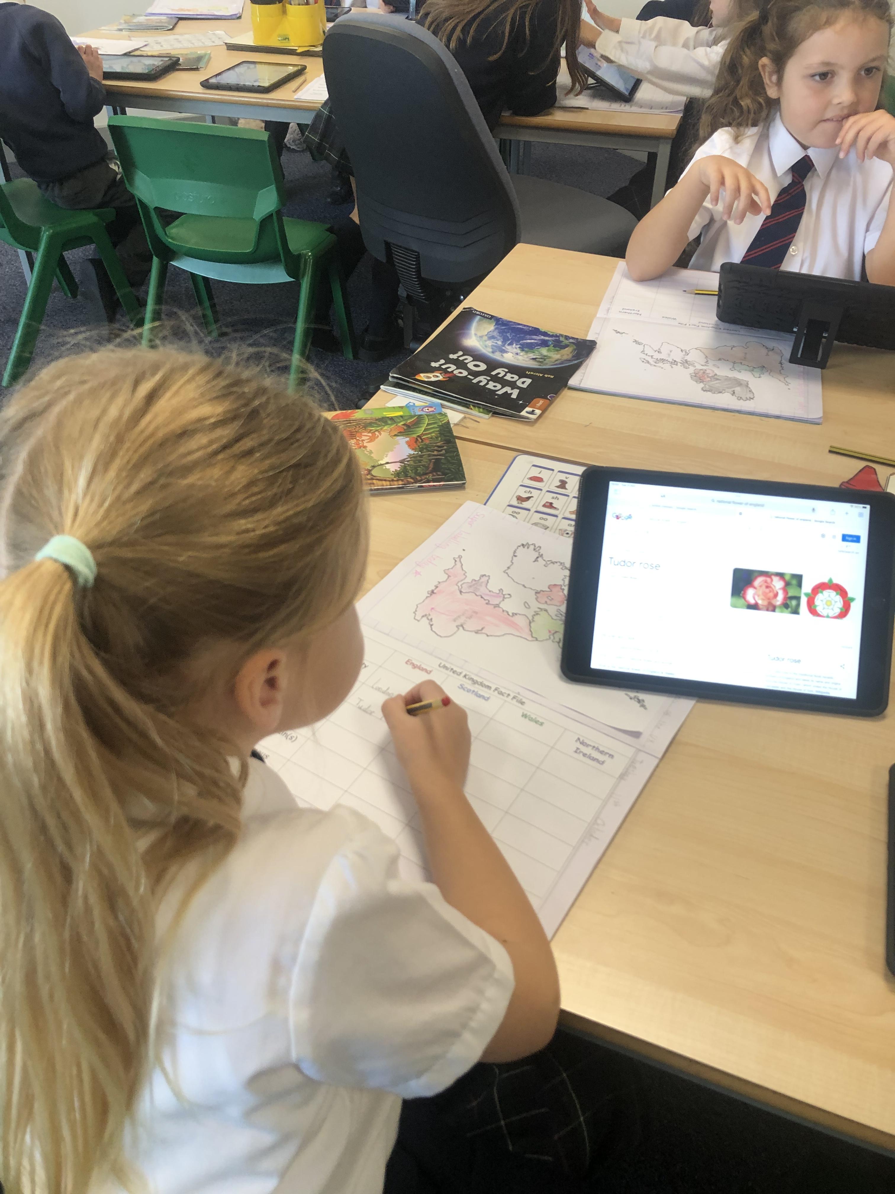 Today, the children enjoyed using the iPads to research the different countries in the UK. For each country, the children completed a fact file which included information about capitals, population,  National flowers, rivers and mountains. They also explored the famous landmarks for each country.