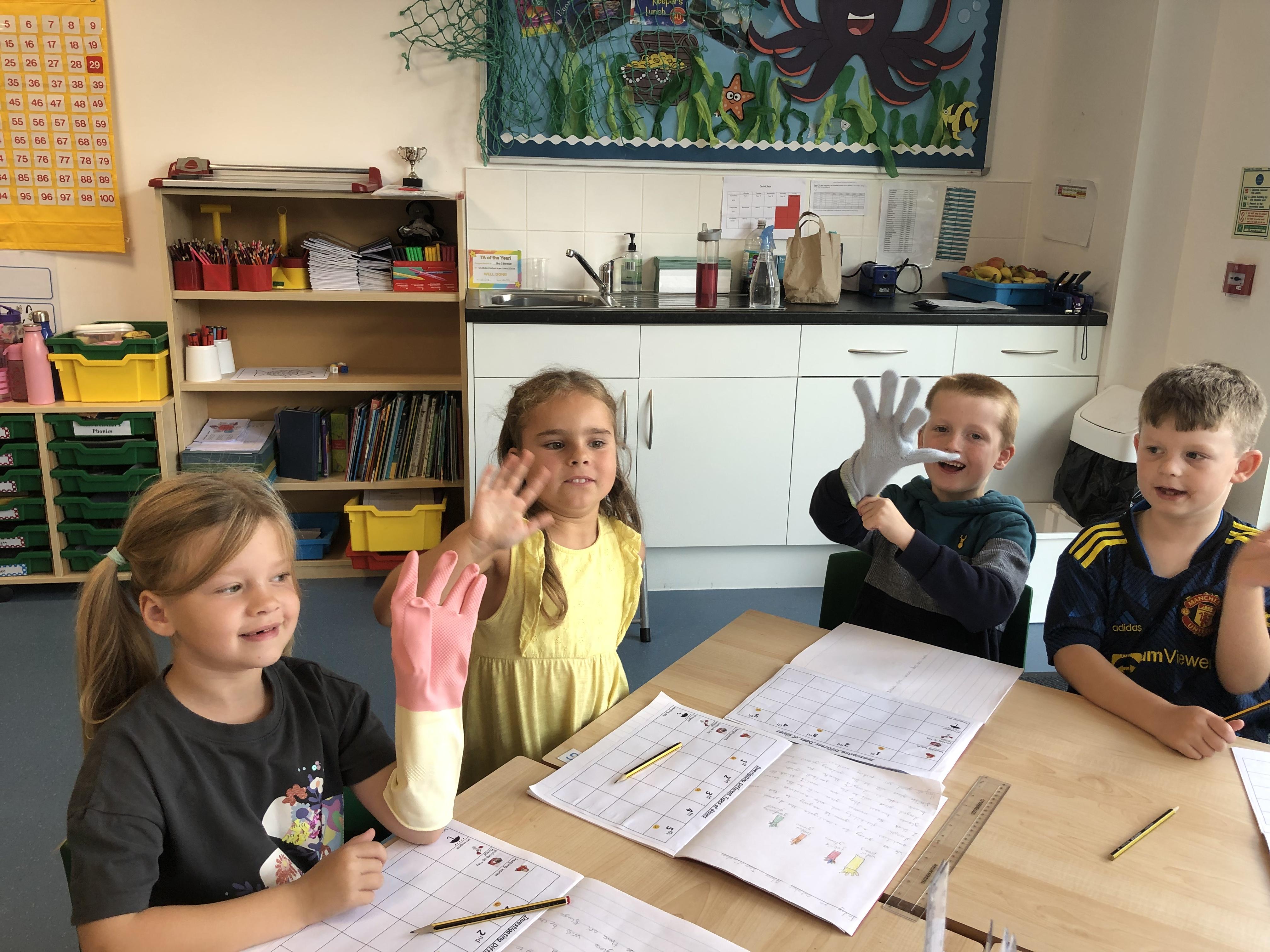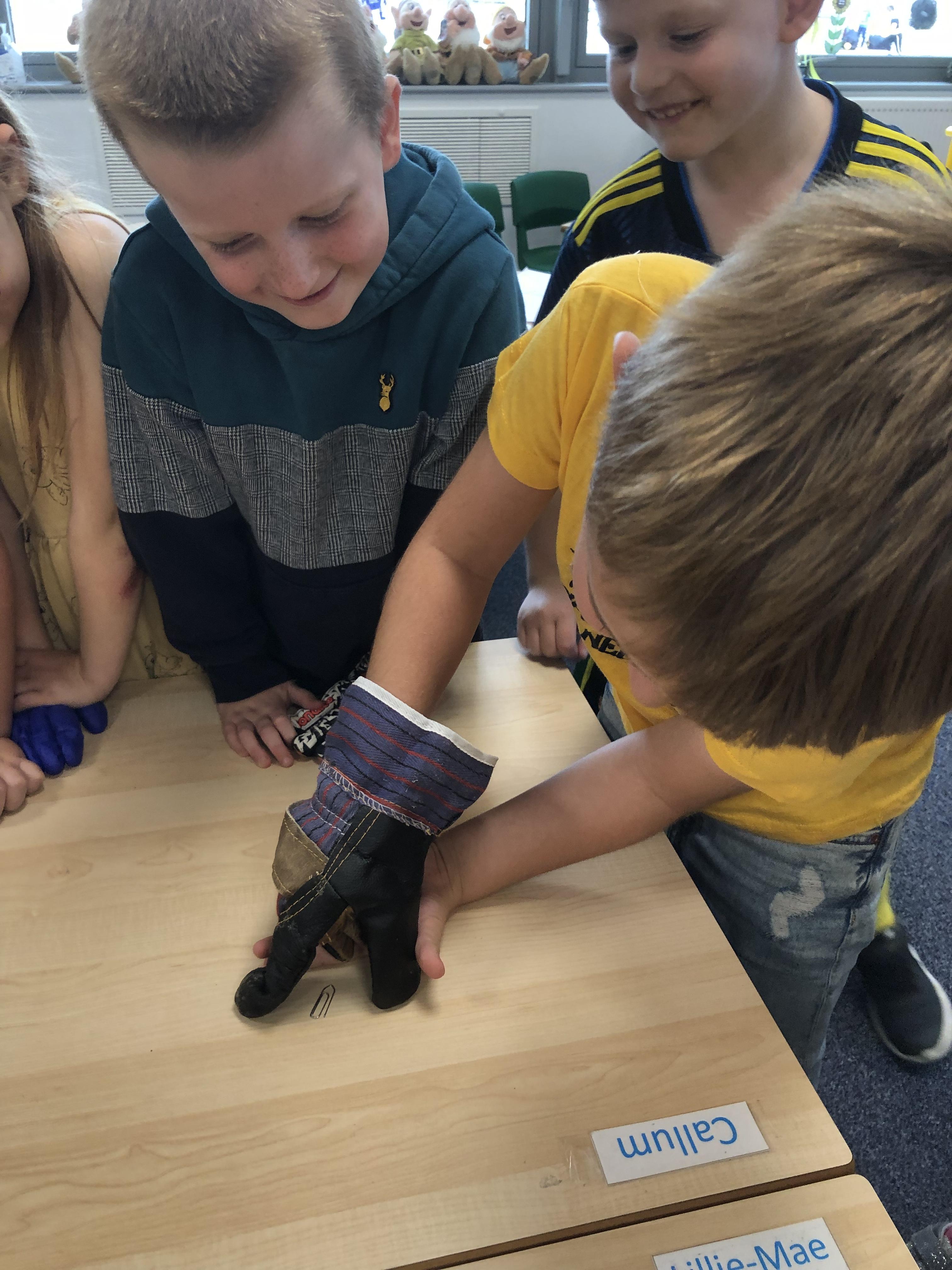 As part of our Science topic all about Materials, Mallard class have been investigating a range of gloves made for different purposes and from different materials. We tested each gloves, warmth, water resistance, durability and flexibility. It was incredibly fun to watch the children attempt to pick up the small objects with the football gloves and the gardening gloves! We found that the different gloves have different qualities which are better suited for different things.