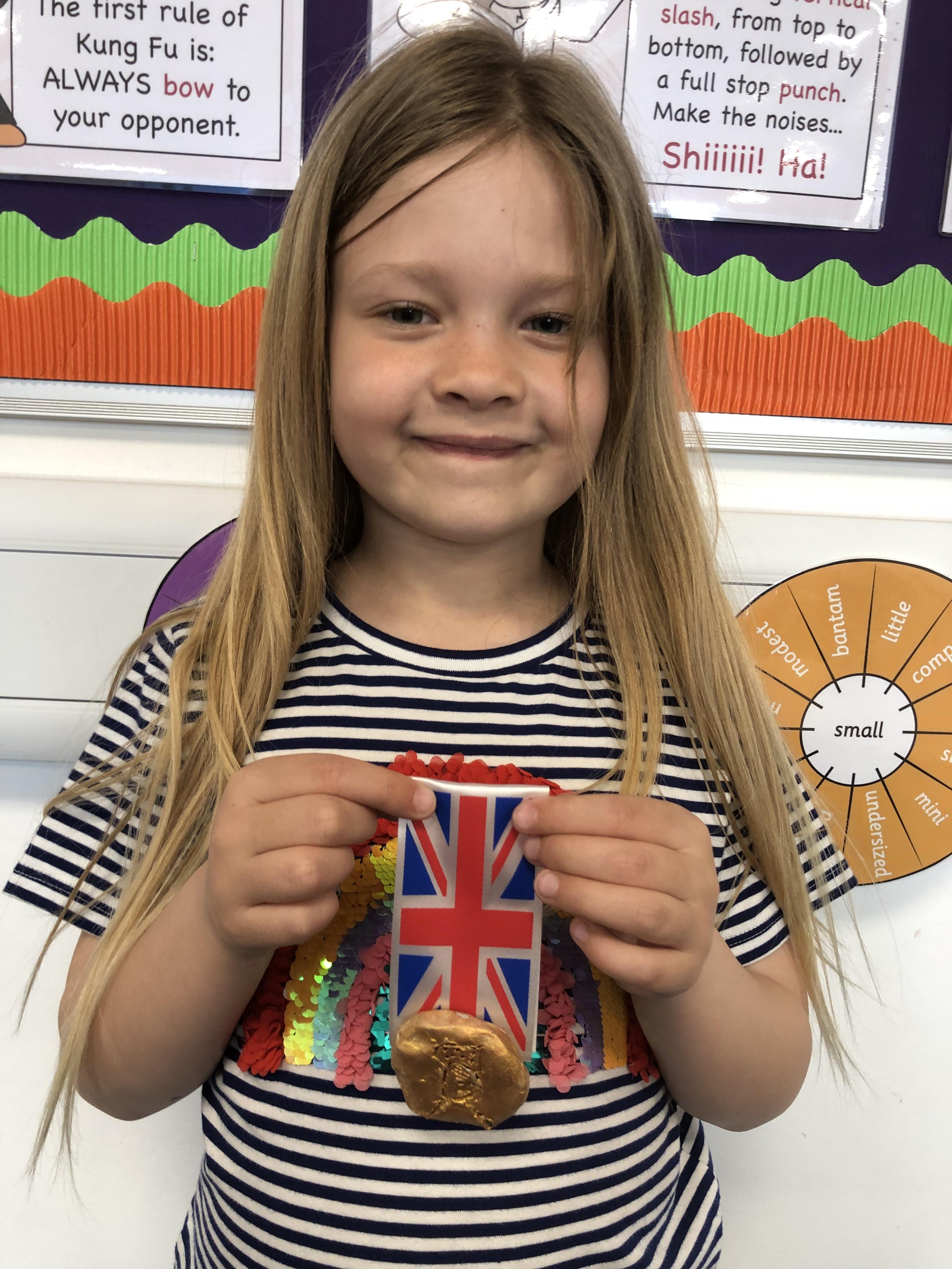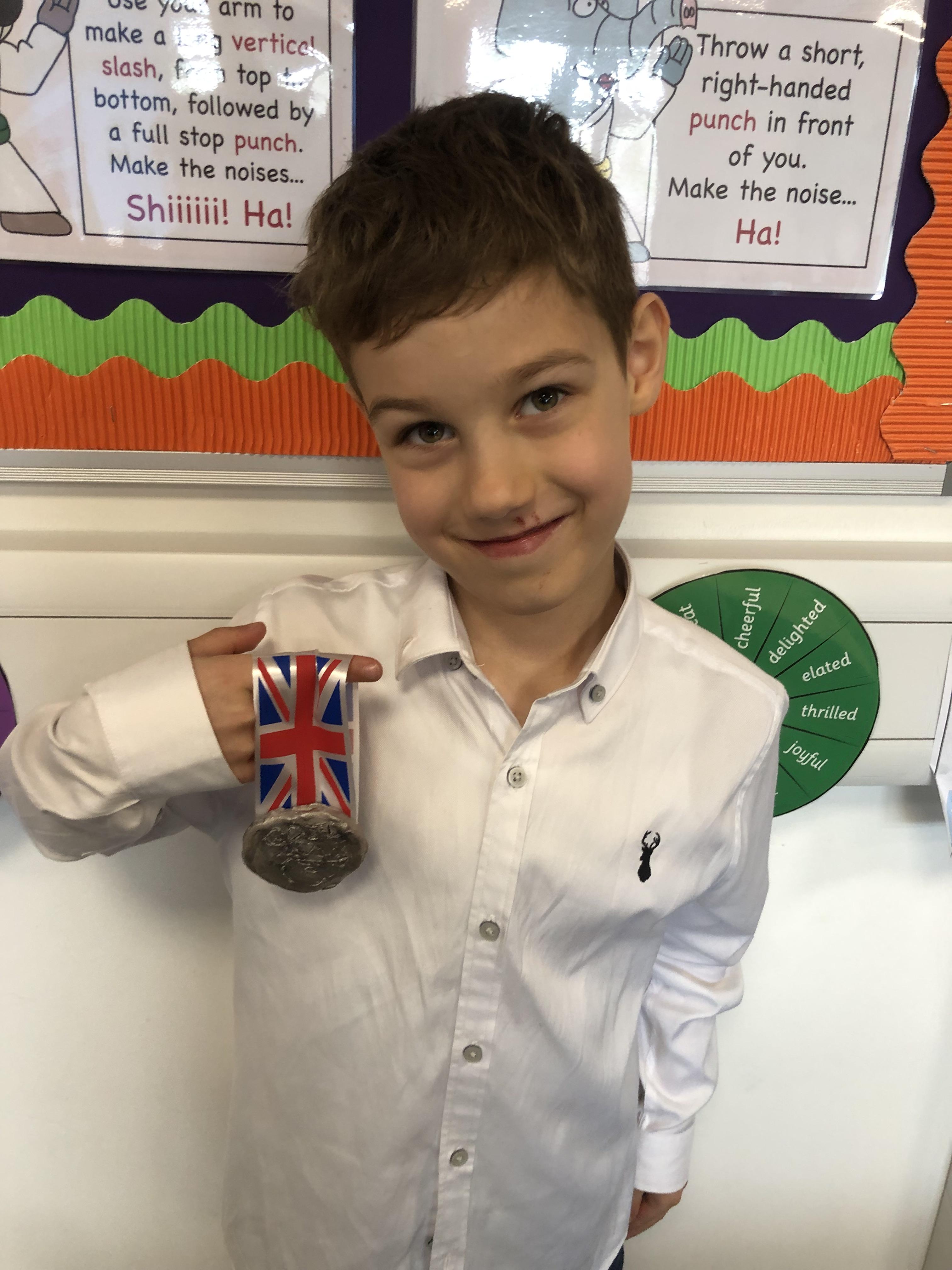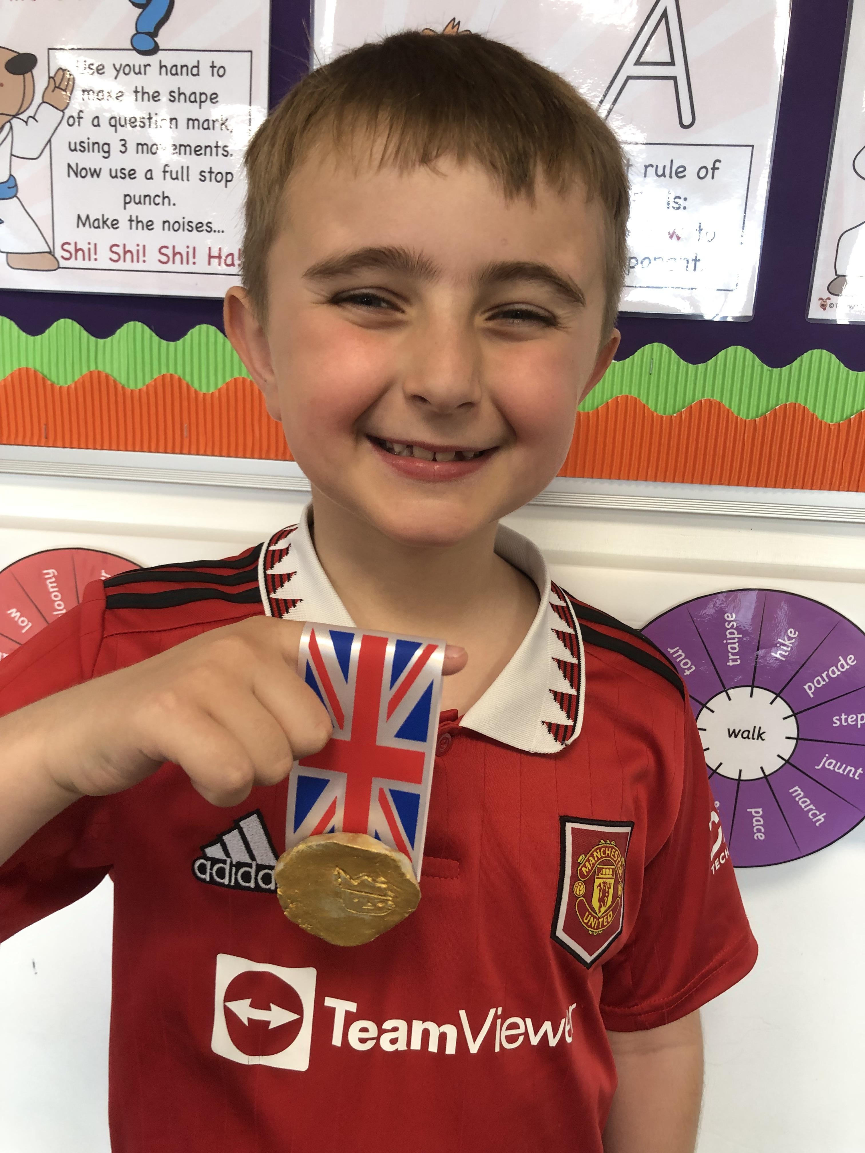 In celebration of the King’s Coronation, Mallard Class designed and made their very own commemorative Coronation Medals. The children applied their knowledge of sculpting they learnt this term to mould and engrave their designs using clay. After, their medals had dried they each painted their models using gold and silver paint. Finally, a Union Jack ribbon was attached to their medals to give it an authentic look. Well done, everyone- your medals look fantastic!