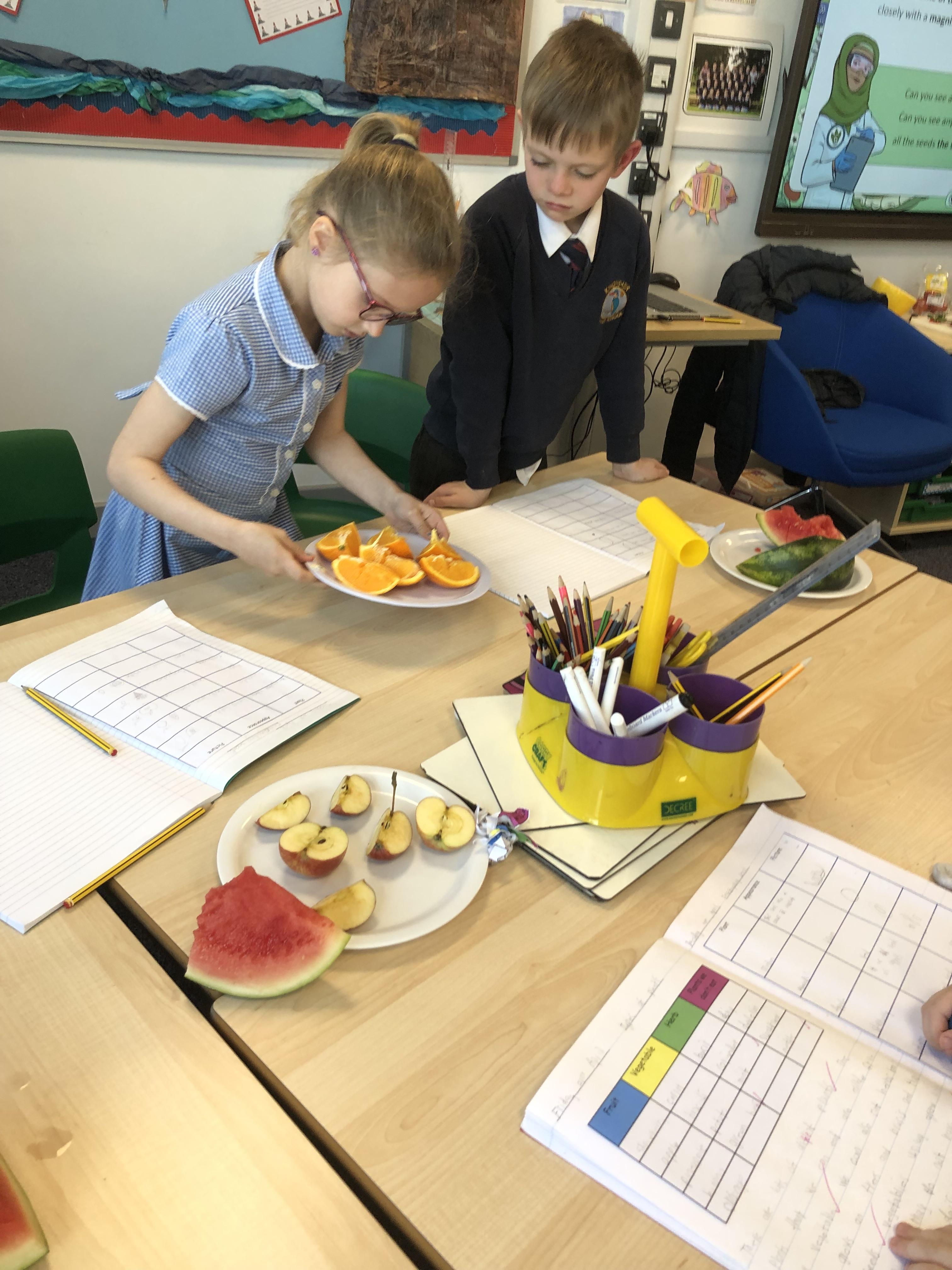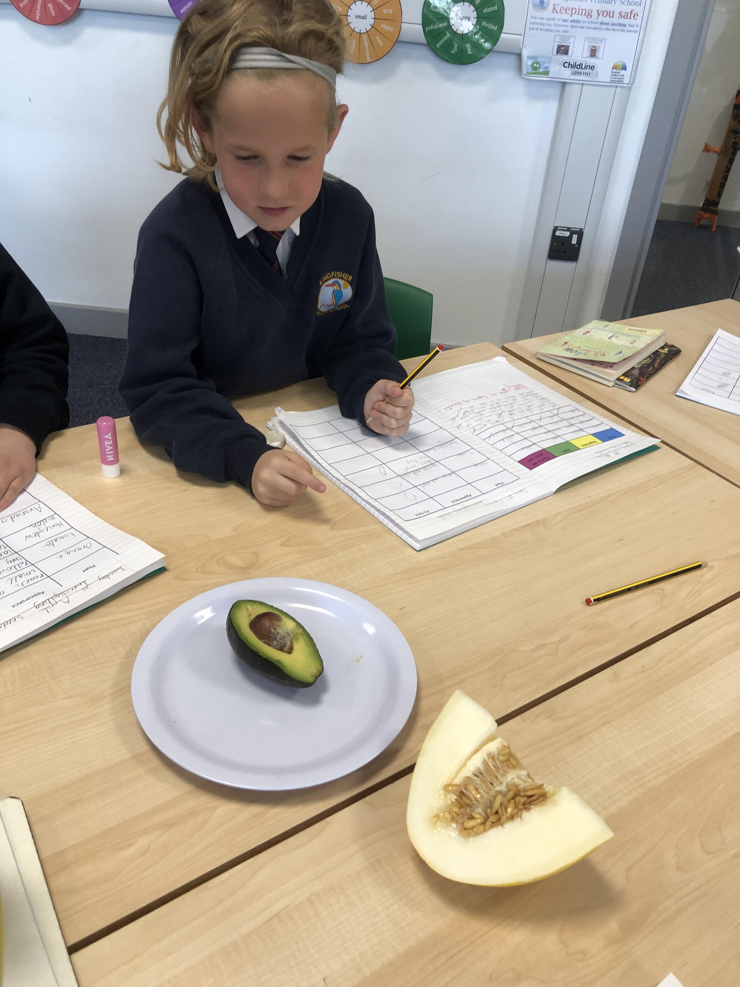 In Science today, the children were exploring seeds from a range of different fruits. We found that seeds come in all different shapes, colours and sizes and aren’t always located inside the fruit. After, our Scientific investigation was complete the children had a lot of fun eating the delicious fruit! ��
