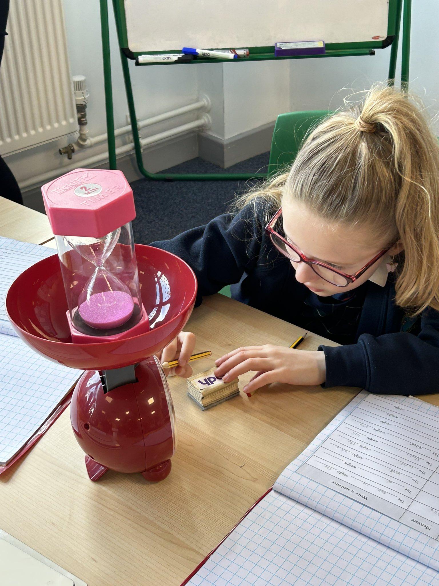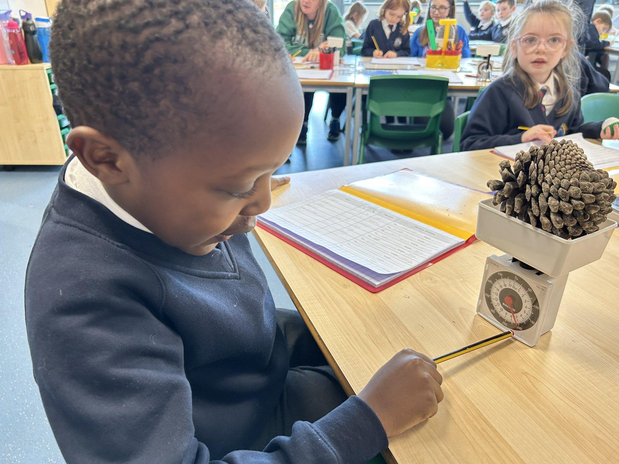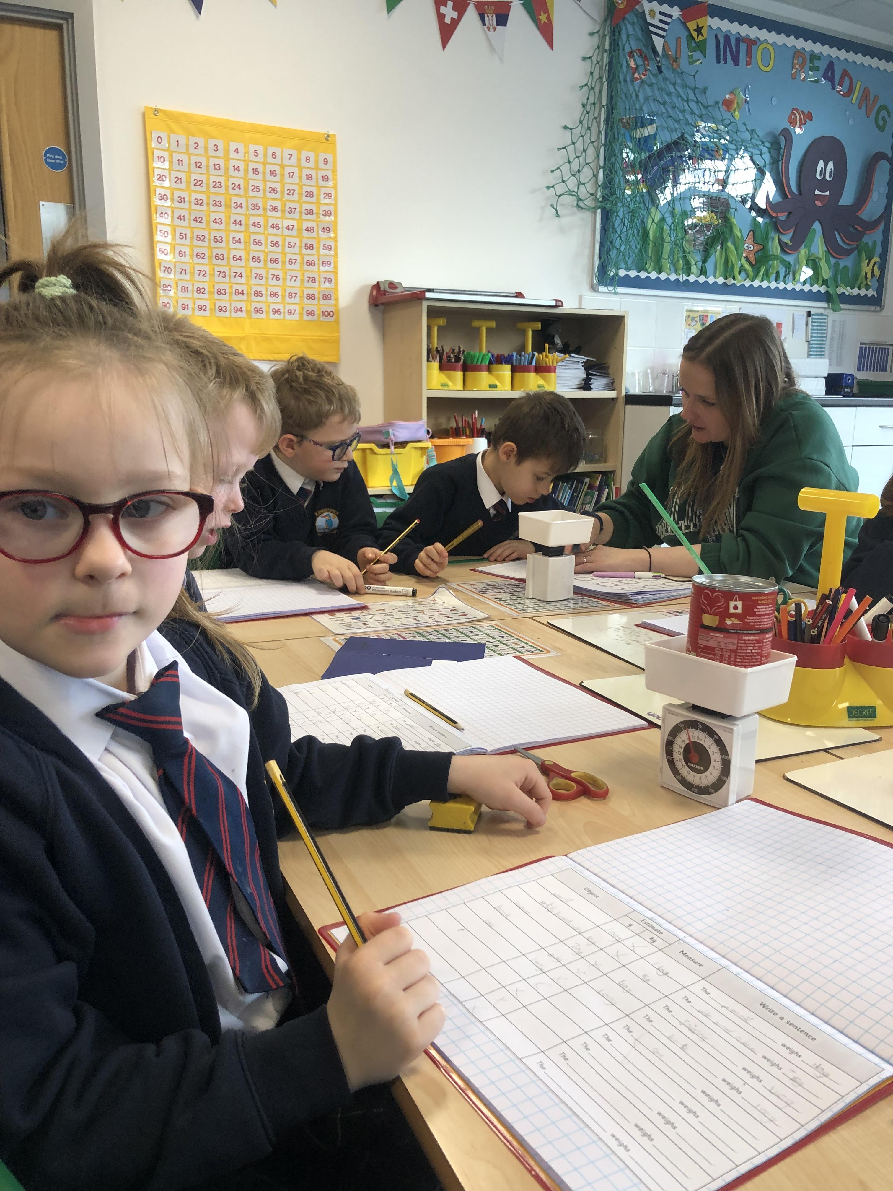 In Maths today, the children were putting their knowledge of mass into practise by estimating and measuring the mass of a range of objects using weighing scales.
