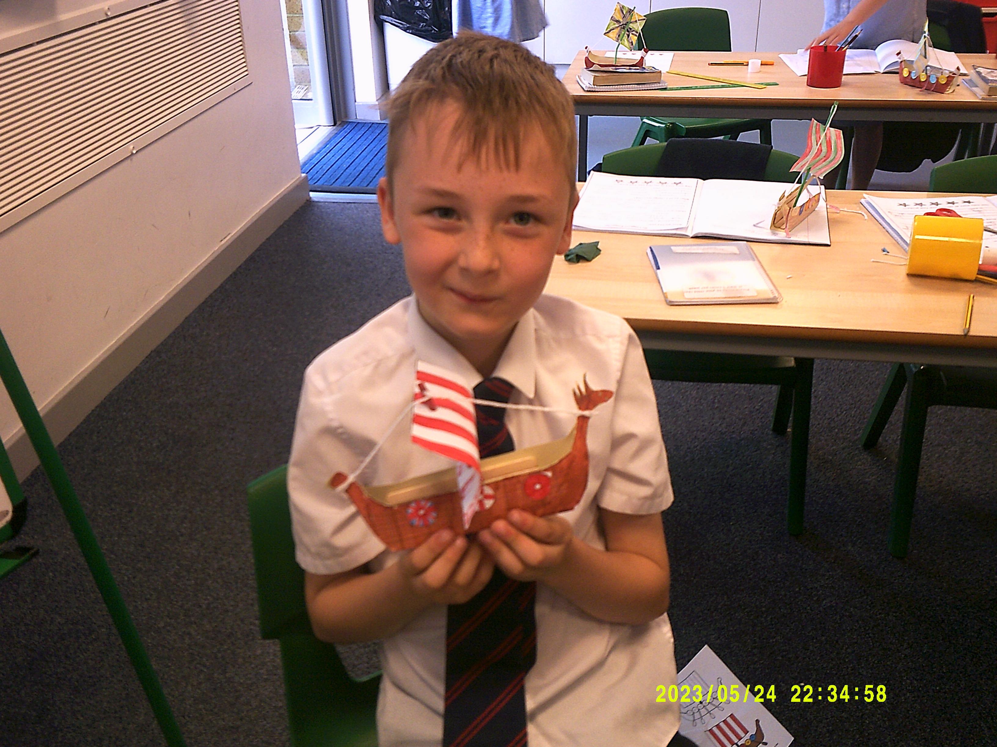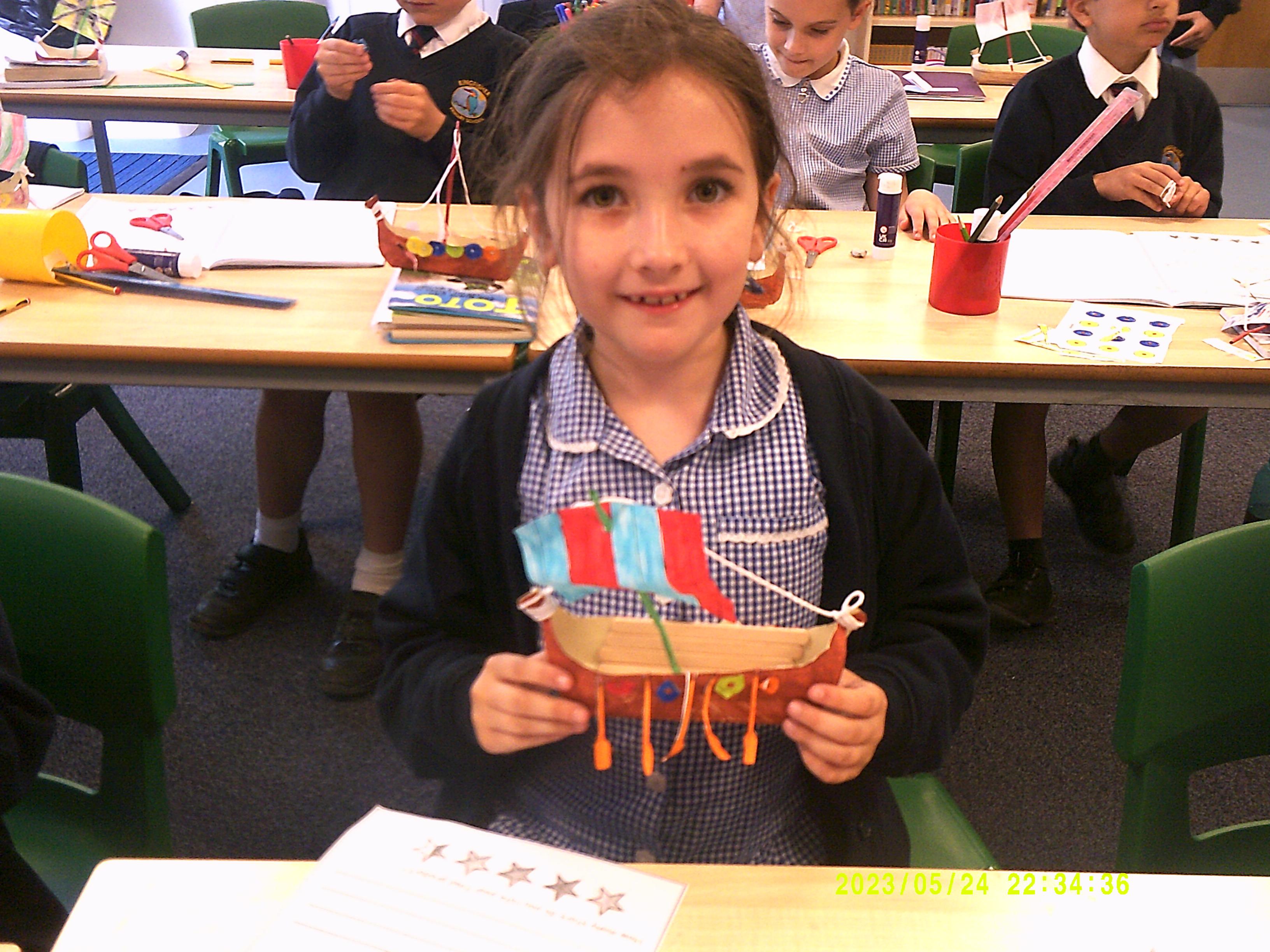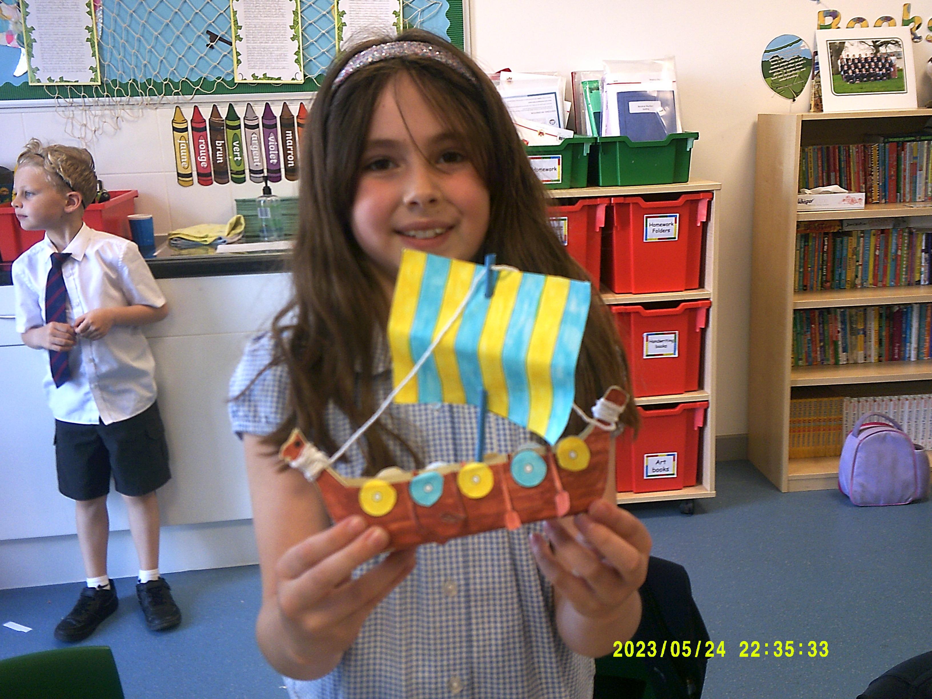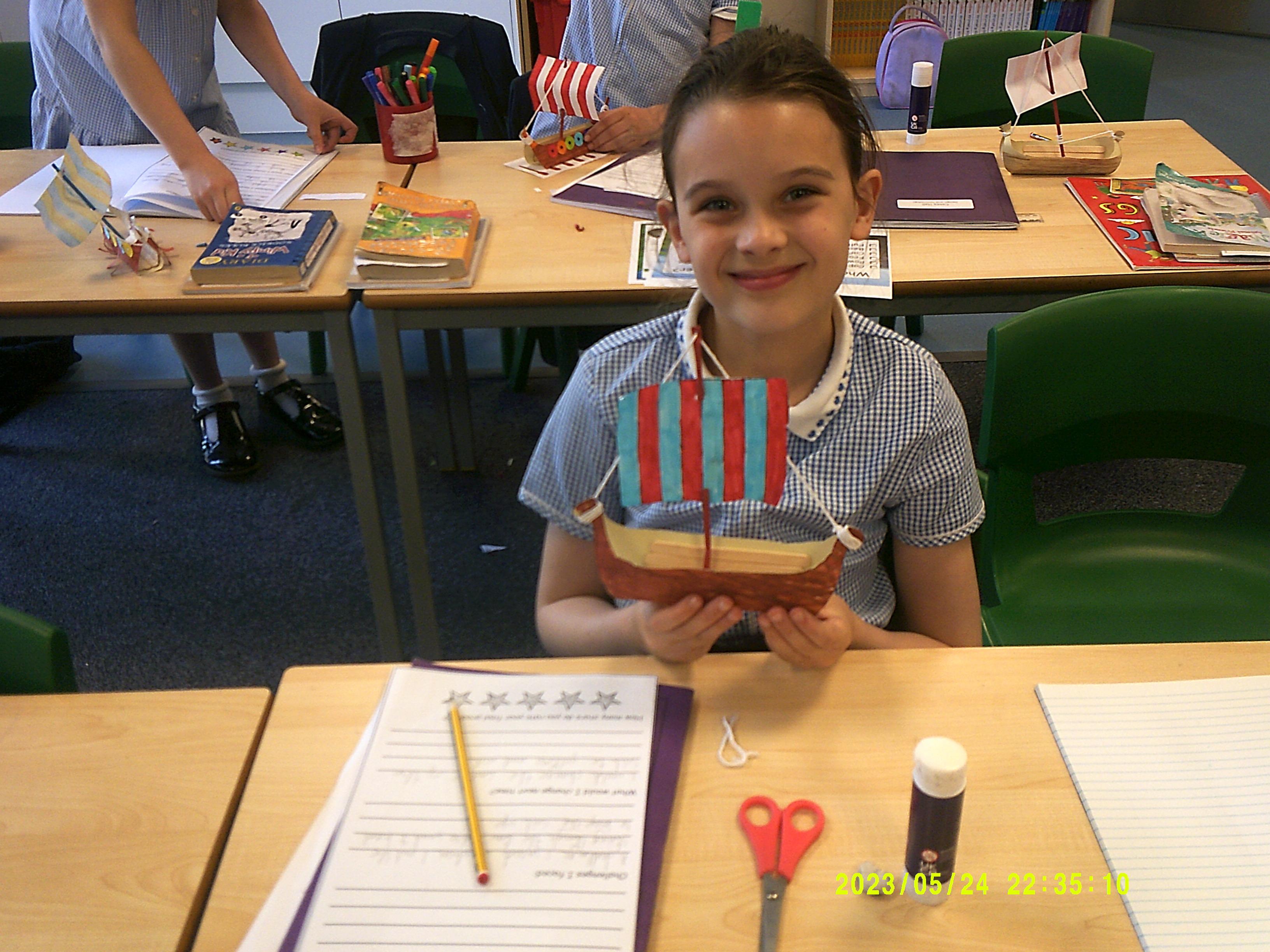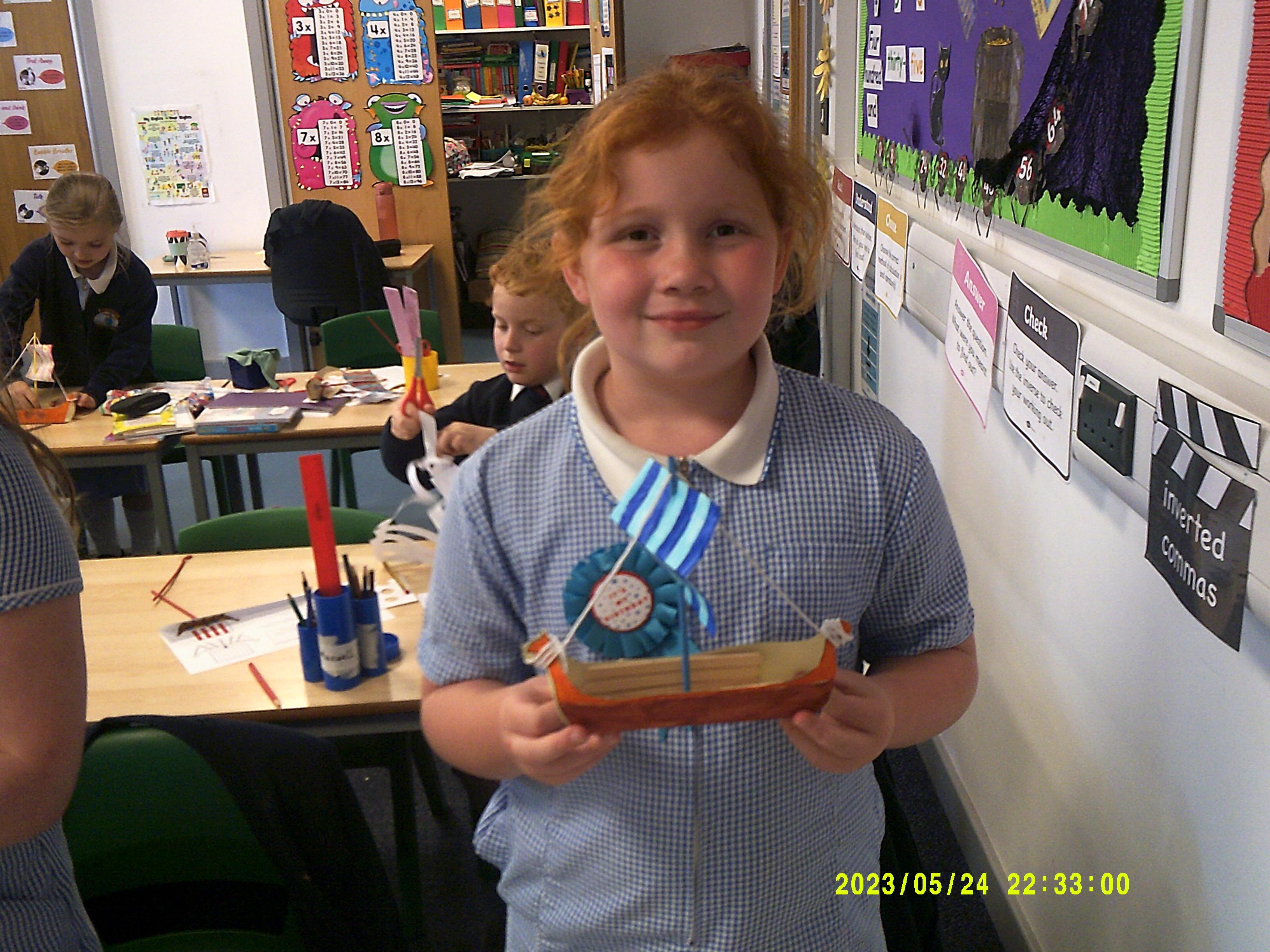 As part of our DT, the children have worked hard when making and designing their very own Viking Longboats this term. The children reinforced their boats with lolly pop sticks and card to make them stronger. They also showed great concentration and resilience when they dealt with fiddly aspects such as attaching the sail and making their hulls stand up. They showed great knowledge of the different parts of their longboats too! Well done, Otter Class, your final creations looked fabulous!