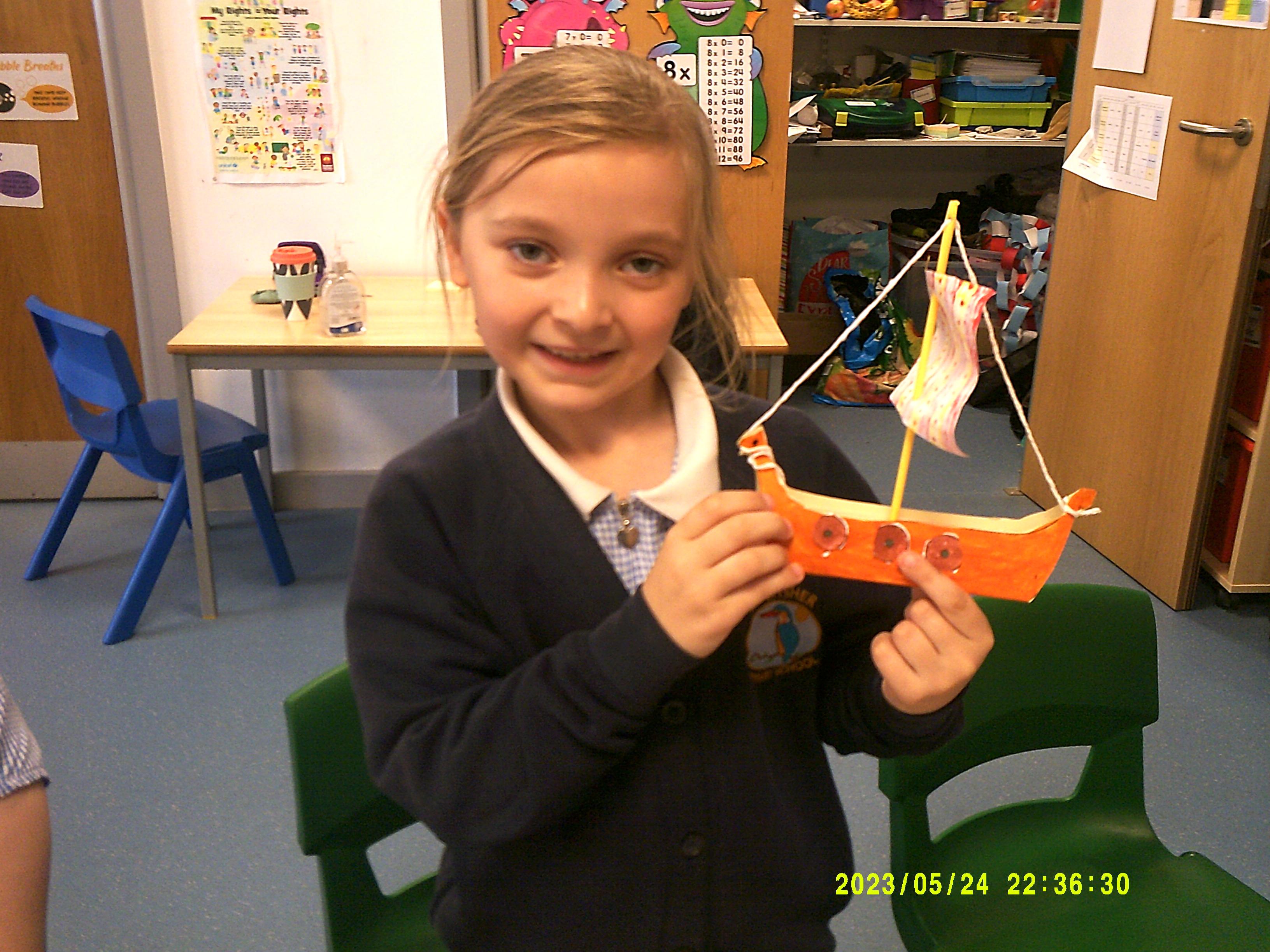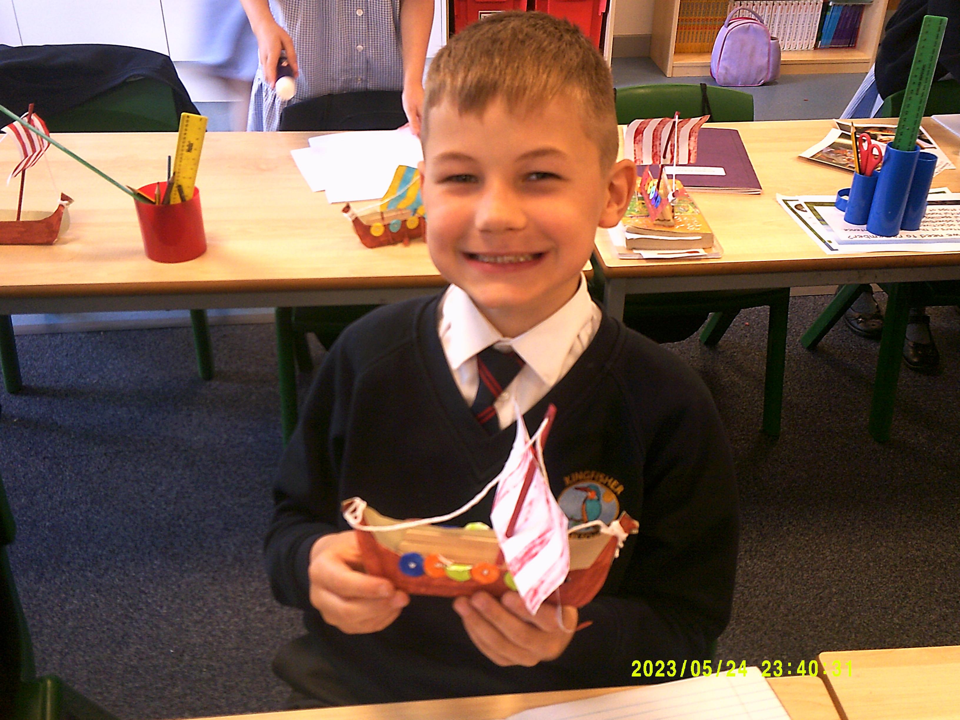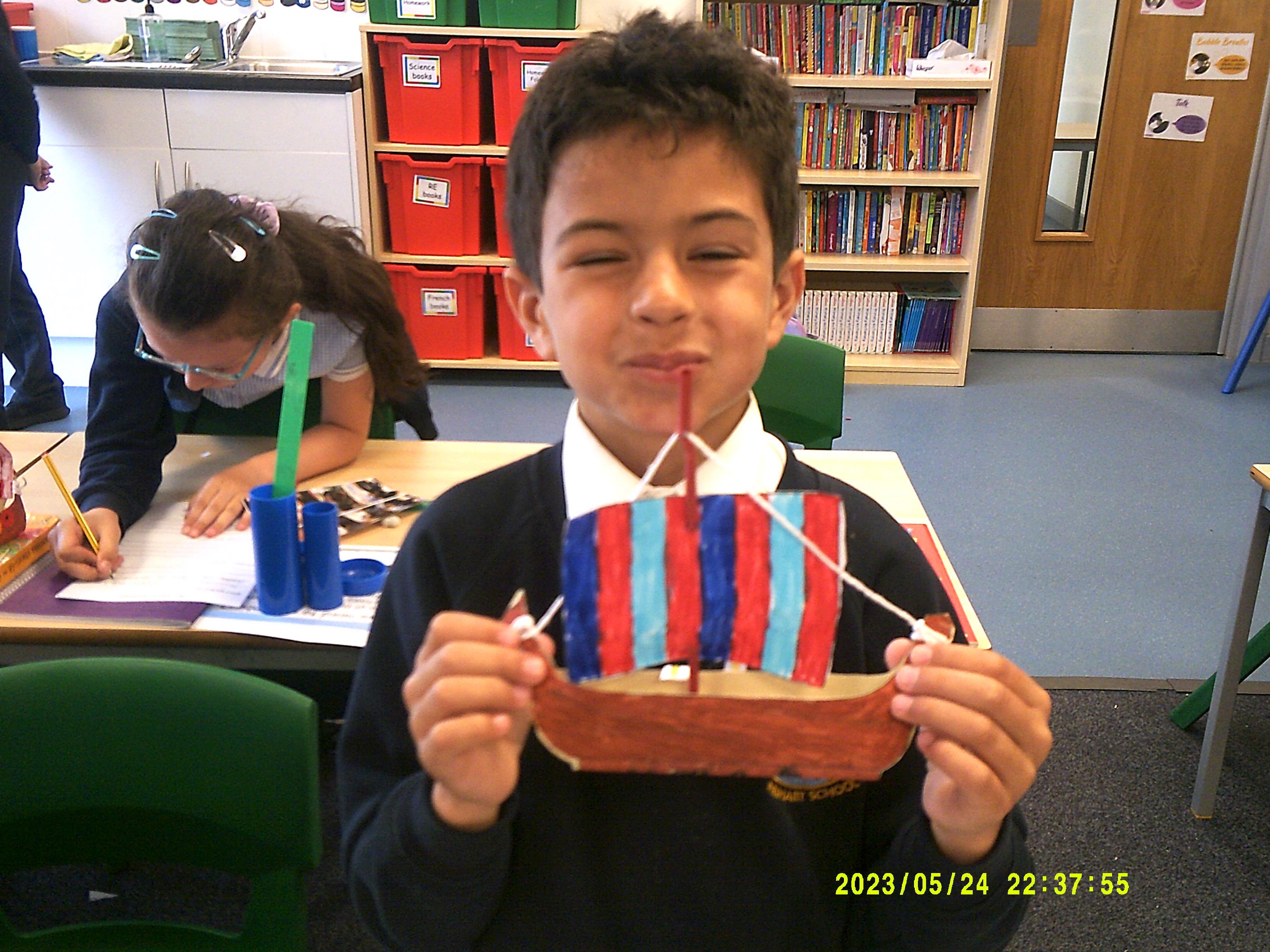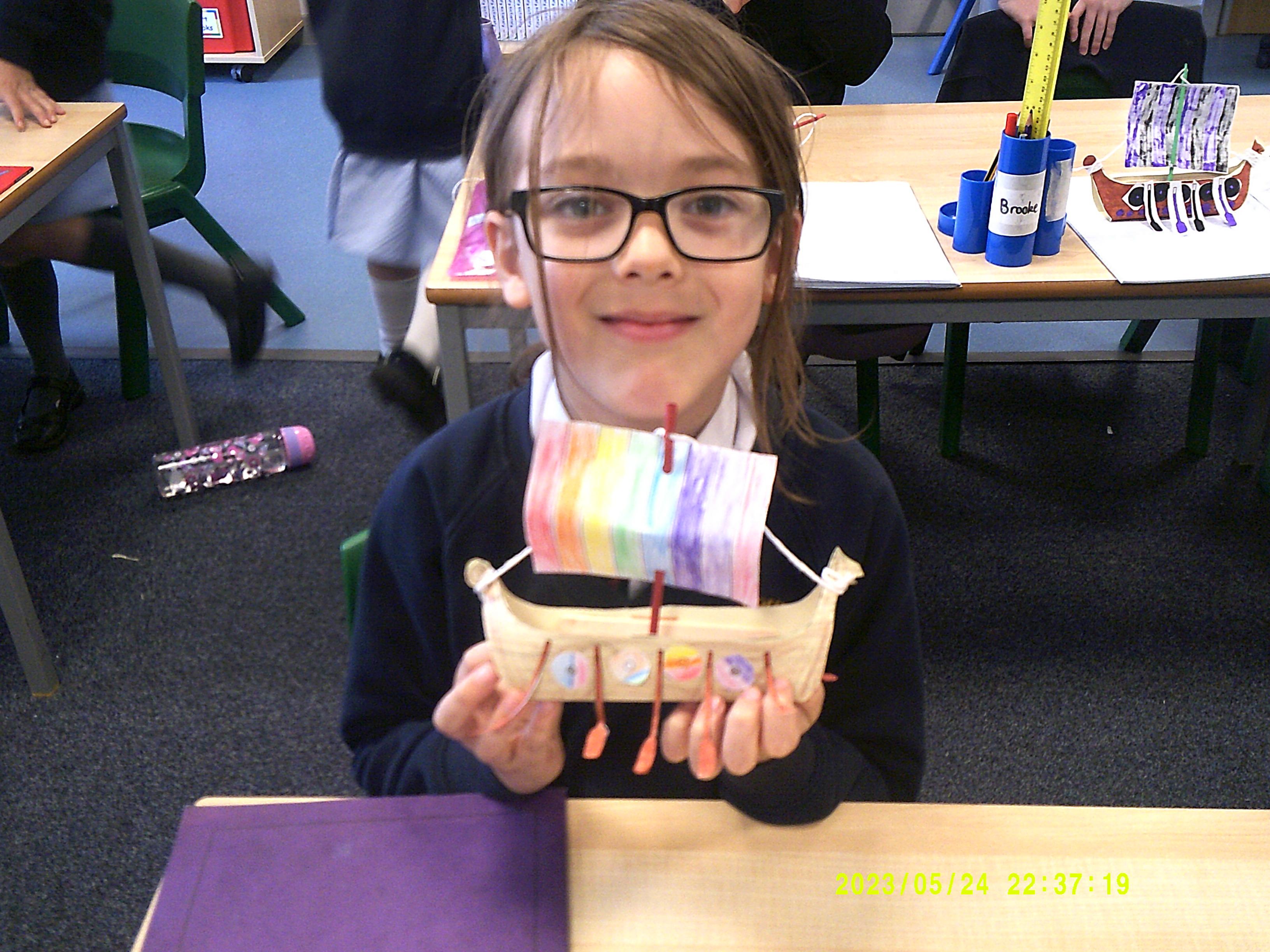 As part of our DT, the children have worked hard when making and designing their very own Viking Longboats this term. The children reinforced their boats with lolly pop sticks and card to make them stronger. They also showed great concentration and resilience when they dealt with fiddly aspects such as attaching the sail and making their hulls stand up. They showed great knowledge of the different parts of their longboats too! Well done, Otter Class, your final creations looked fabulous!