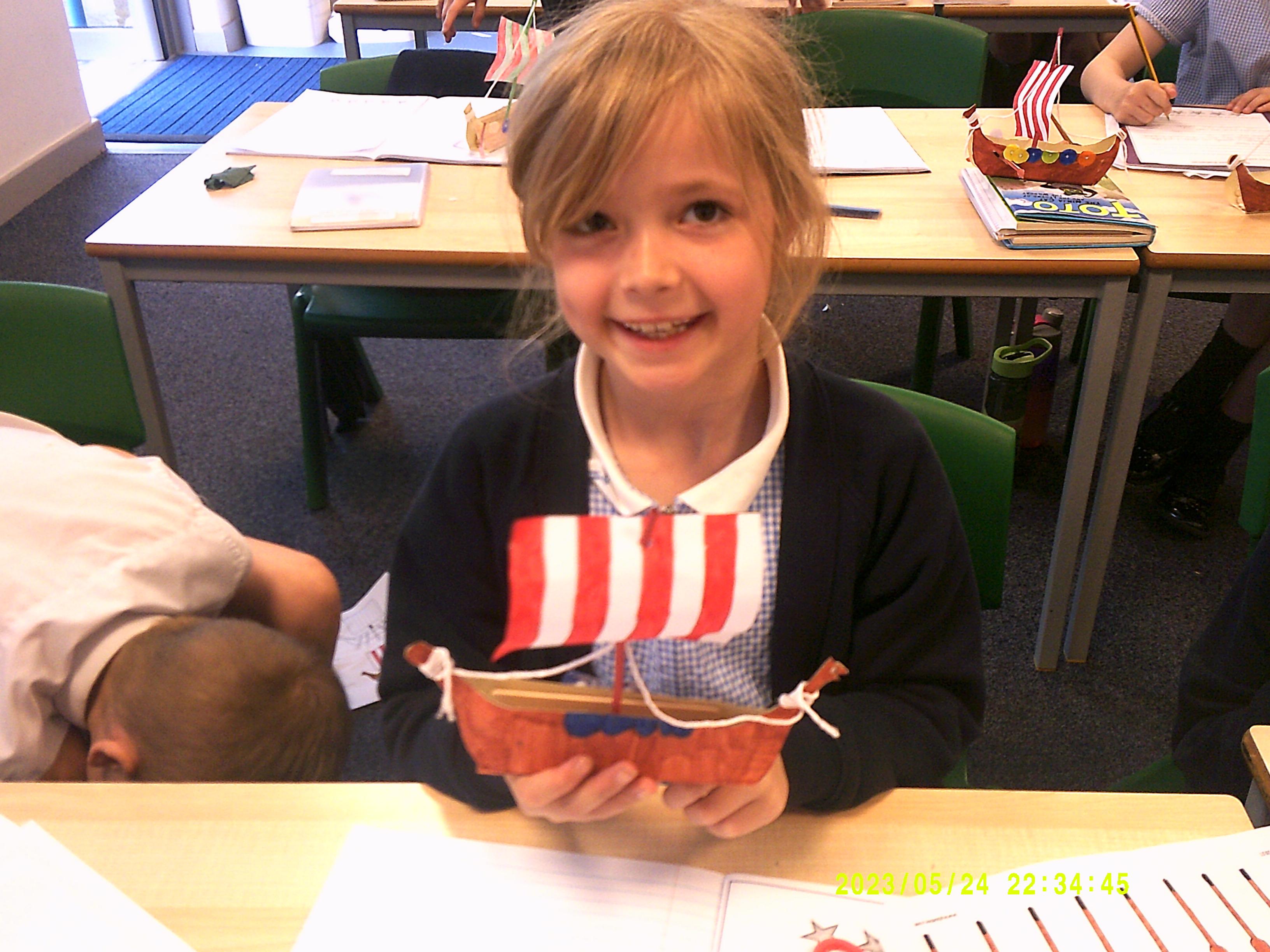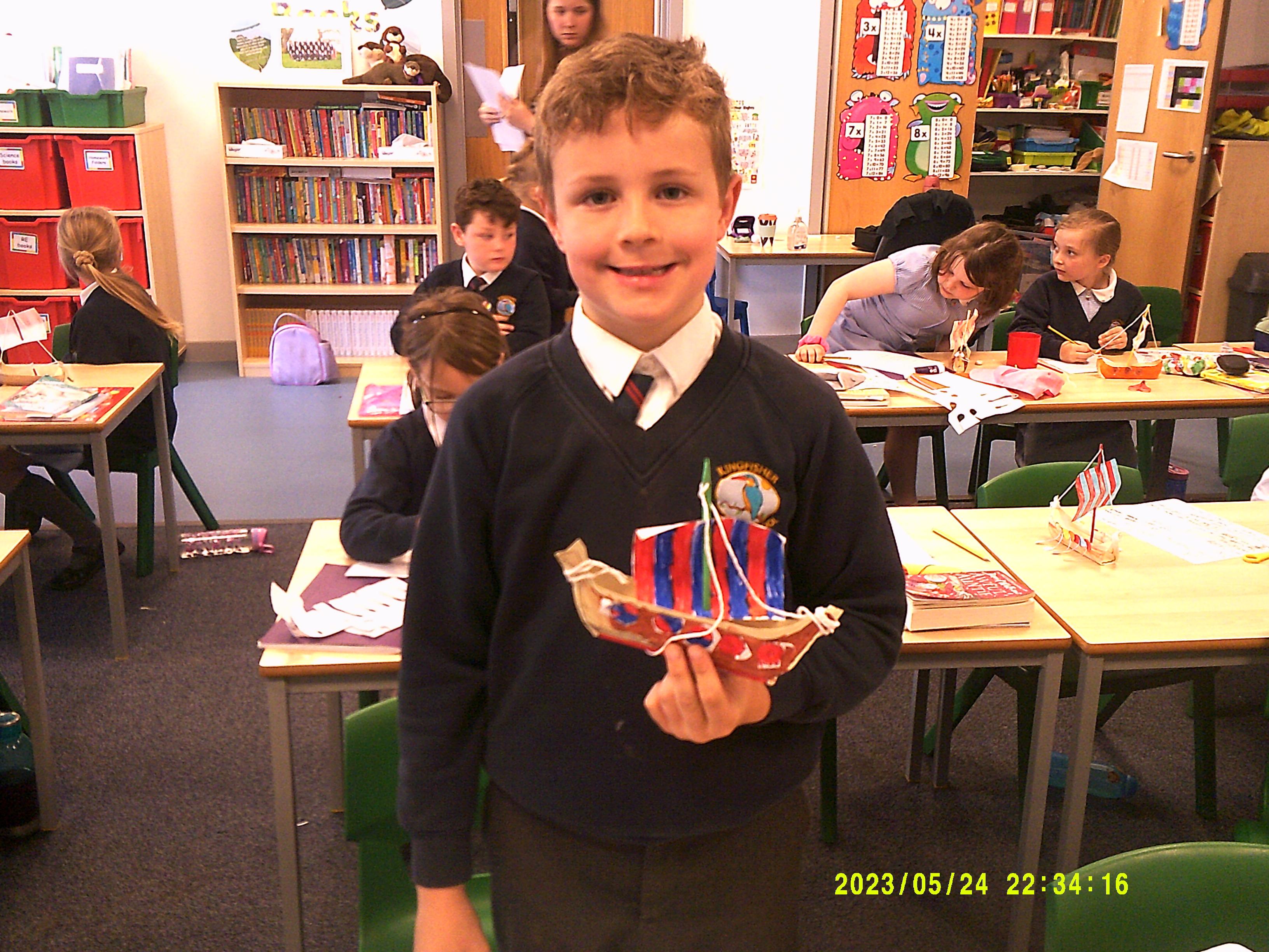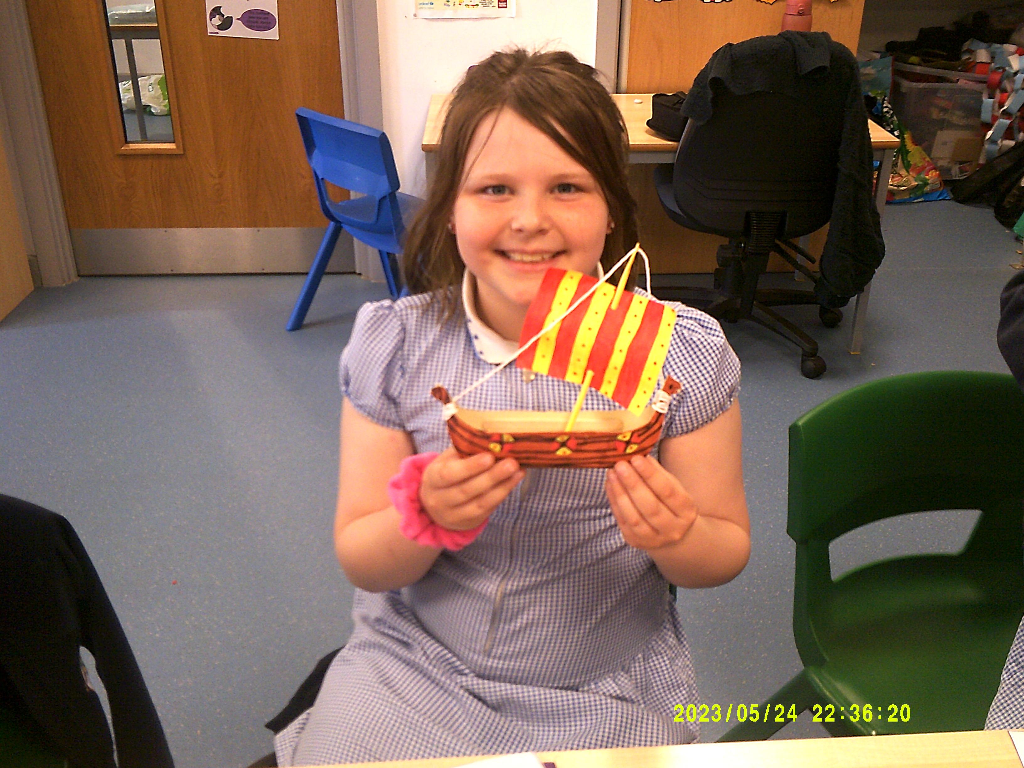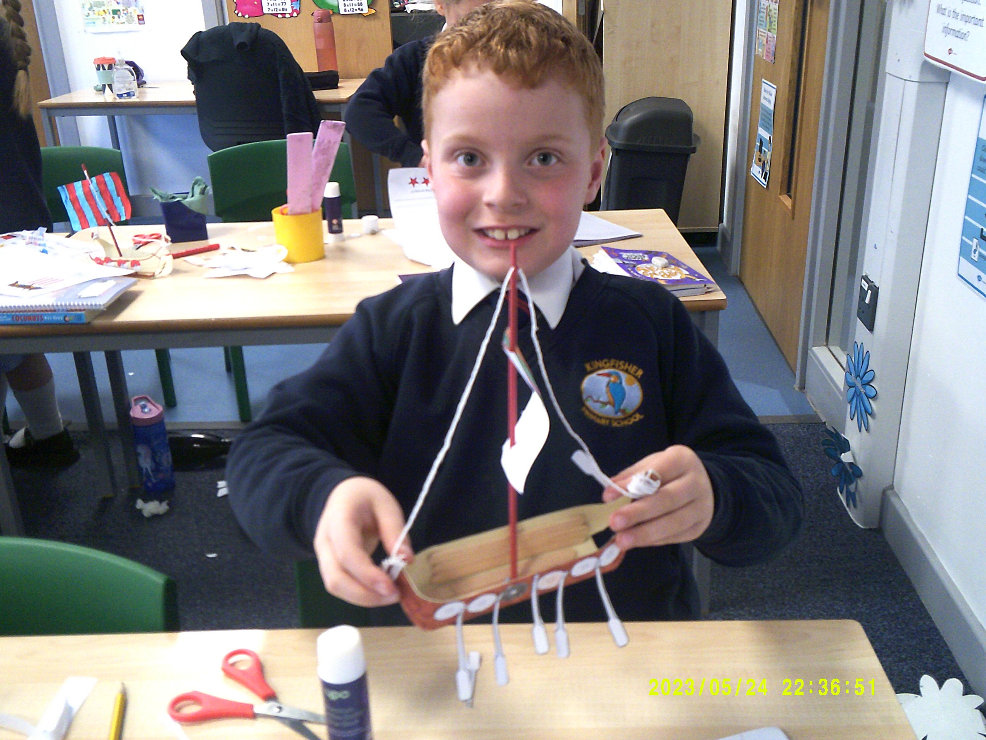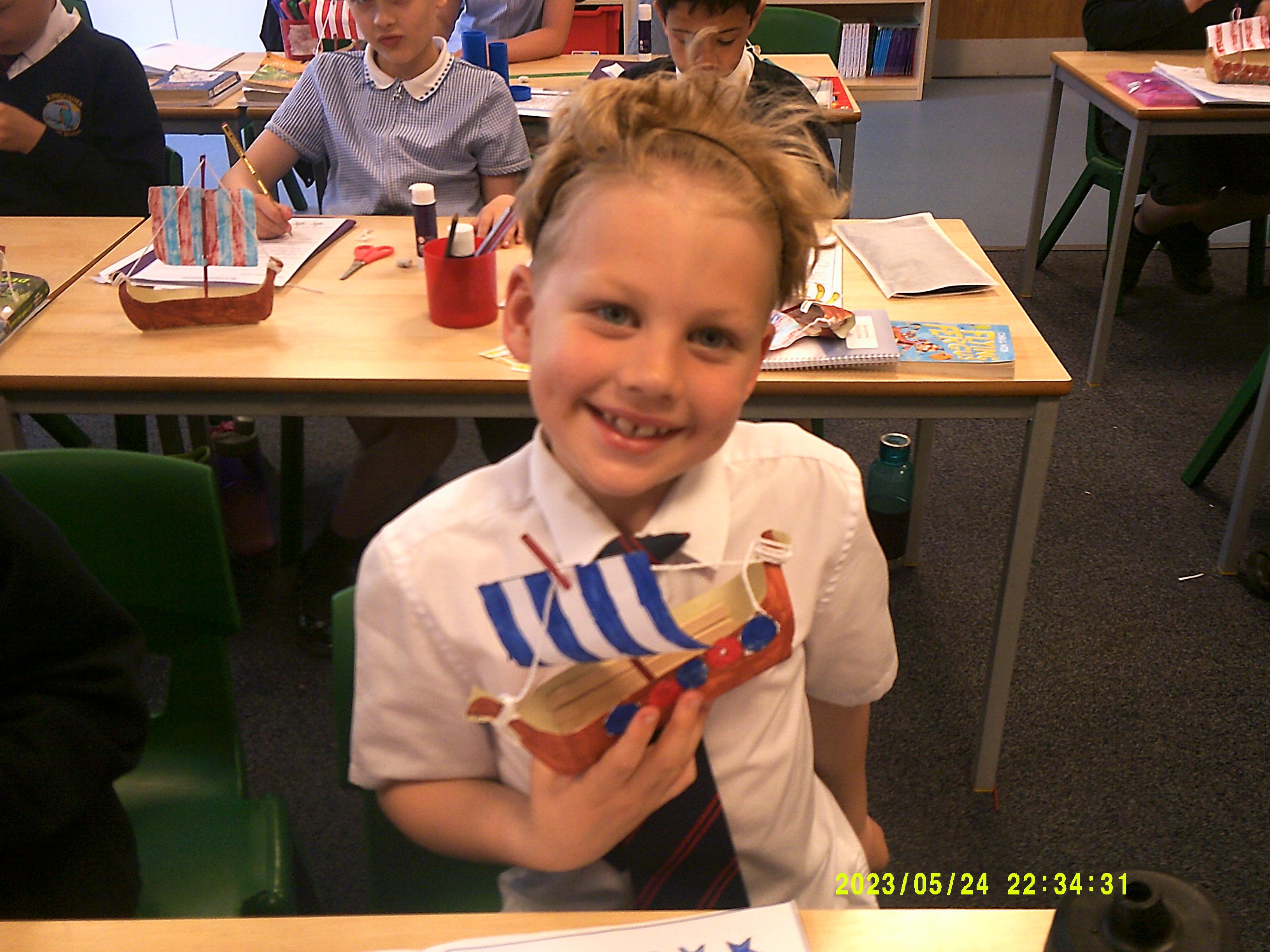 As part of our DT, the children have worked hard when making and designing their very own Viking Longboats this term. The children reinforced their boats with lolly pop sticks and card to make them stronger. They also showed great concentration and resilience when they dealt with fiddly aspects such as attaching the sail and making their hulls stand up. They showed great knowledge of the different parts of their longboats too! Well done, Otter Class, your final creations looked fabulous!