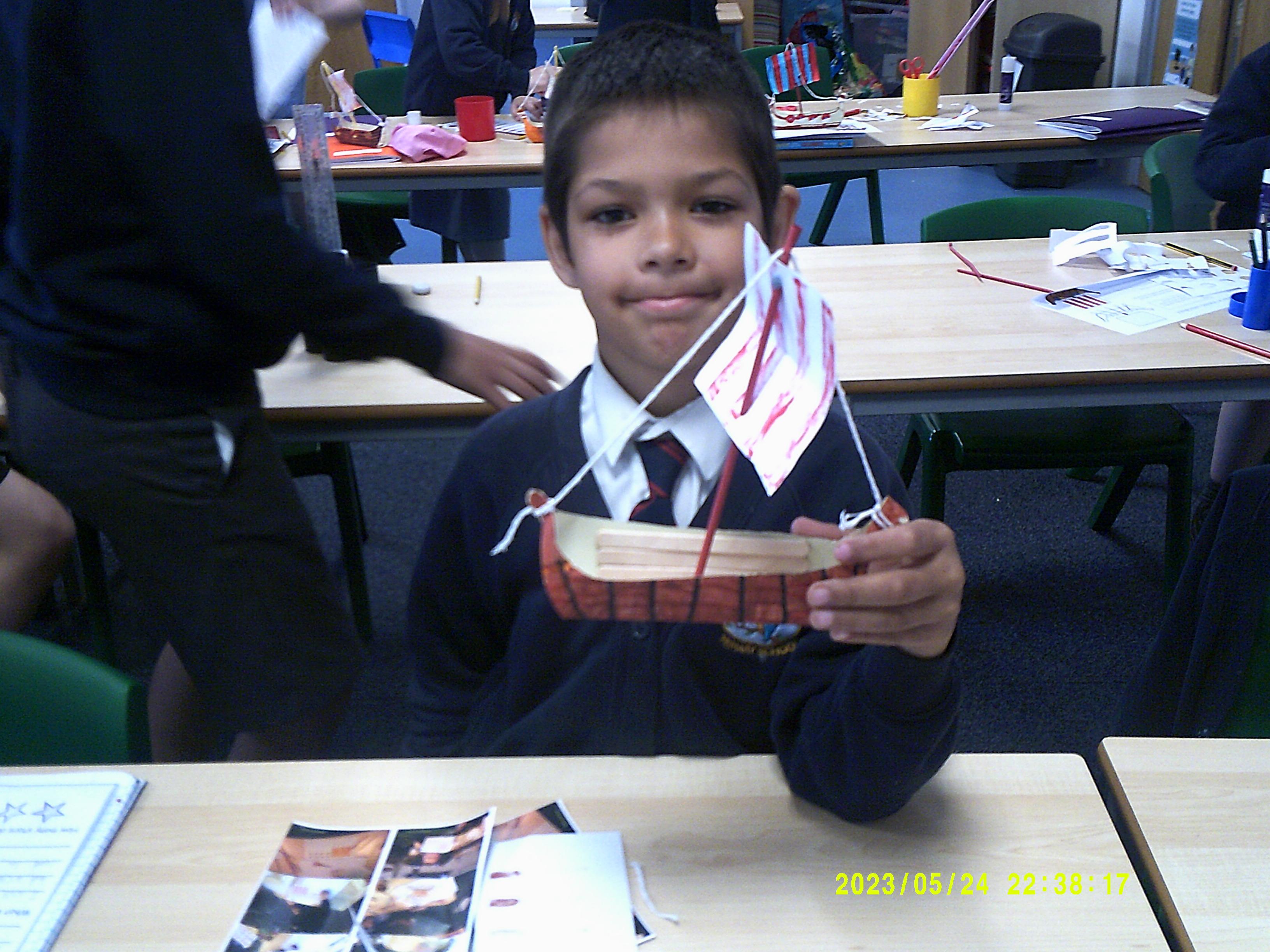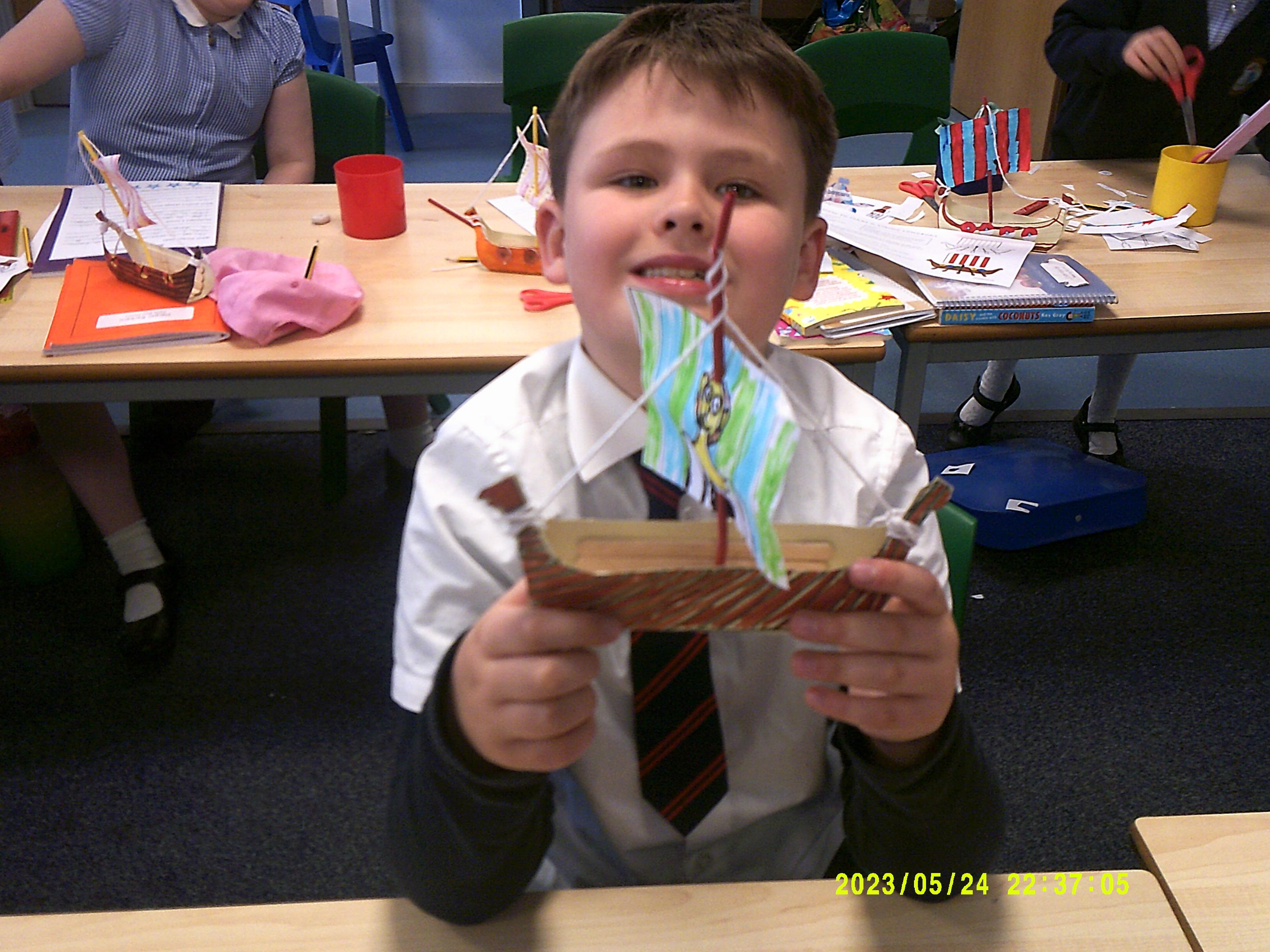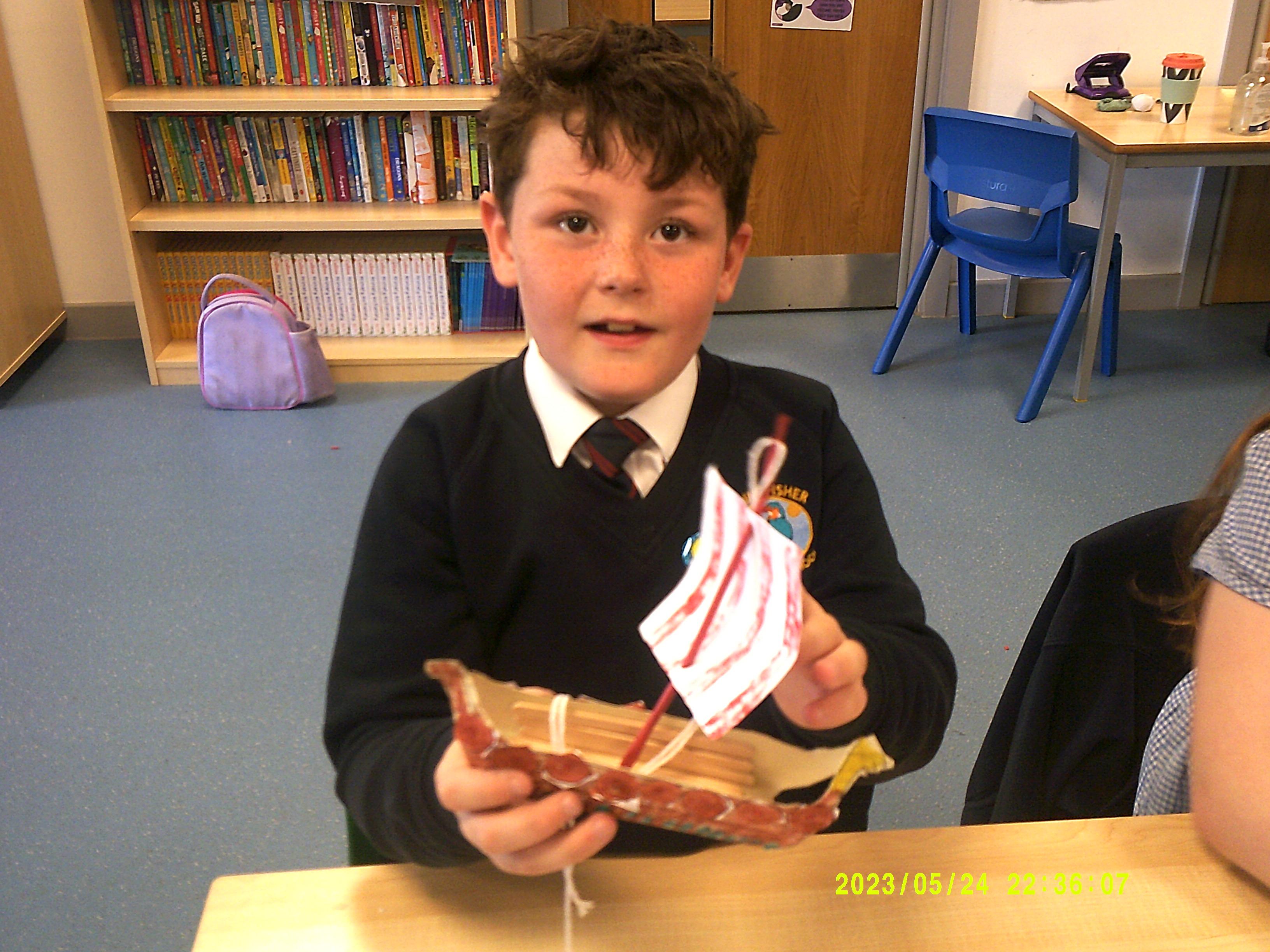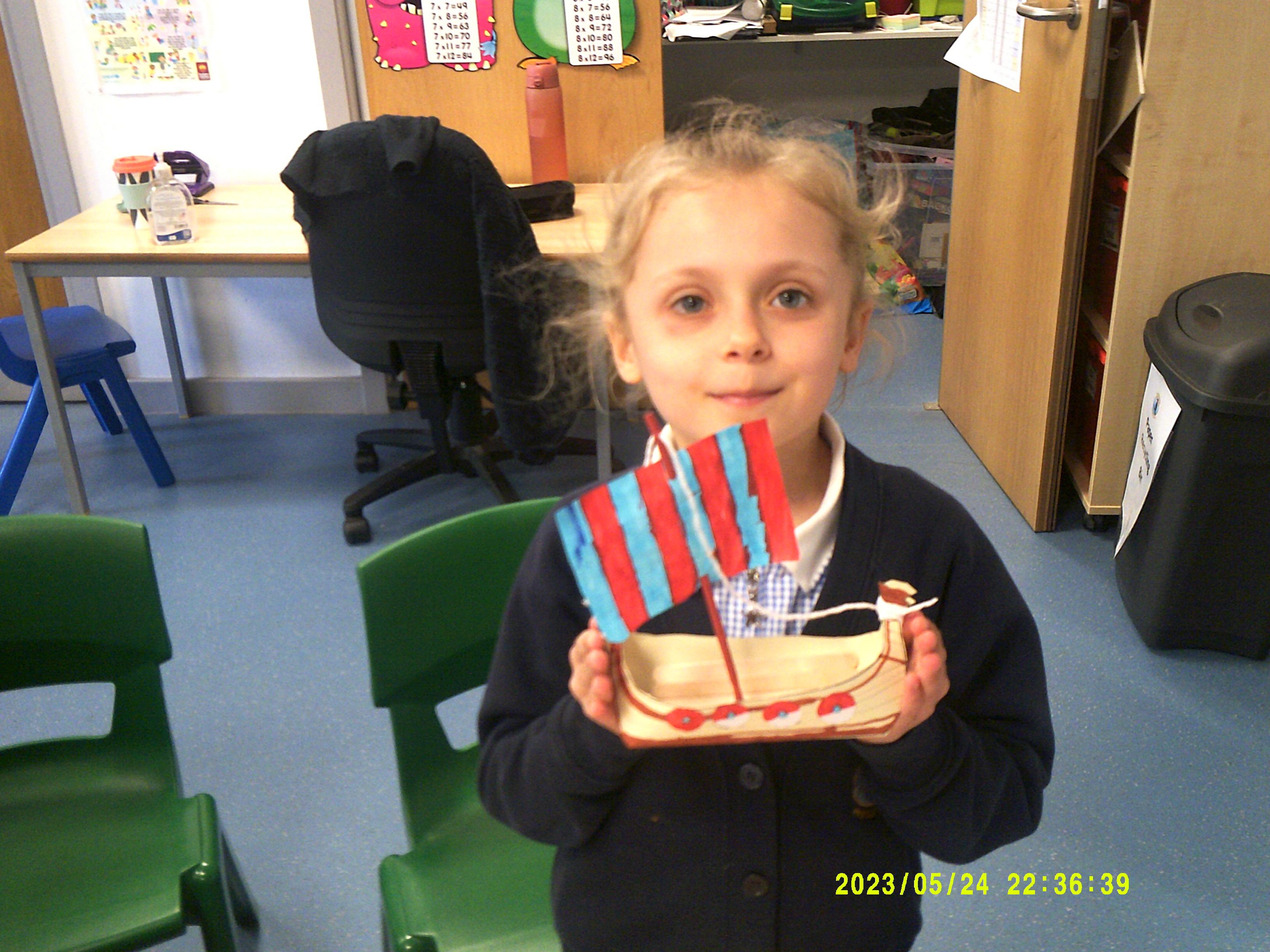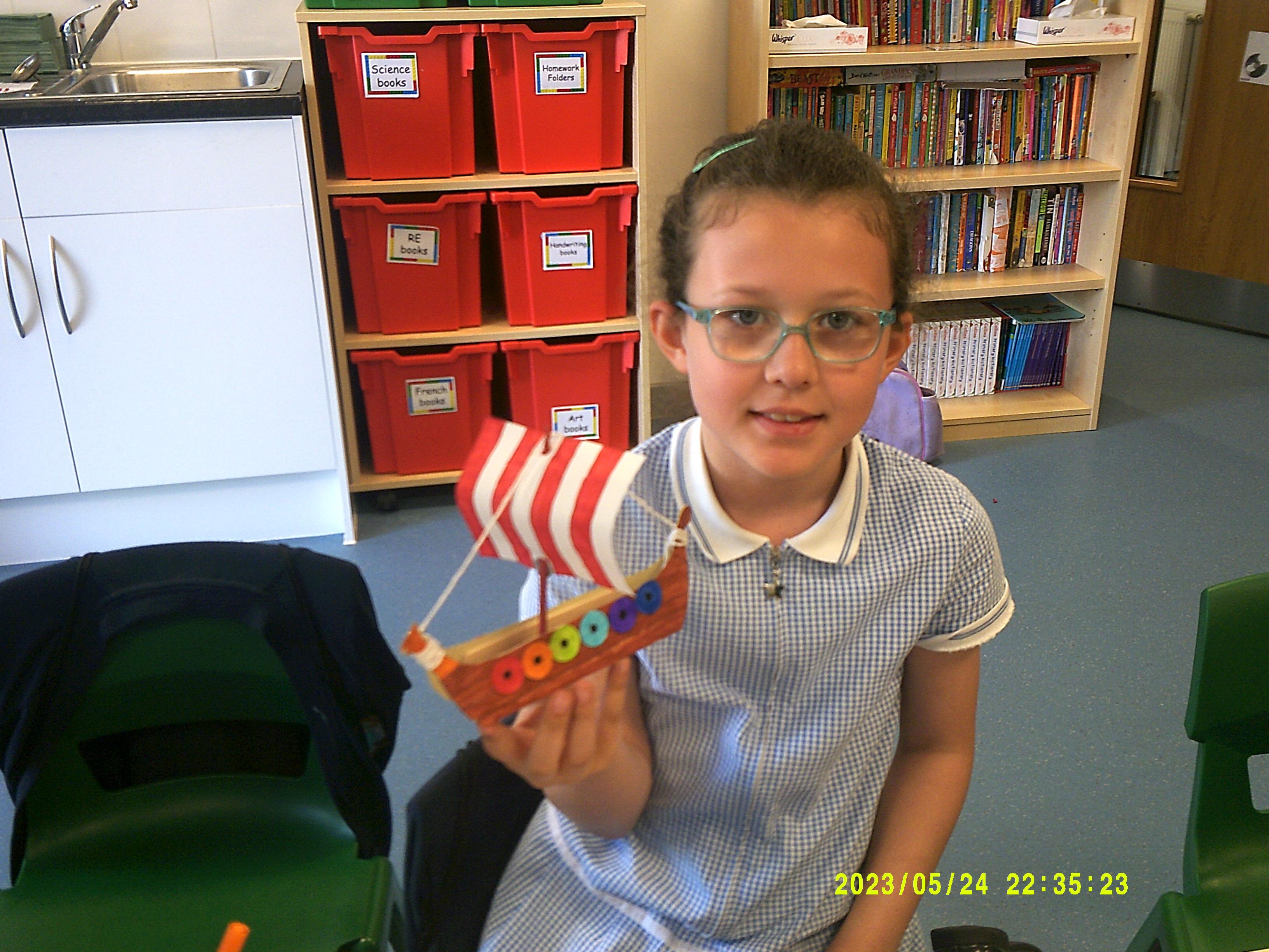 As part of our DT, the children have worked hard when making and designing their very own Viking Longboats this term. The children reinforced their boats with lolly pop sticks and card to make them stronger. They also showed great concentration and resilience when they dealt with fiddly aspects such as attaching the sail and making their hulls stand up. They showed great knowledge of the different parts of their longboats too! Well done, Otter Class, your final creations looked fabulous!