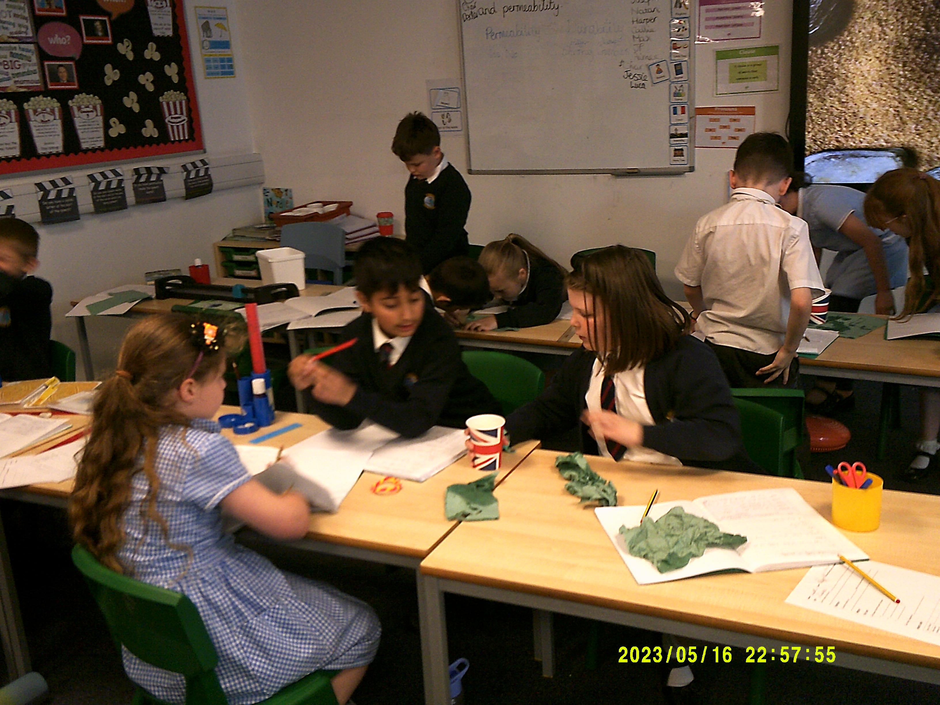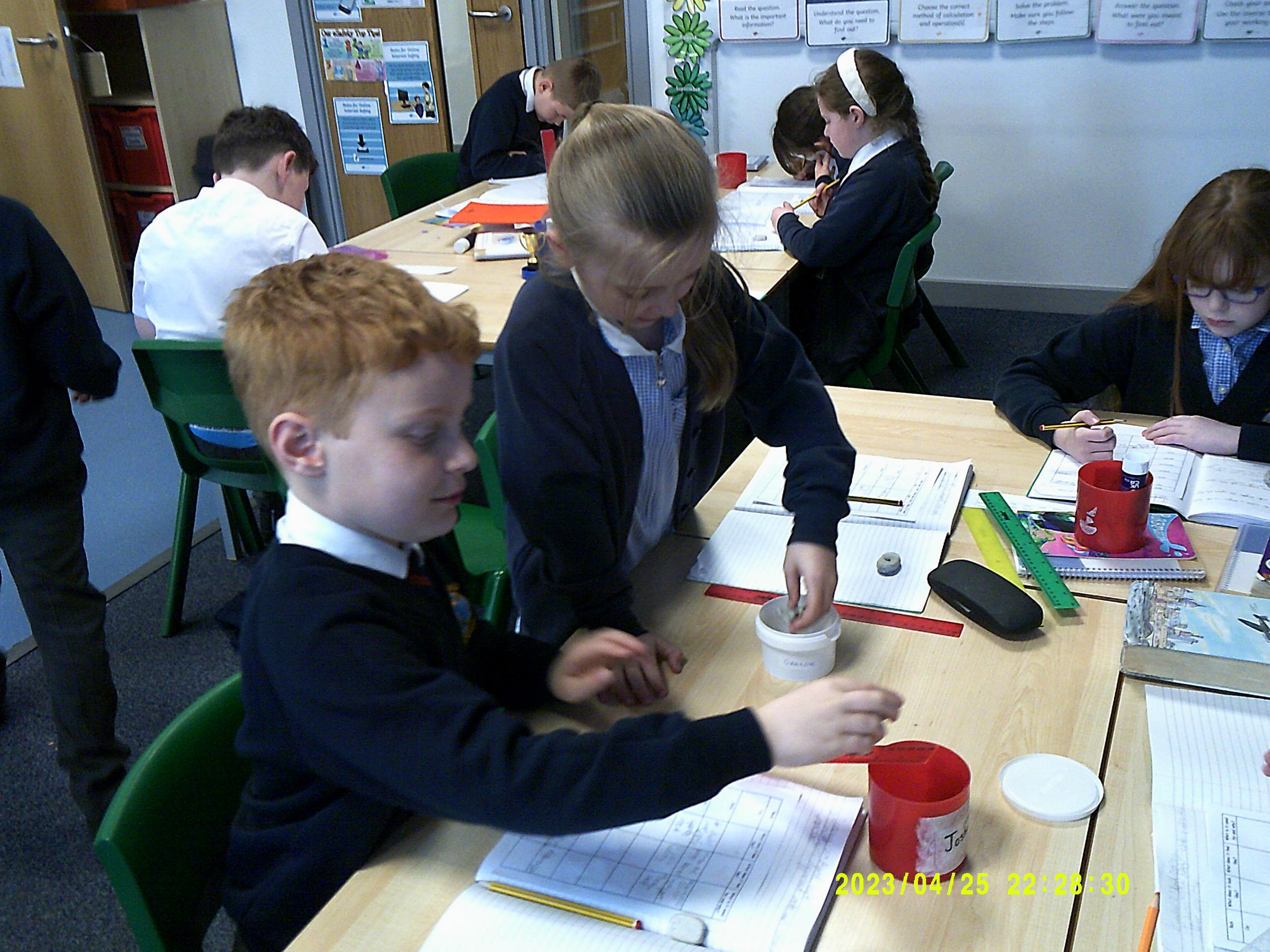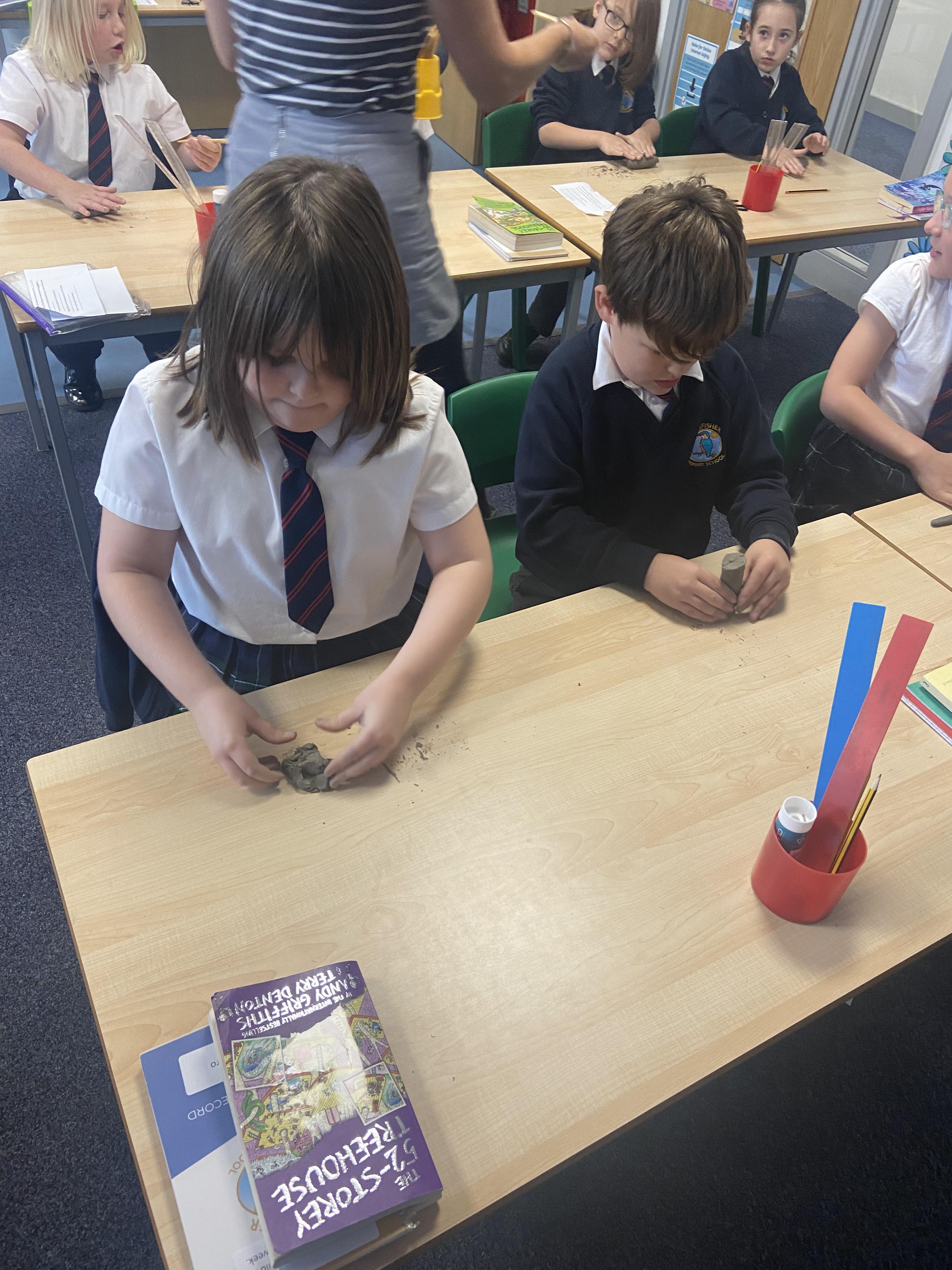 Today, we spent some more time investigating our different rocks. We worked in small groups to test the durability and permeability of the different rocks. The children showed great maturity when investigating and found that the slate and granite were the most durable with chalk as the least but chalk was the most permeable and absorbed the most water in.