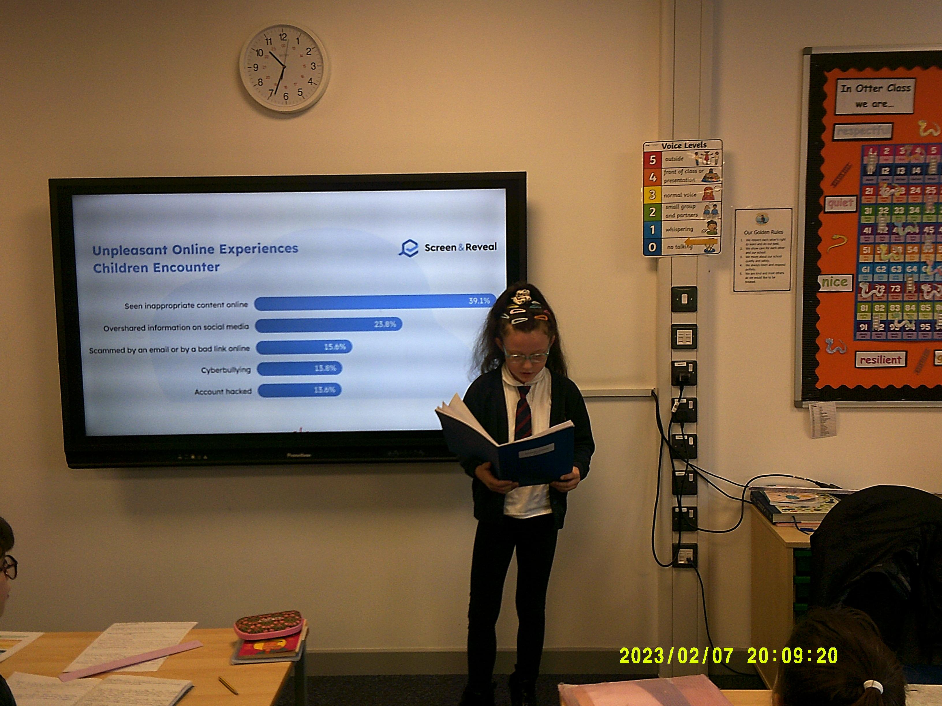Inspired by the work of Greta Thunberg, the children have taken an active role in understanding the need to be safe online for Safer Internet Day and have written some fantastic speeches today! The children loved sharing some of their speeches with the class and felt very passionately about the subject. It was wonderful to read their thoughts and to see their brilliant work. In the afternoon, the children loved working with some of the Year 5s and 6s in completing an activity whereby they tried to list the good uses of the internet for each letter of the alphabet. The children worked brilliantly and it was great to see them collaborating with each other and the older children too! Well done, Otter Class.