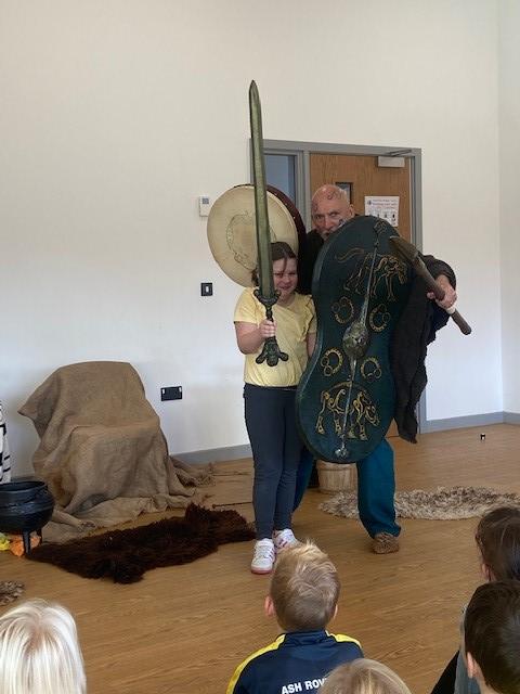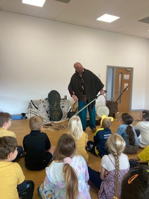 On Friday 7th October, Otter Class were fortunate enough to have a morning with the incredibly talented story teller- Clive Pig. In this gripping show, the children enjoyed a show from Bran a Celt from the Dumnonni Tribe, based in the South-West, and learnt lots of interesting facts about the Celt and Roman ways of life. They loved looking at all his prop weapons and asking lots of interesting questions. The children also looked fabulous all dressed in yellow for Mental Health Awareness Day too! Well done, Otters!