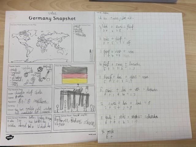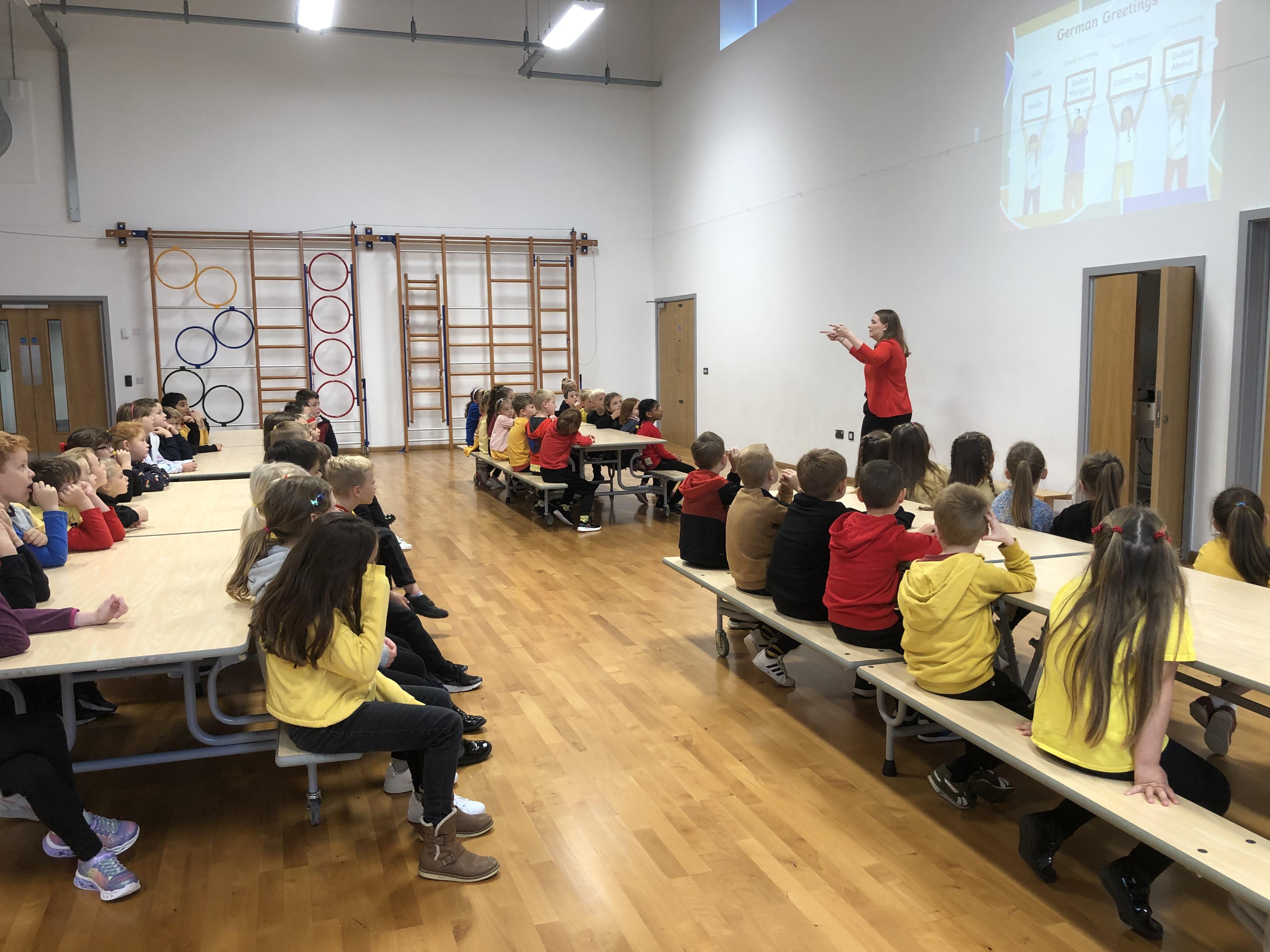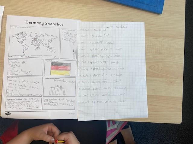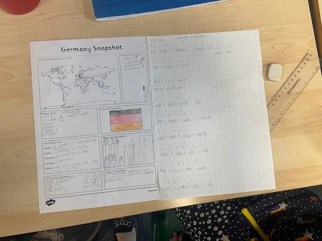 Otter Class absolutely loved developing their knowledge of German for European Day of Languages. The children all looked brilliant wearing red, yellow and black representing the German flag. Throughout the day, the children located Germany on a map, learned key facts about Germany when creating a fact file, enjoyed trying some German food, practised their German numbers and solved addition problems using their knowledge and learnt some German greetings. It was lovely for the children to be joined by Year 2 in the hall to learn some of their German greetings and taste the yummy food. The children also loved learning how to sing Bruder Jakob on repeat with Miss Broadribb in the afternoon after watching a gripping performance from Tall Tails - where they performed and signed the whole production. Improving their knowledge of sign language too! It was lovely to see the children so immersed in language learning throughout the day. Well done, Otters!